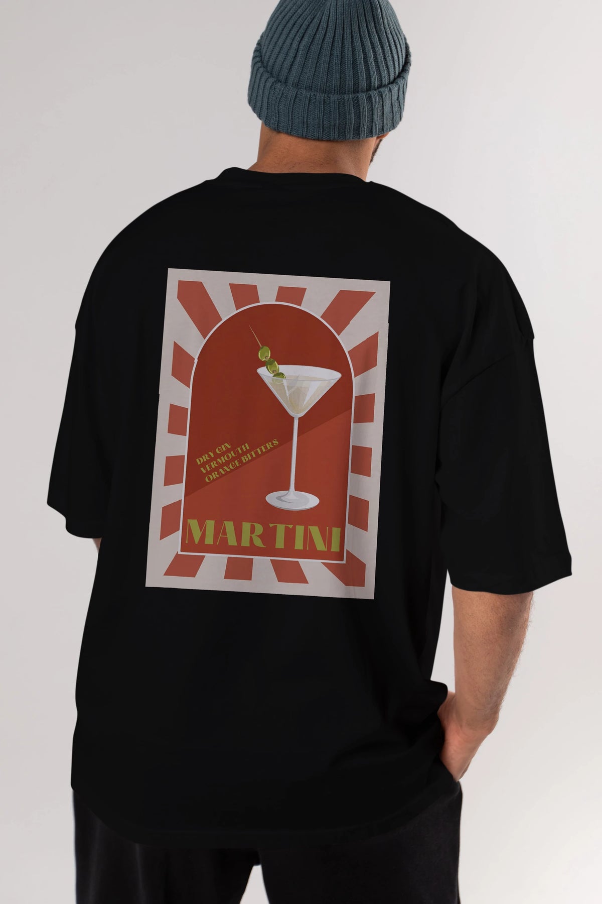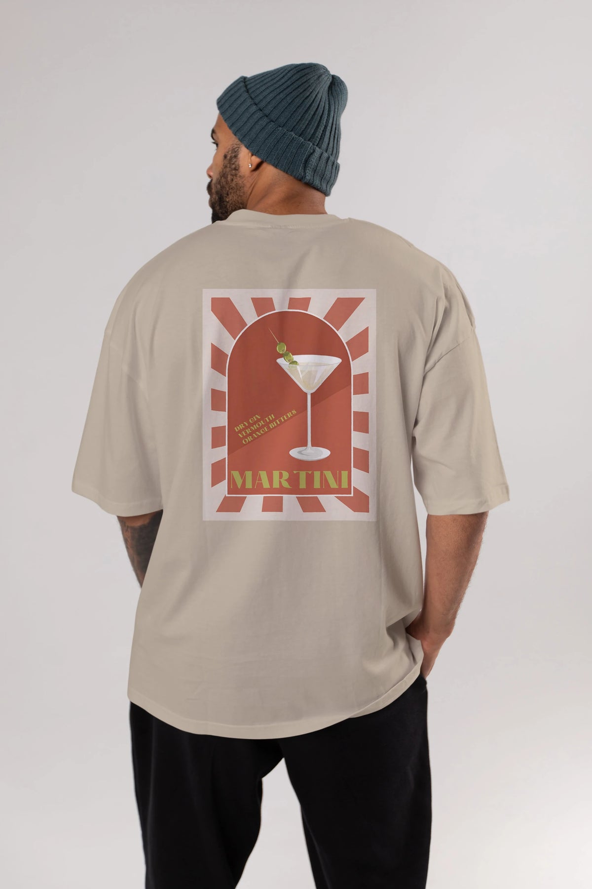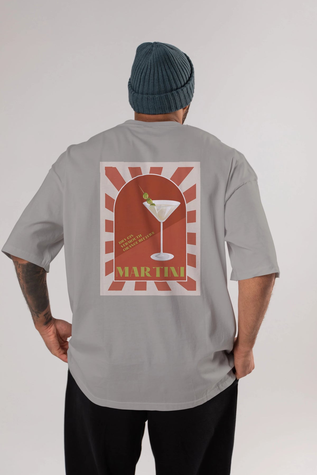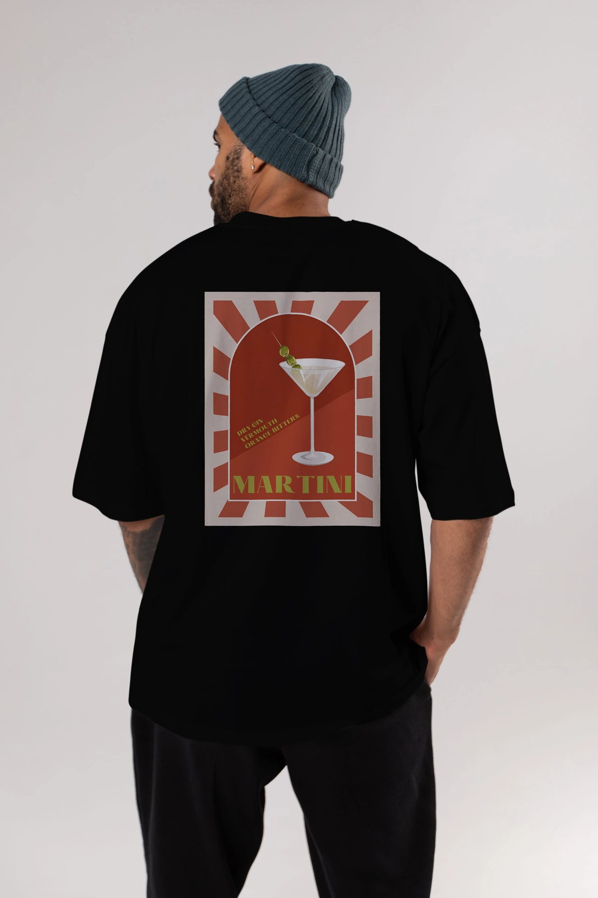Martini 2 Arka Baskılı Oversize t-shirt Erkek Kadın Unisex %100 Pamuk Bisiklet Yaka tişort