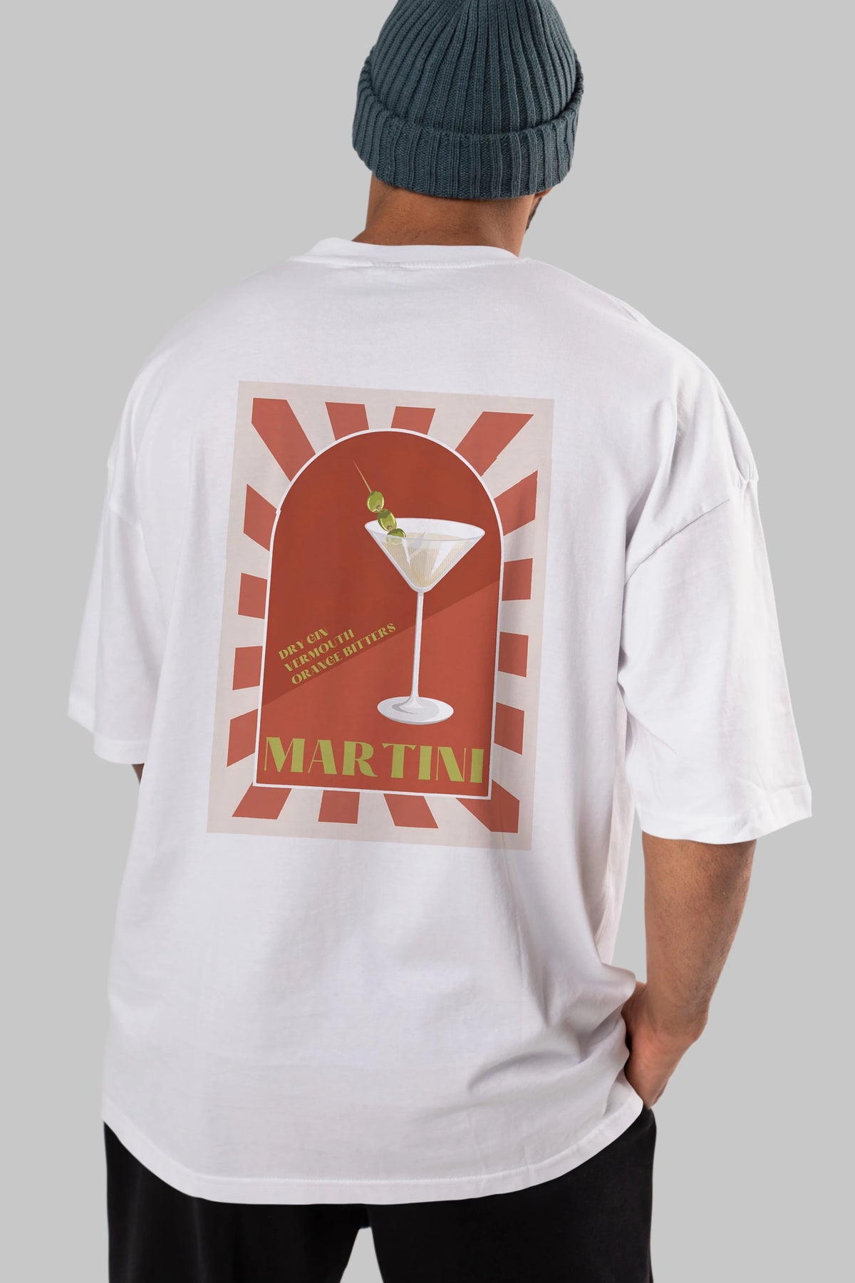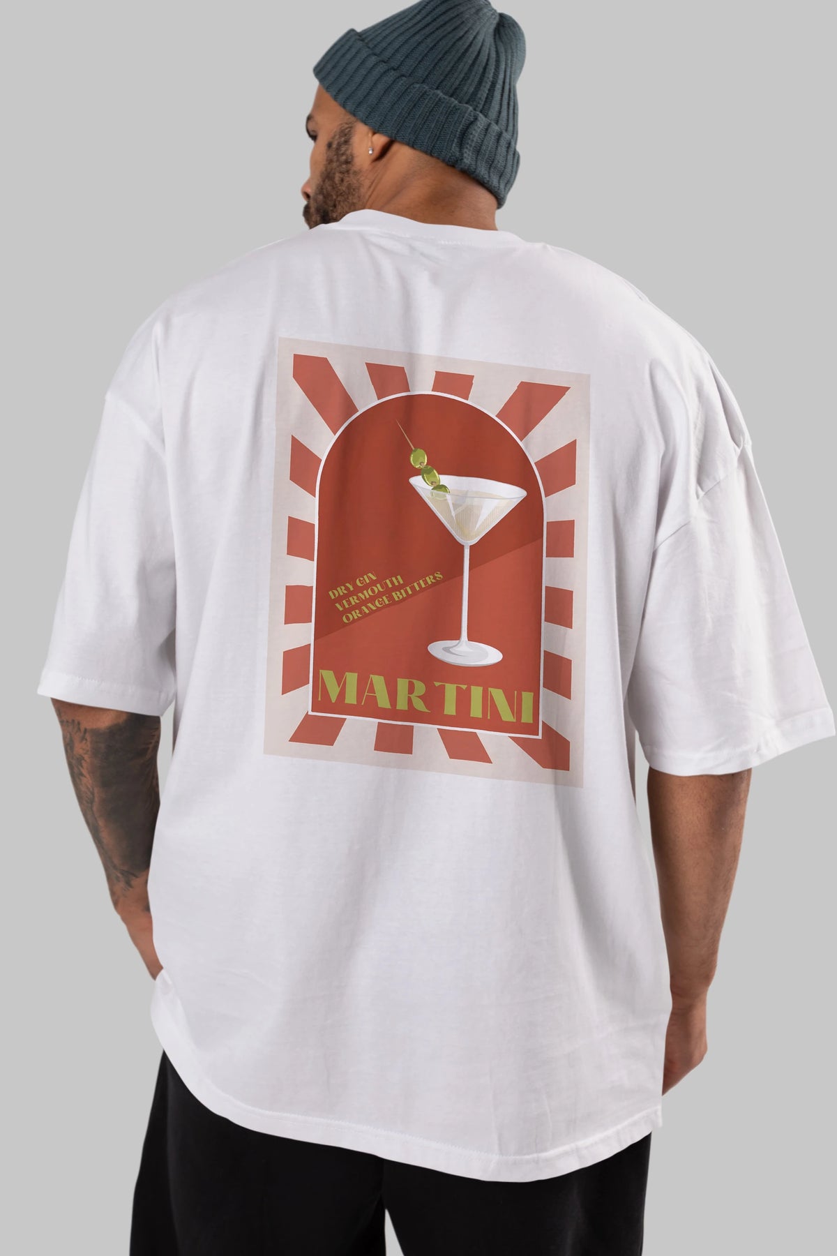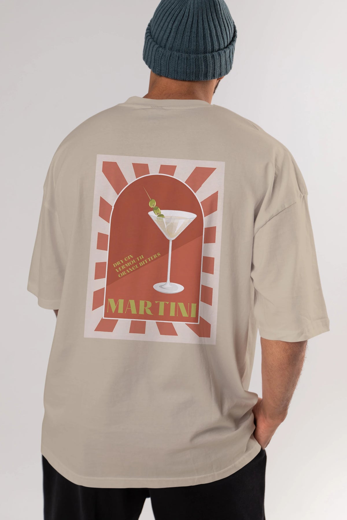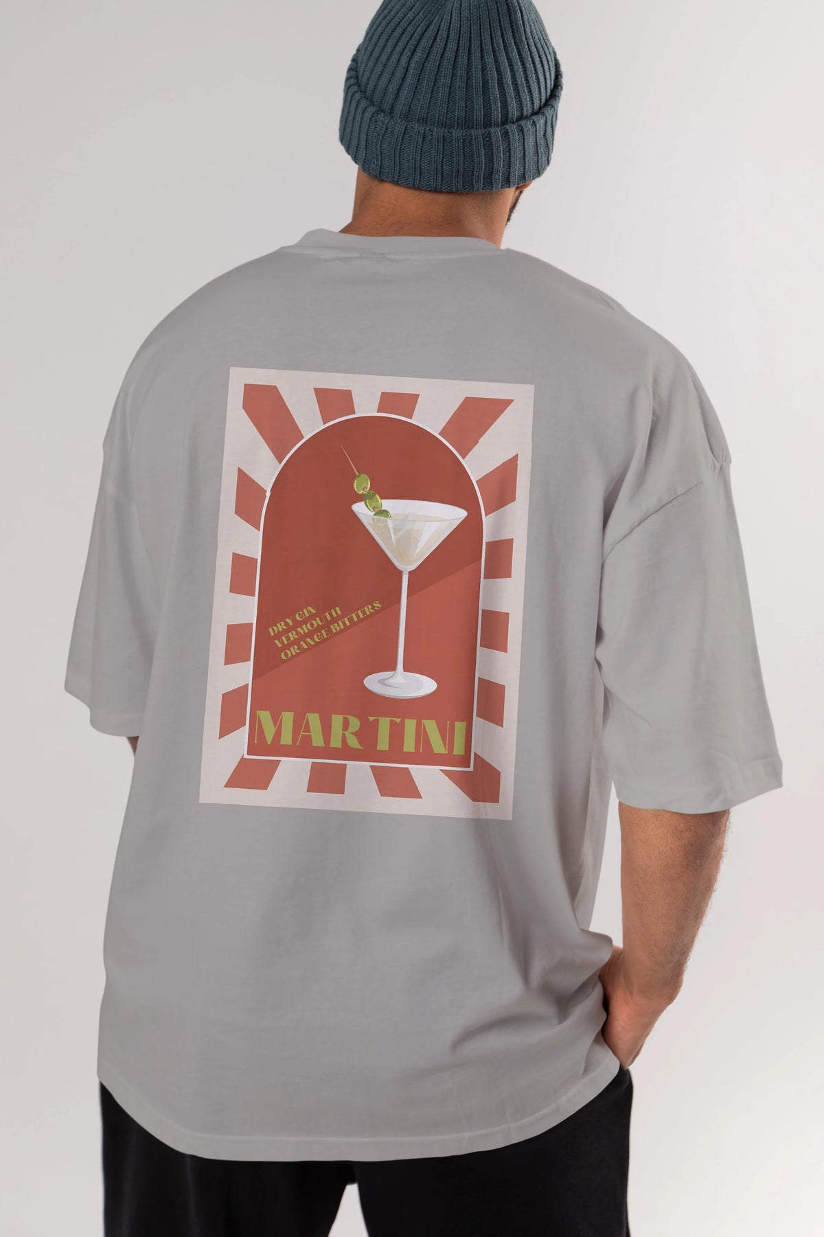Martini 2 Arka Baskılı Oversize t-shirt Erkek Kadın Unisex %100 Pamuk Bisiklet Yaka tişort