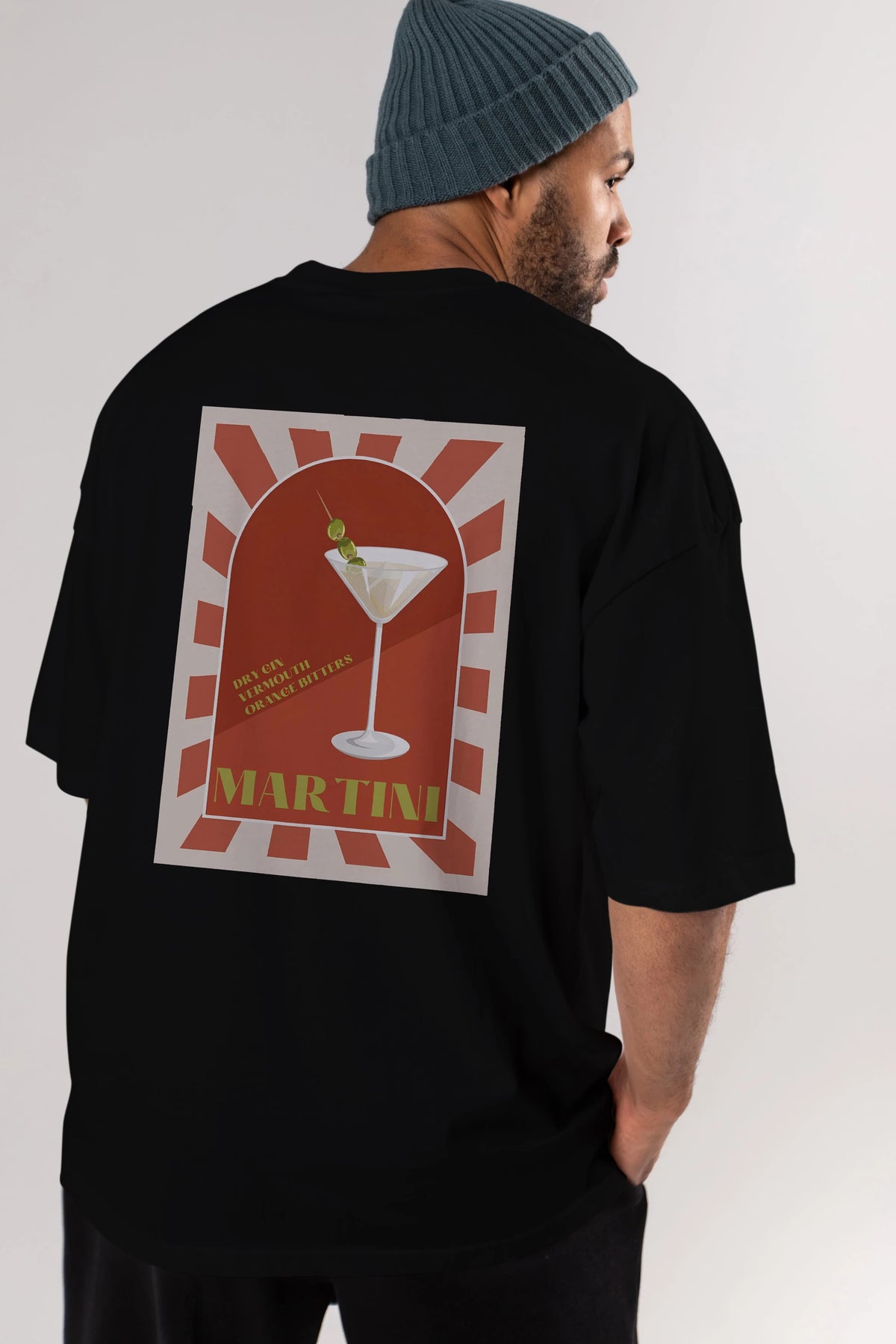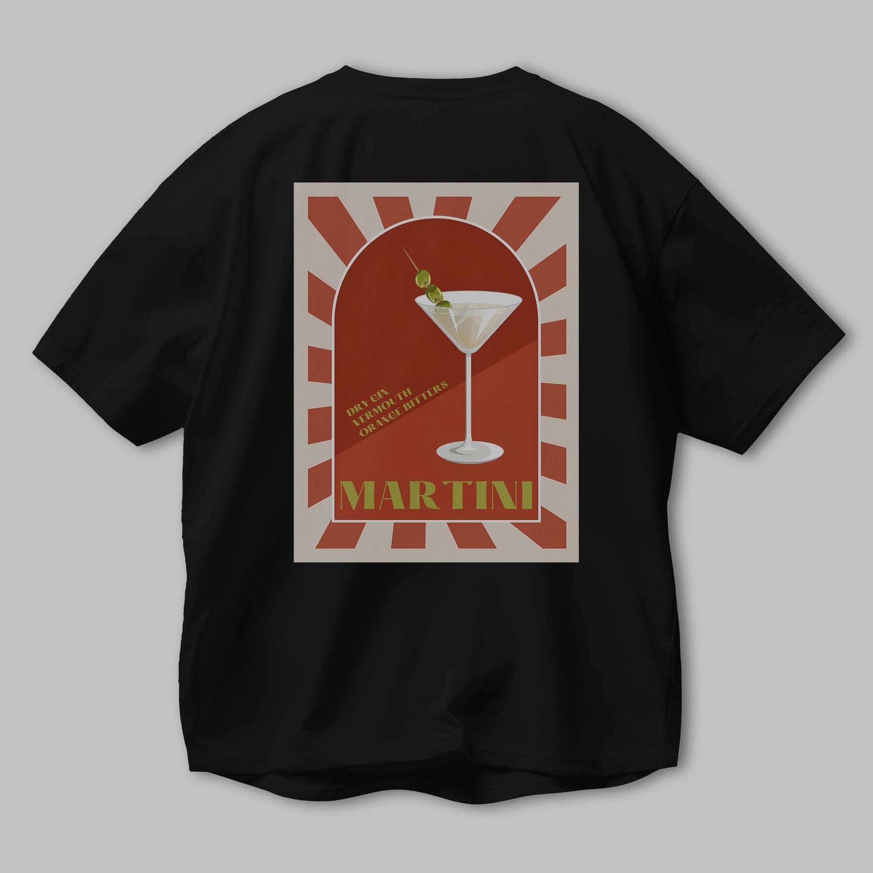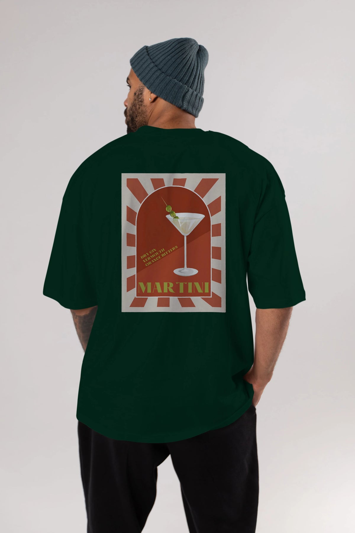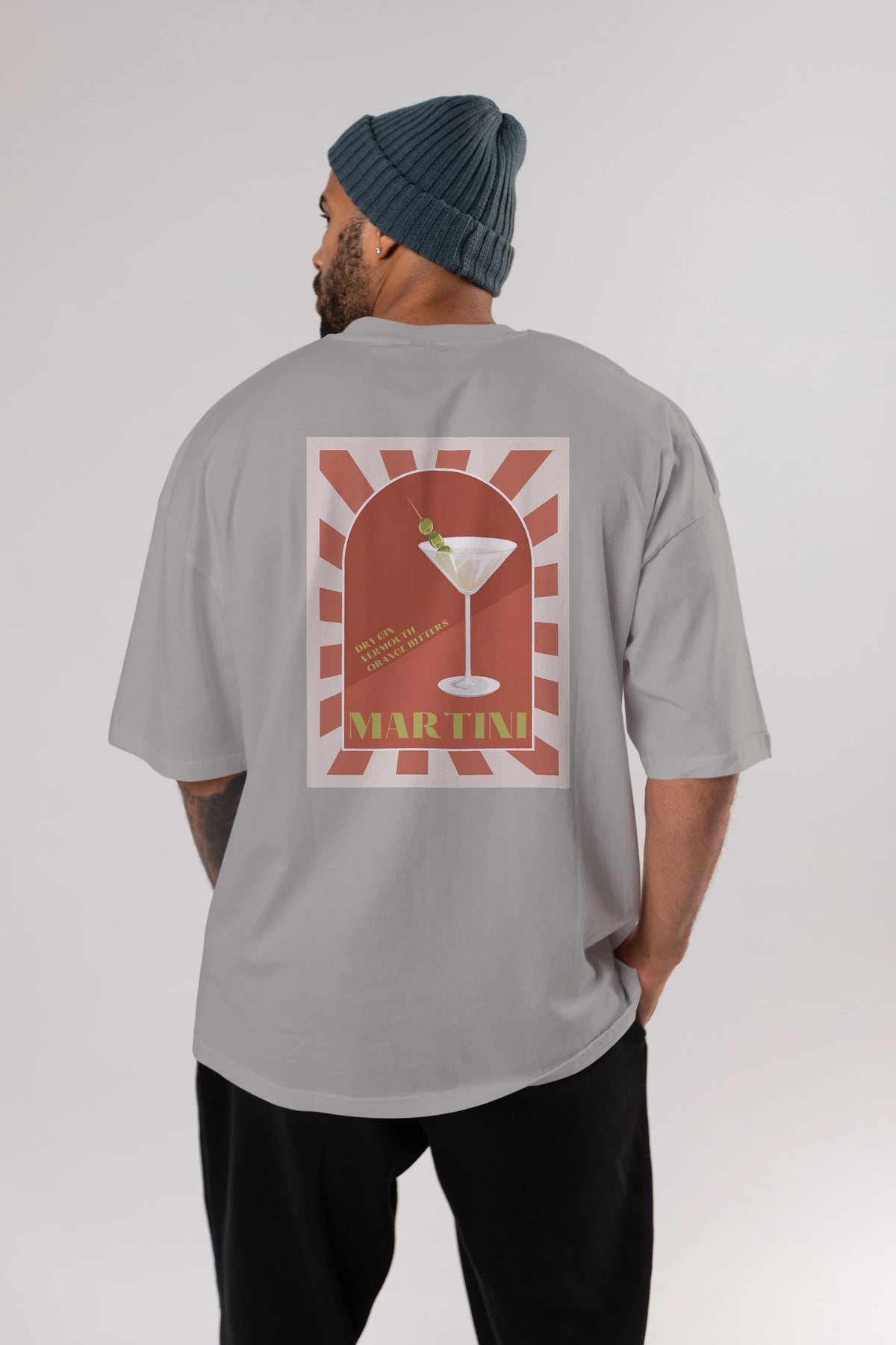 Martini 2 Arka Baskılı Oversize t-shirt Erkek Kadın Unisex %100 Pamuk Bisiklet Yaka tişort