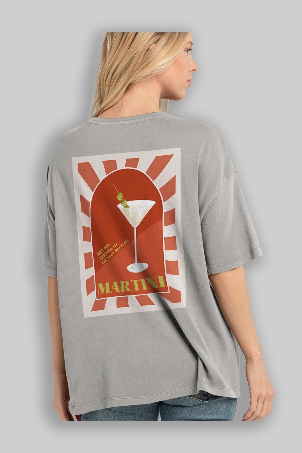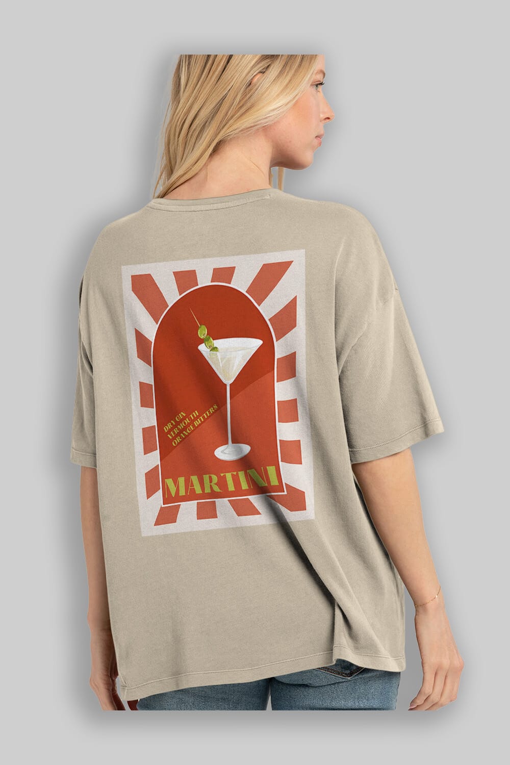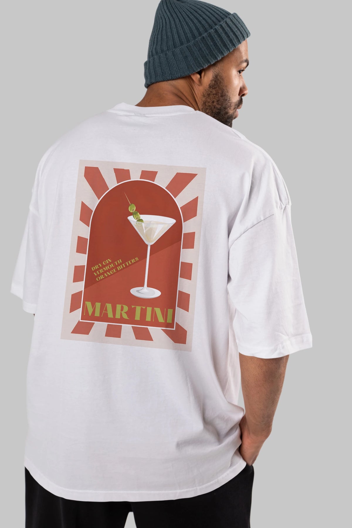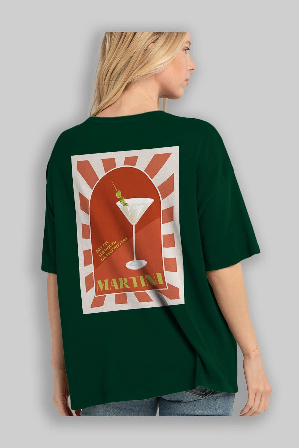 Martini 2 Arka Baskılı Oversize t-shirt Erkek Kadın Unisex %100 Pamuk Bisiklet Yaka tişort