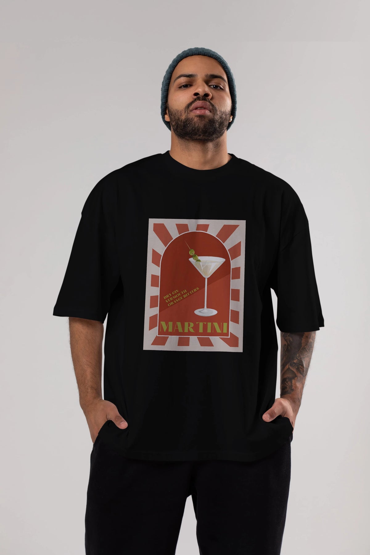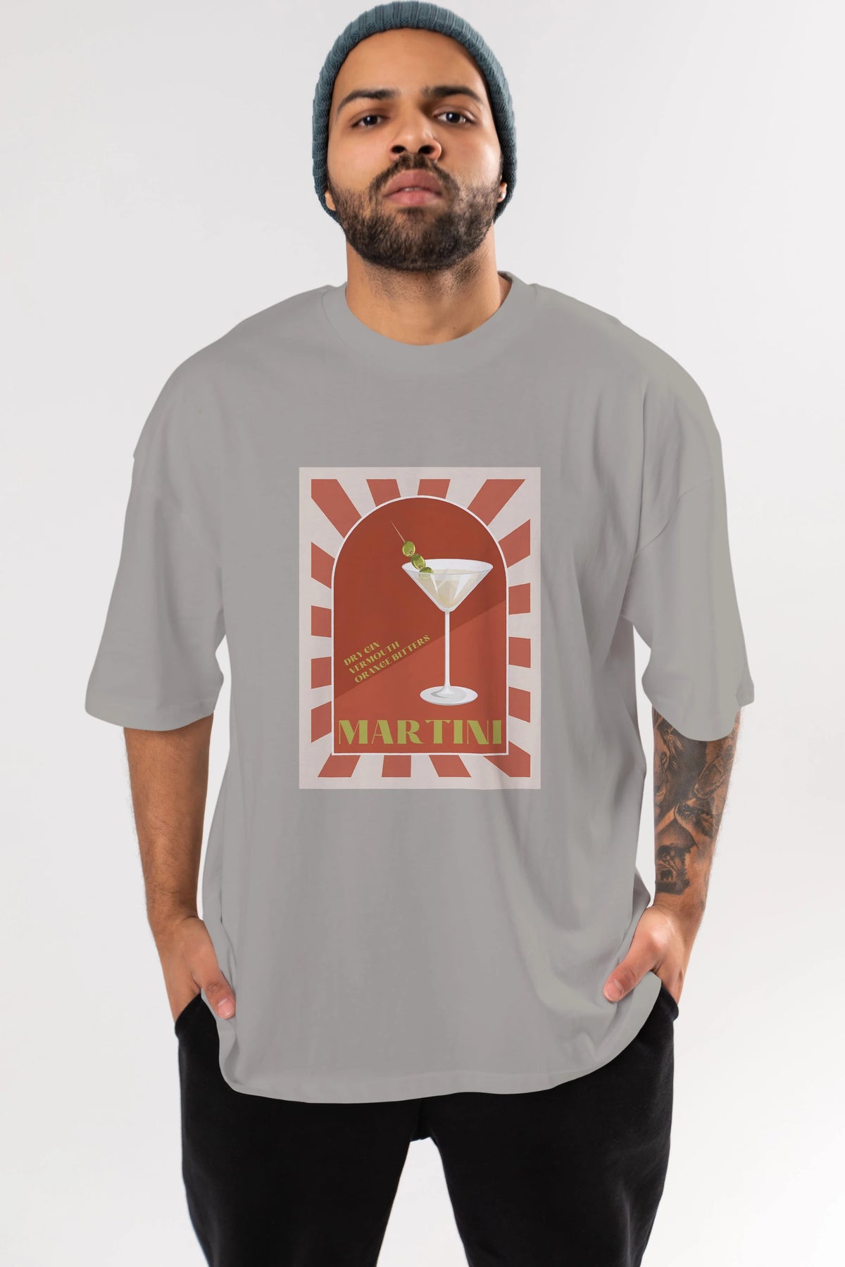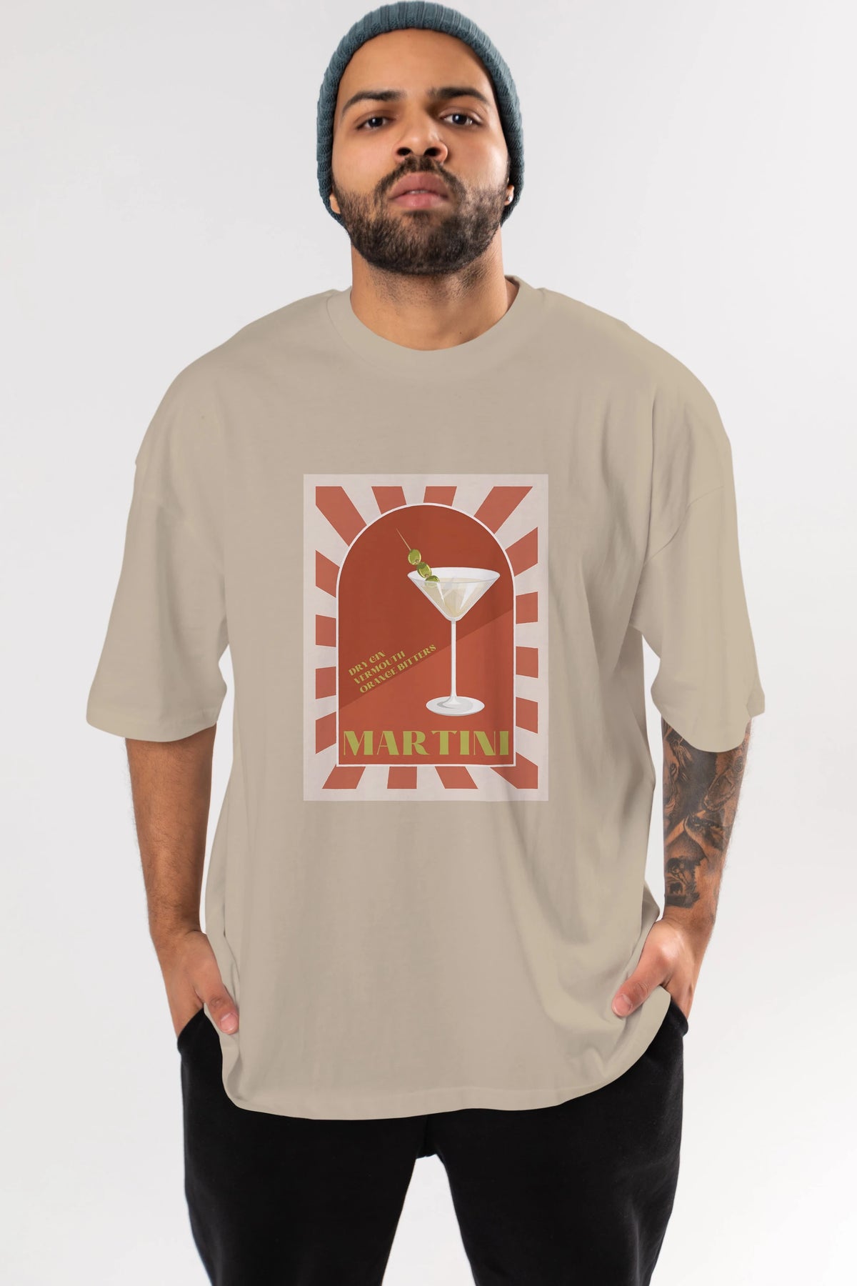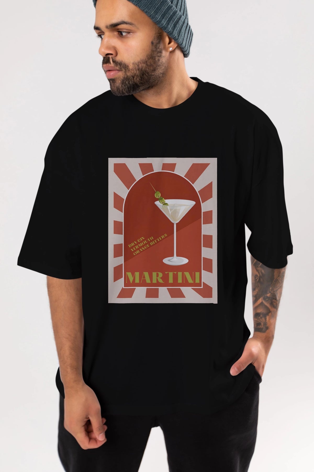 Martini 2 Ön Baskılı Oversize t-shirt Erkek Kadın Unisex %100 Pamuk Bisiklet Yaka tişort
