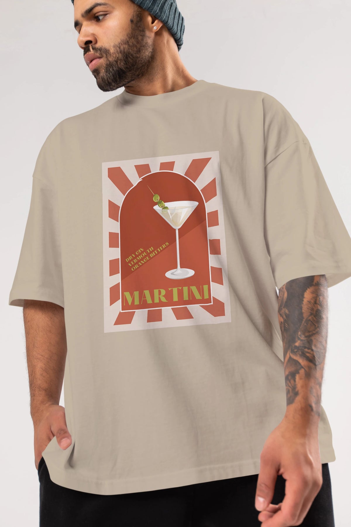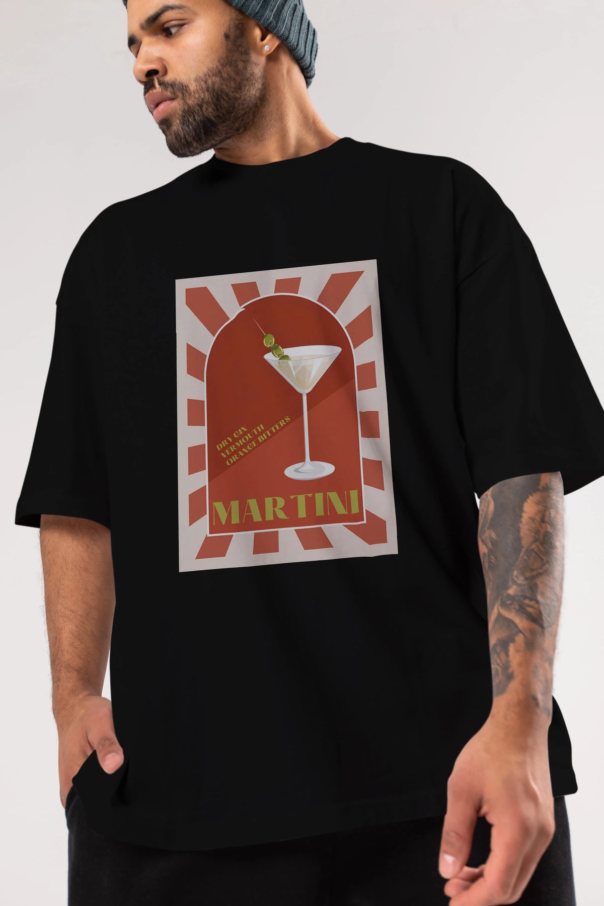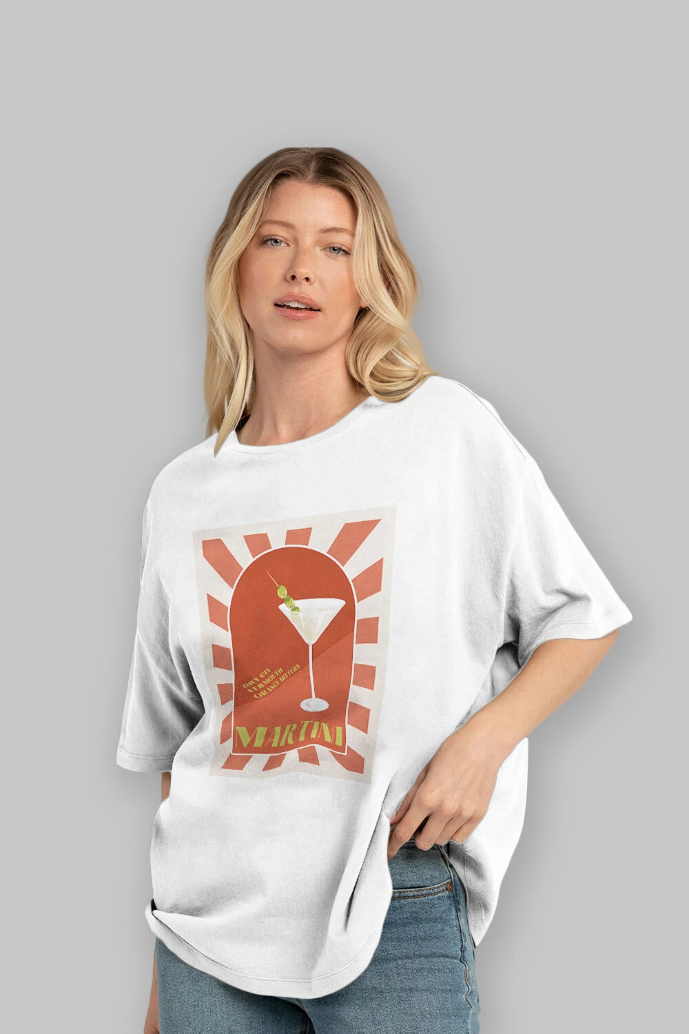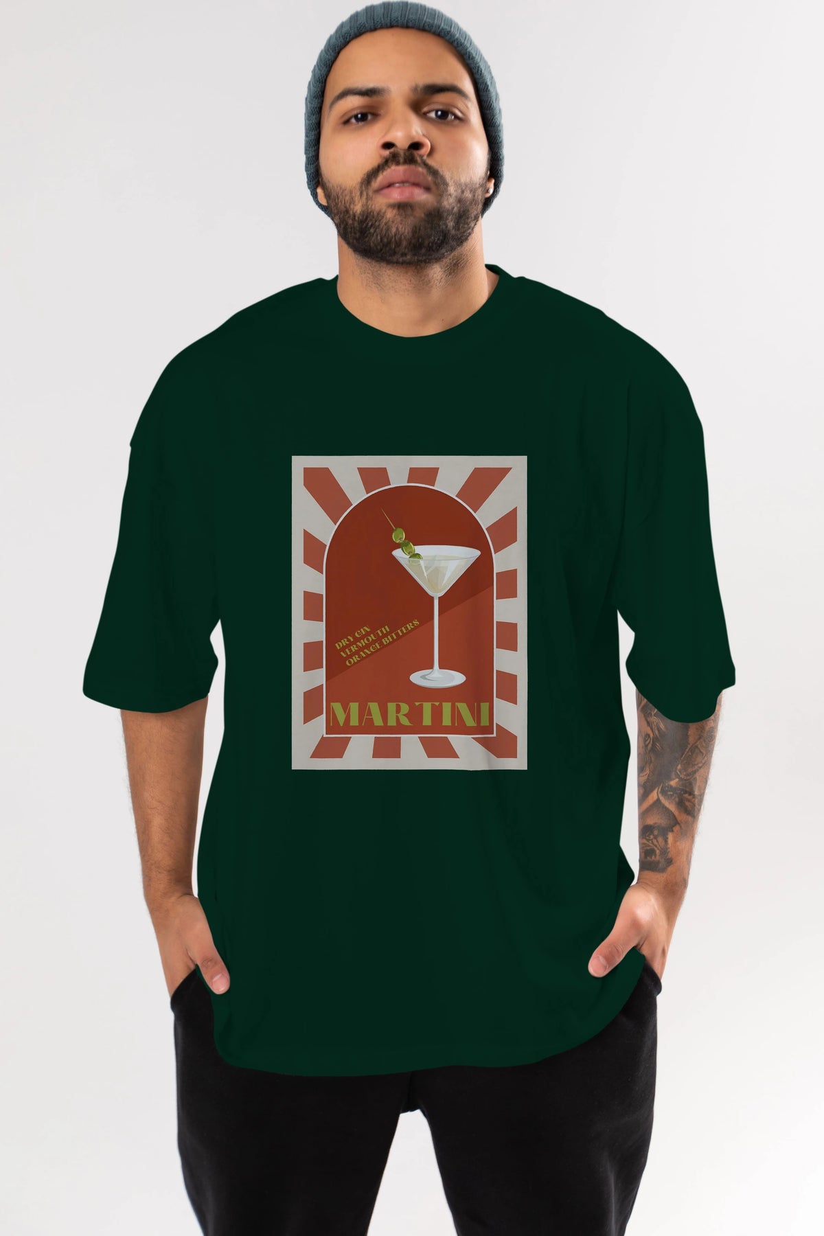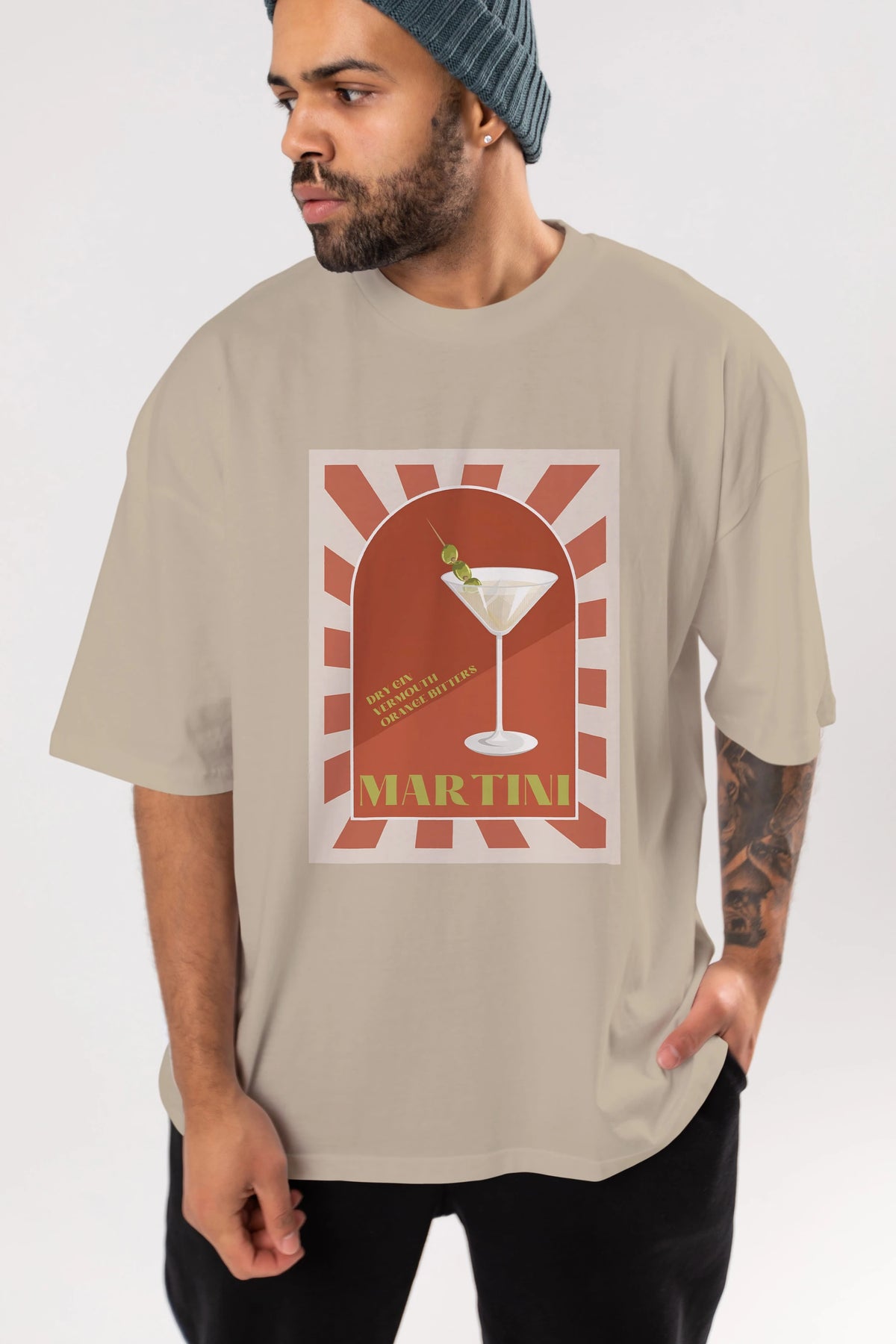 Martini 2 Ön Baskılı Oversize t-shirt Erkek Kadın Unisex %100 Pamuk Bisiklet Yaka tişort