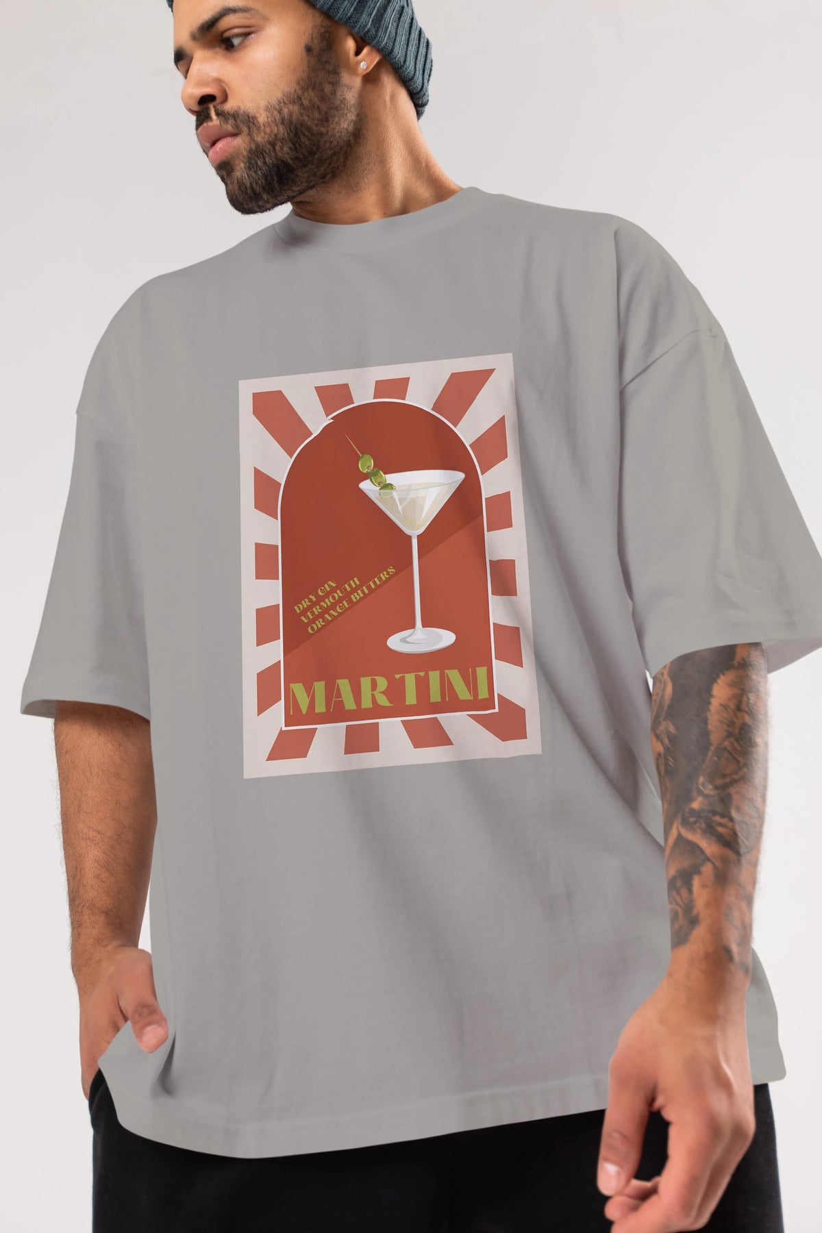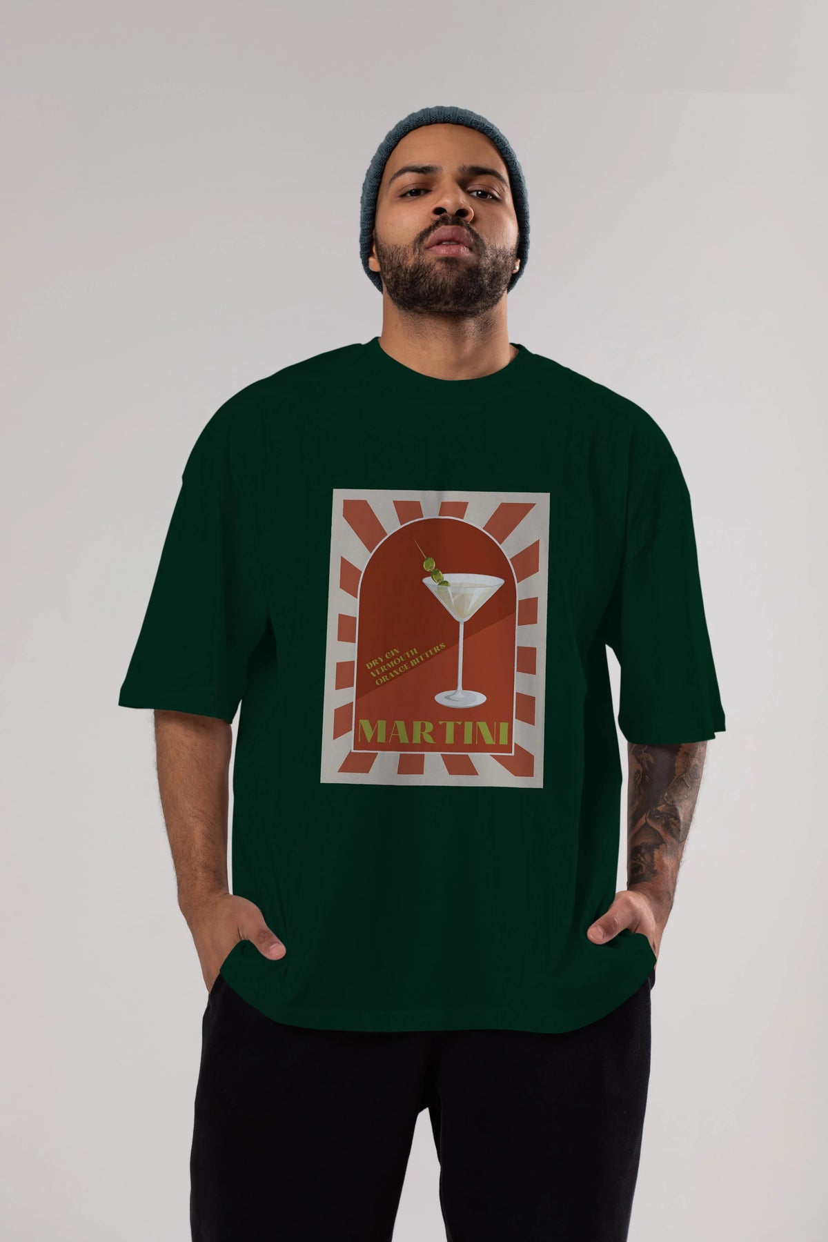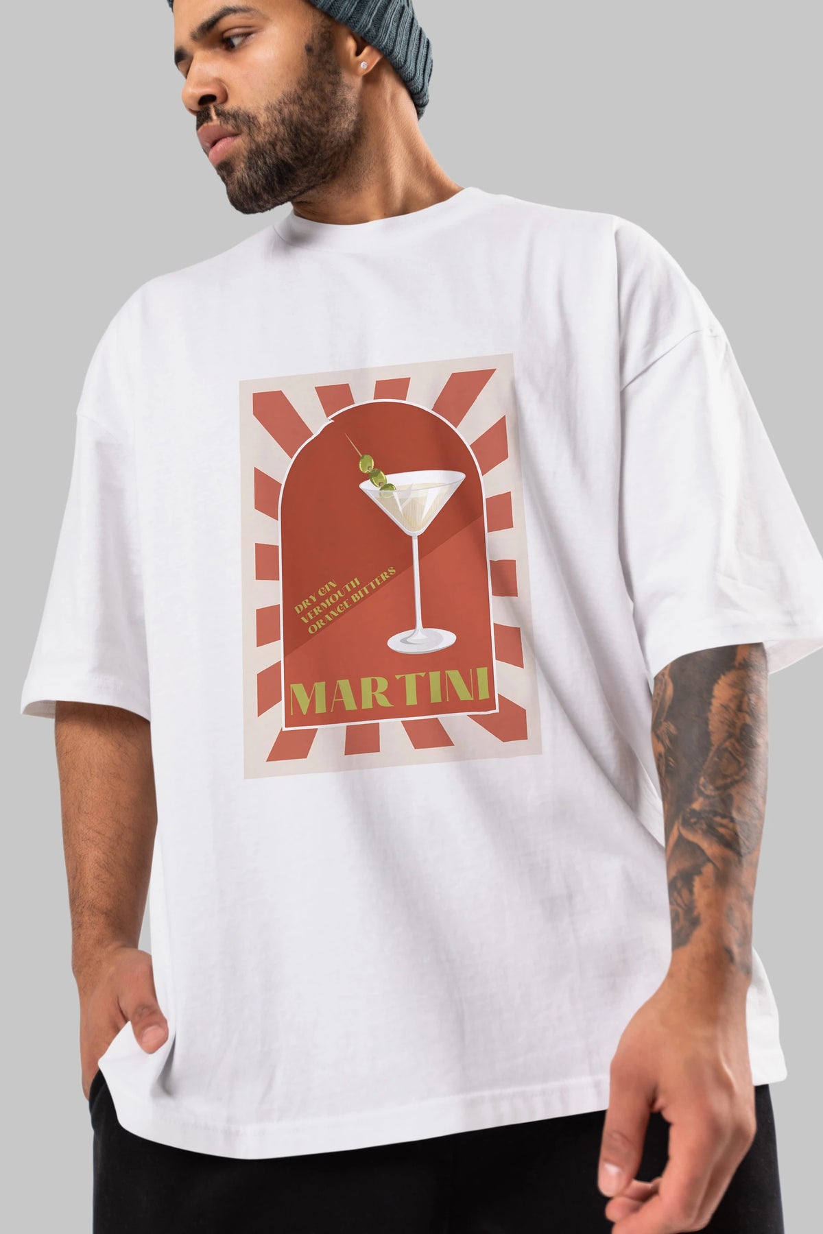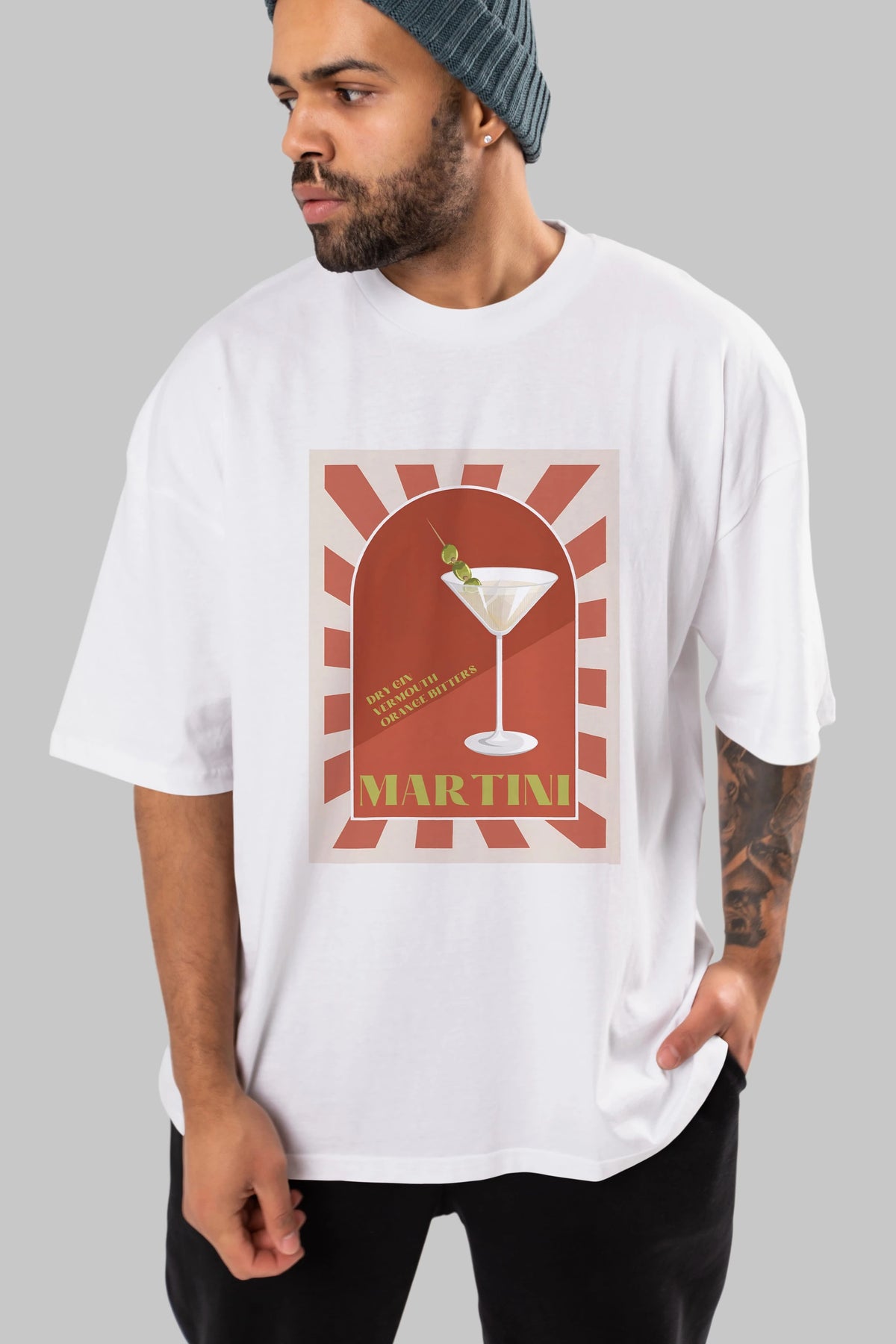 Martini 2 Ön Baskılı Oversize t-shirt Erkek Kadın Unisex %100 Pamuk Bisiklet Yaka tişort