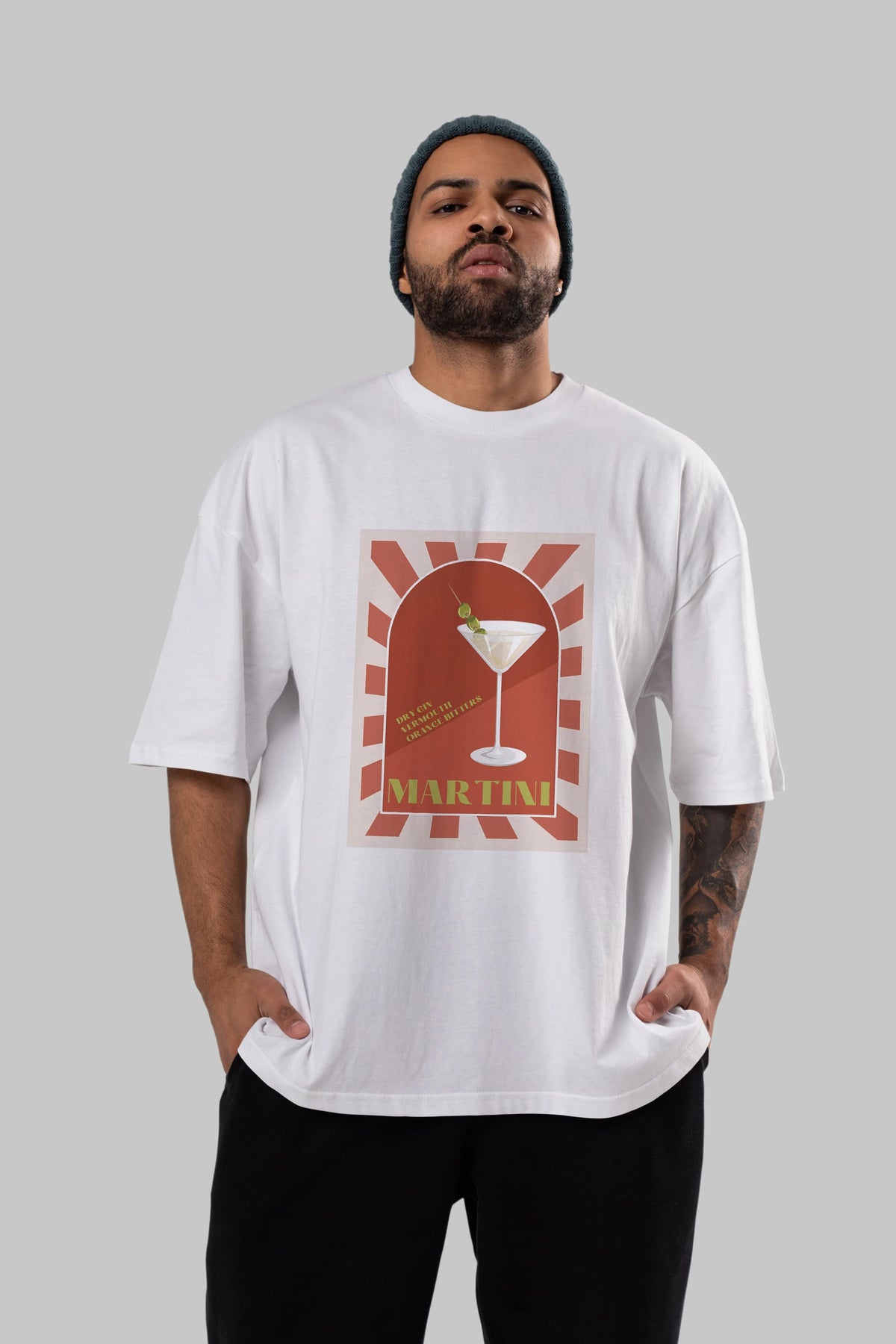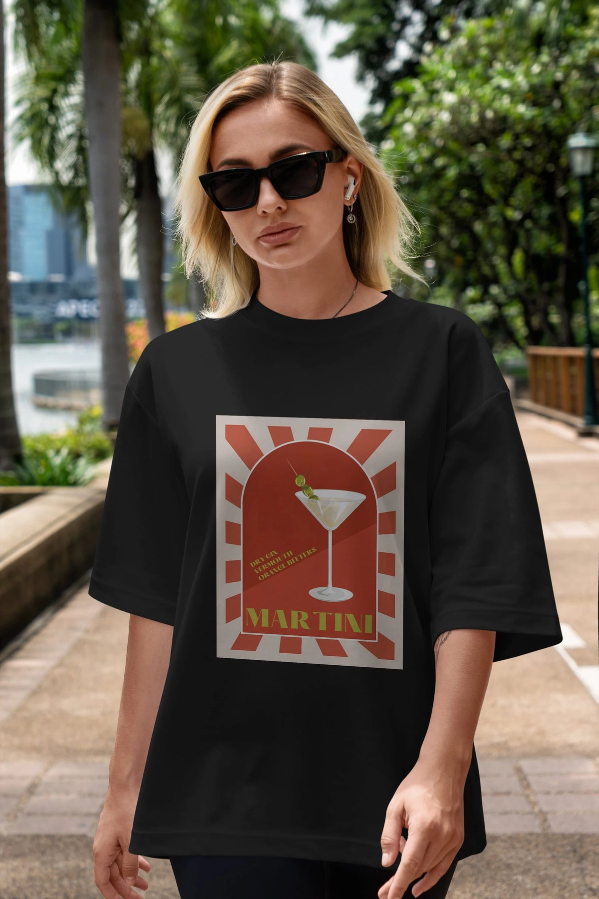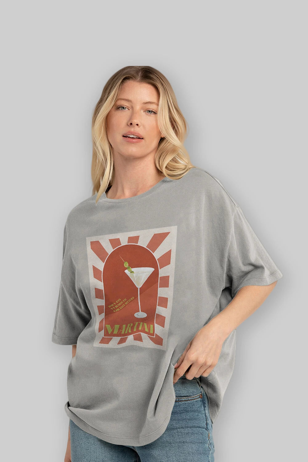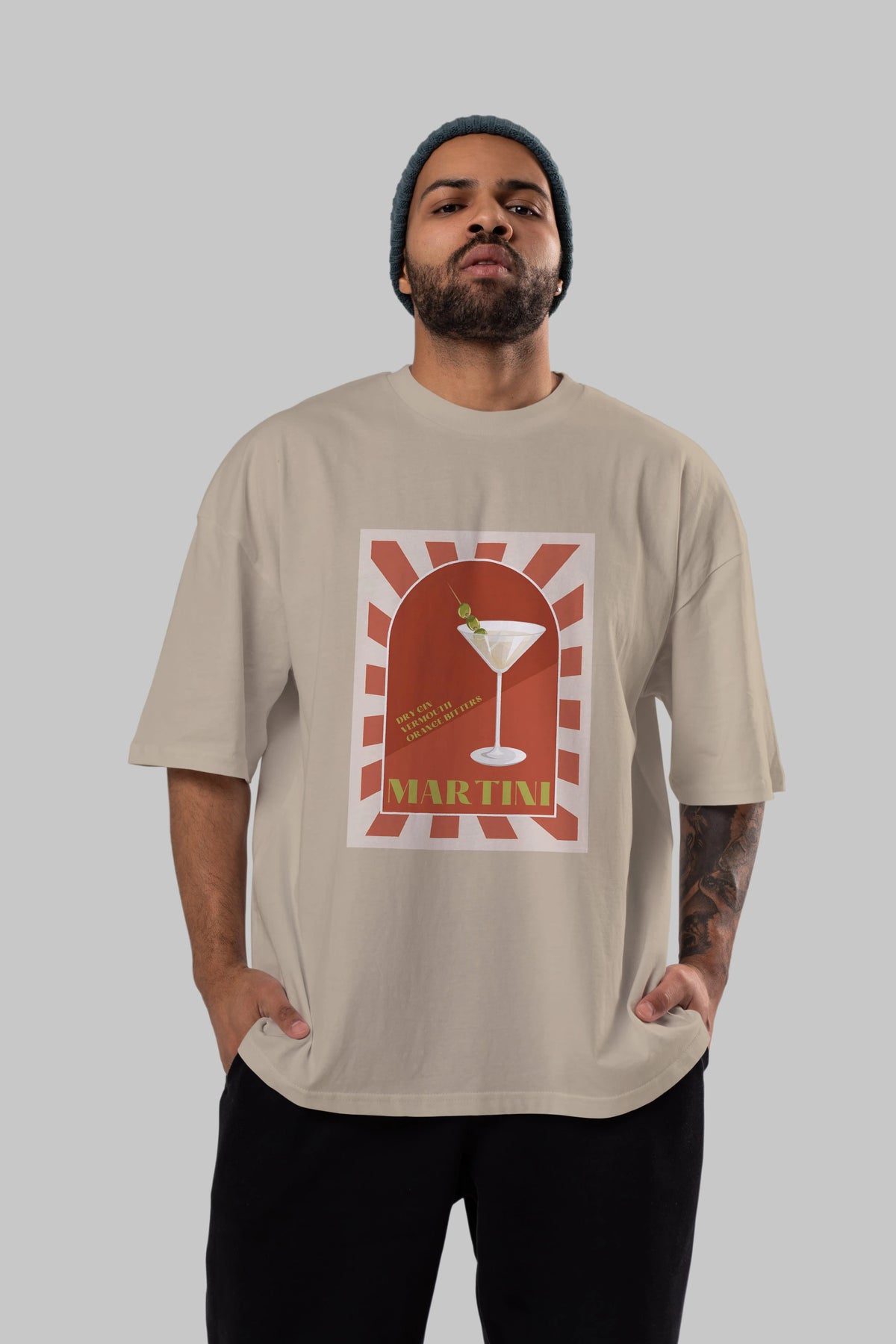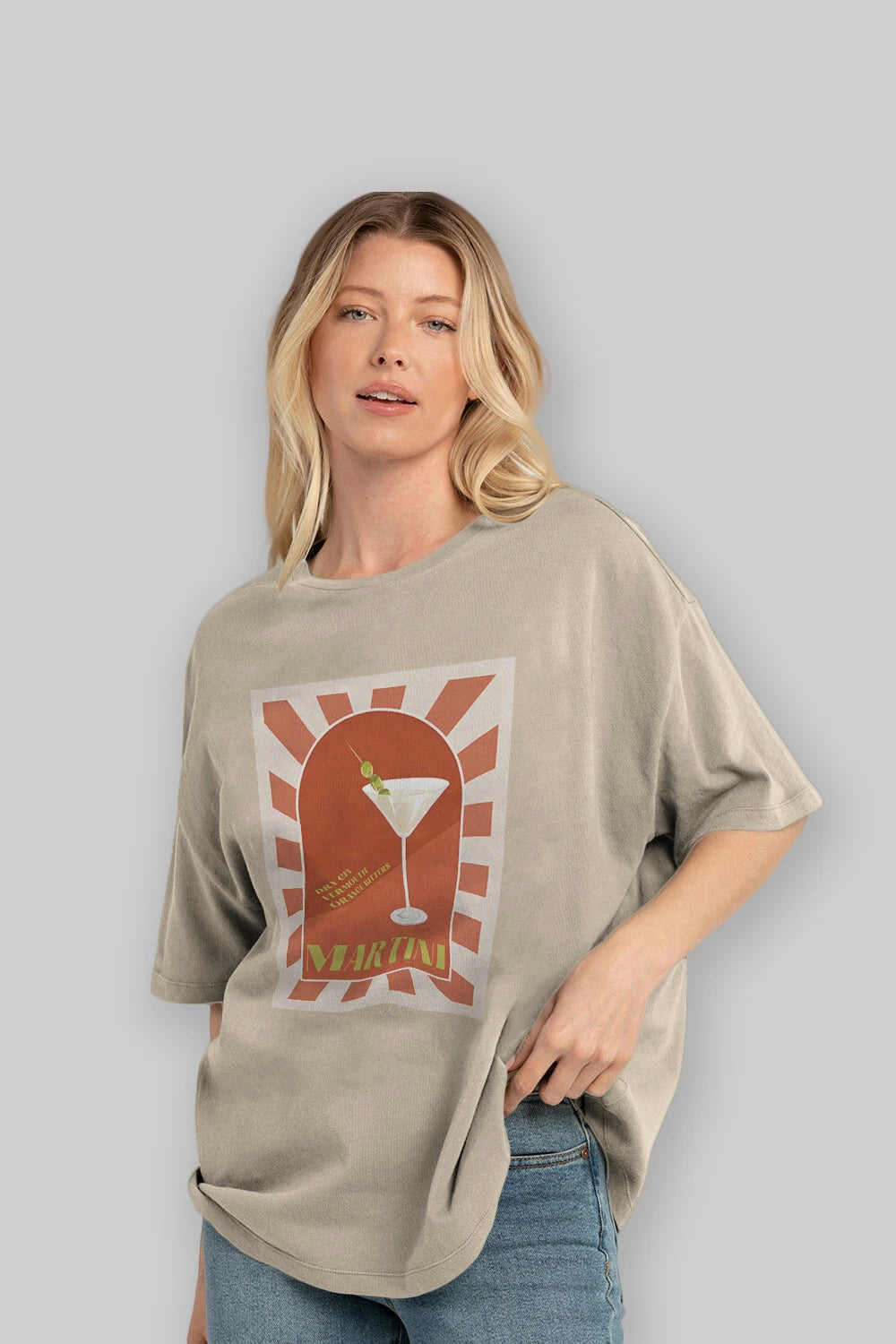 Martini 2 Ön Baskılı Oversize t-shirt Erkek Kadın Unisex %100 Pamuk Bisiklet Yaka tişort