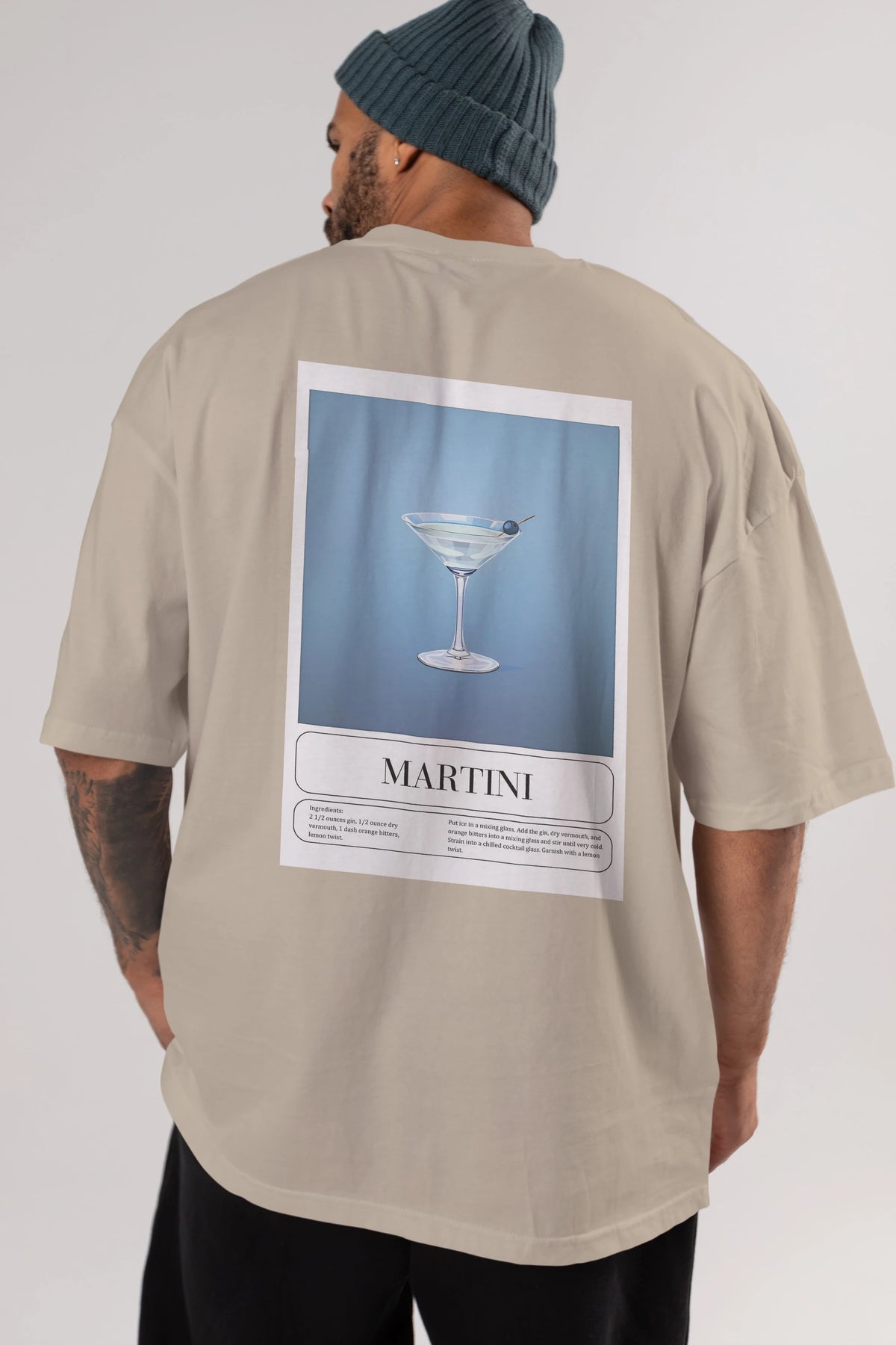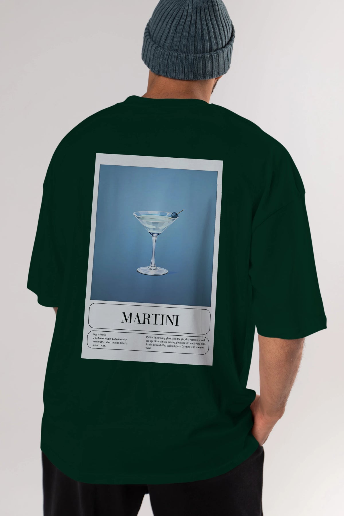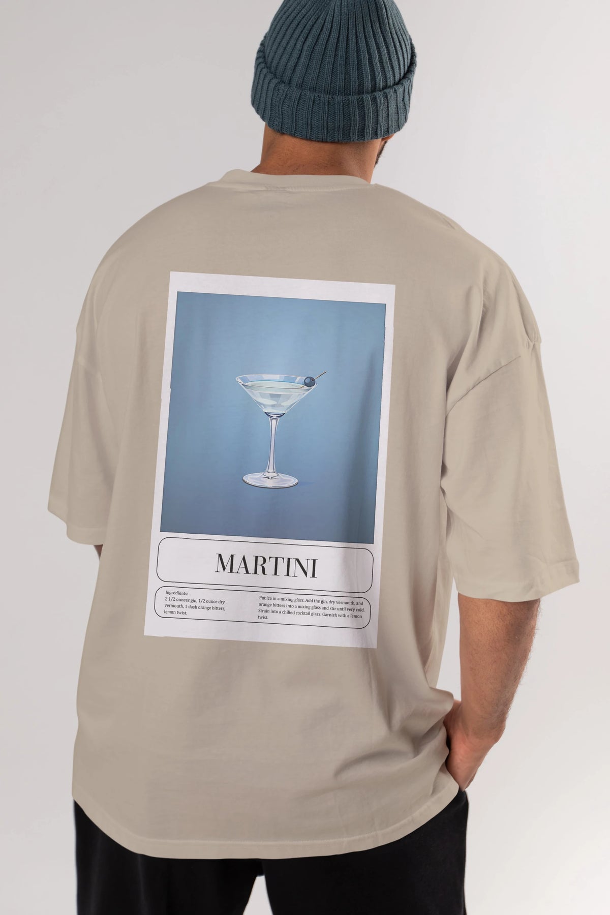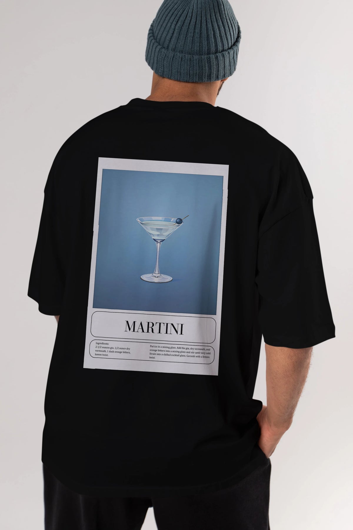 Martini Arka Baskılı Oversize t-shirt Erkek Kadın Unisex %100 Pamuk Bisiklet Yaka tişort