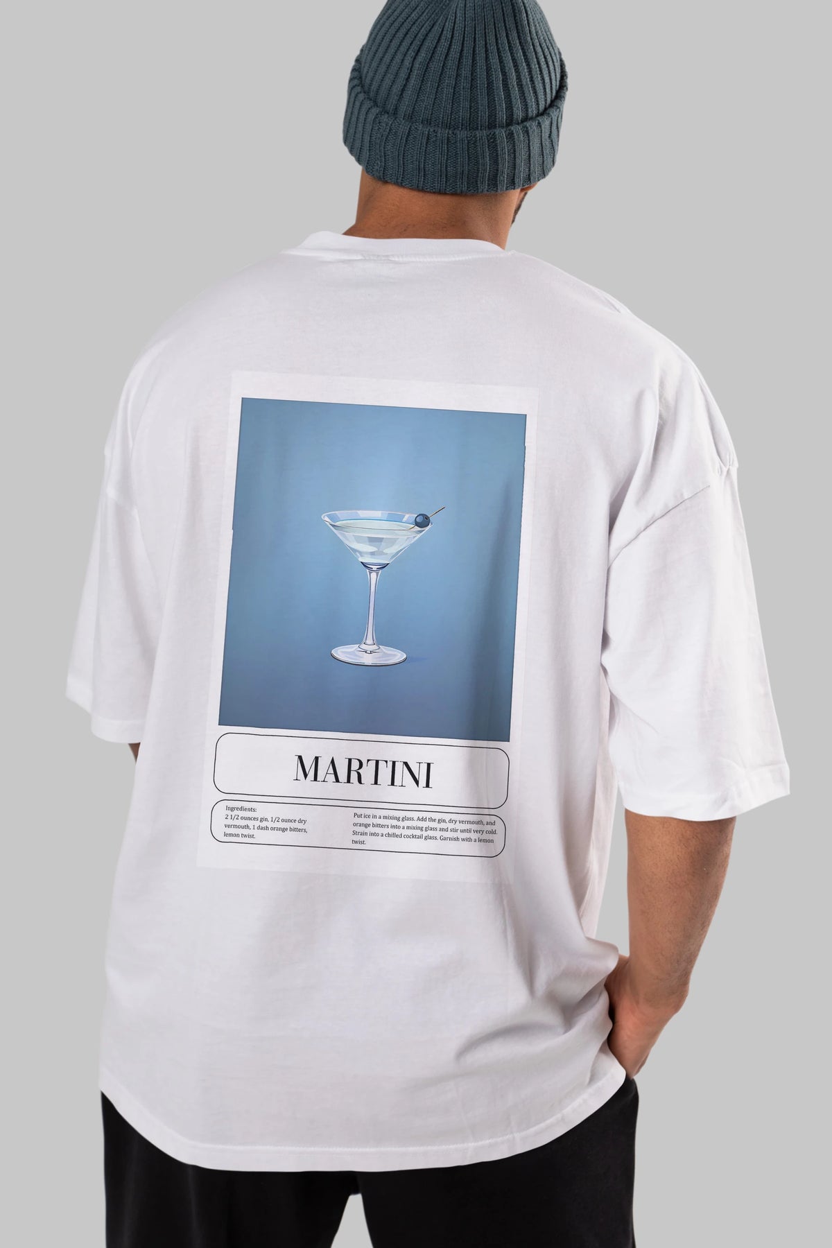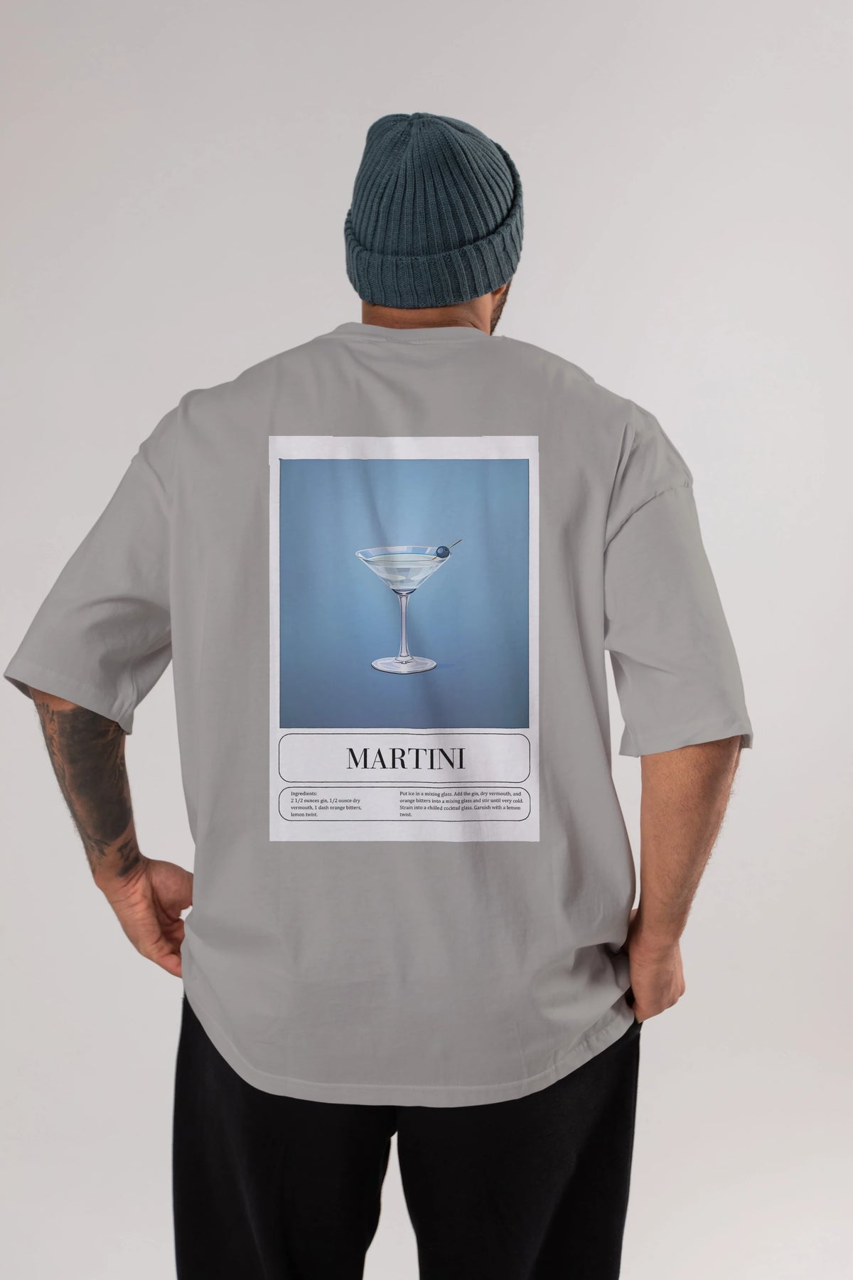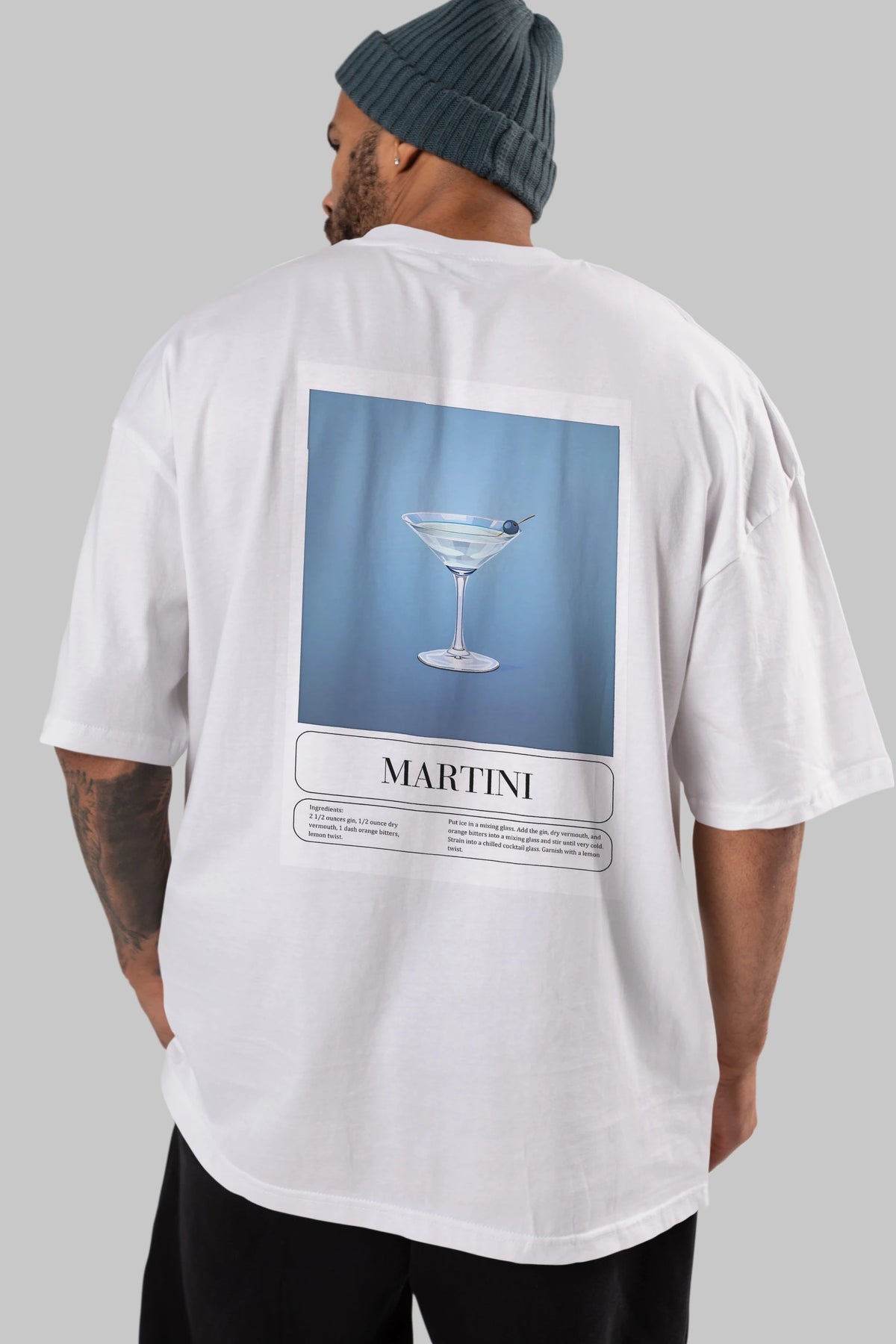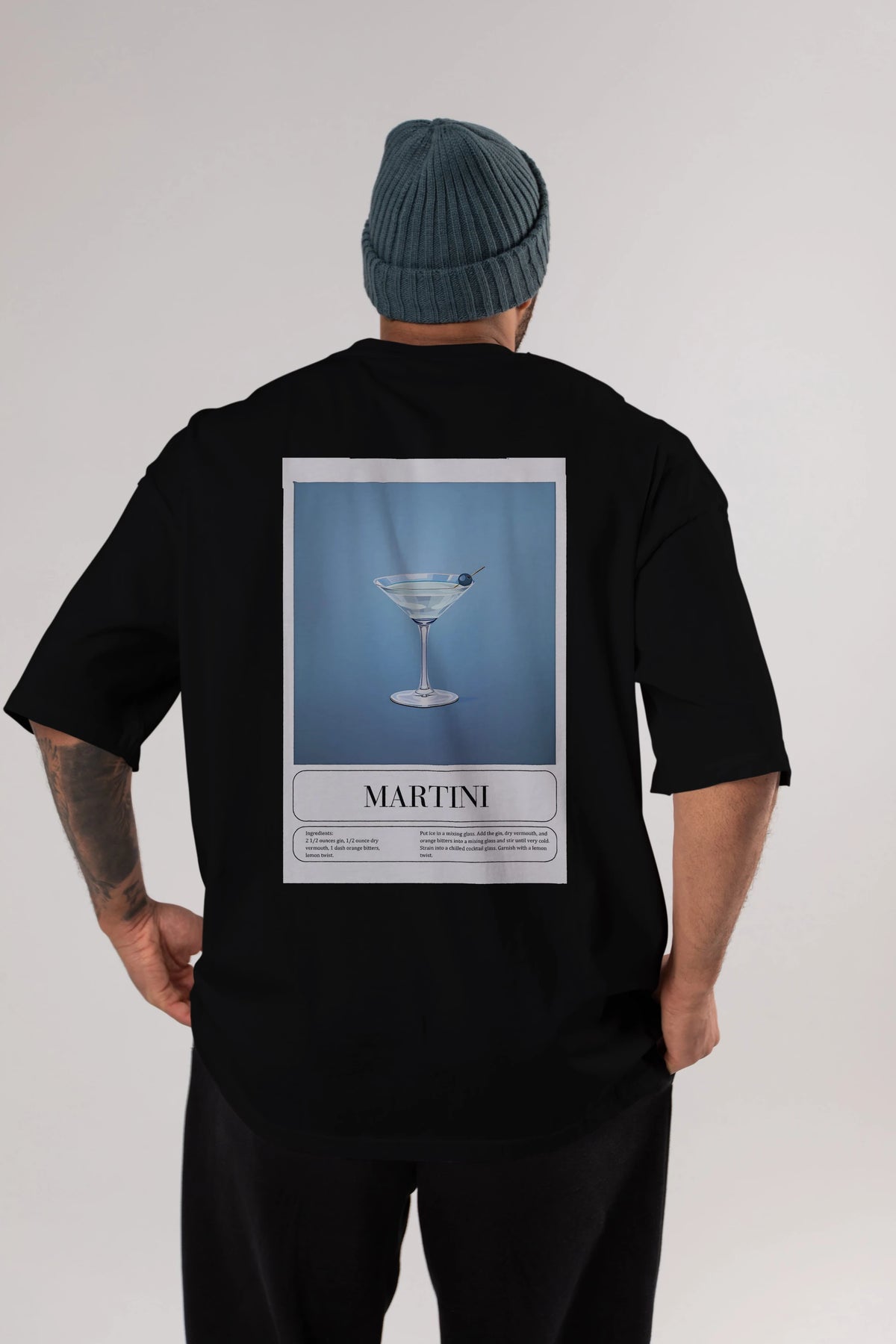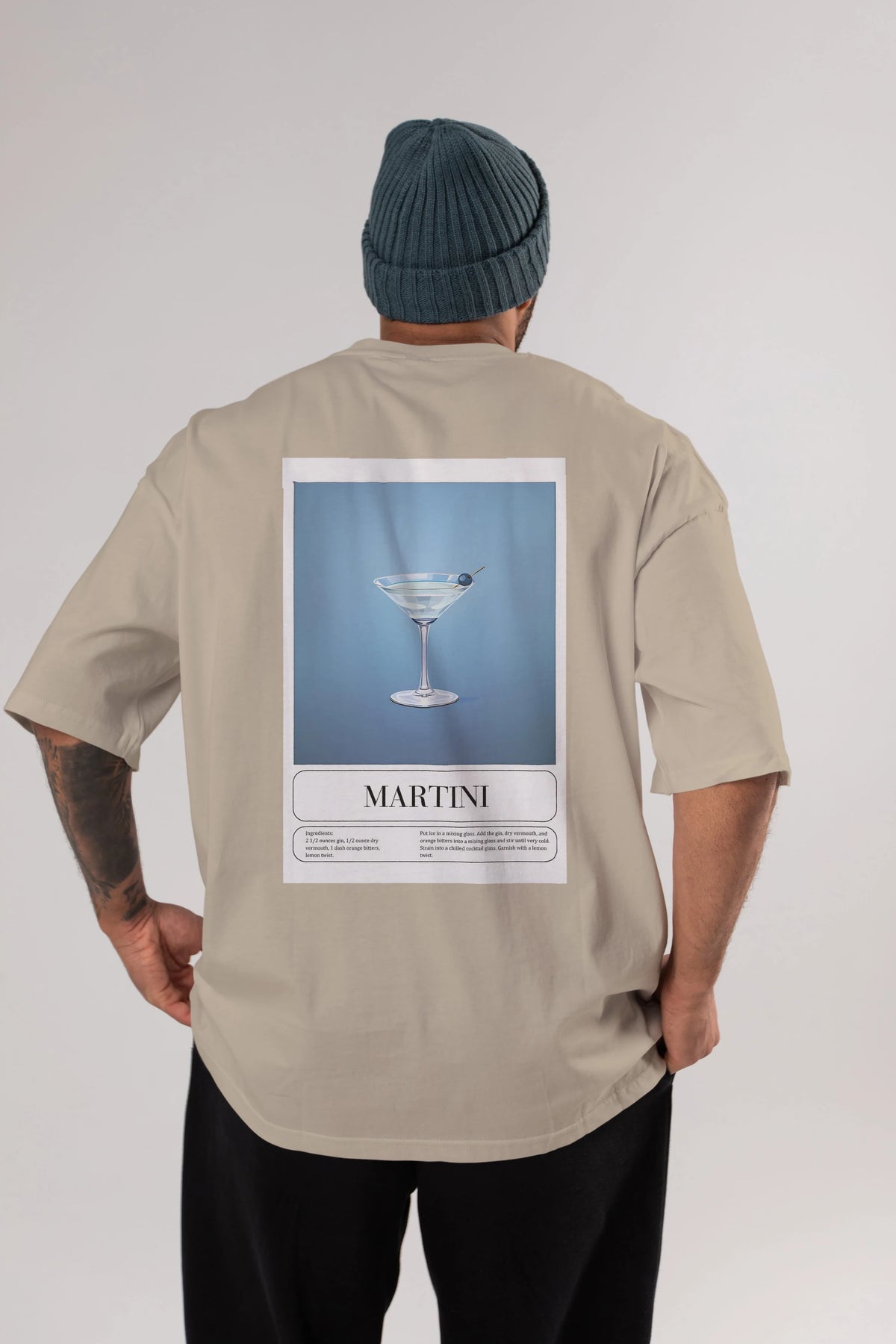 Martini Arka Baskılı Oversize t-shirt Erkek Kadın Unisex %100 Pamuk Bisiklet Yaka tişort