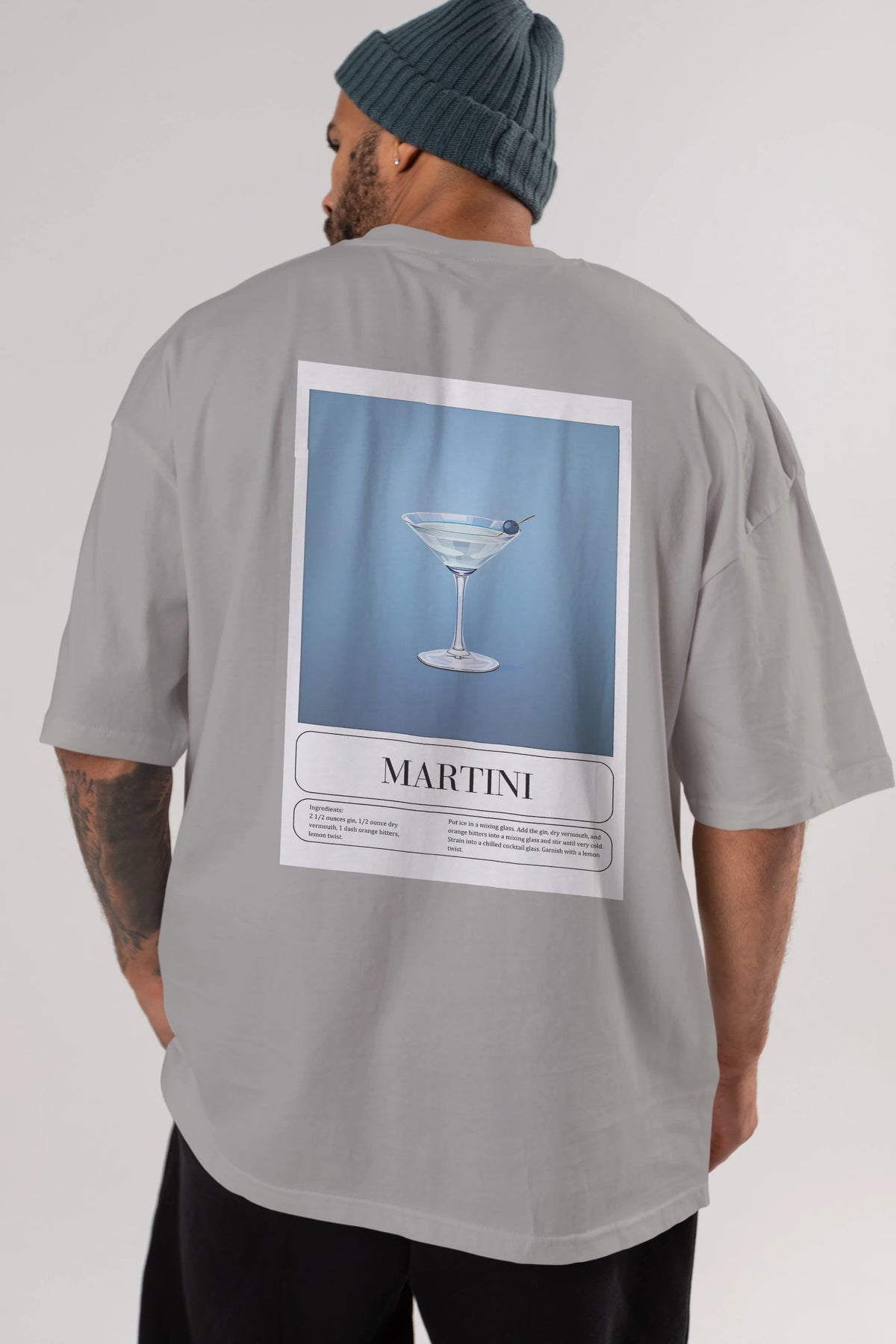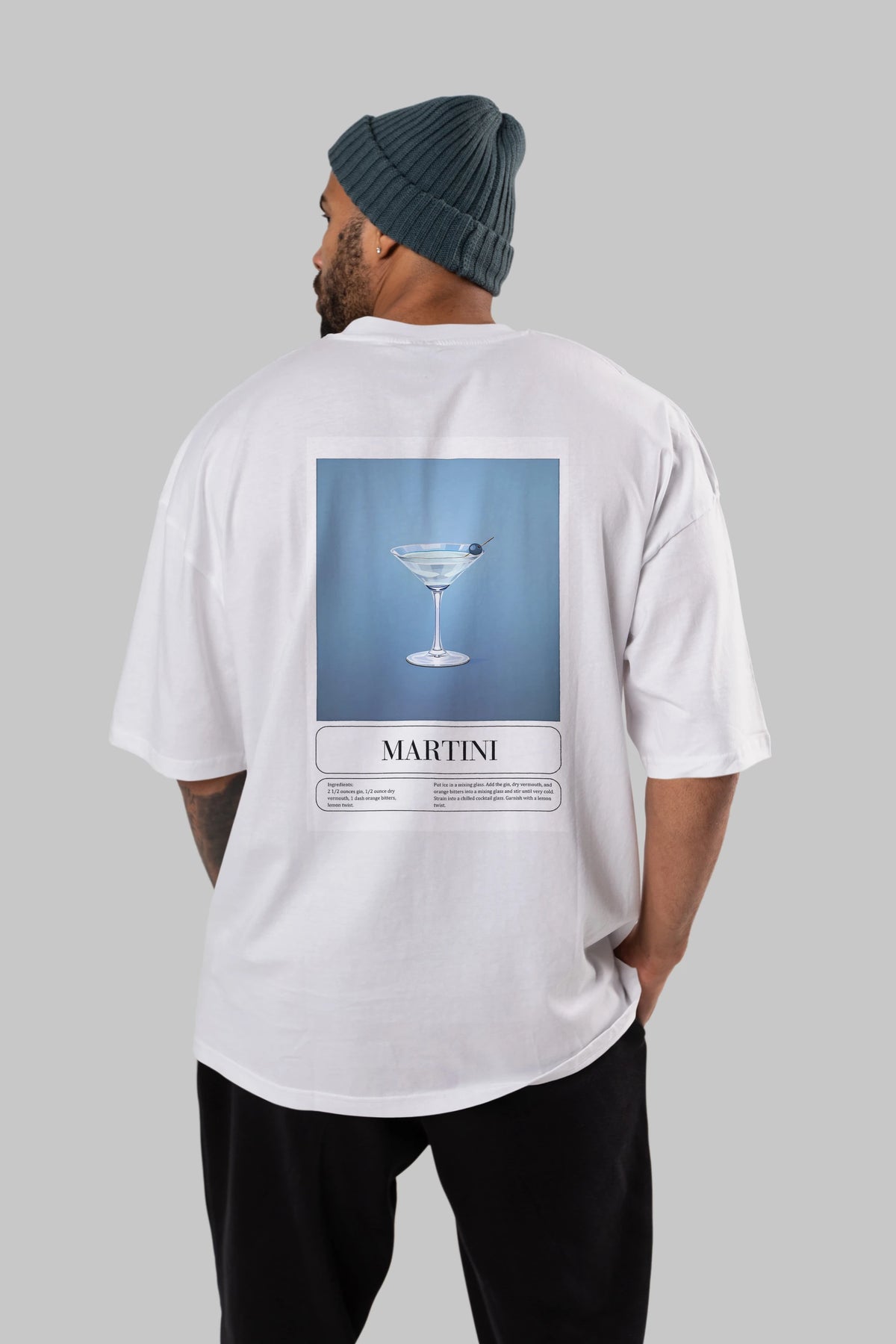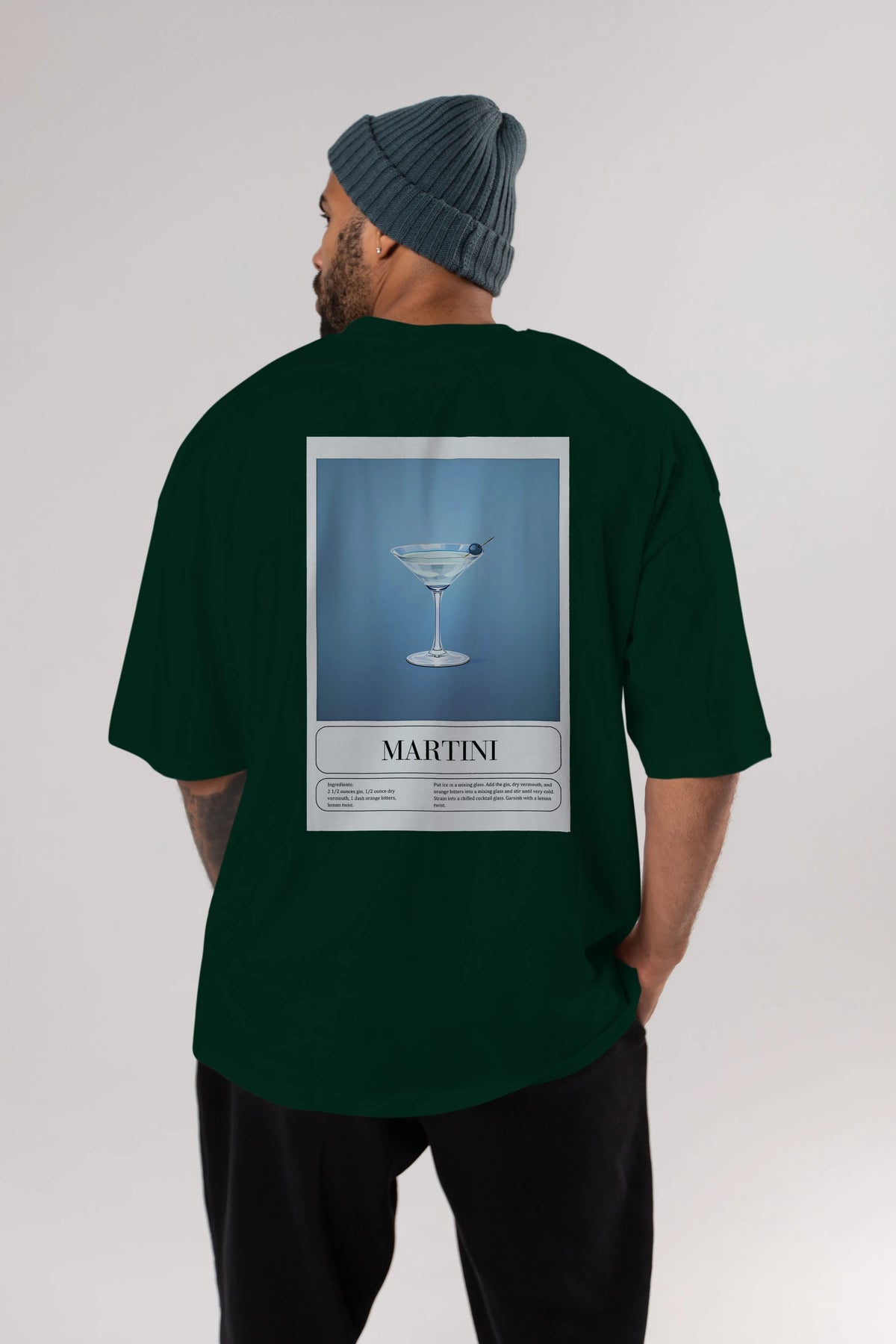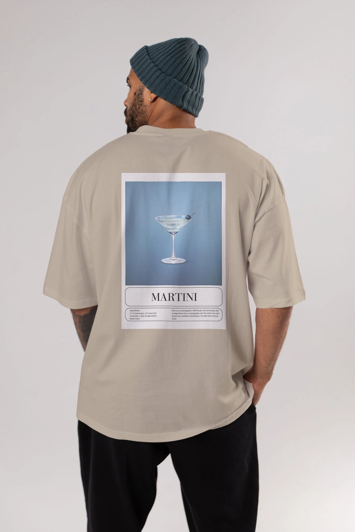 Martini Arka Baskılı Oversize t-shirt Erkek Kadın Unisex %100 Pamuk Bisiklet Yaka tişort