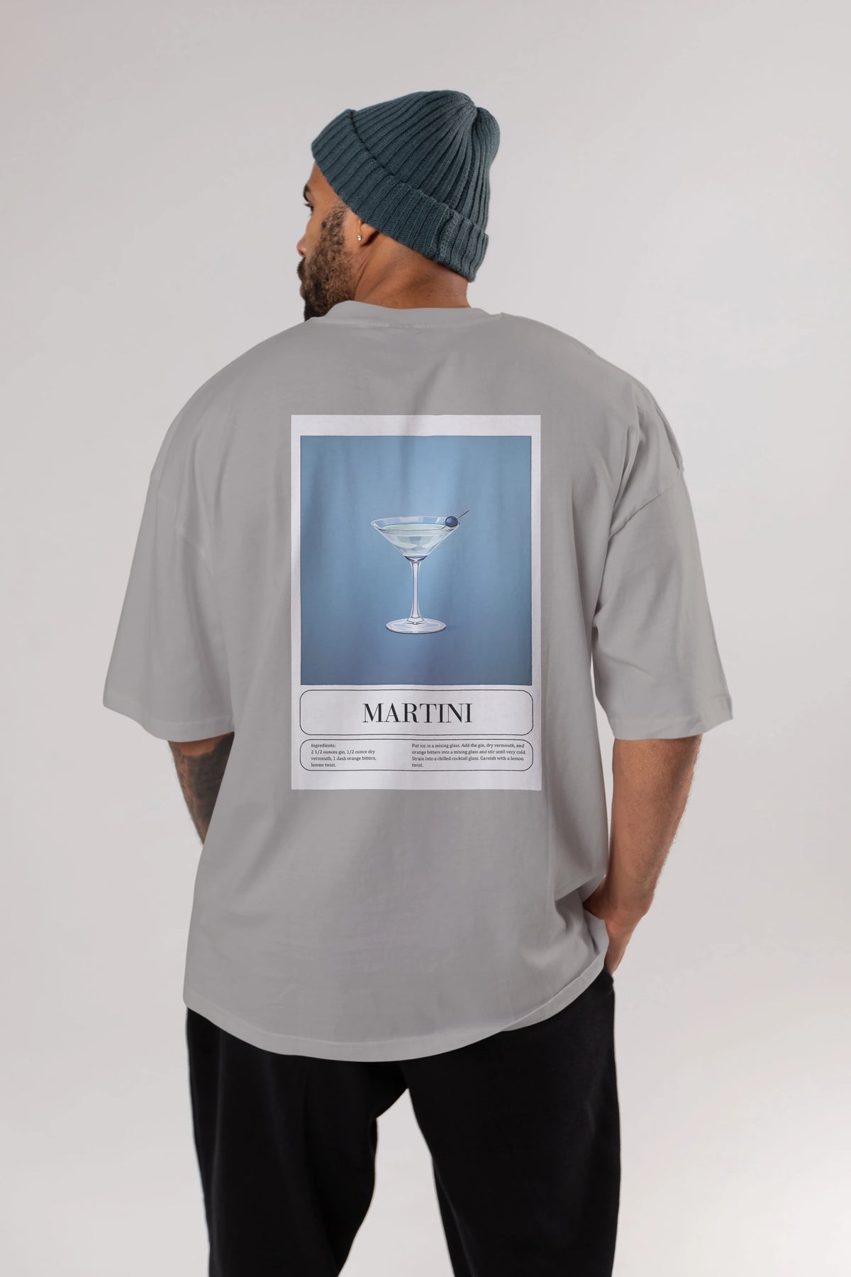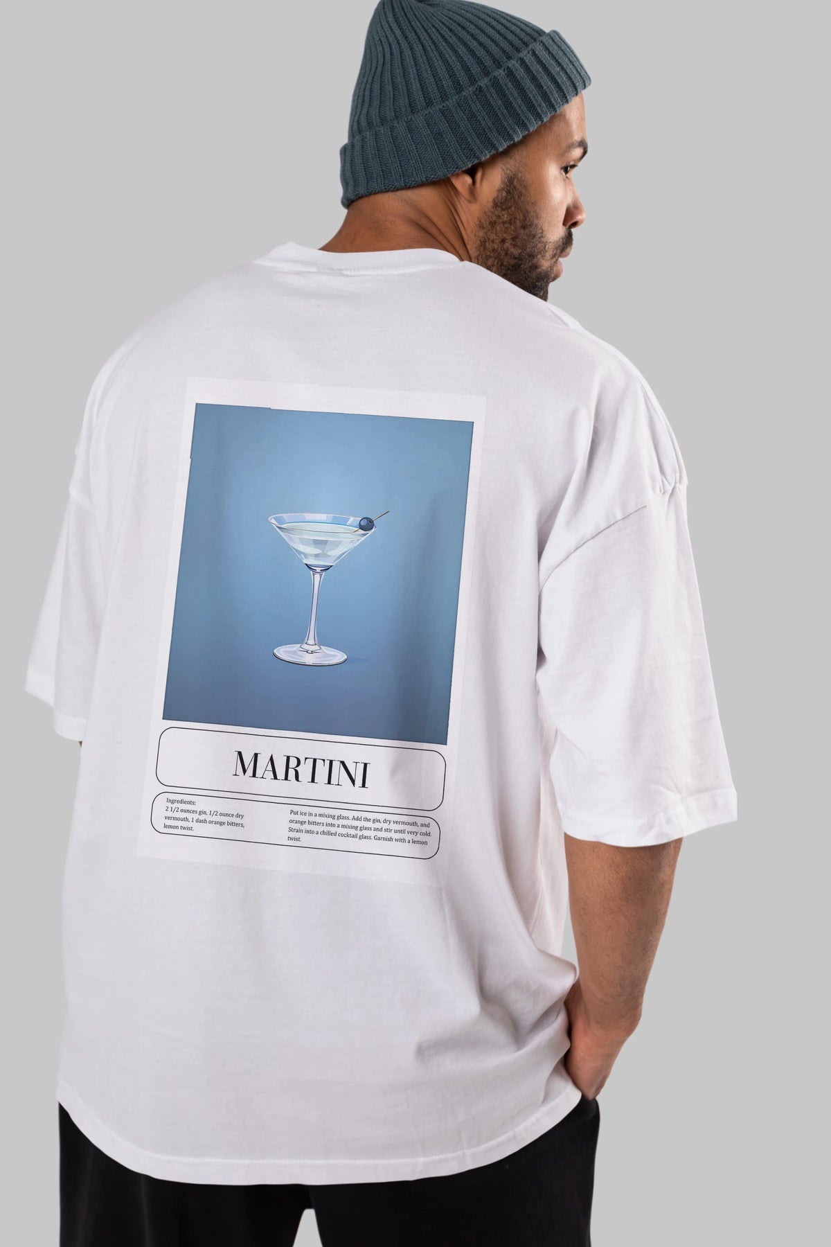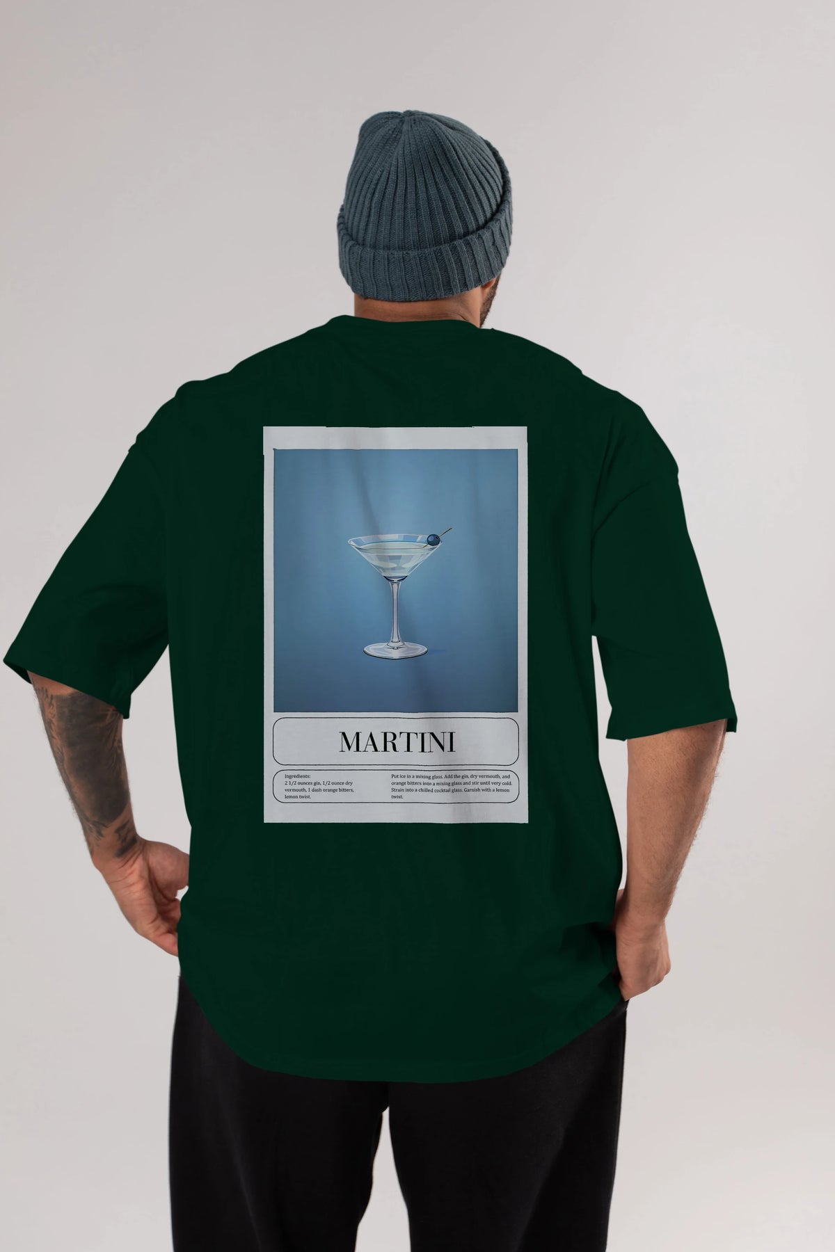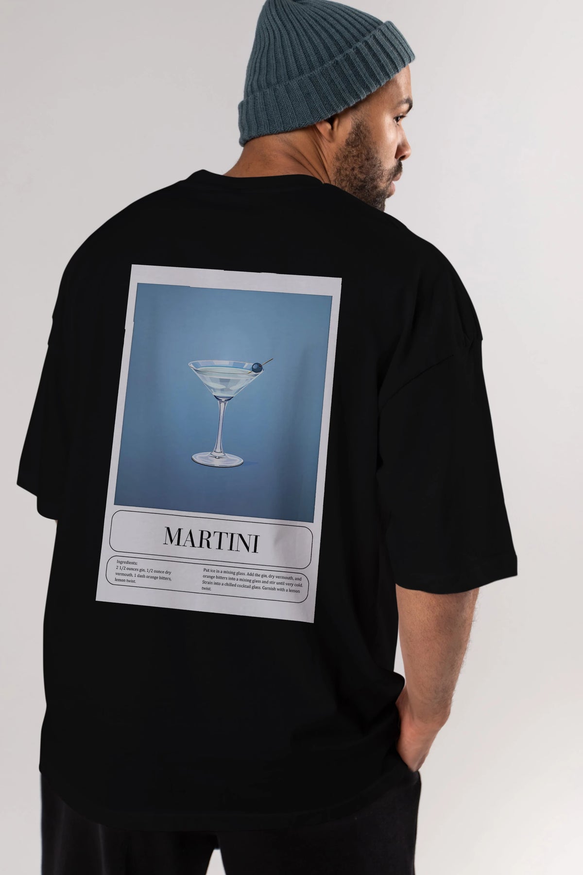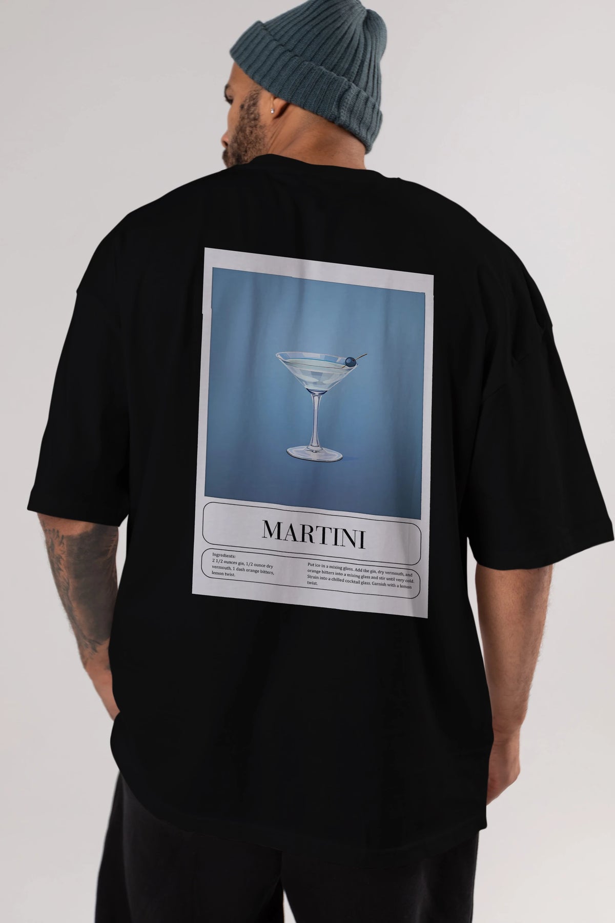 Martini Arka Baskılı Oversize t-shirt Erkek Kadın Unisex %100 Pamuk Bisiklet Yaka tişort