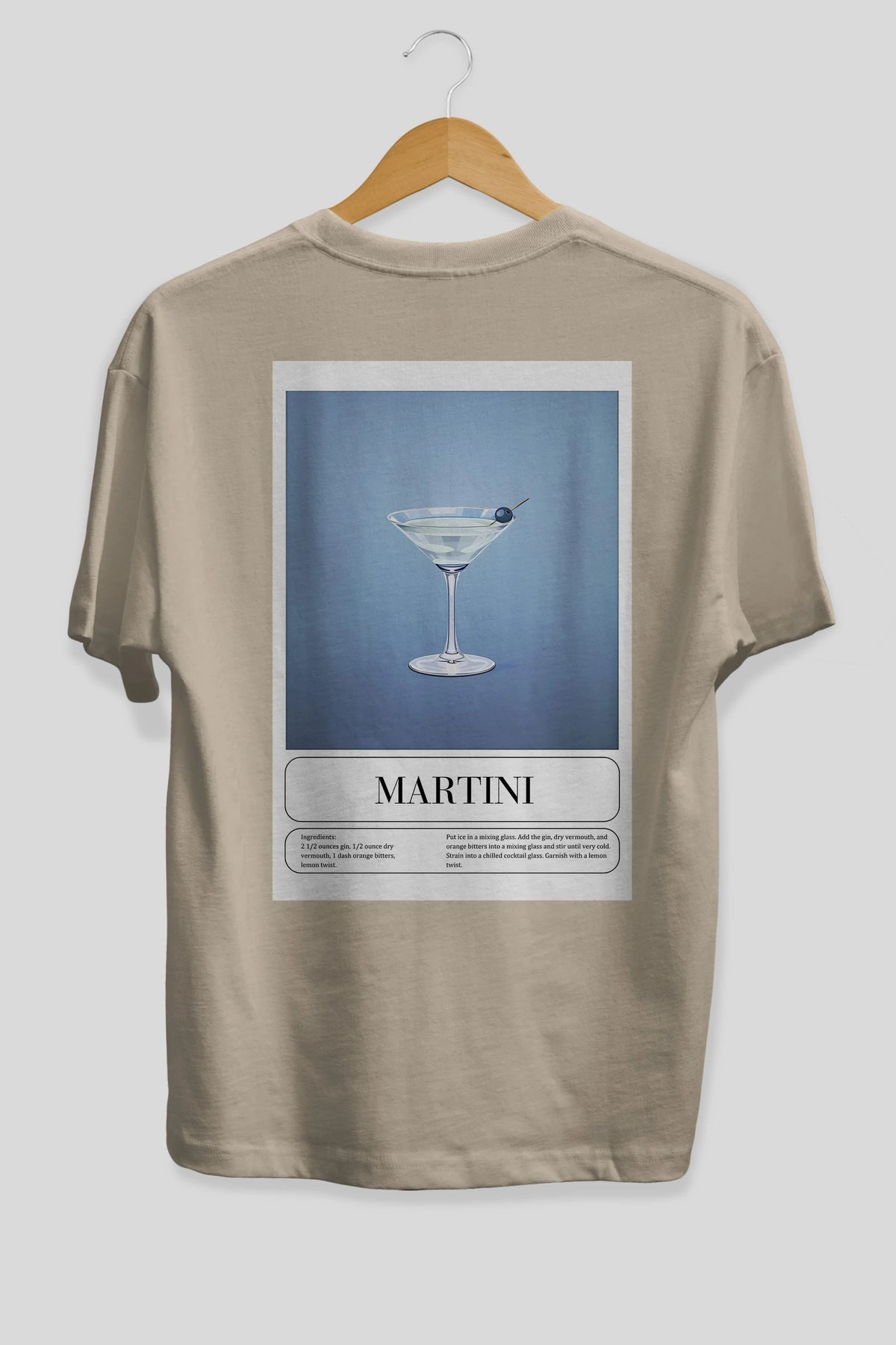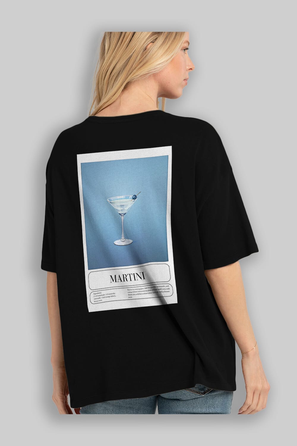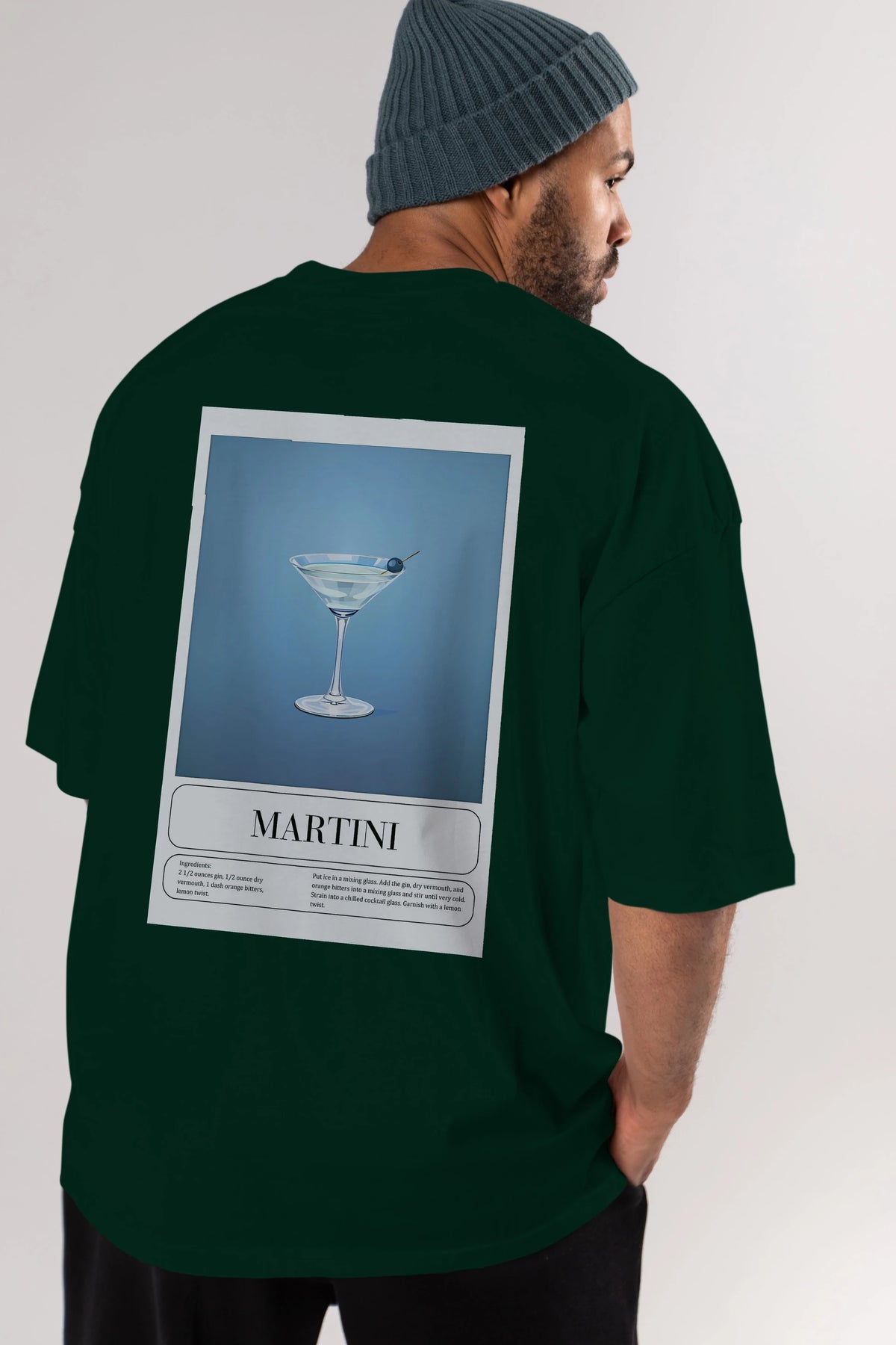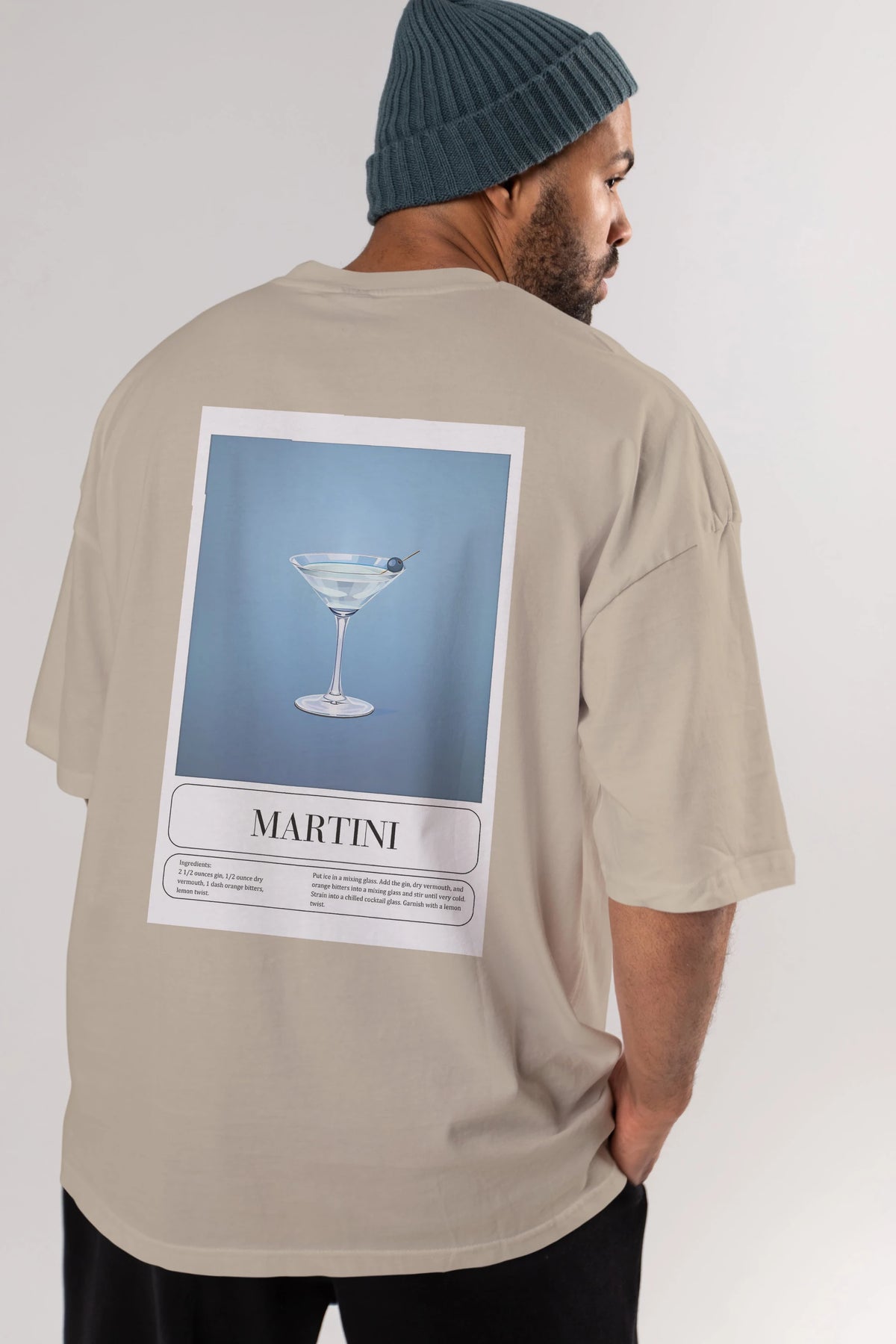 Martini Arka Baskılı Oversize t-shirt Erkek Kadın Unisex %100 Pamuk Bisiklet Yaka tişort