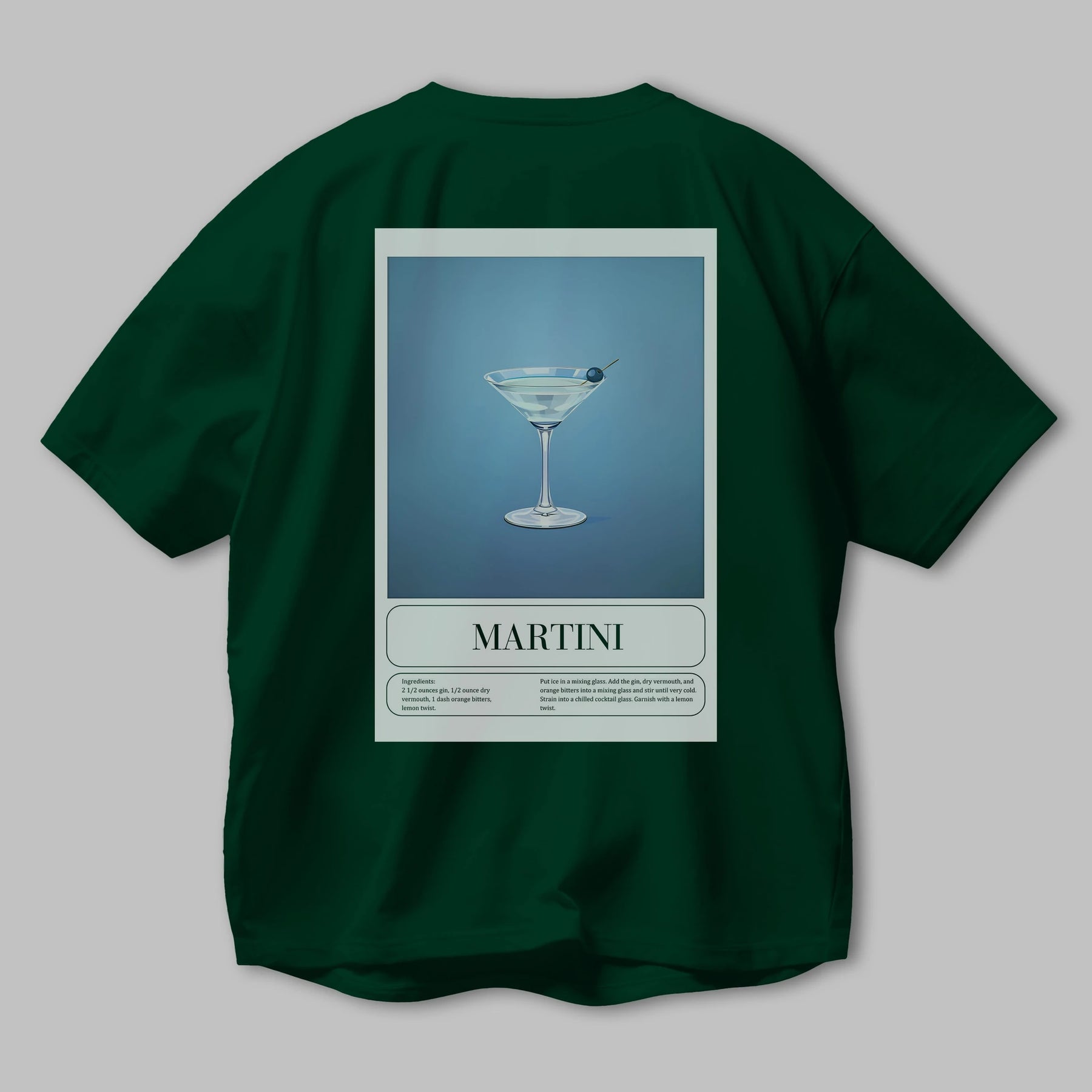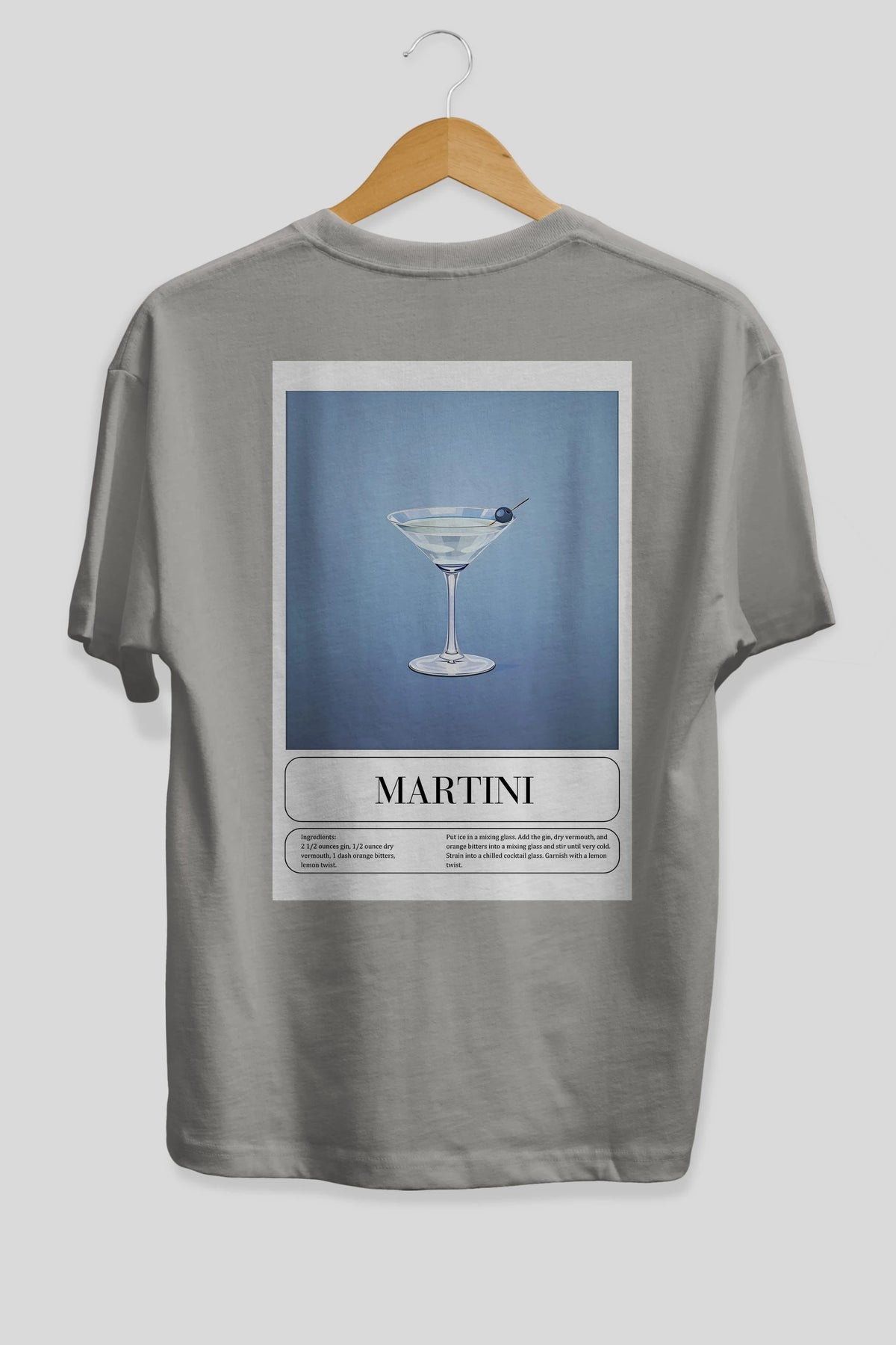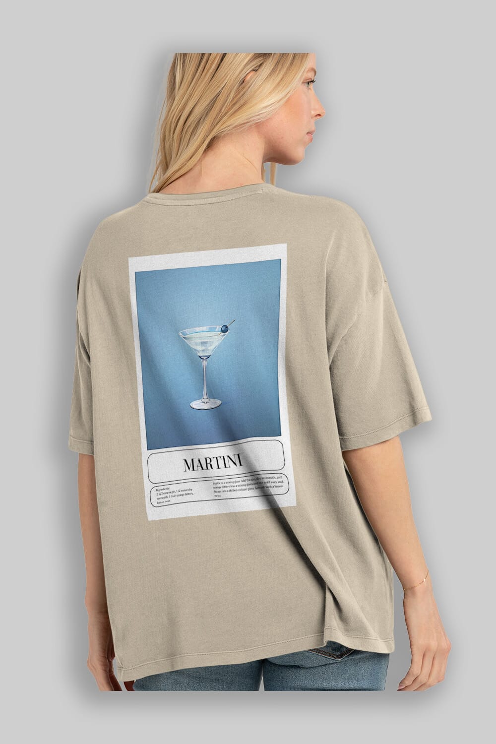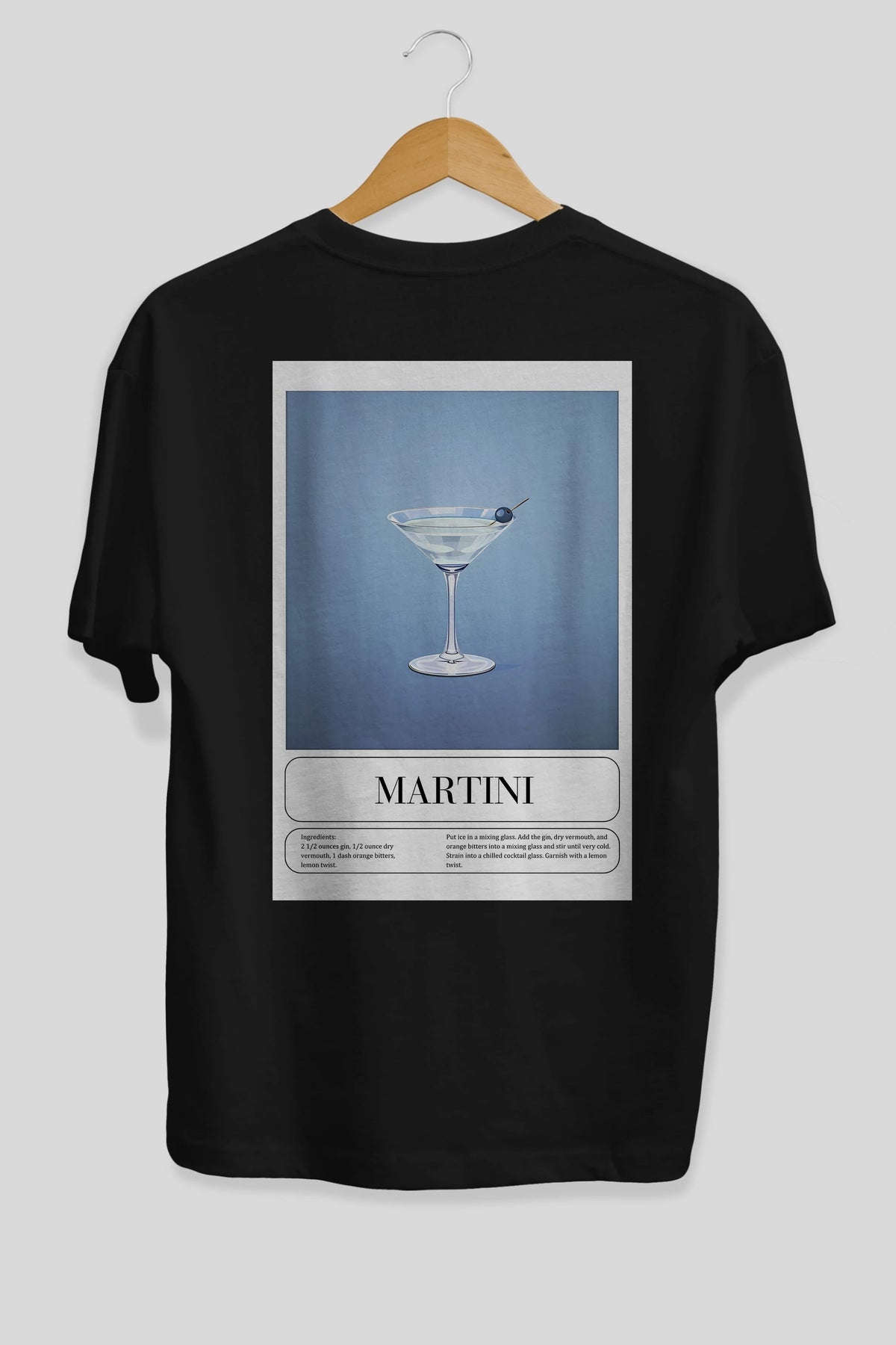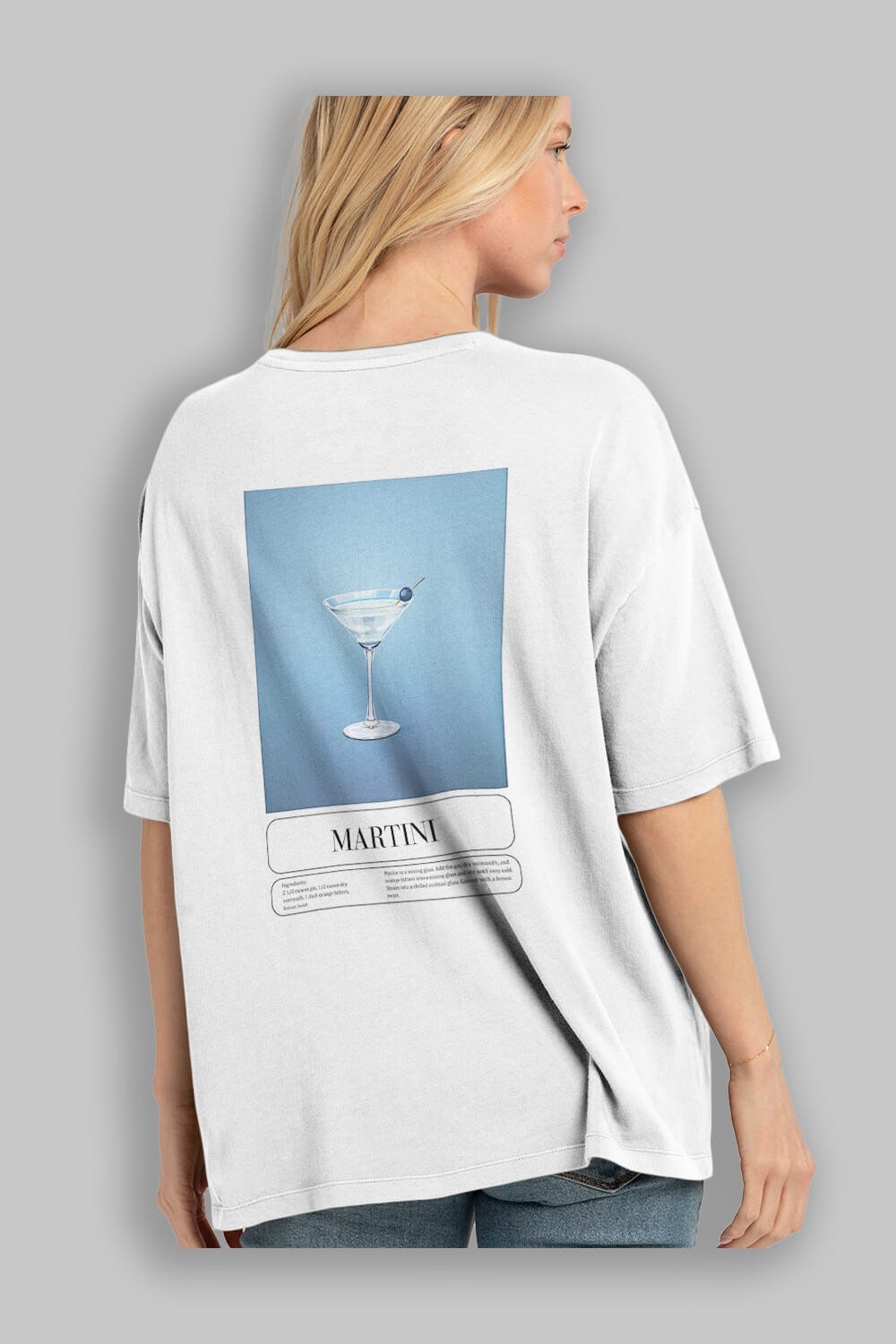 Martini Arka Baskılı Oversize t-shirt Erkek Kadın Unisex %100 Pamuk Bisiklet Yaka tişort