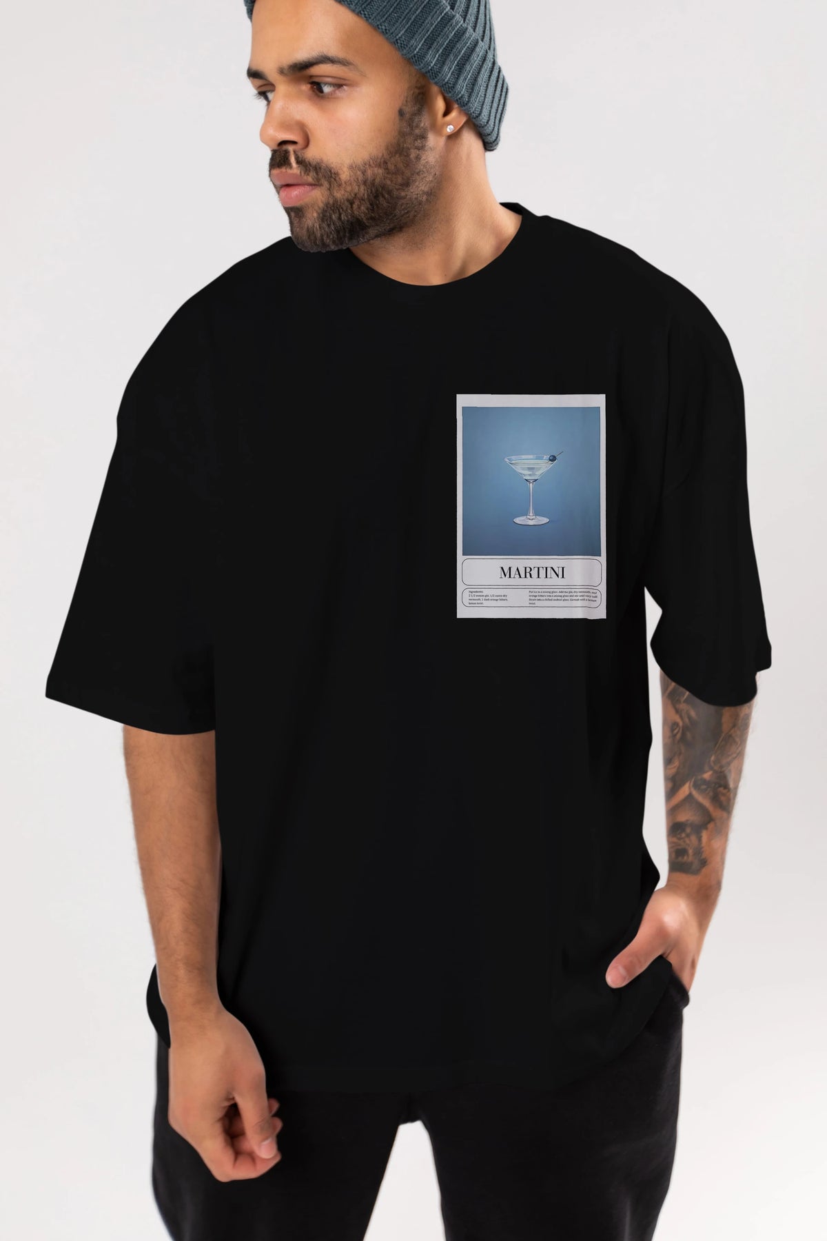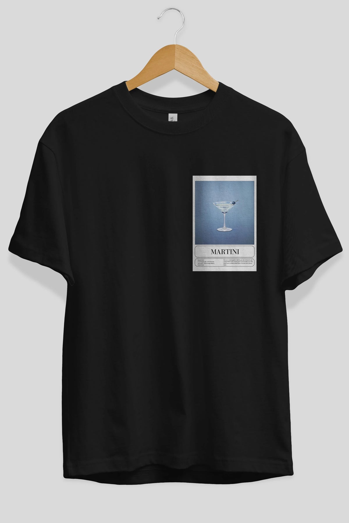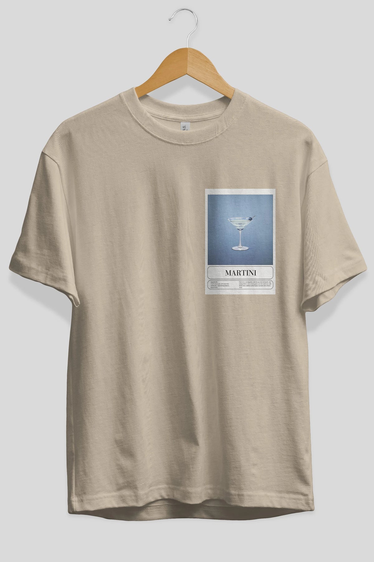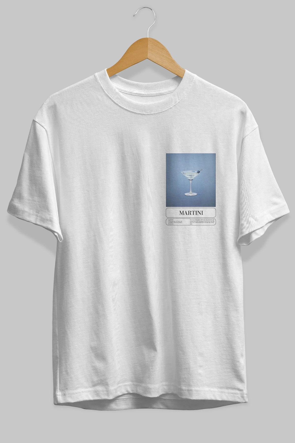 Martini Ön Sol Baskılı Oversize t-shirt Erkek Kadın Unisex %100 Pamuk Bisiklet Yaka tişort
