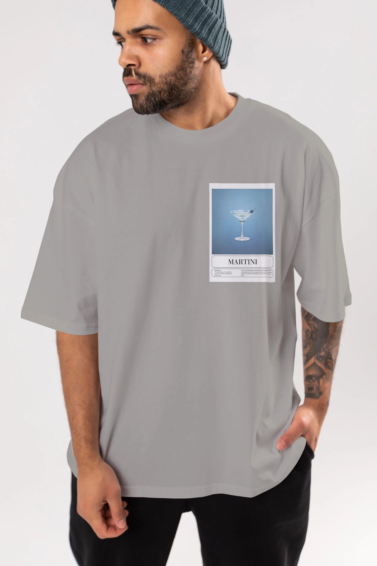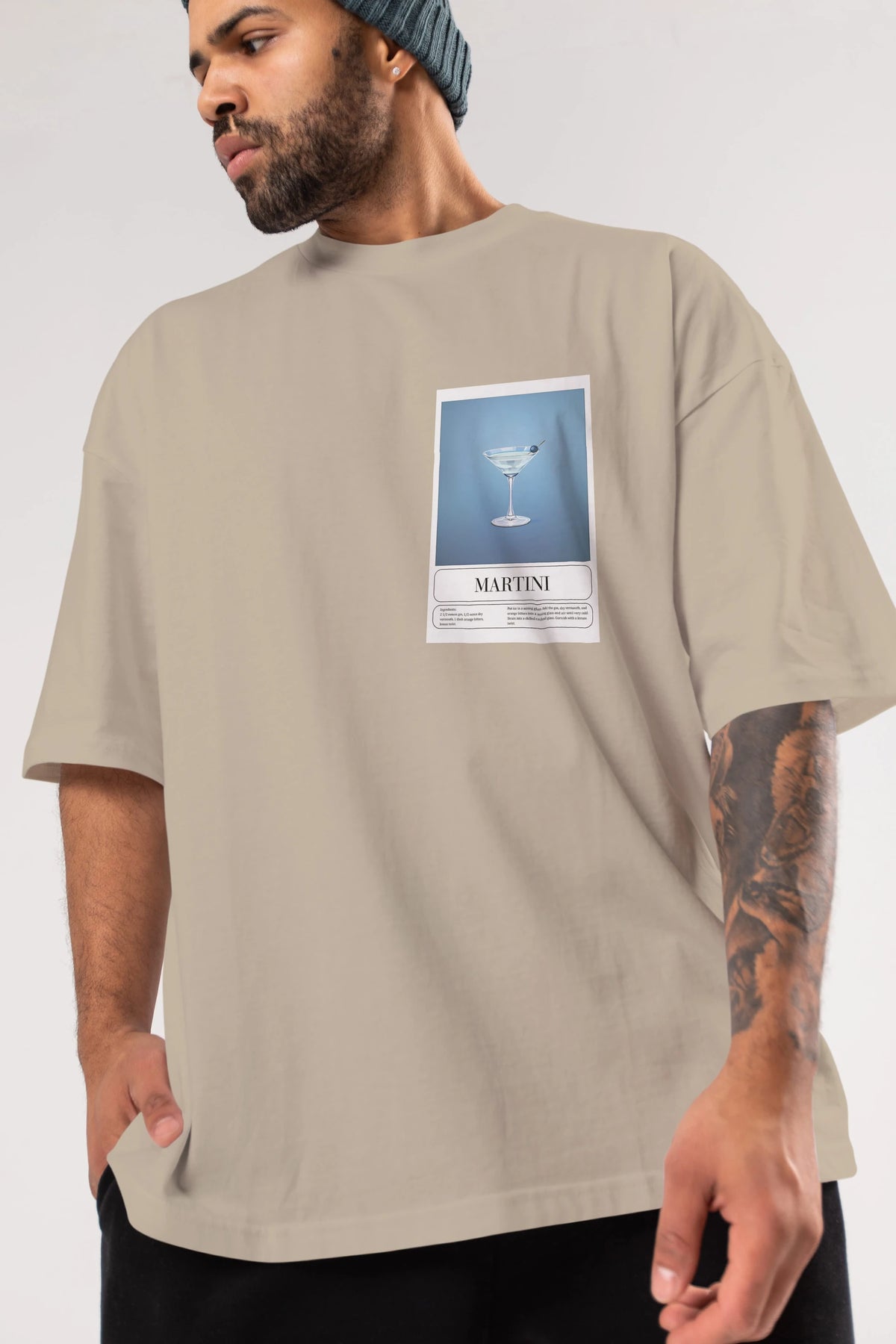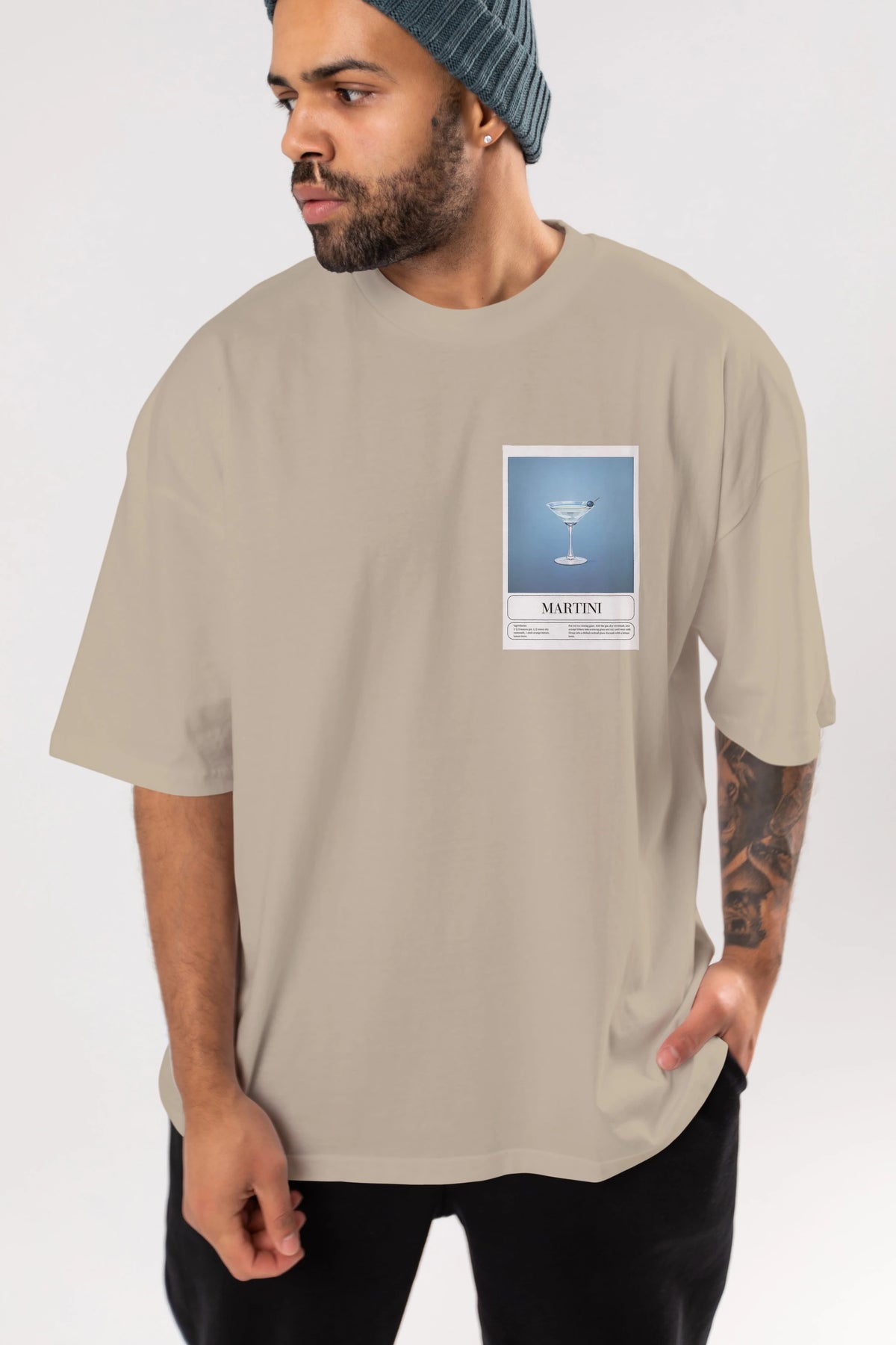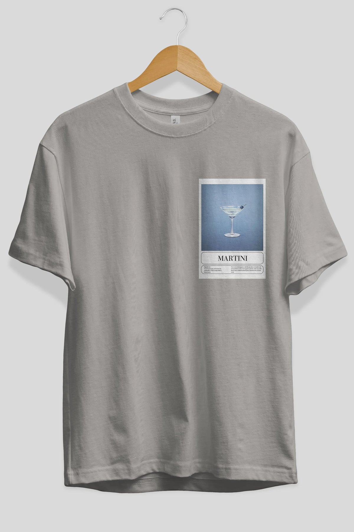 Martini Ön Sol Baskılı Oversize t-shirt Erkek Kadın Unisex %100 Pamuk Bisiklet Yaka tişort