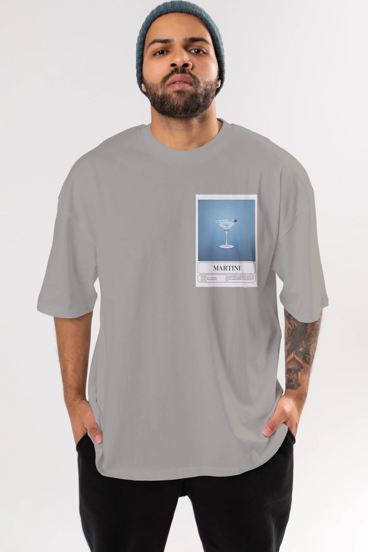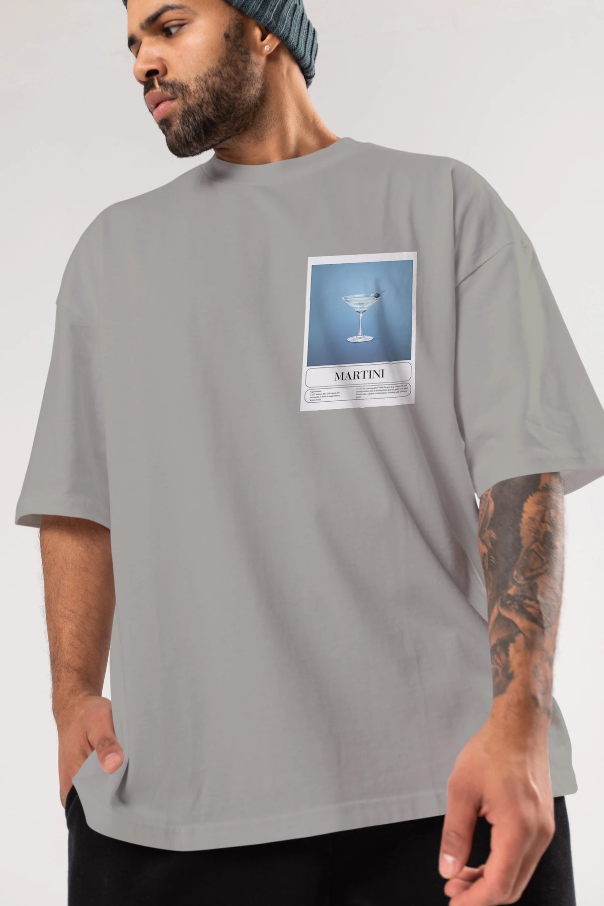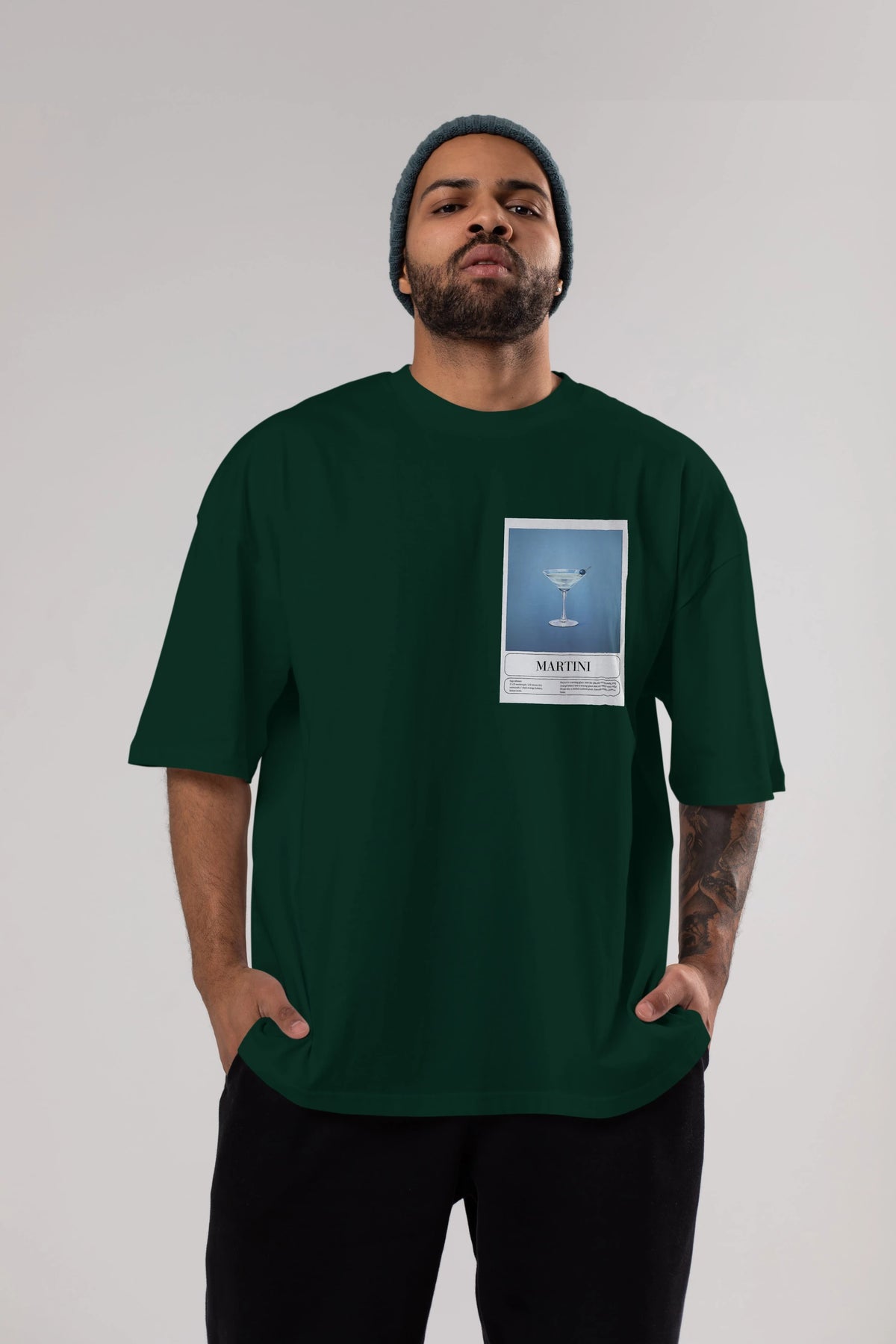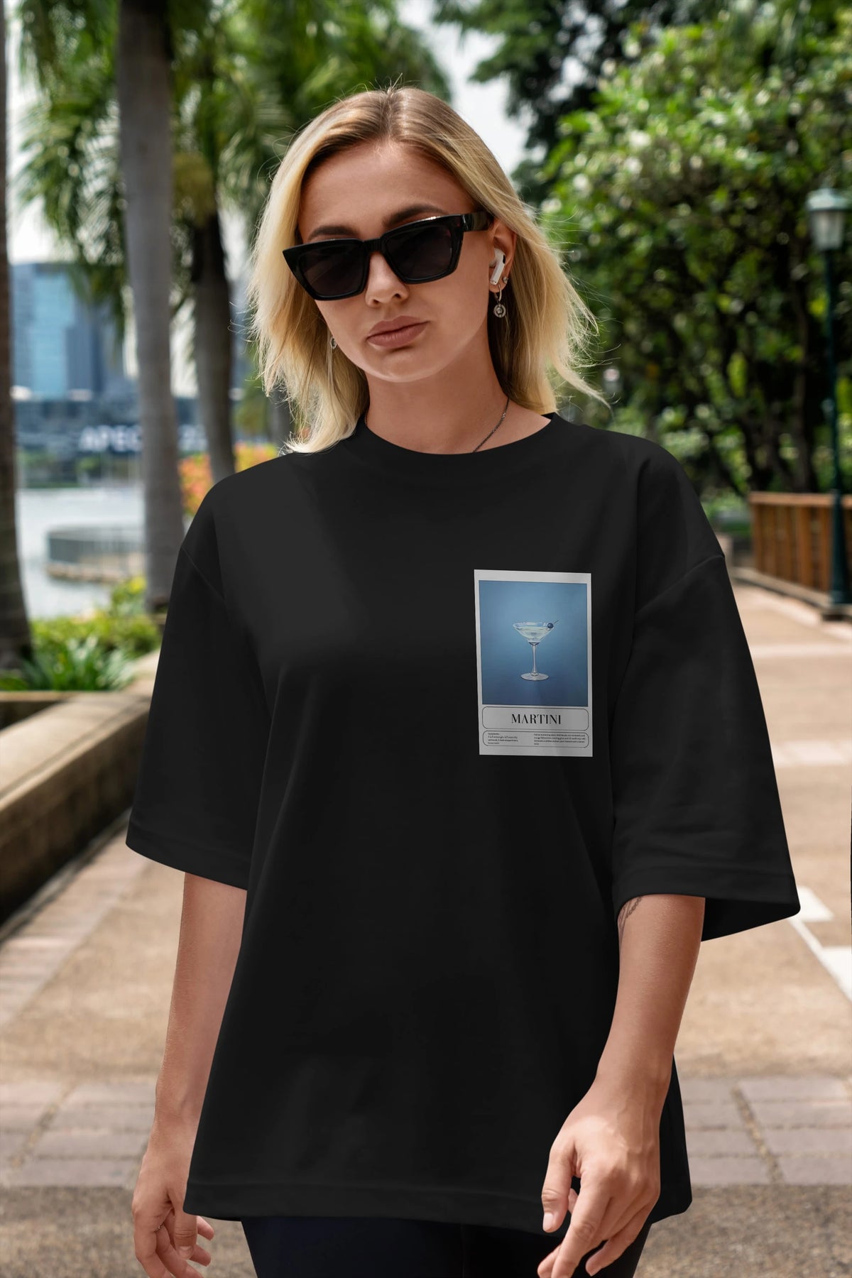 Martini Ön Sol Baskılı Oversize t-shirt Erkek Kadın Unisex %100 Pamuk Bisiklet Yaka tişort