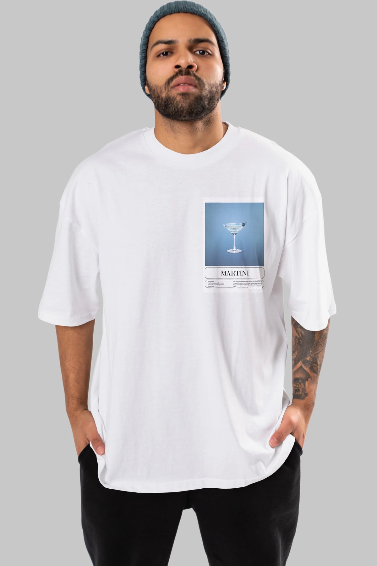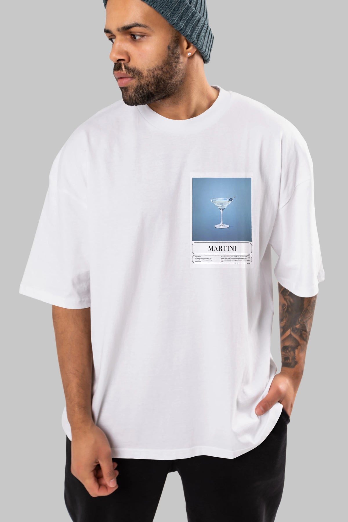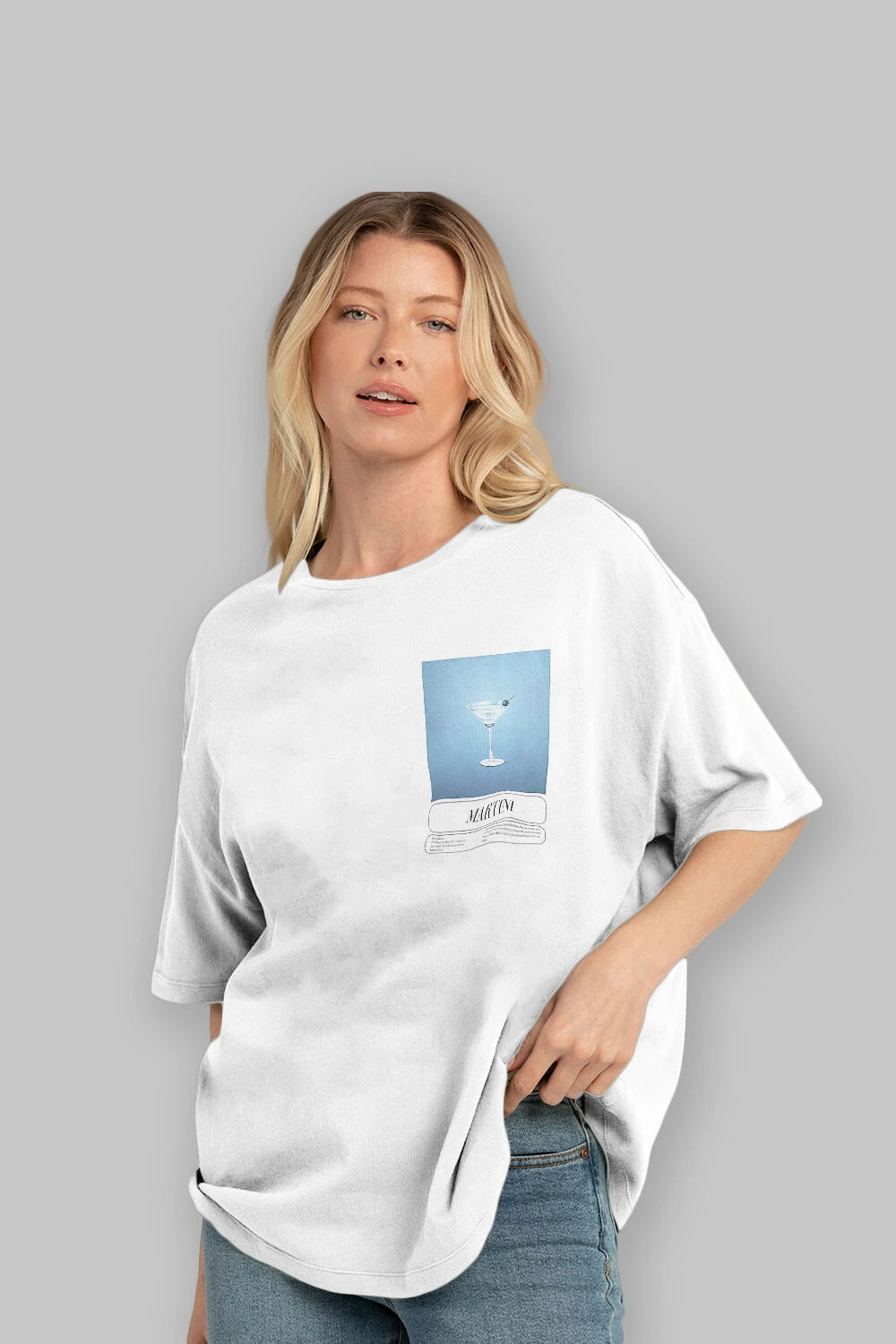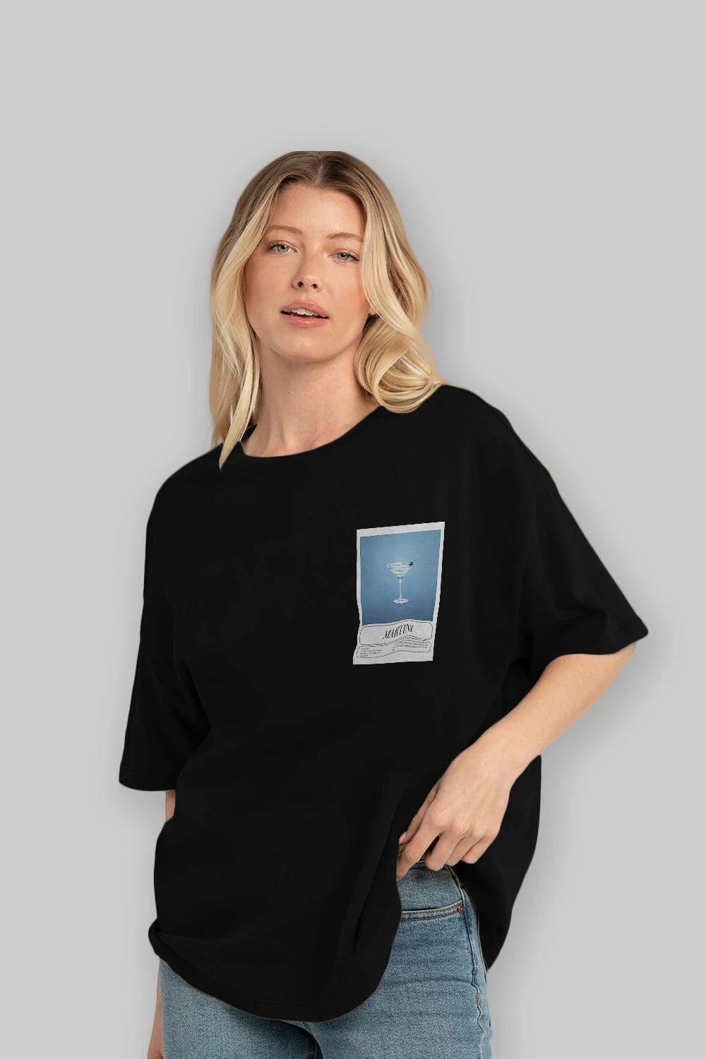 Martini Ön Sol Baskılı Oversize t-shirt Erkek Kadın Unisex %100 Pamuk Bisiklet Yaka tişort