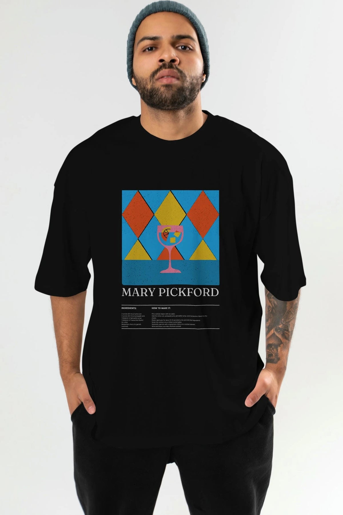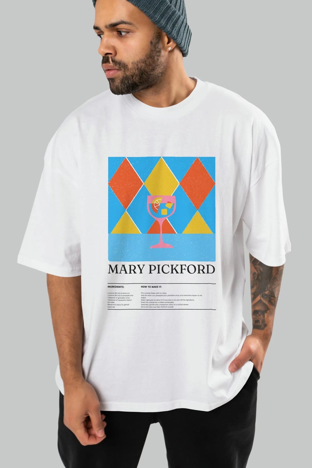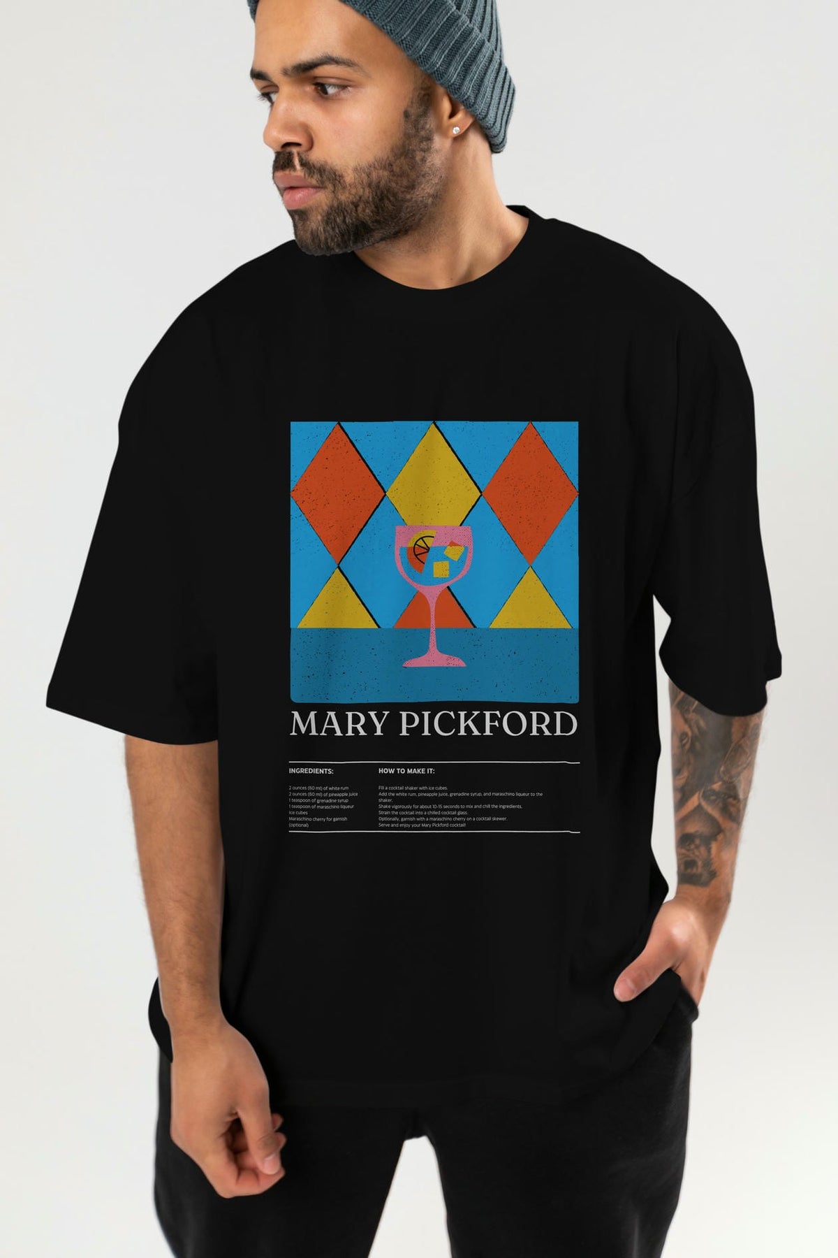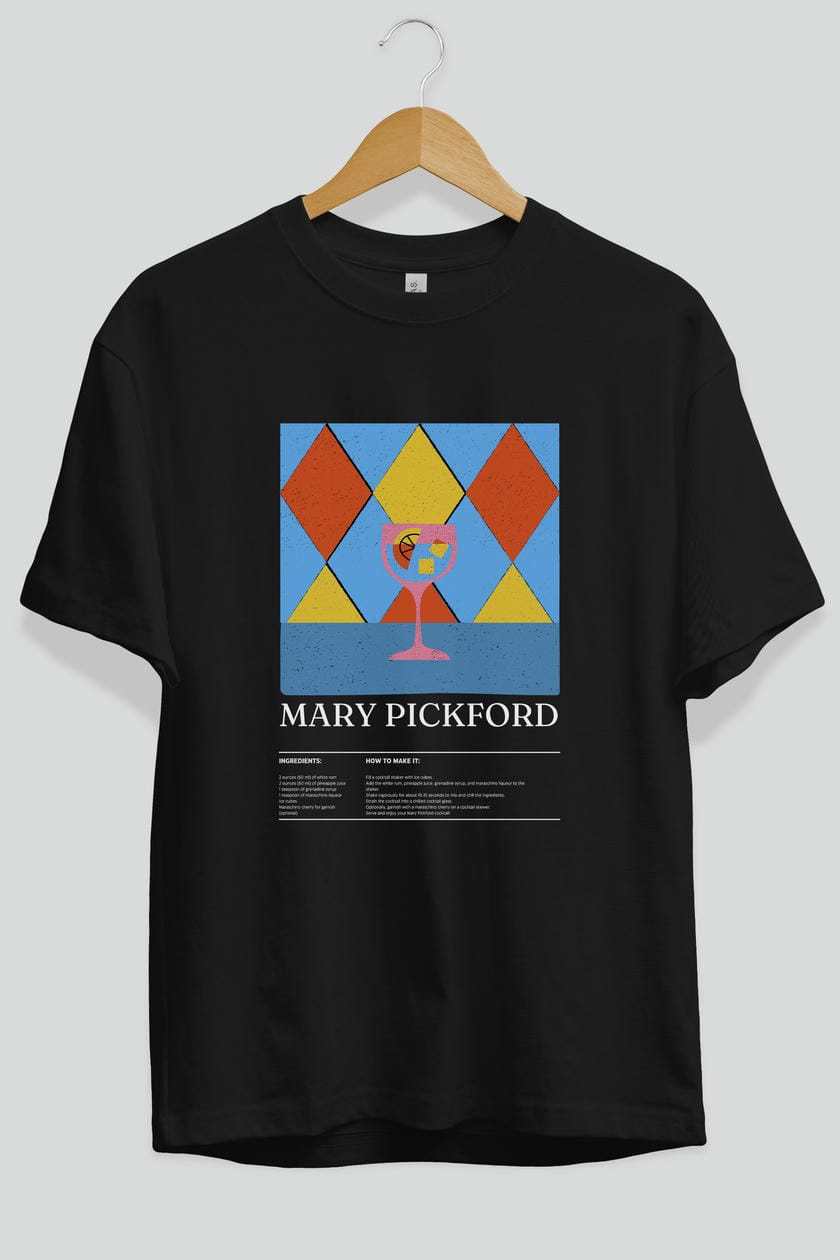Mary Pickford Kokteyl Ön Baskılı Oversize t-shirt Erkek Kadın %100 Pamuk Bisiklet Yaka tişort