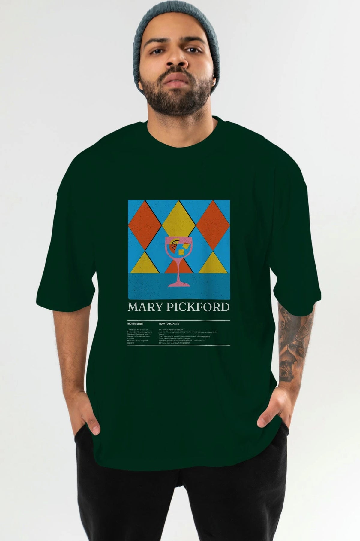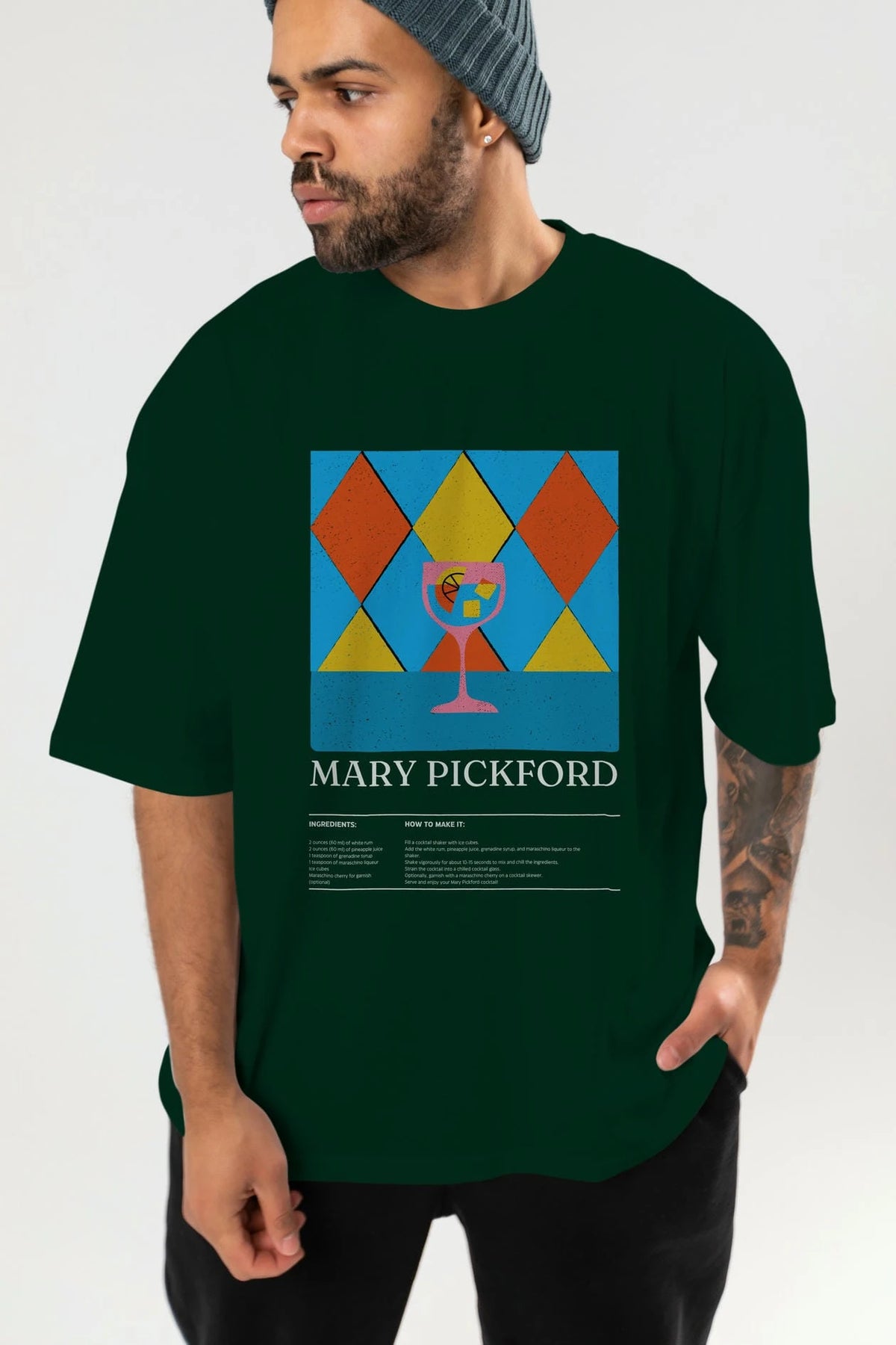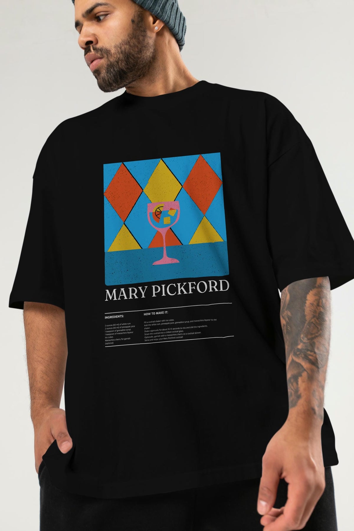 Mary Pickford Kokteyl Ön Baskılı Oversize t-shirt Erkek Kadın %100 Pamuk Bisiklet Yaka tişort