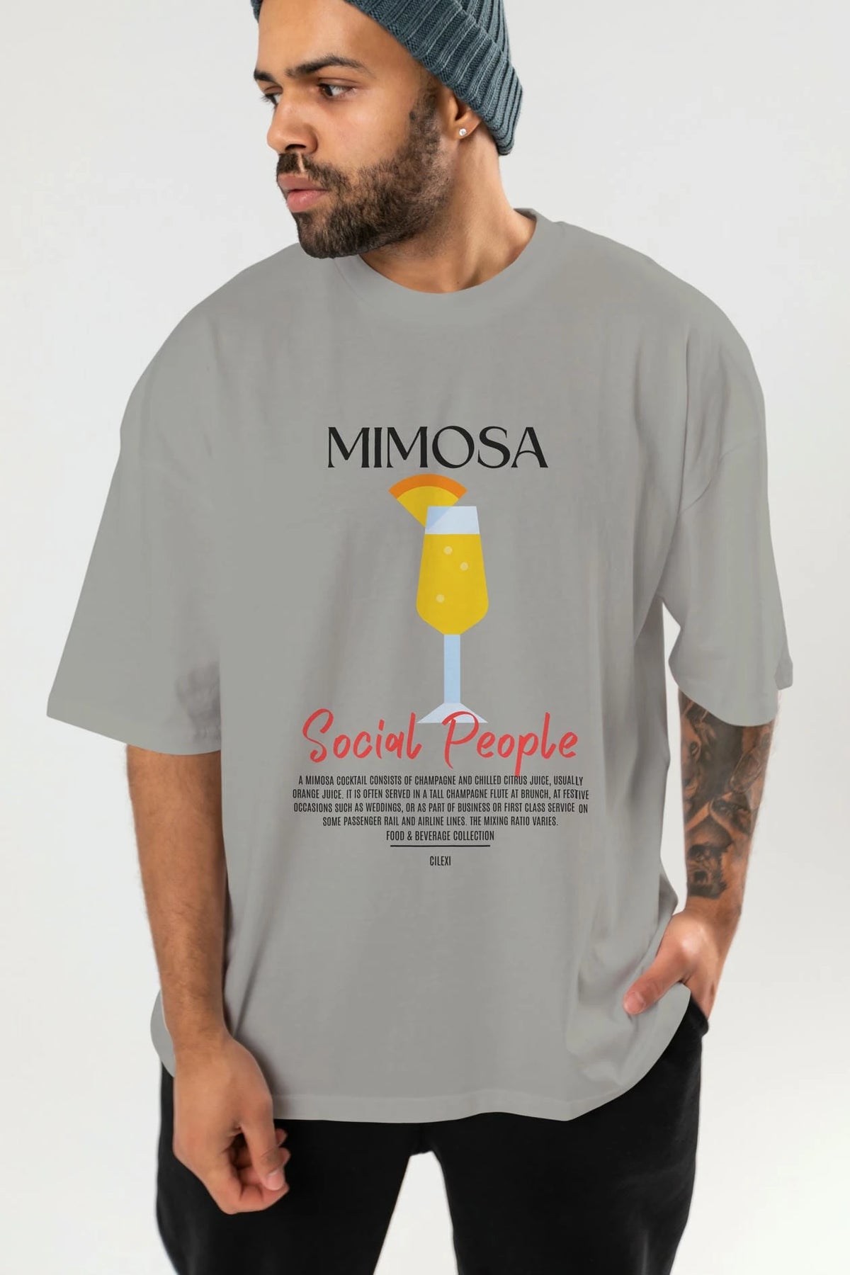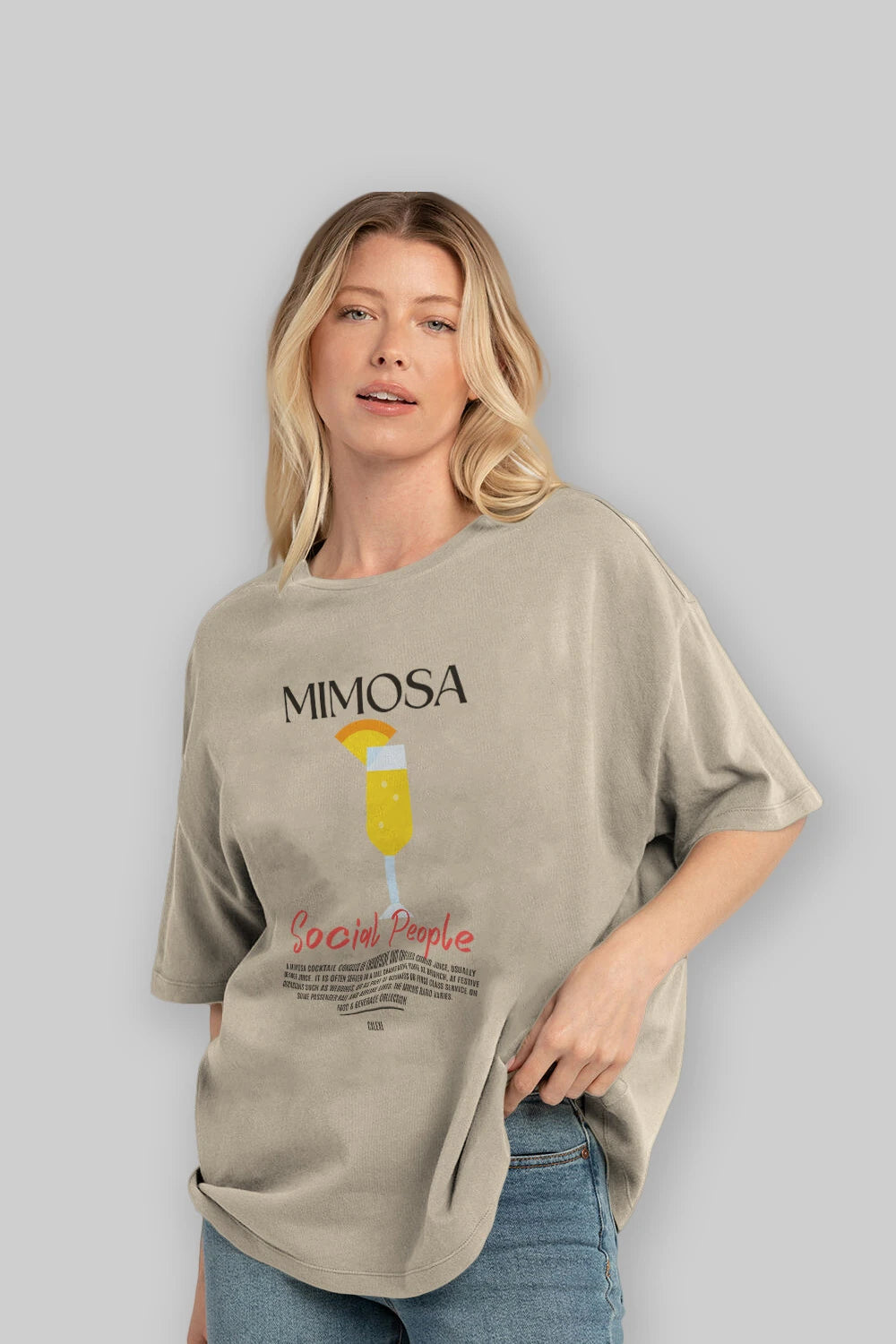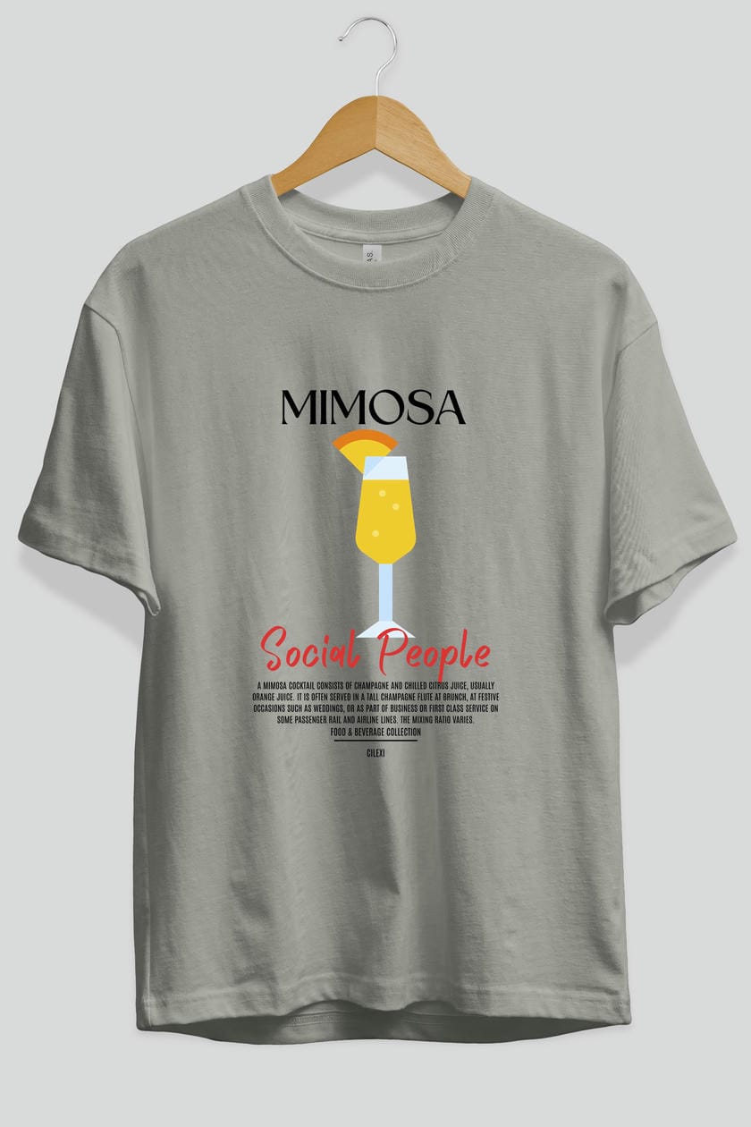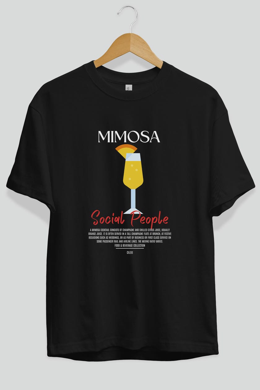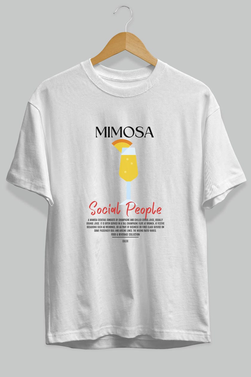 Mimosa Kokteyl Serisi ön Baskılı Oversize t-shirt Erkek Kadın %100 Pamuk Bisiklet Yaka tişort