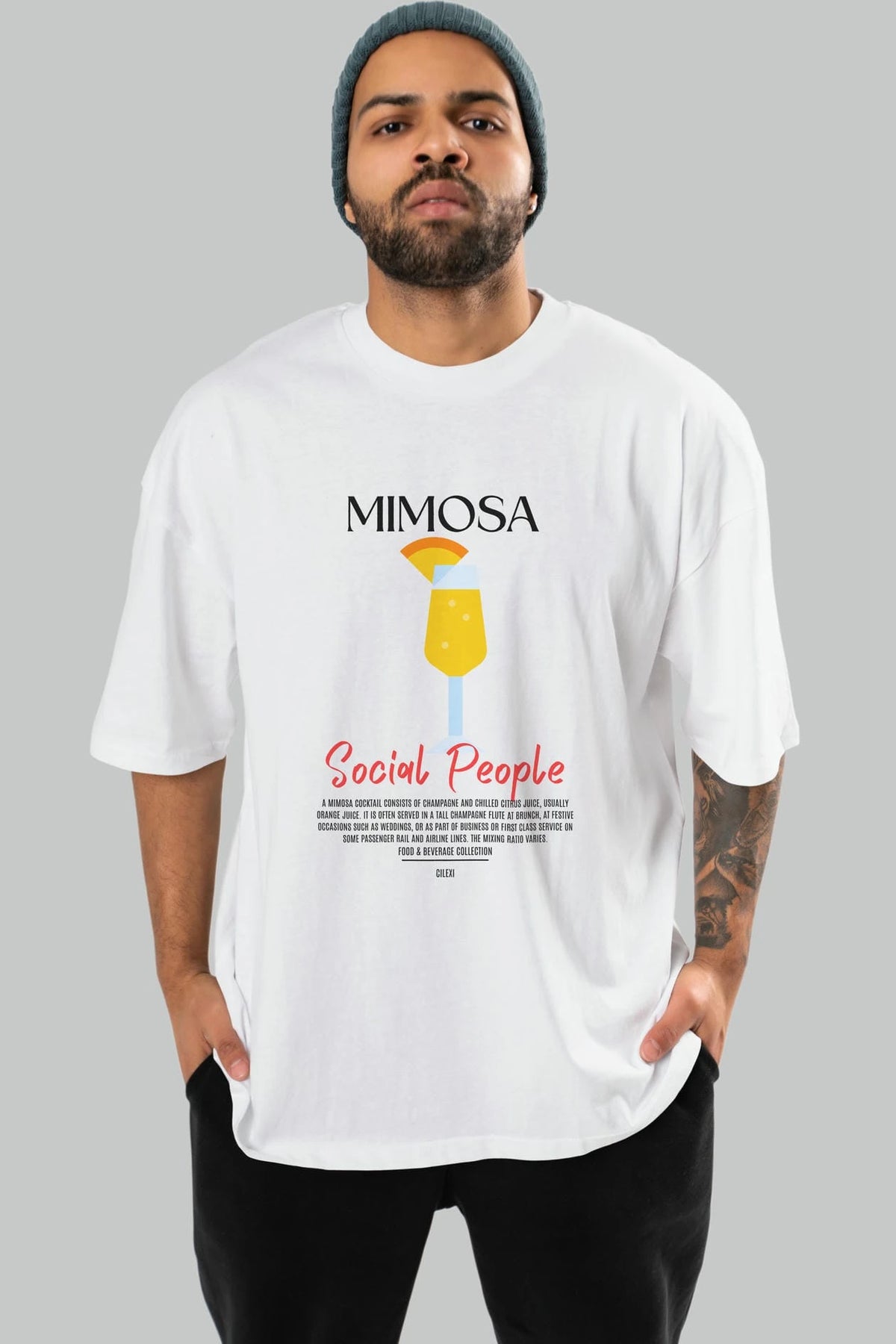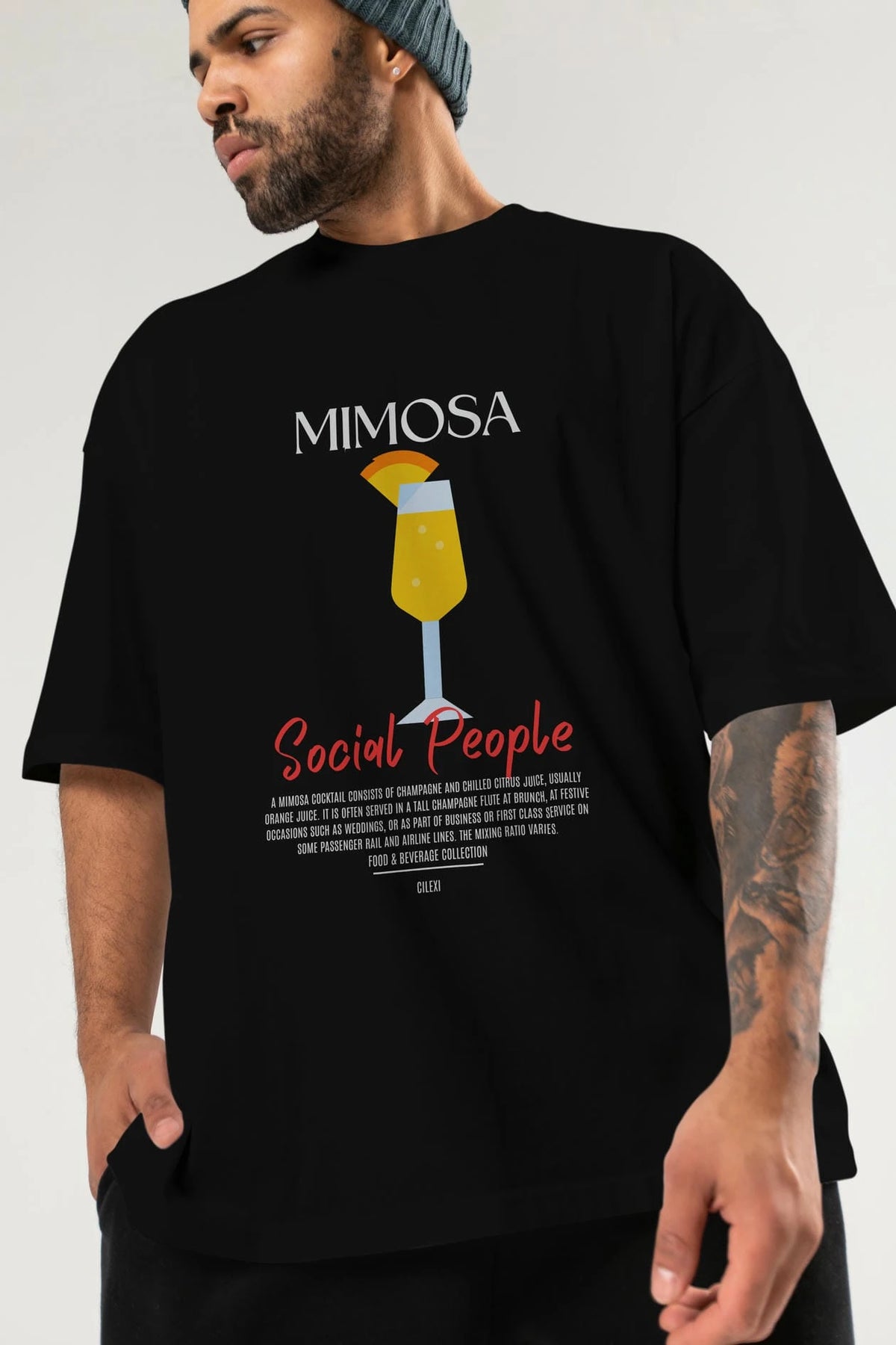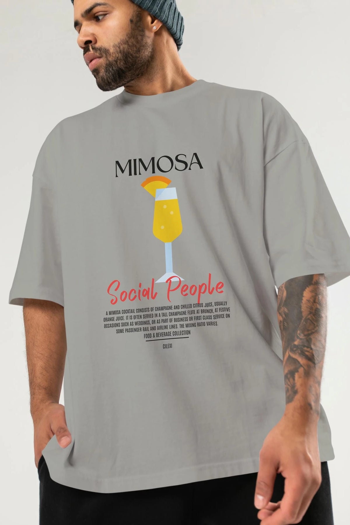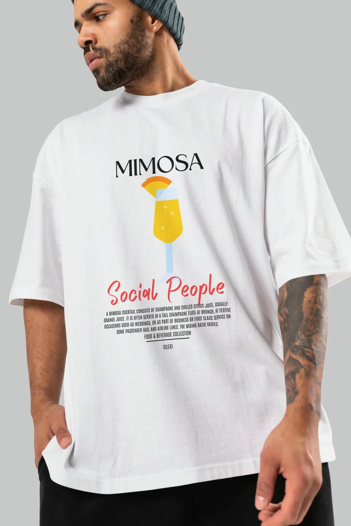 Mimosa Kokteyl Serisi ön Baskılı Oversize t-shirt Erkek Kadın %100 Pamuk Bisiklet Yaka tişort