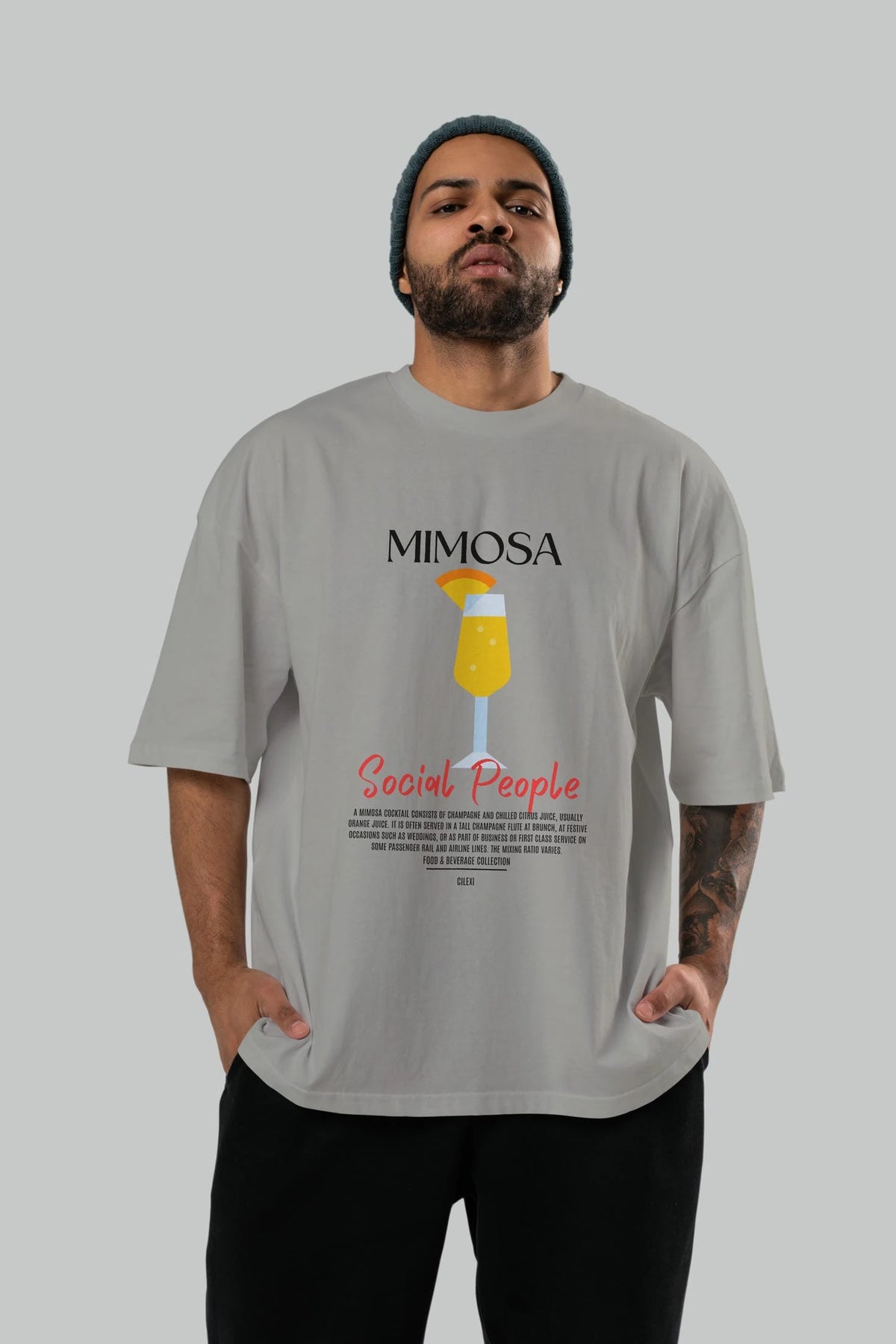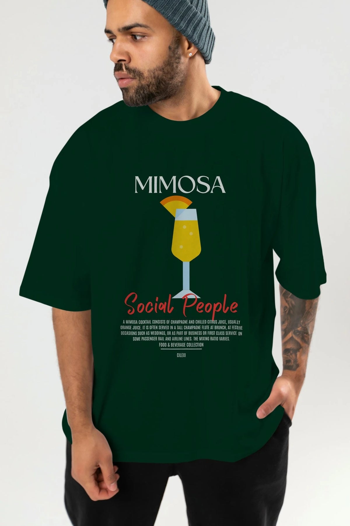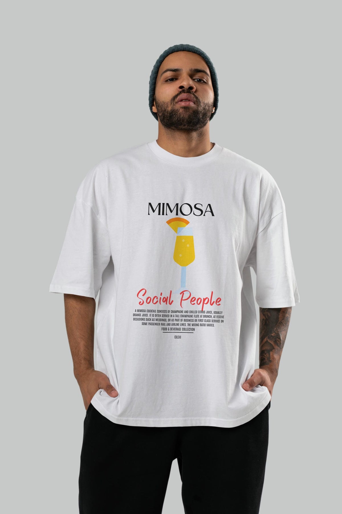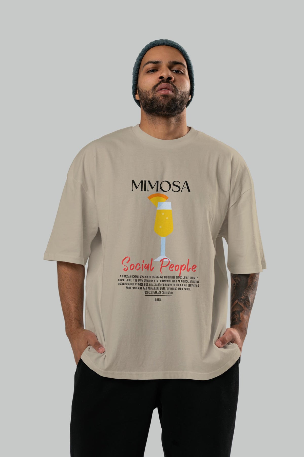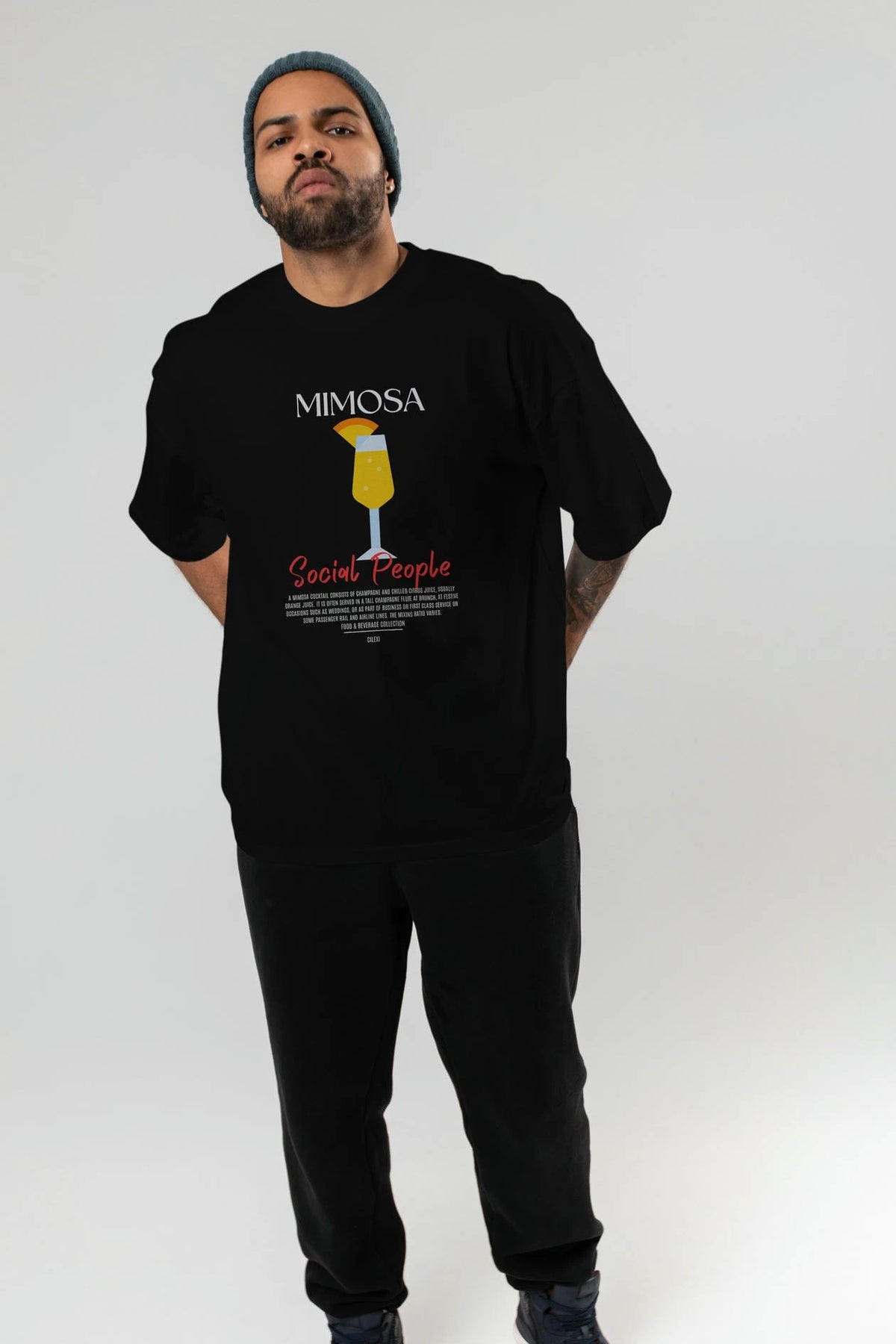 Mimosa Kokteyl Serisi ön Baskılı Oversize t-shirt Erkek Kadın %100 Pamuk Bisiklet Yaka tişort