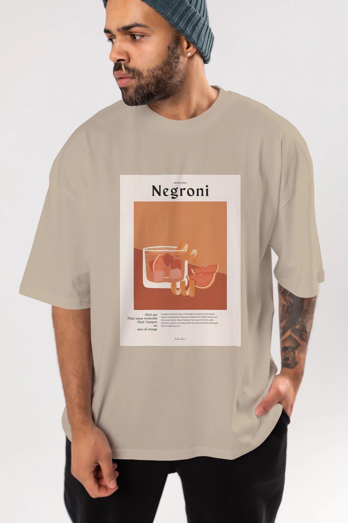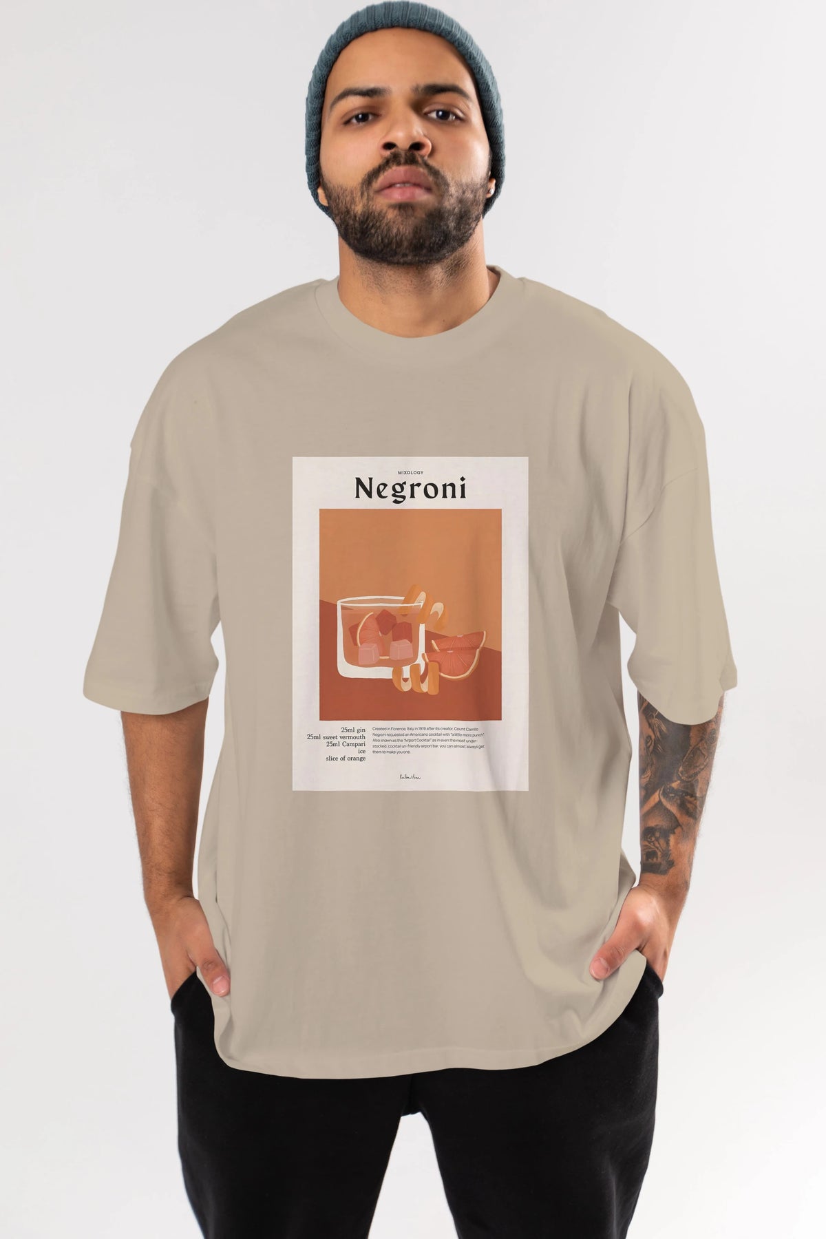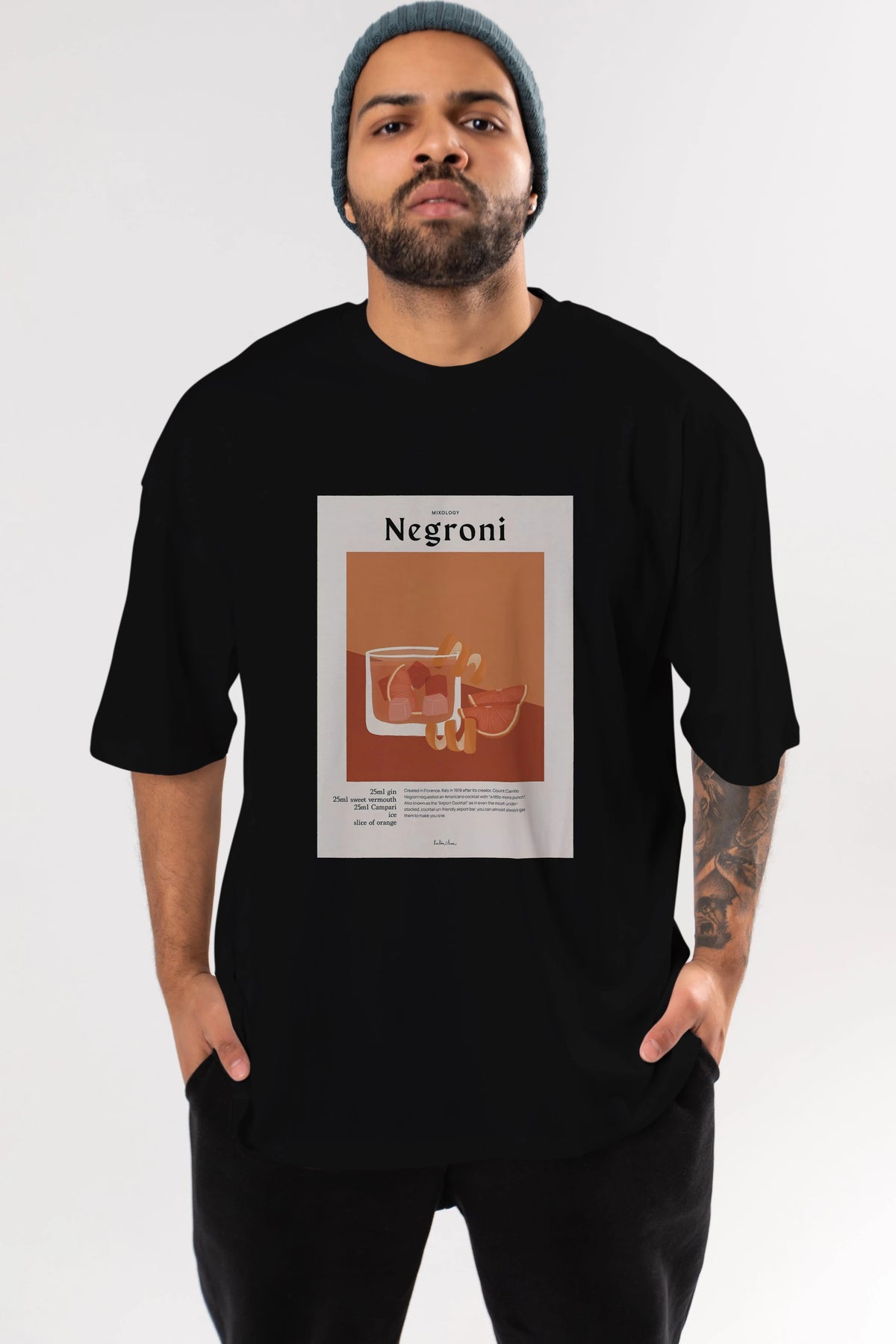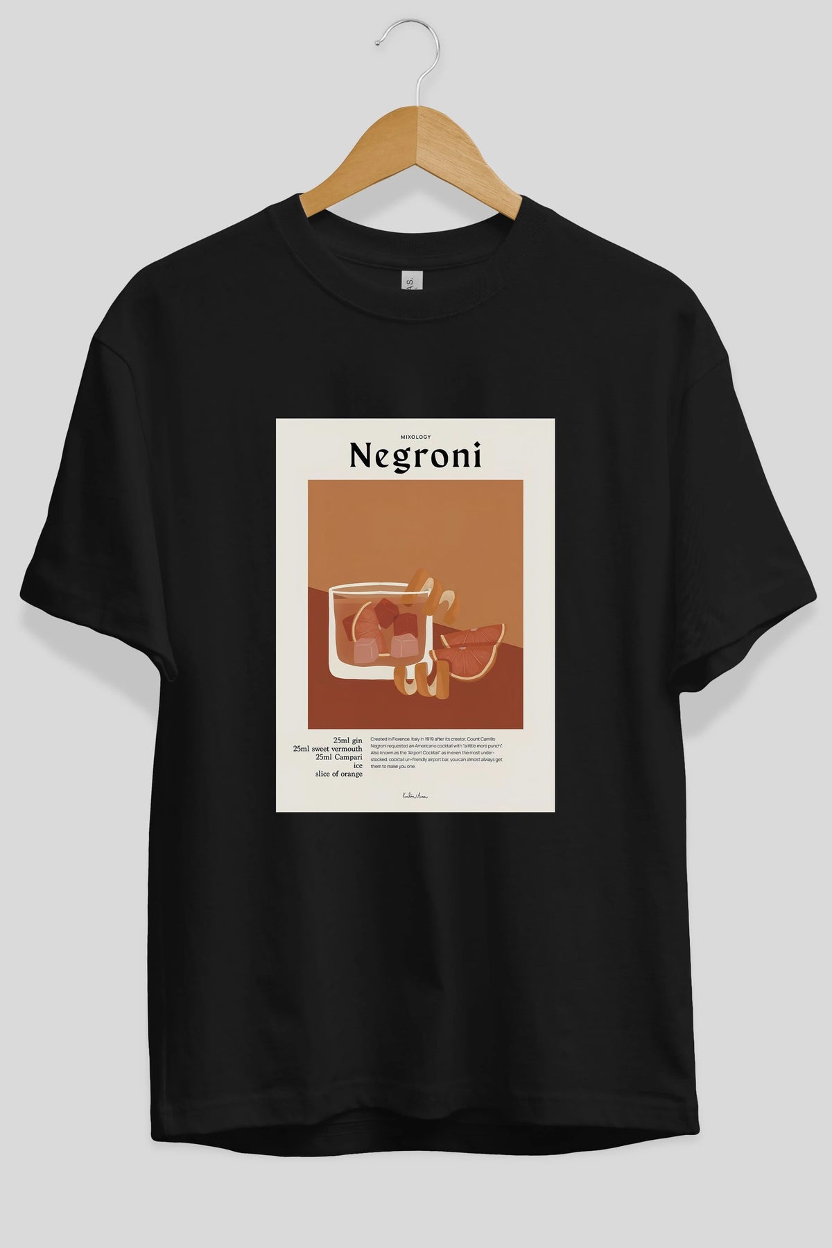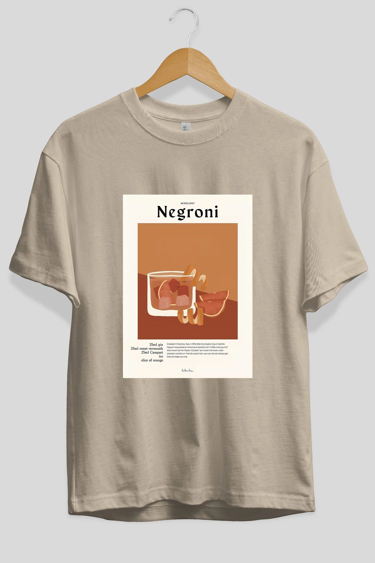 Mixology Negroni Ön Baskılı Oversize t-shirt Erkek Kadın Unisex %100 Pamuk Bisiklet Yaka tişort