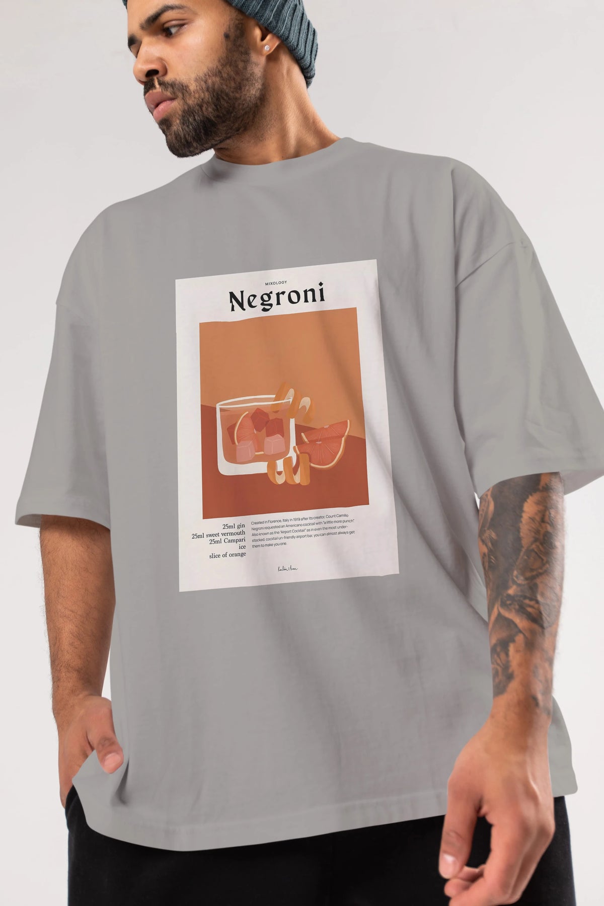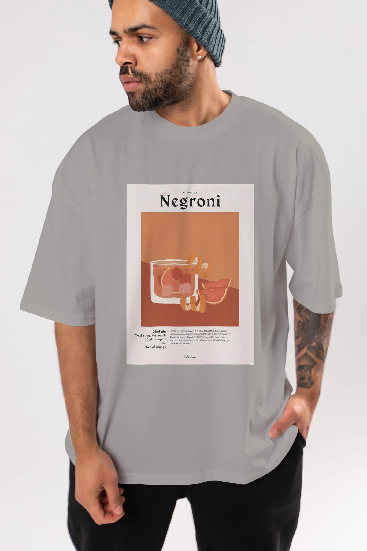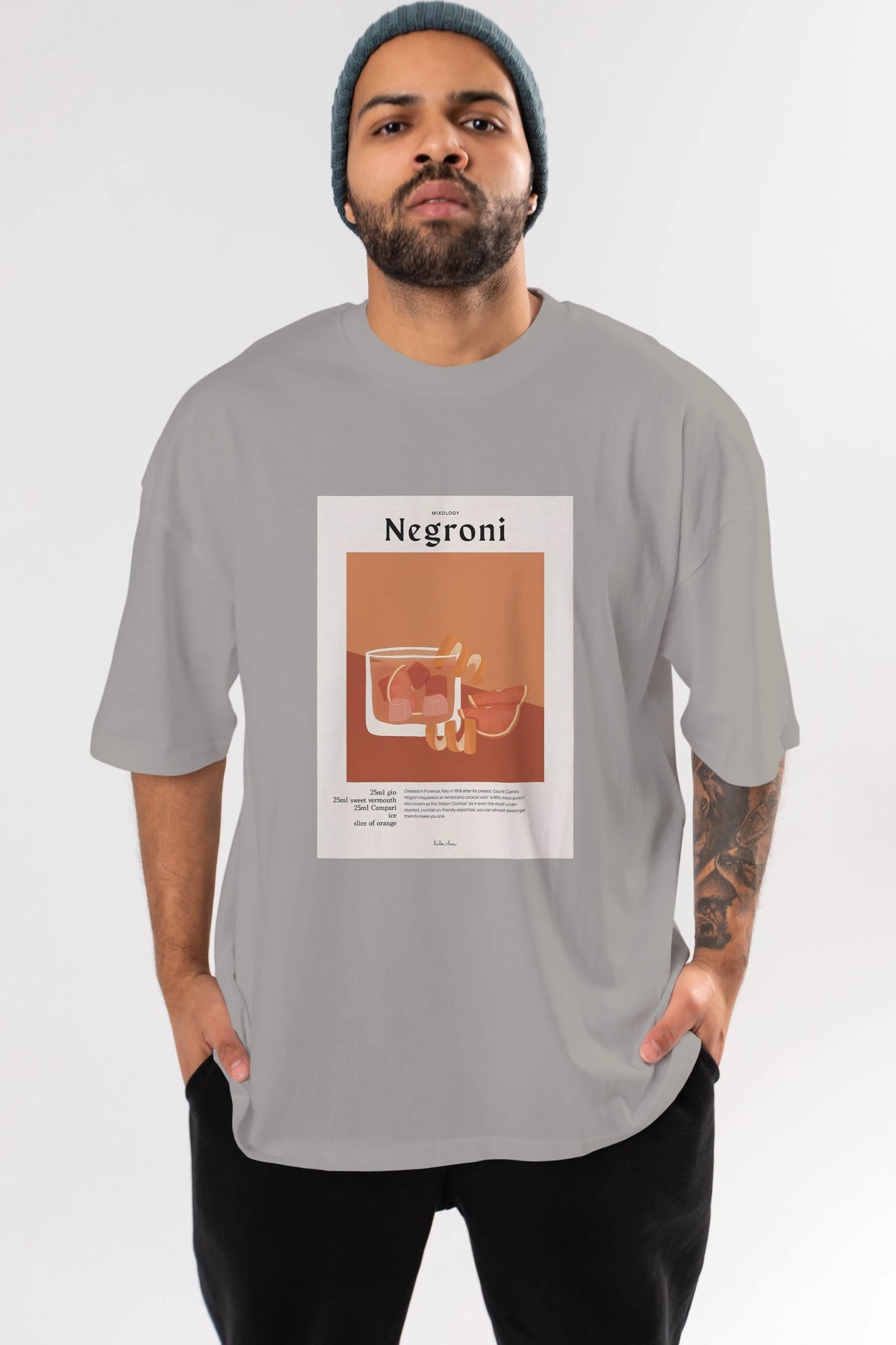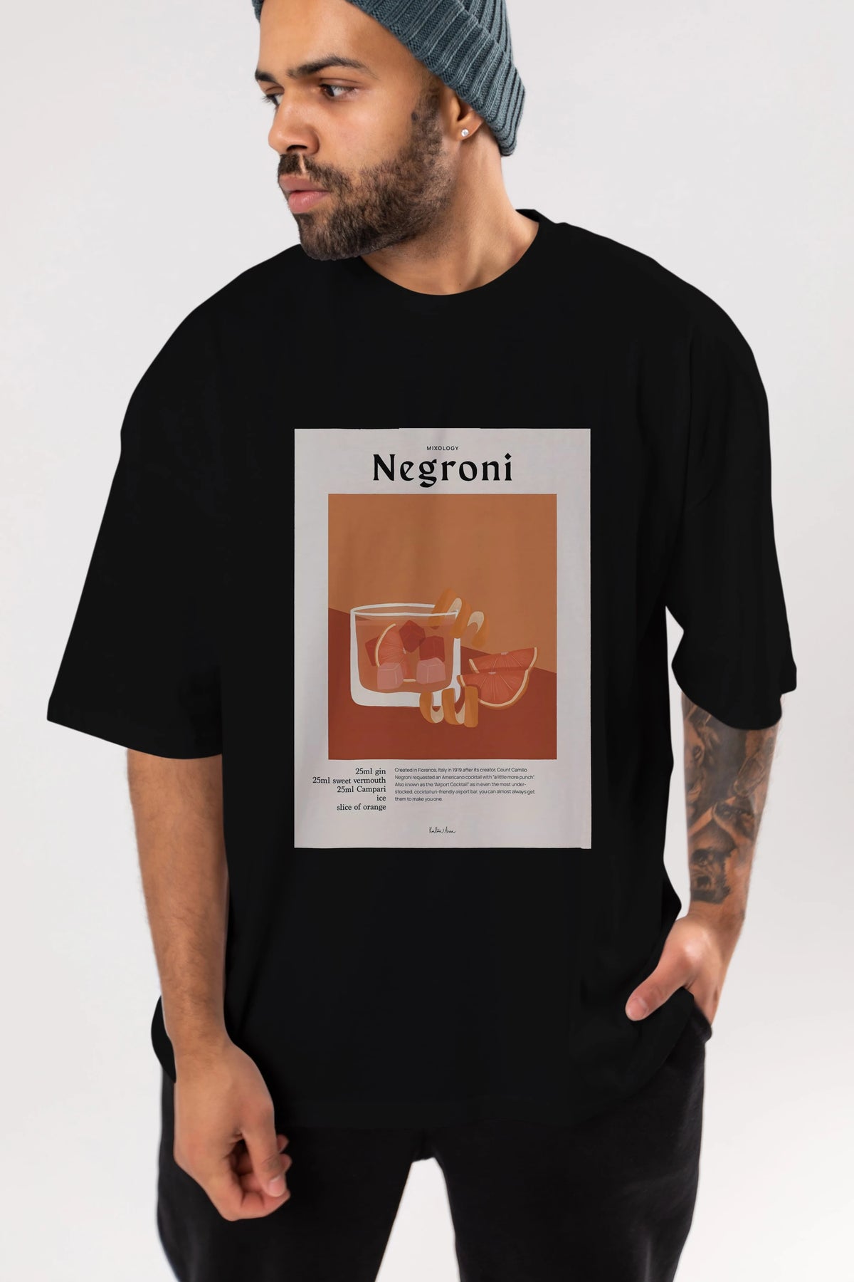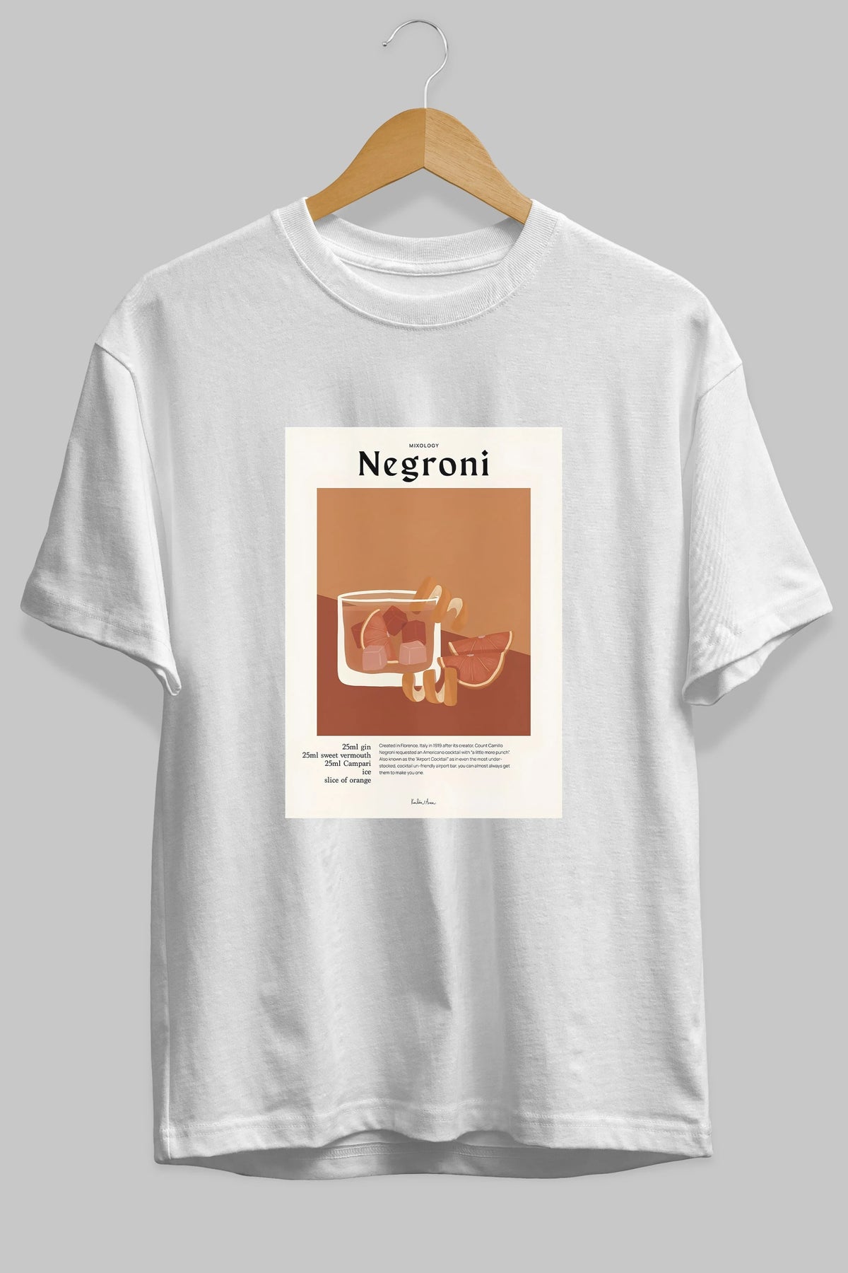 Mixology Negroni Ön Baskılı Oversize t-shirt Erkek Kadın Unisex %100 Pamuk Bisiklet Yaka tişort