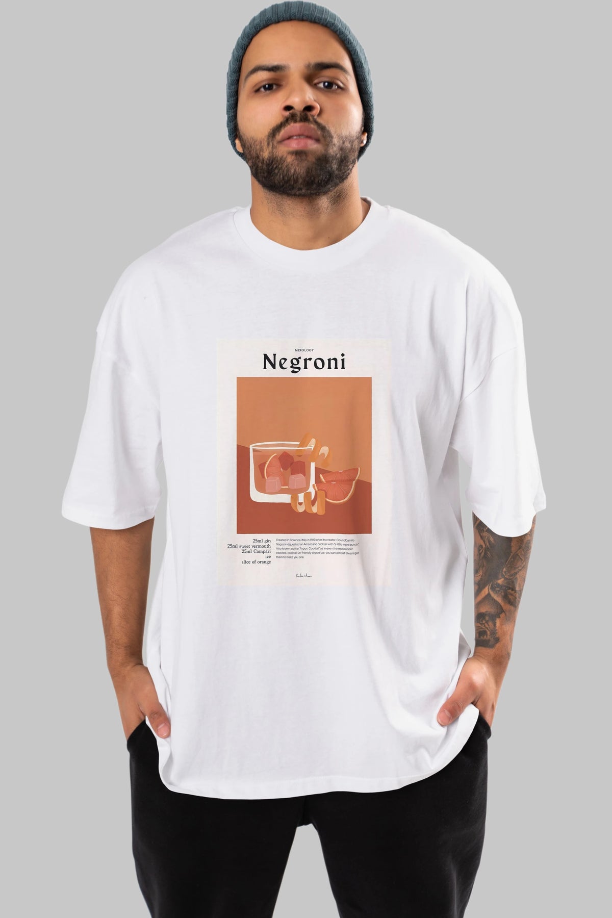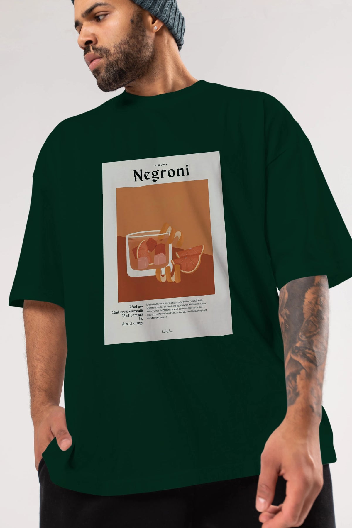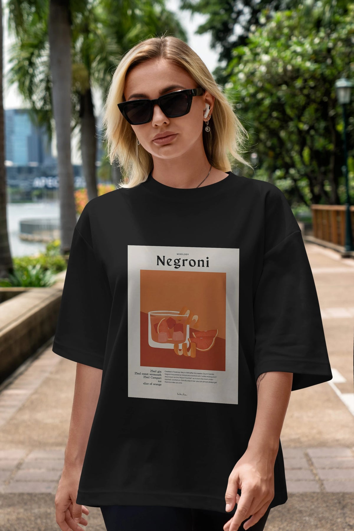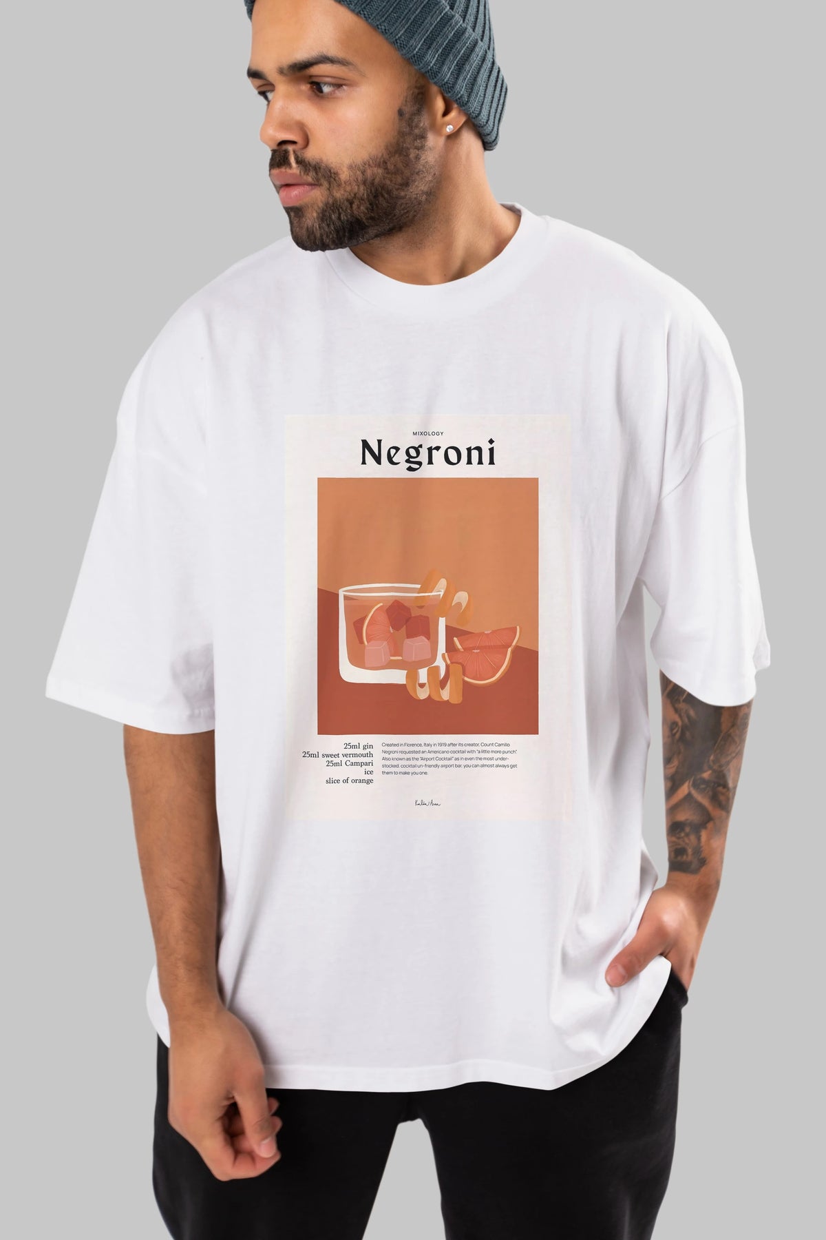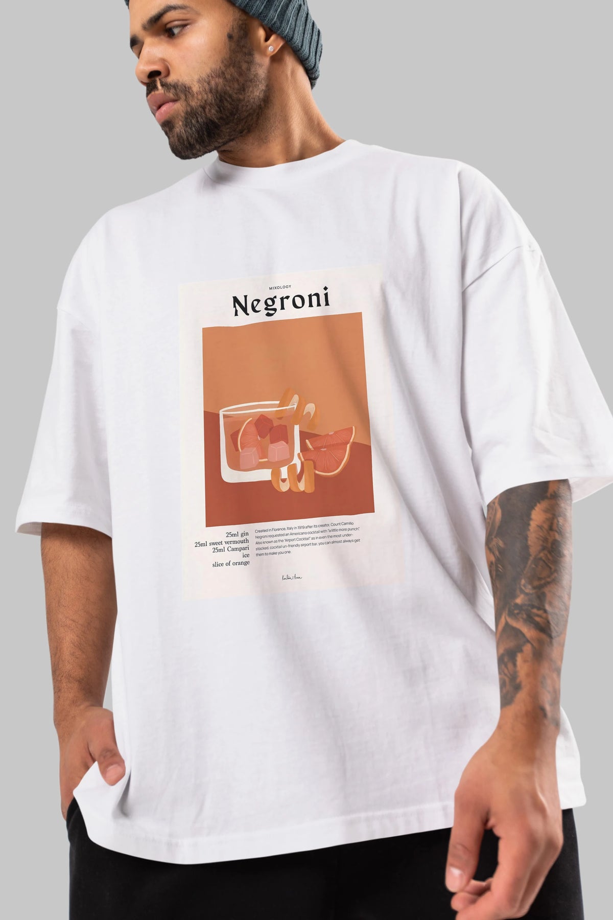 Mixology Negroni Ön Baskılı Oversize t-shirt Erkek Kadın Unisex %100 Pamuk Bisiklet Yaka tişort