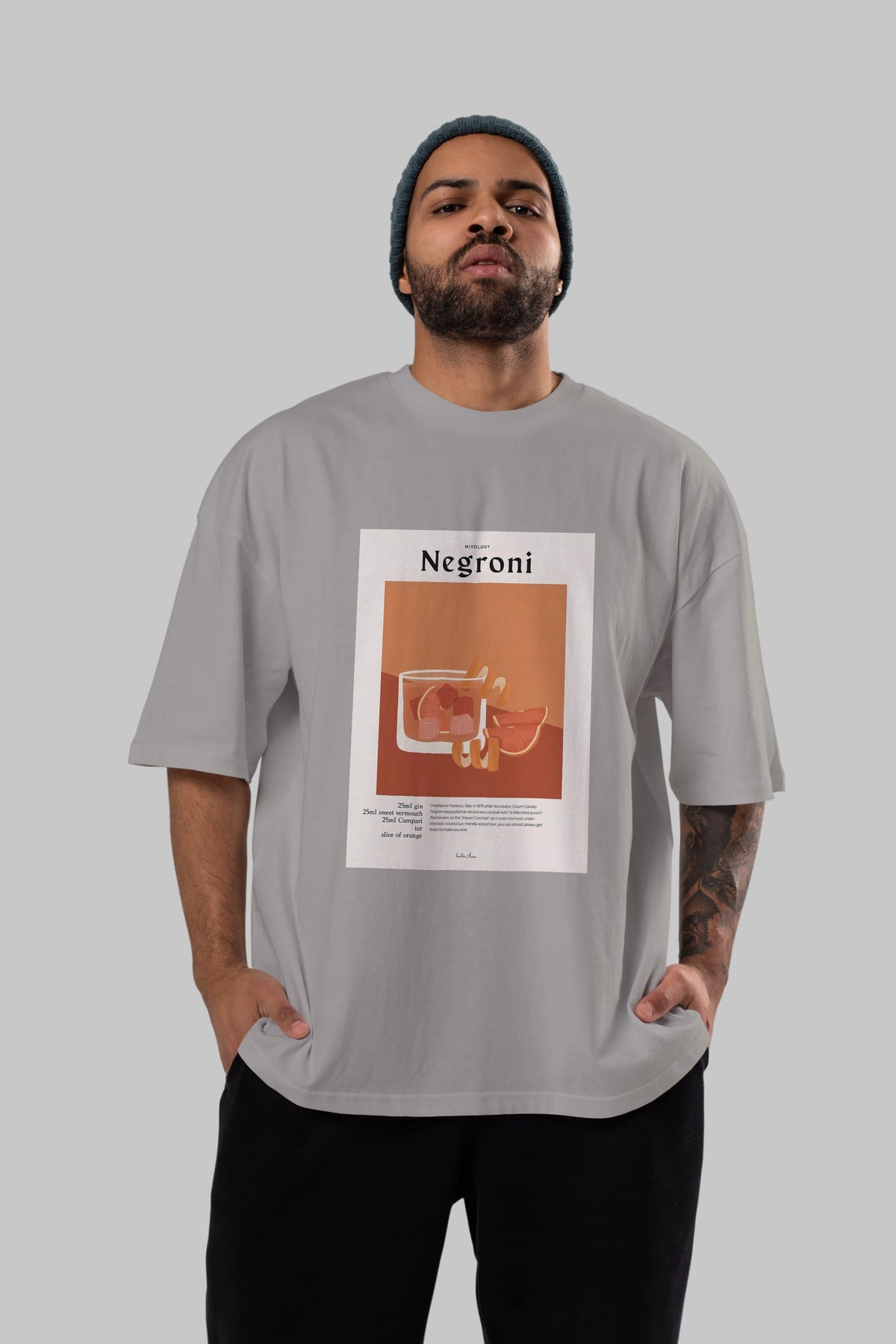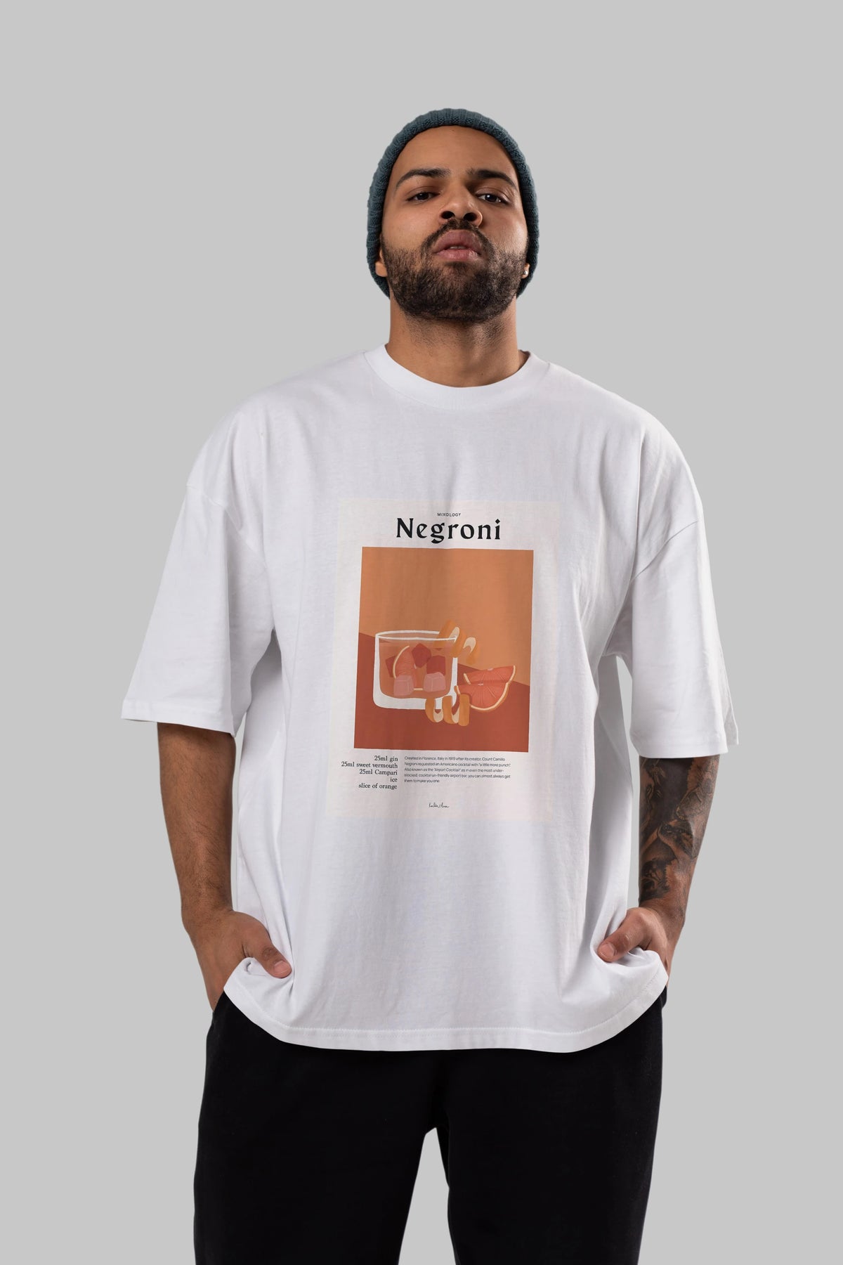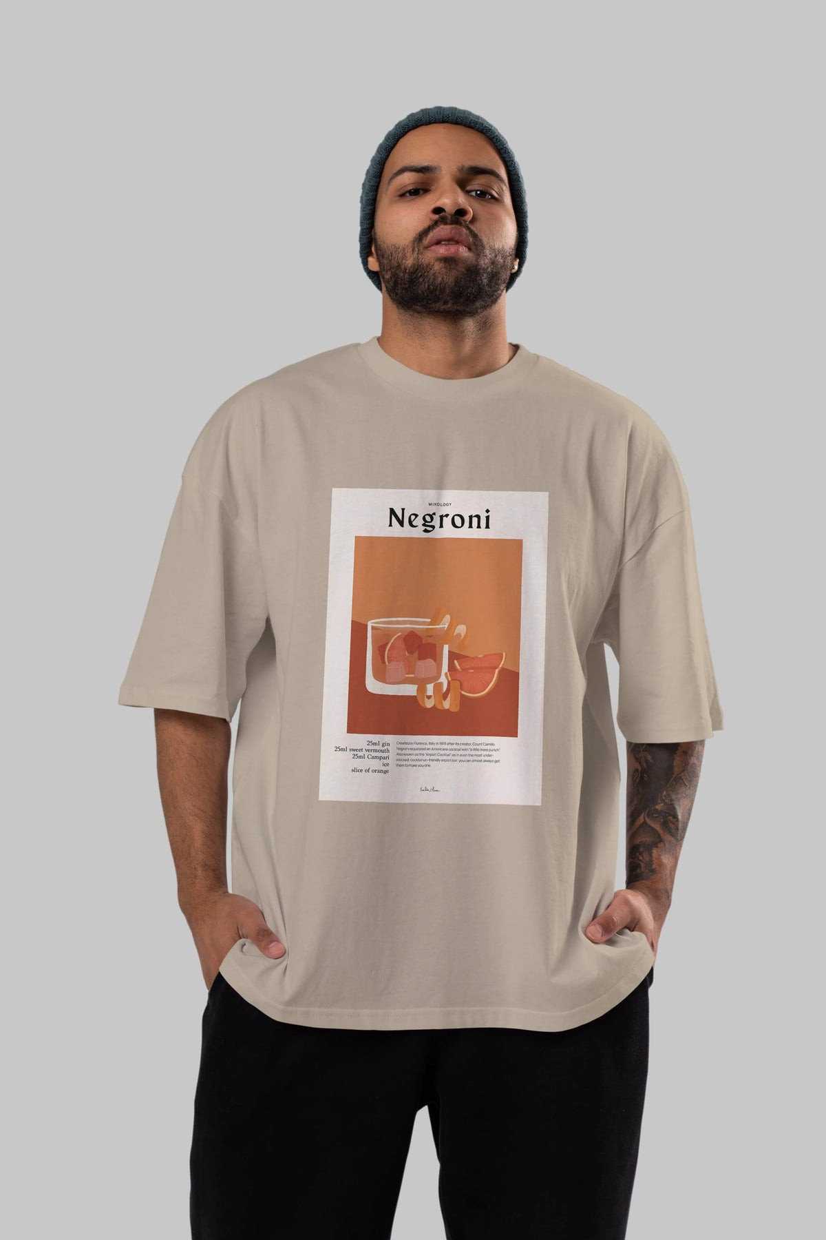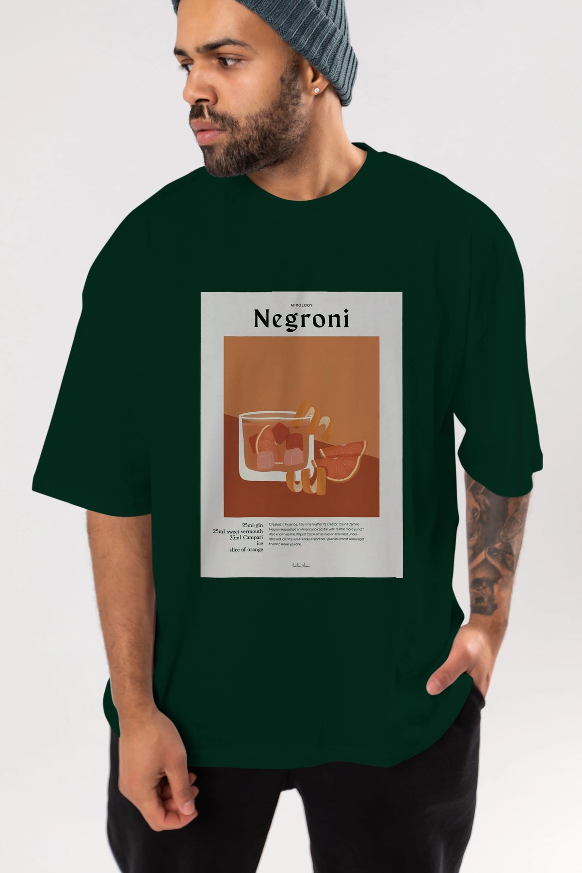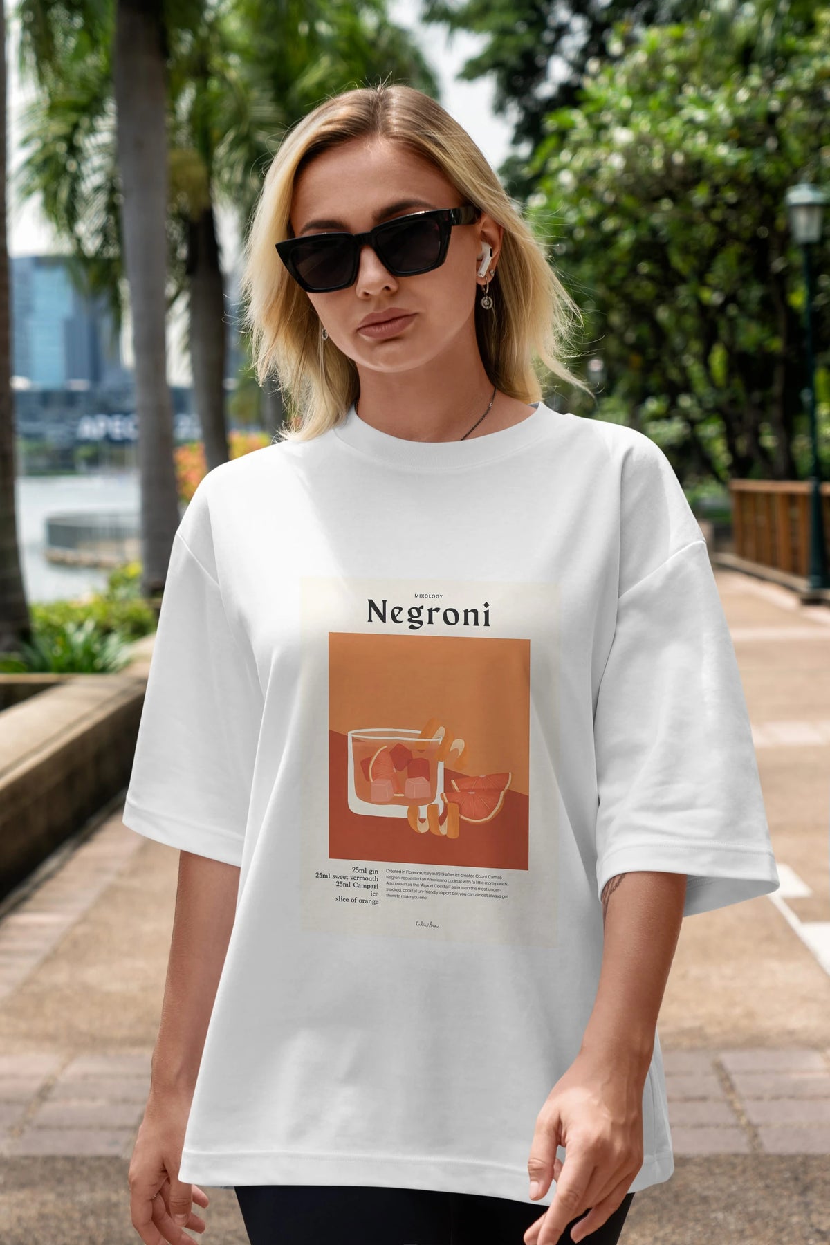 Mixology Negroni Ön Baskılı Oversize t-shirt Erkek Kadın Unisex %100 Pamuk Bisiklet Yaka tişort