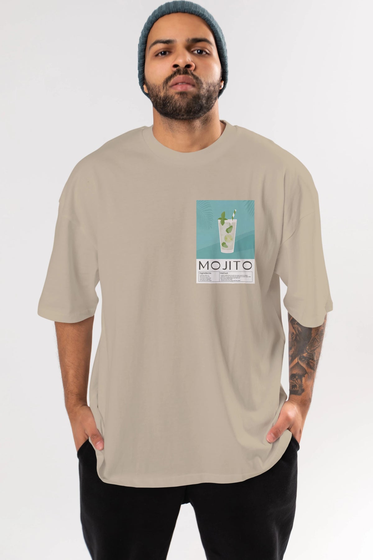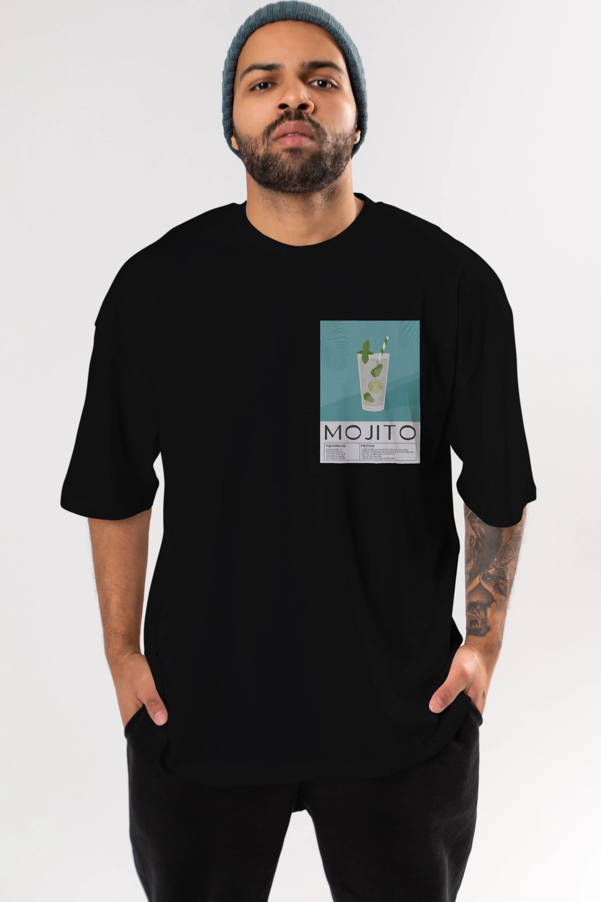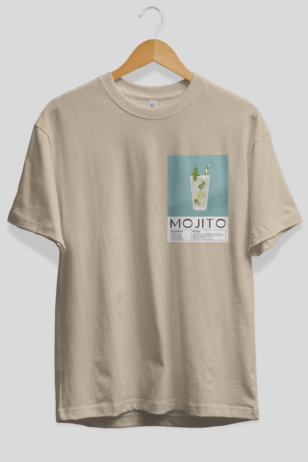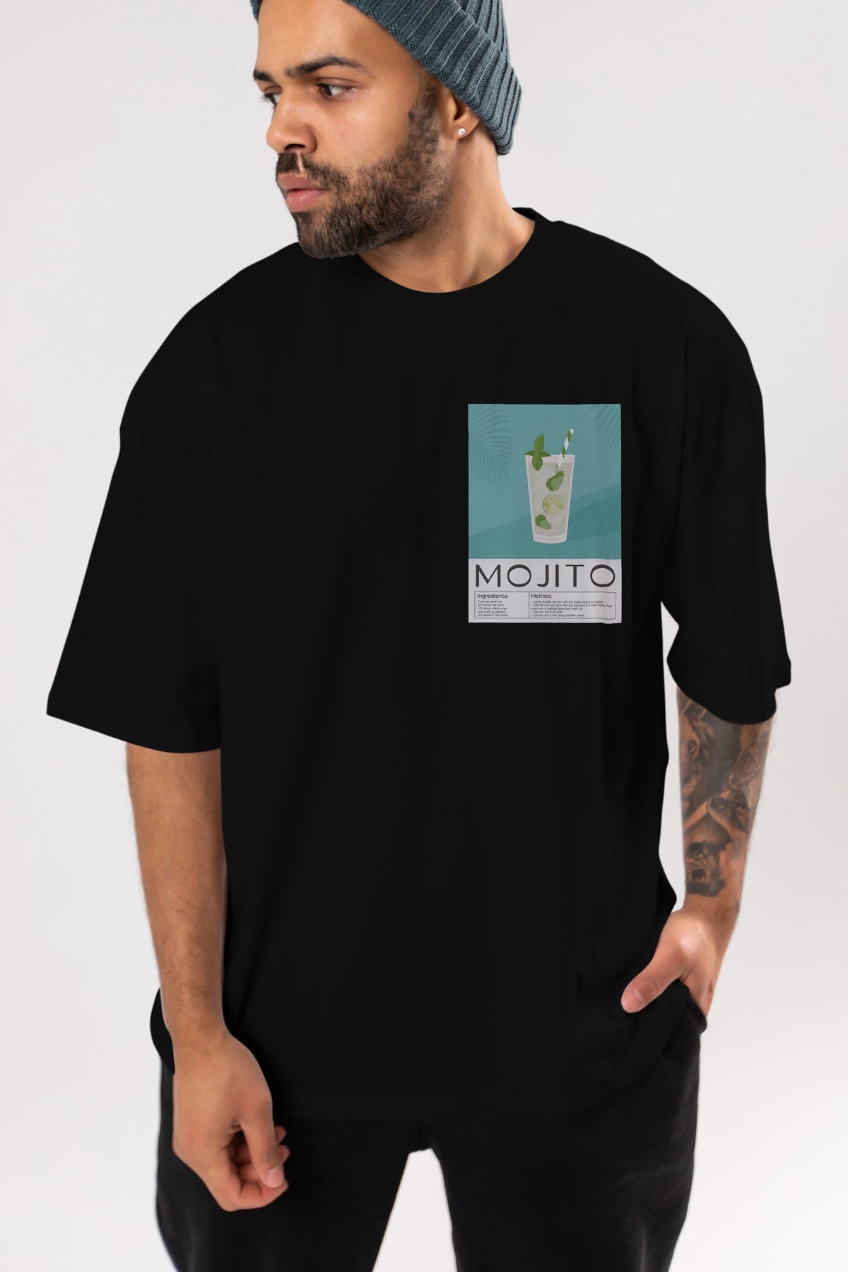 Mojito 4 Ön Sol Baskılı Oversize t-shirt Erkek Kadın Unisex %100 Pamuk Bisiklet Yaka tişort