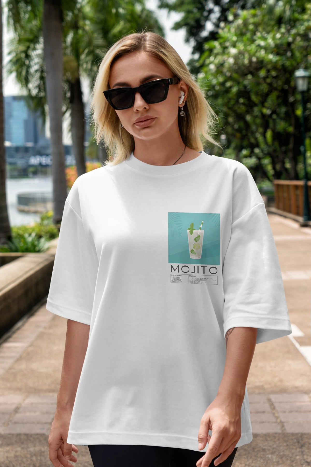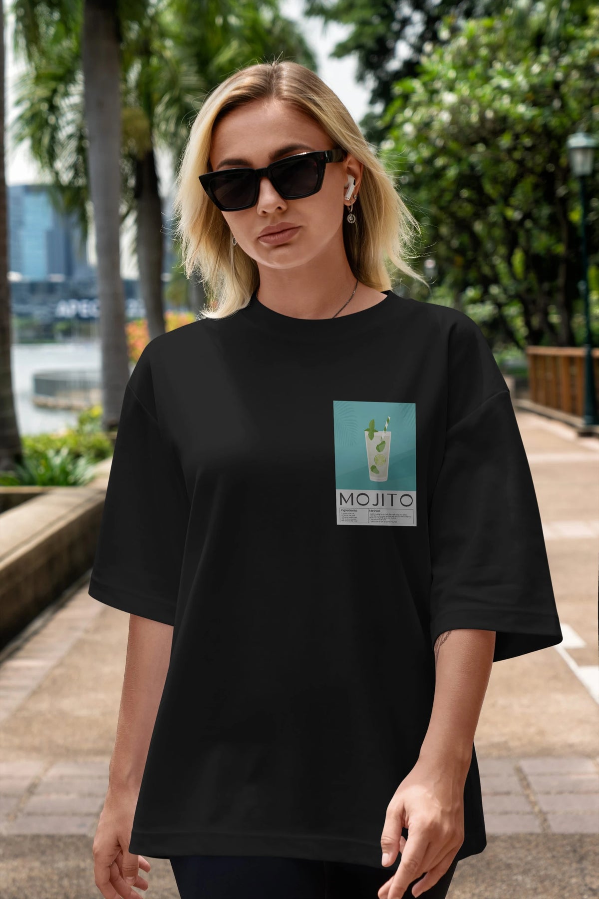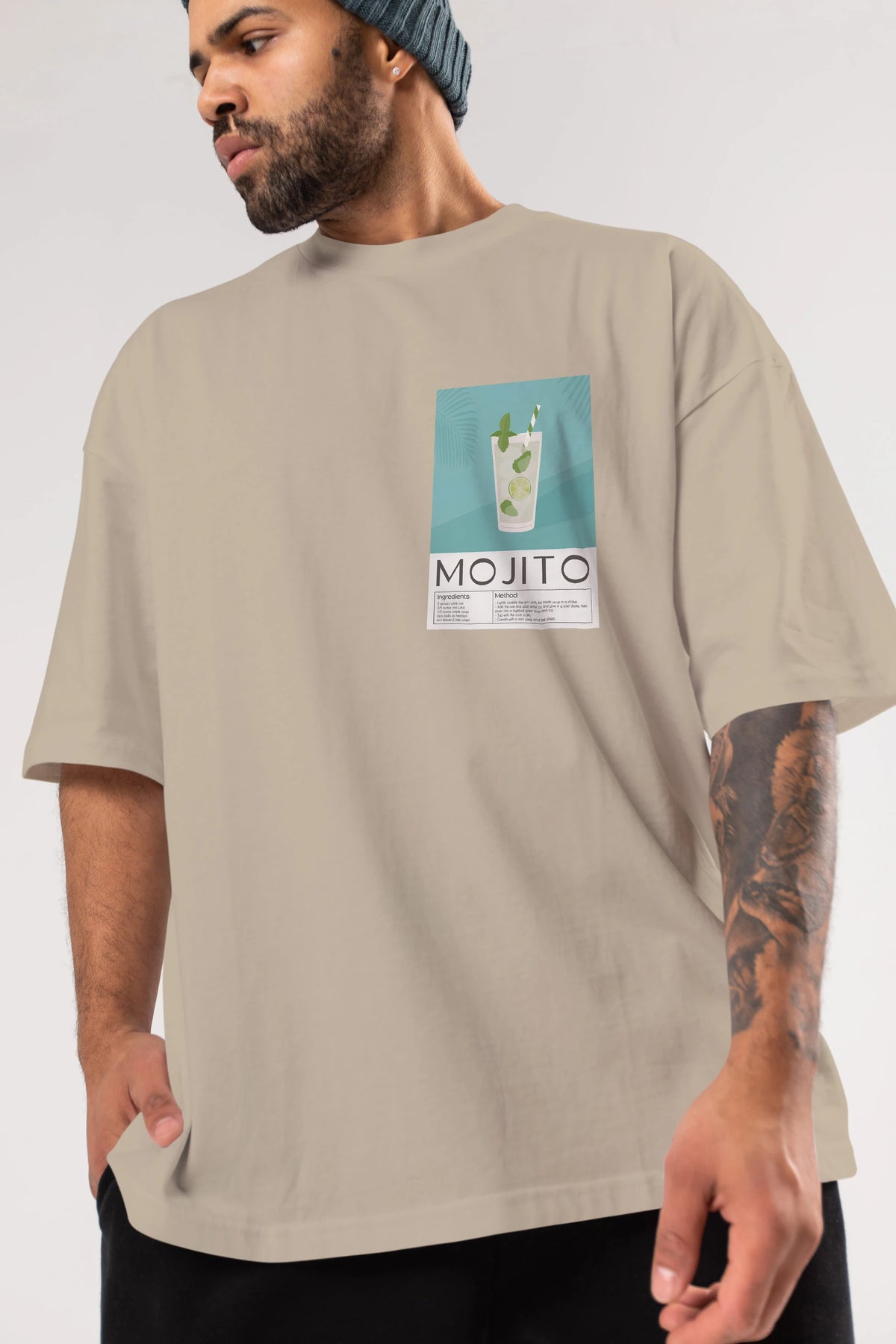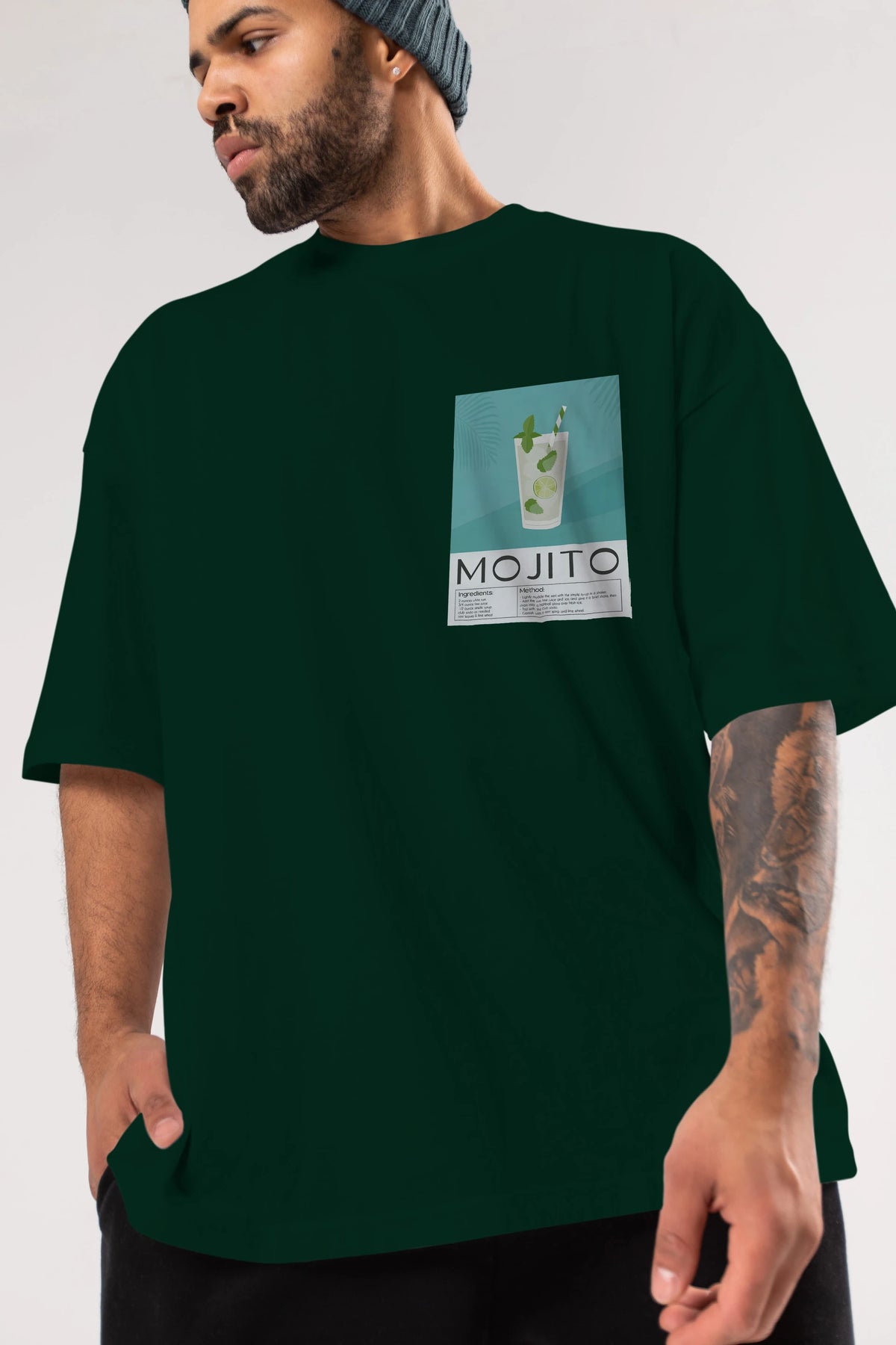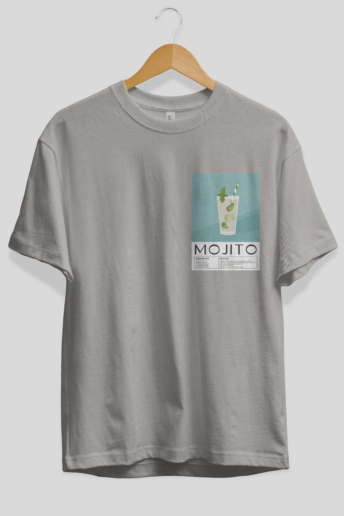 Mojito 4 Ön Sol Baskılı Oversize t-shirt Erkek Kadın Unisex %100 Pamuk Bisiklet Yaka tişort