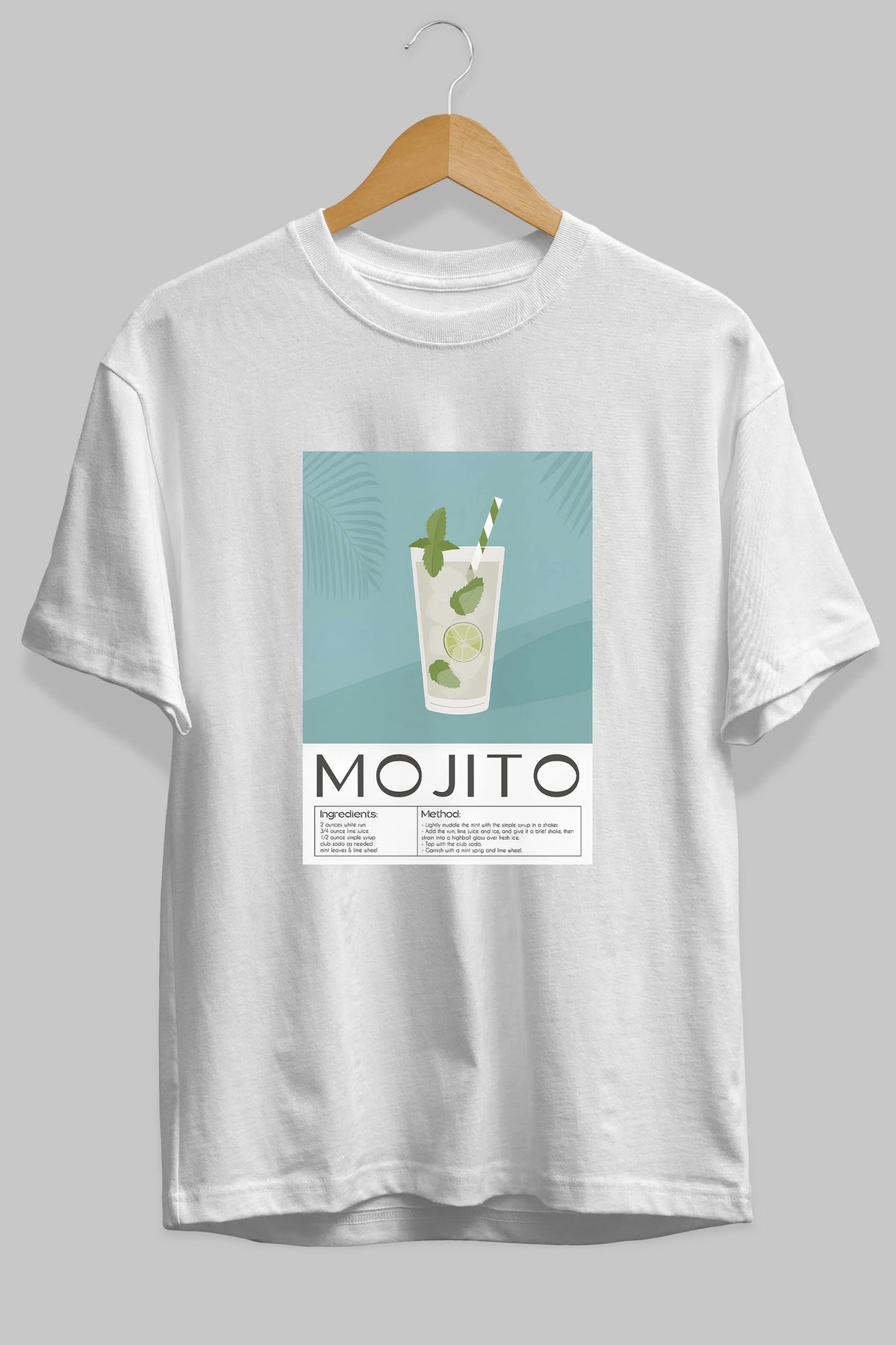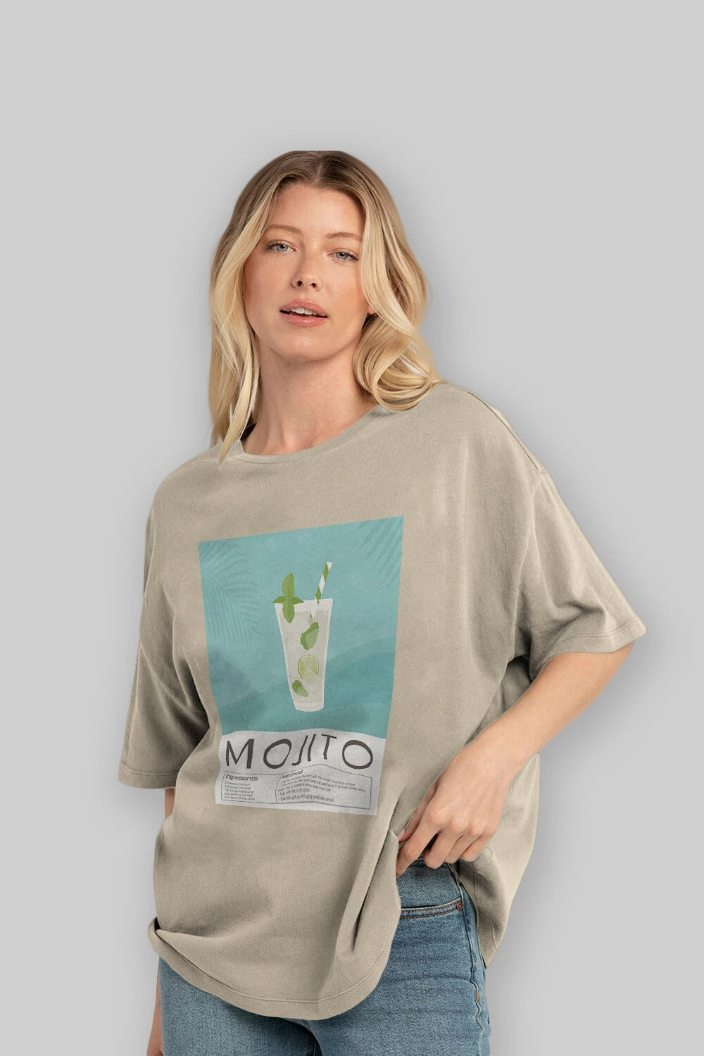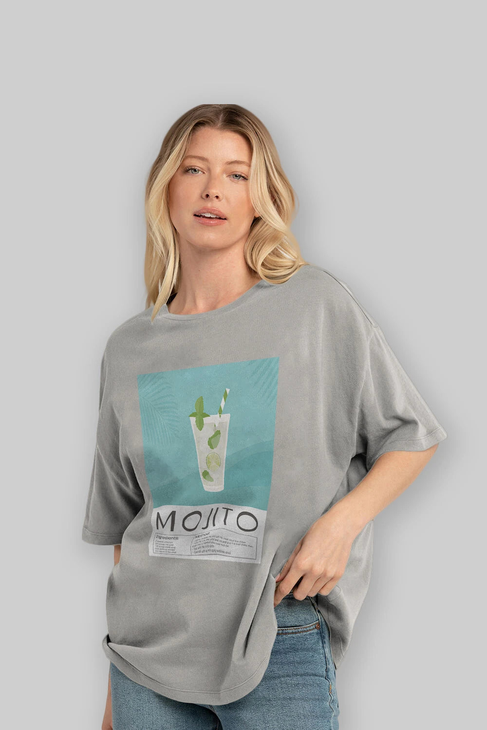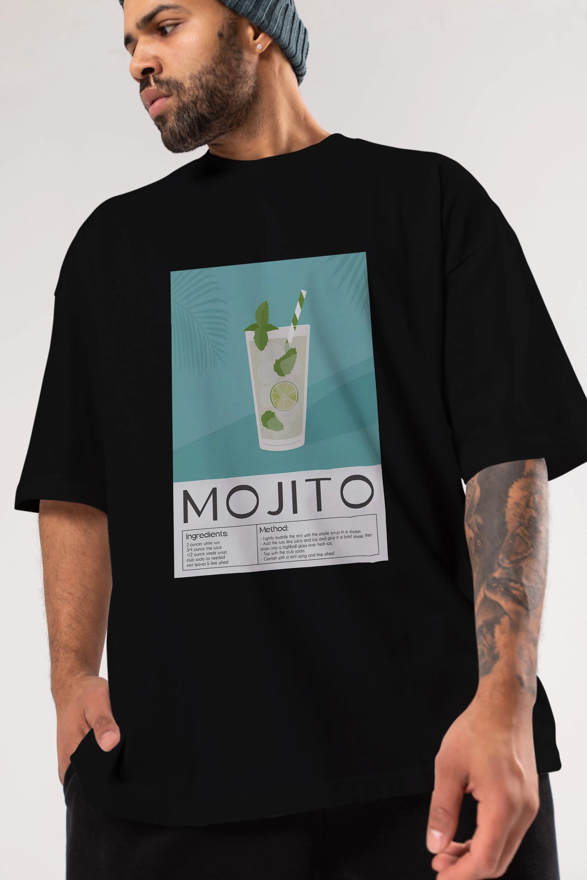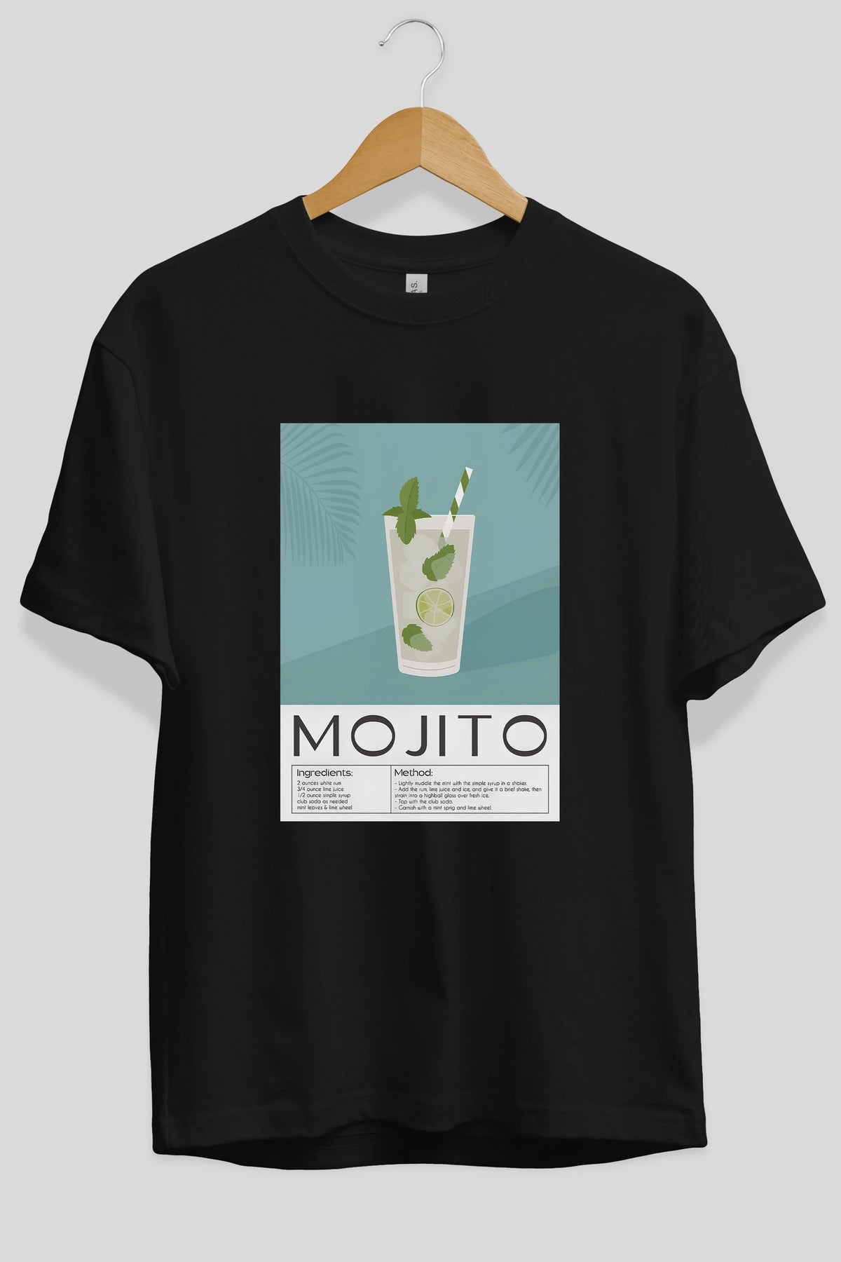 Mojito 4 Ön Baskılı Oversize t-shirt Erkek Kadın Unisex %100 Pamuk Bisiklet Yaka tişort