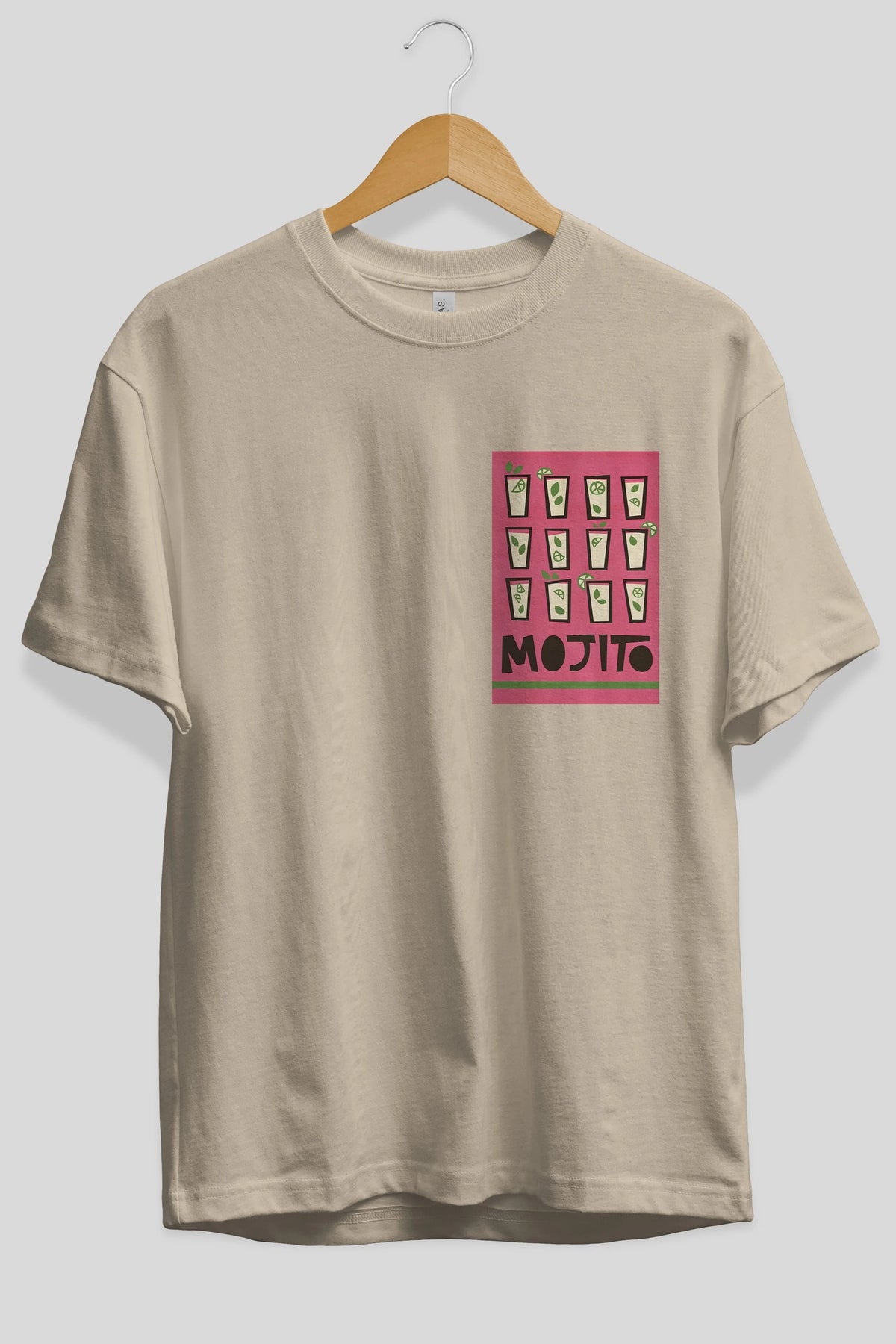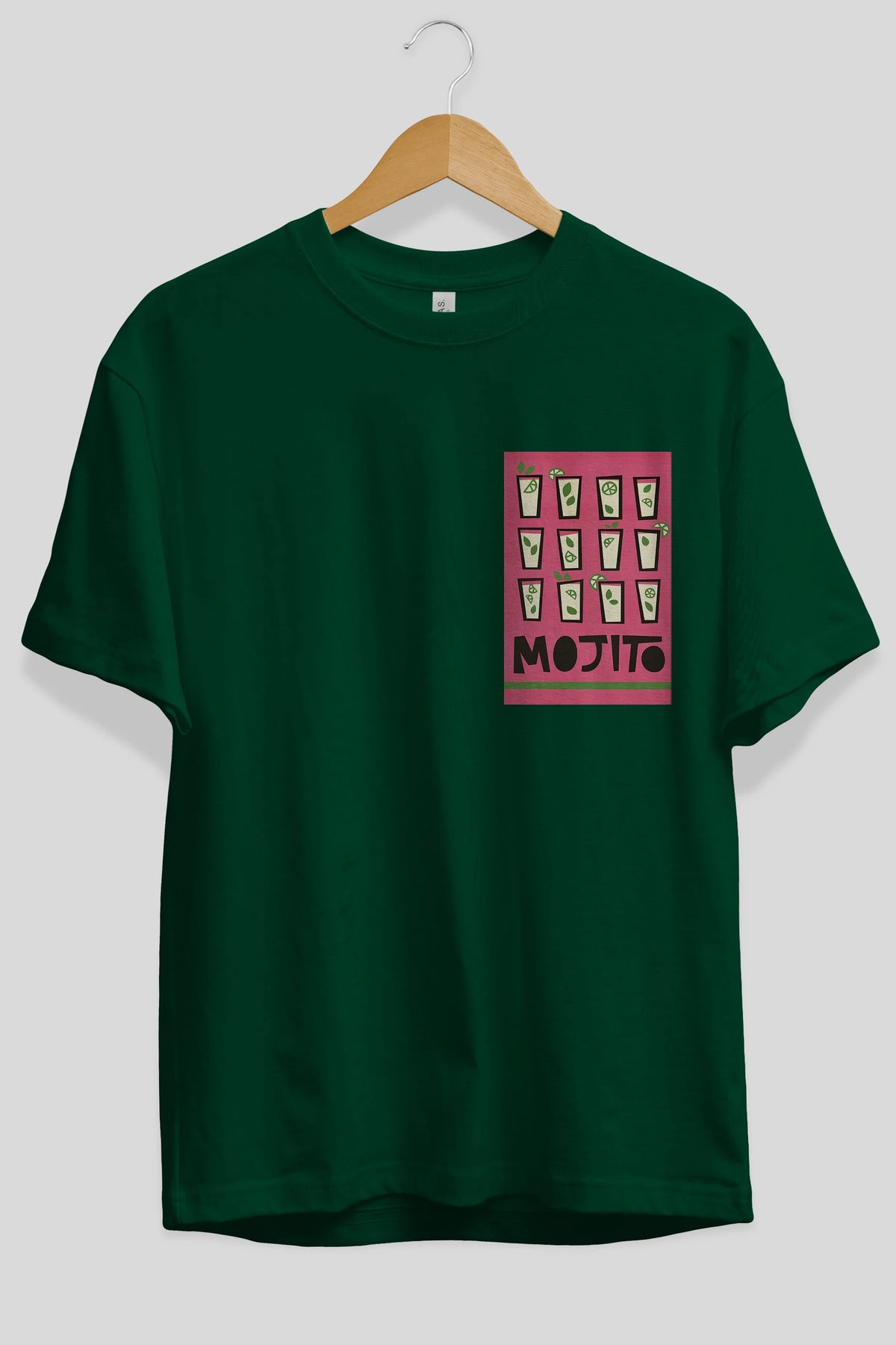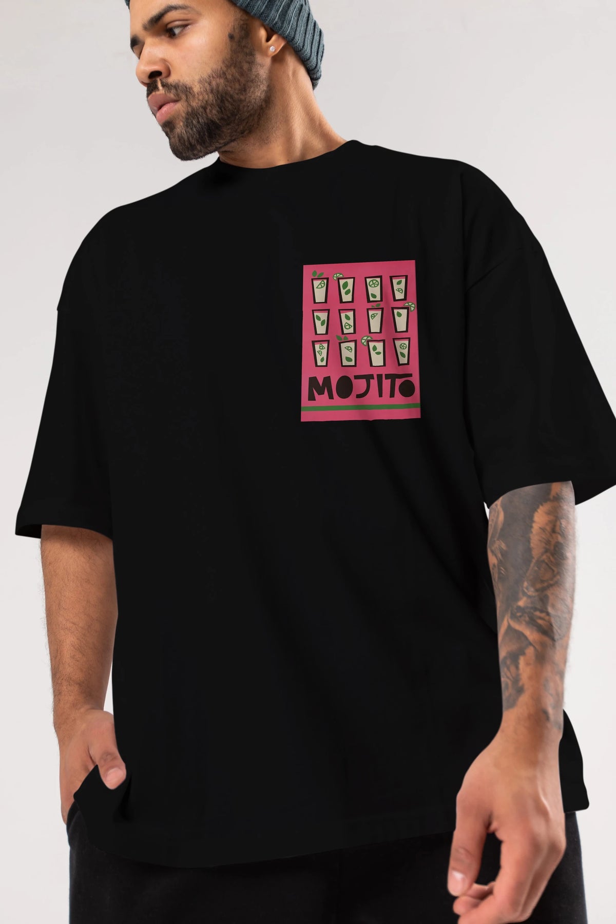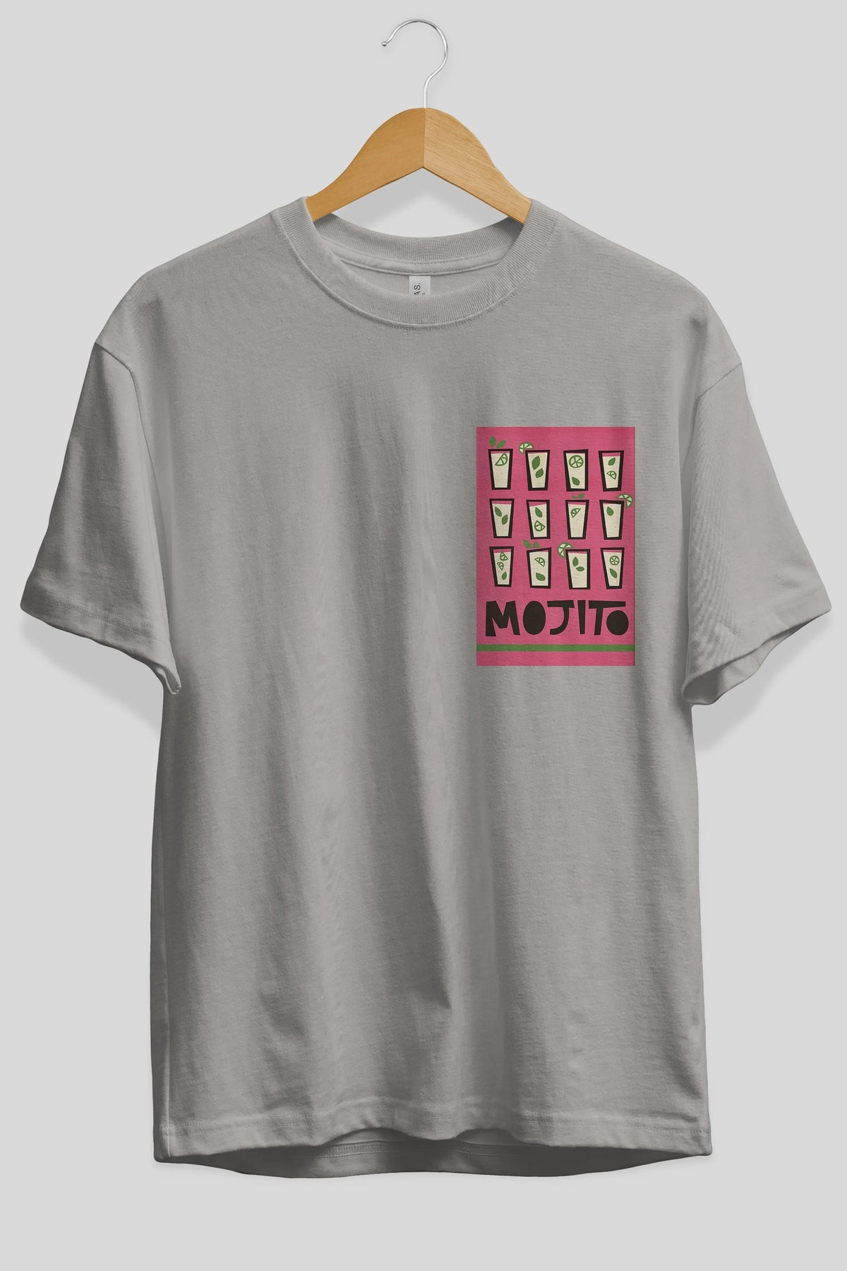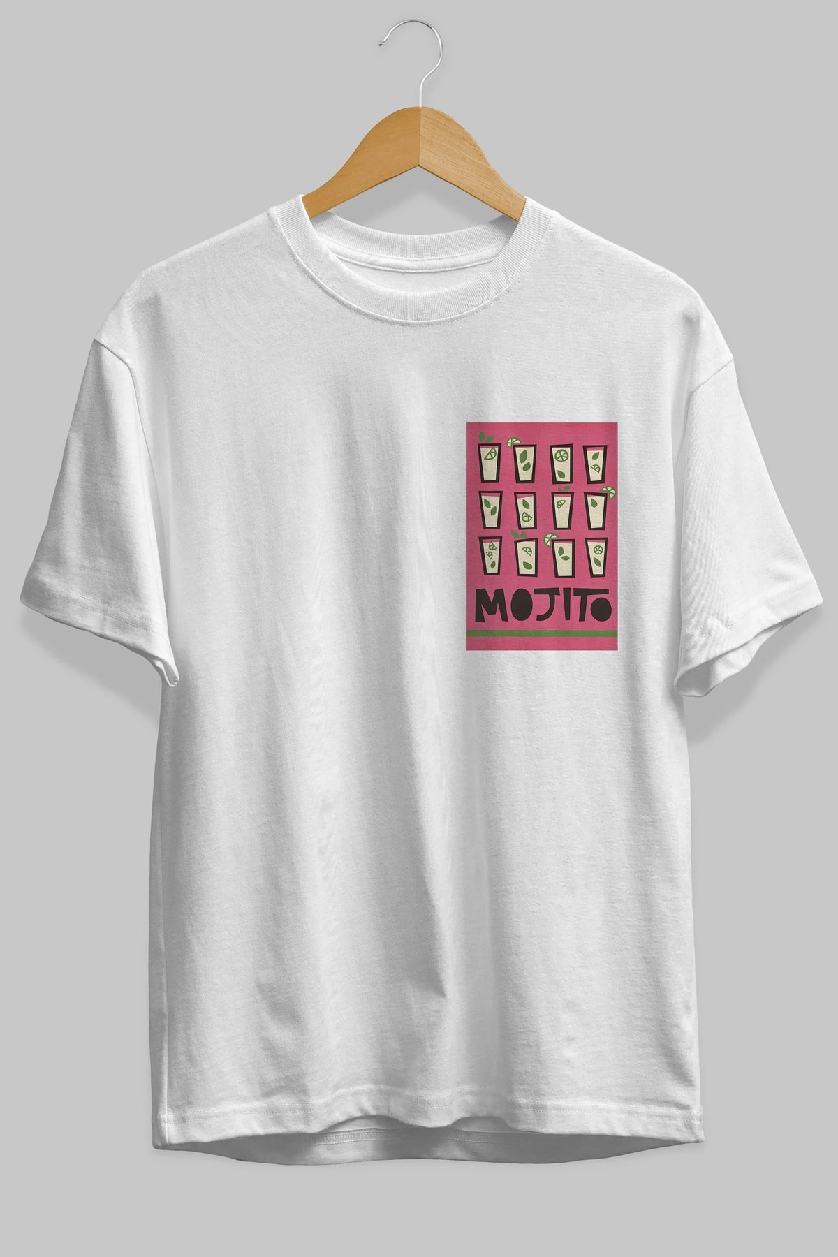 Mojito Ön Sol Baskılı Oversize t-shirt Erkek Kadın Unisex %100 Pamuk Bisiklet Yaka tişort