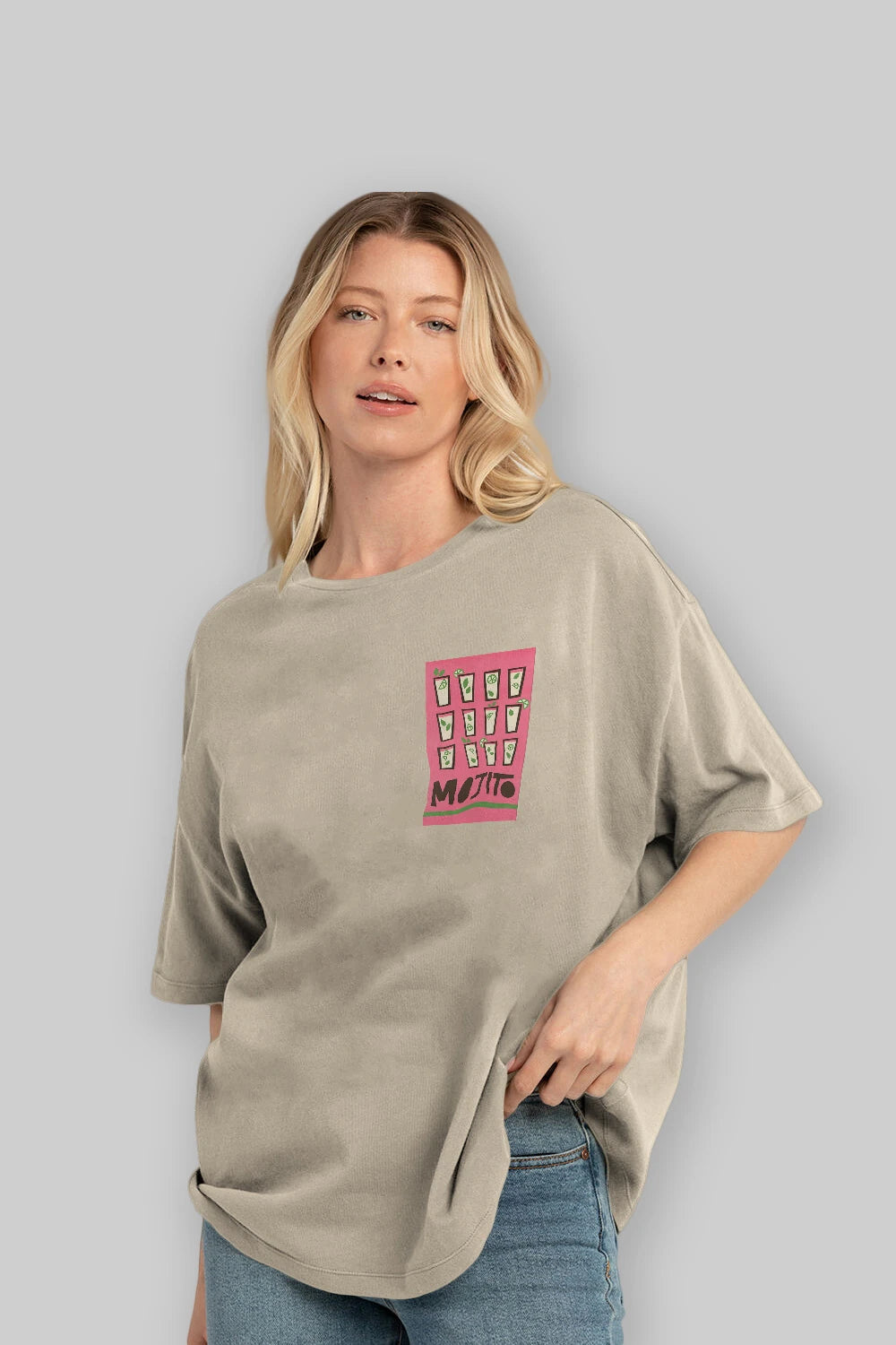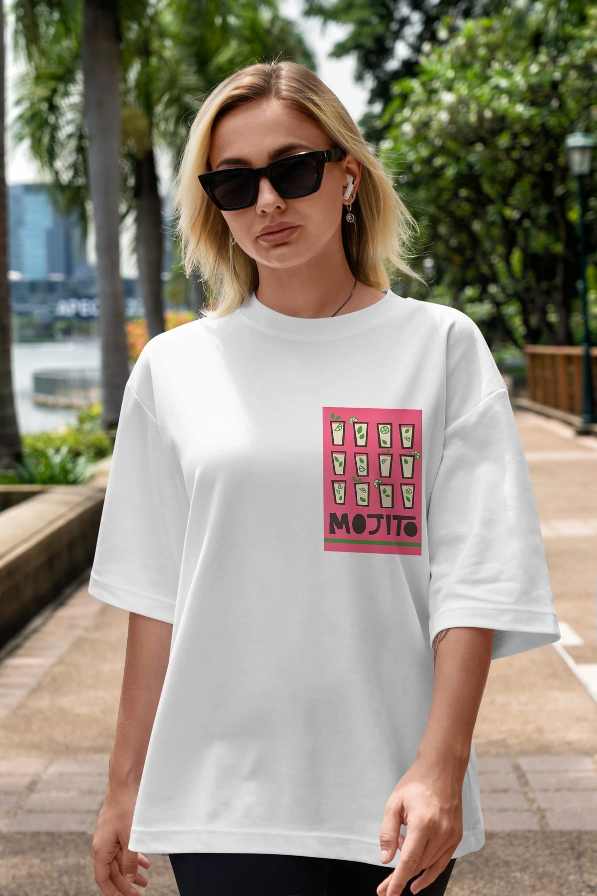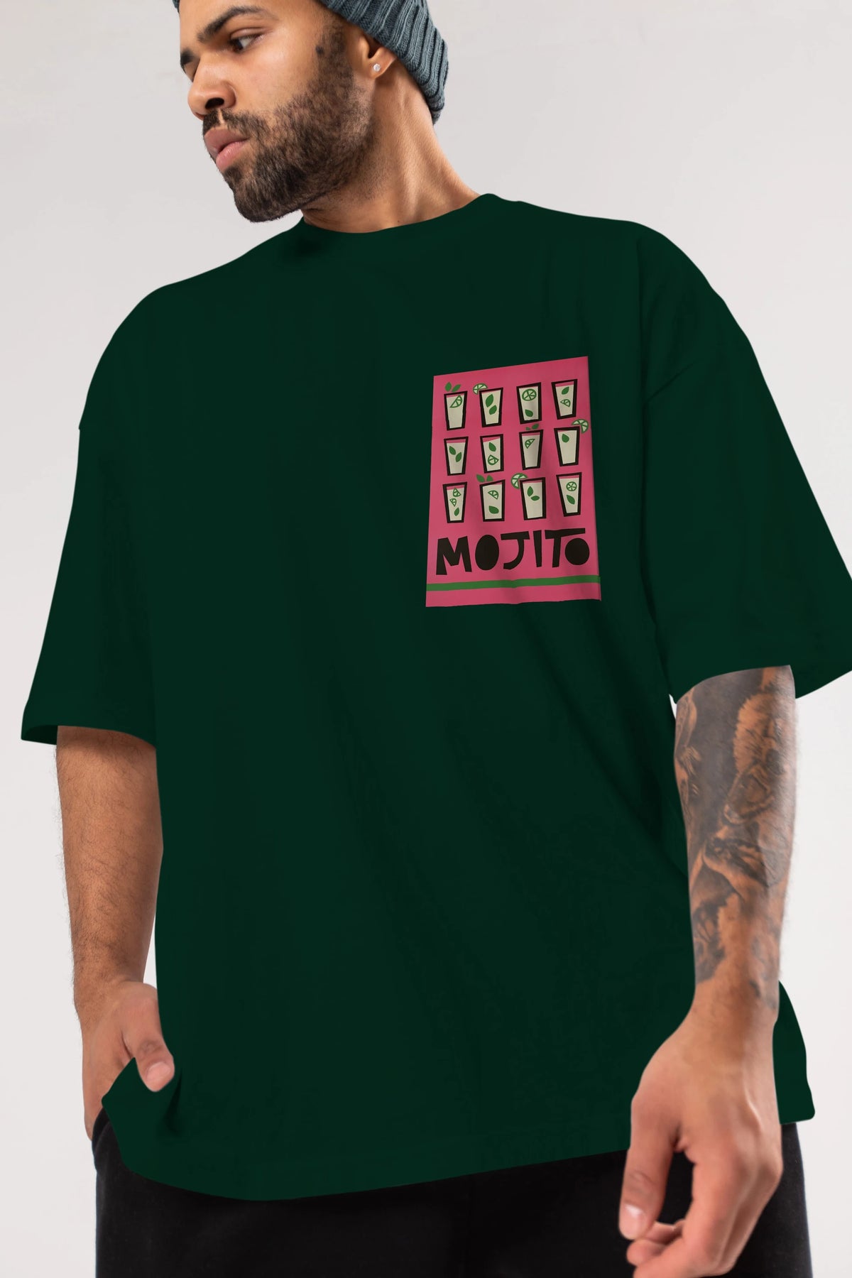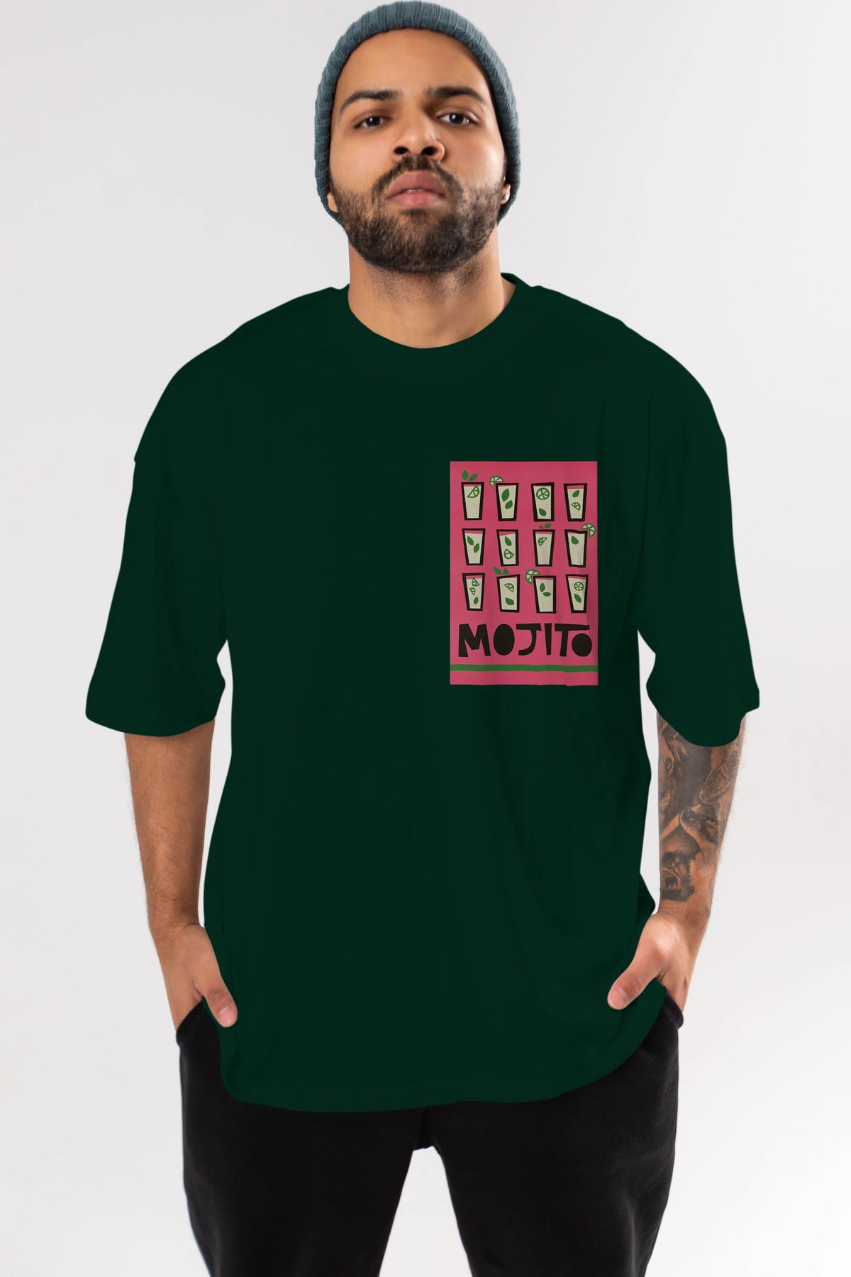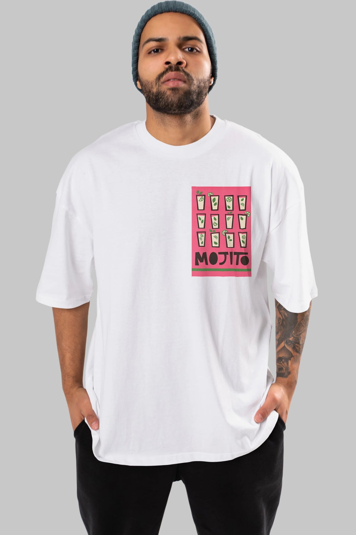 Mojito Ön Sol Baskılı Oversize t-shirt Erkek Kadın Unisex %100 Pamuk Bisiklet Yaka tişort