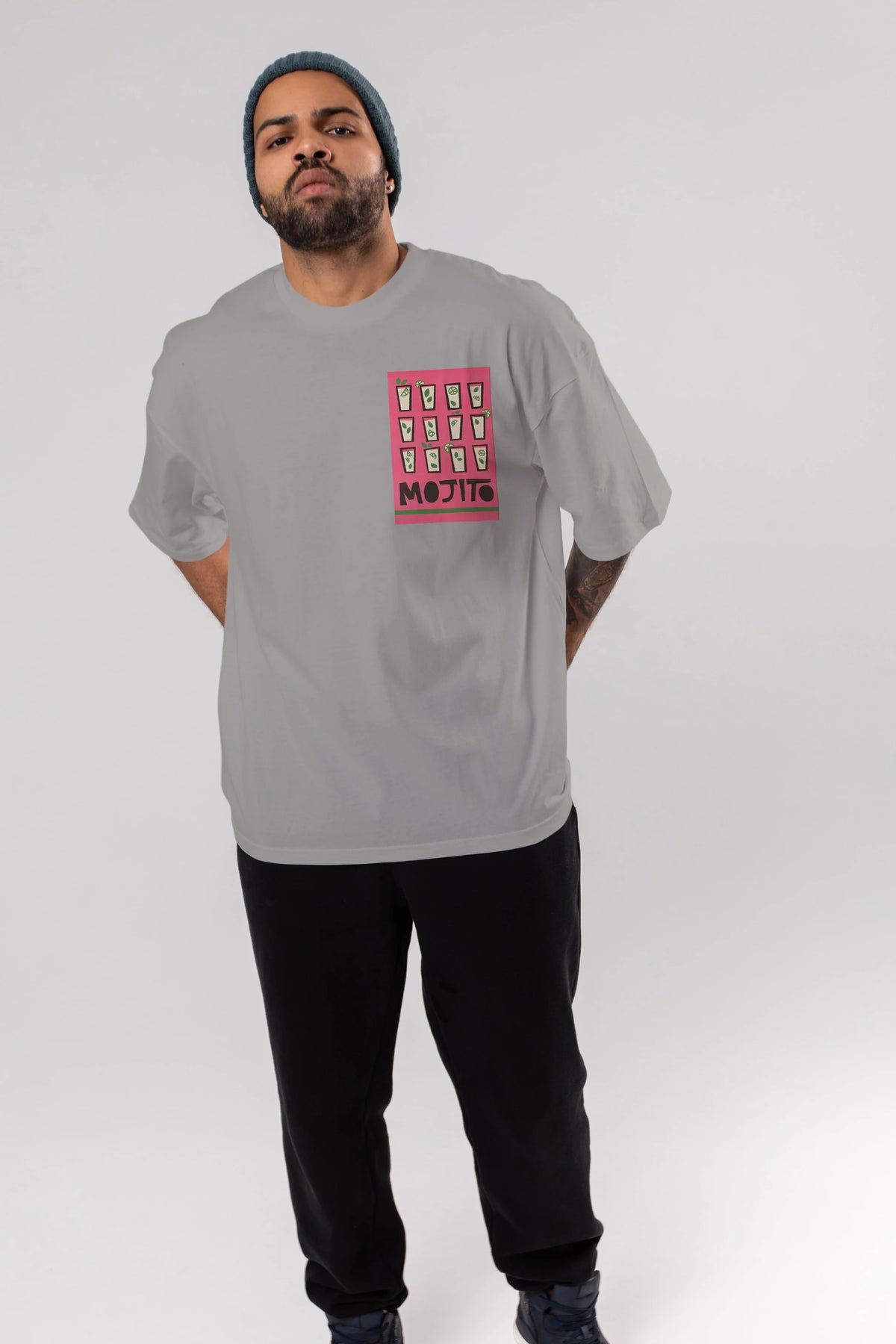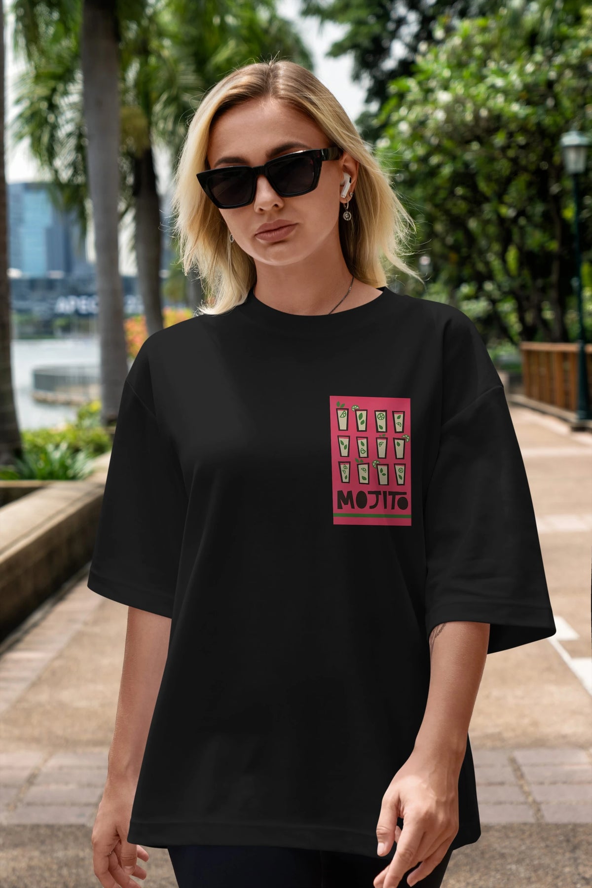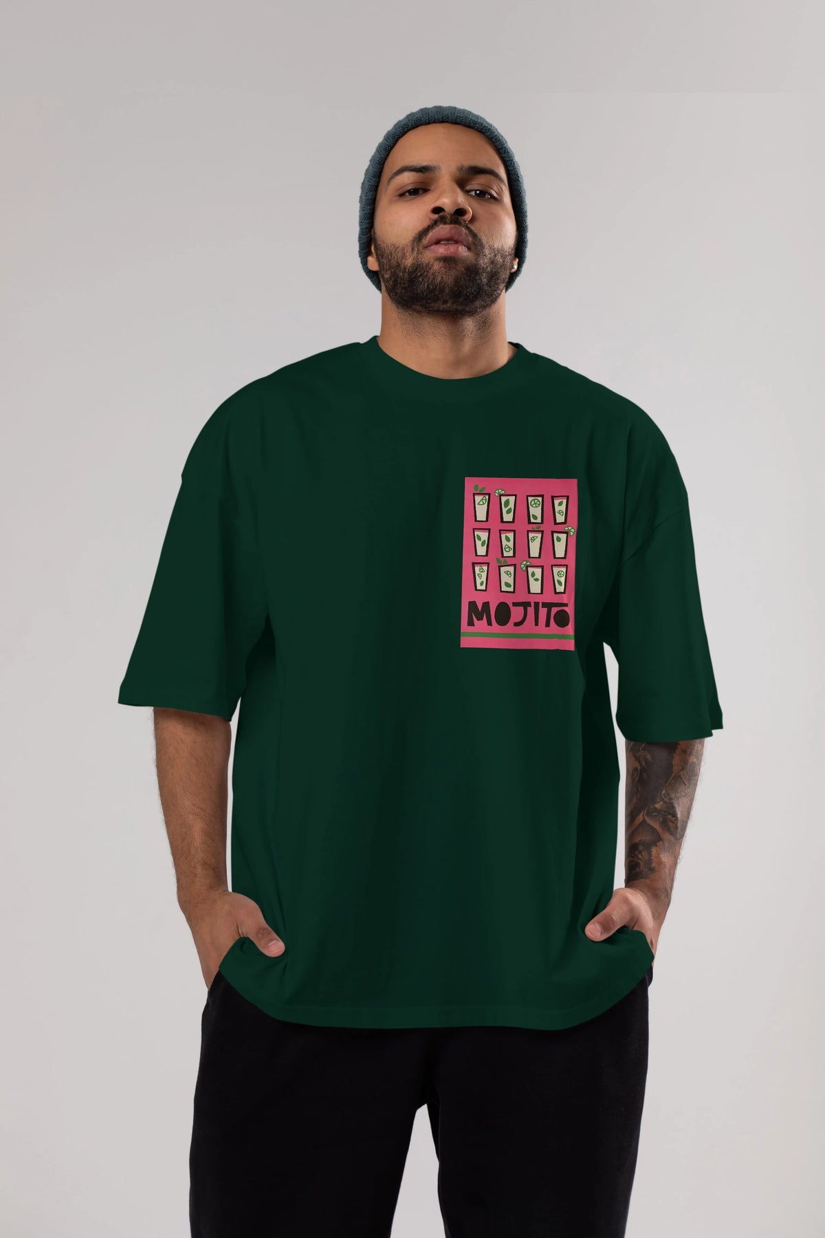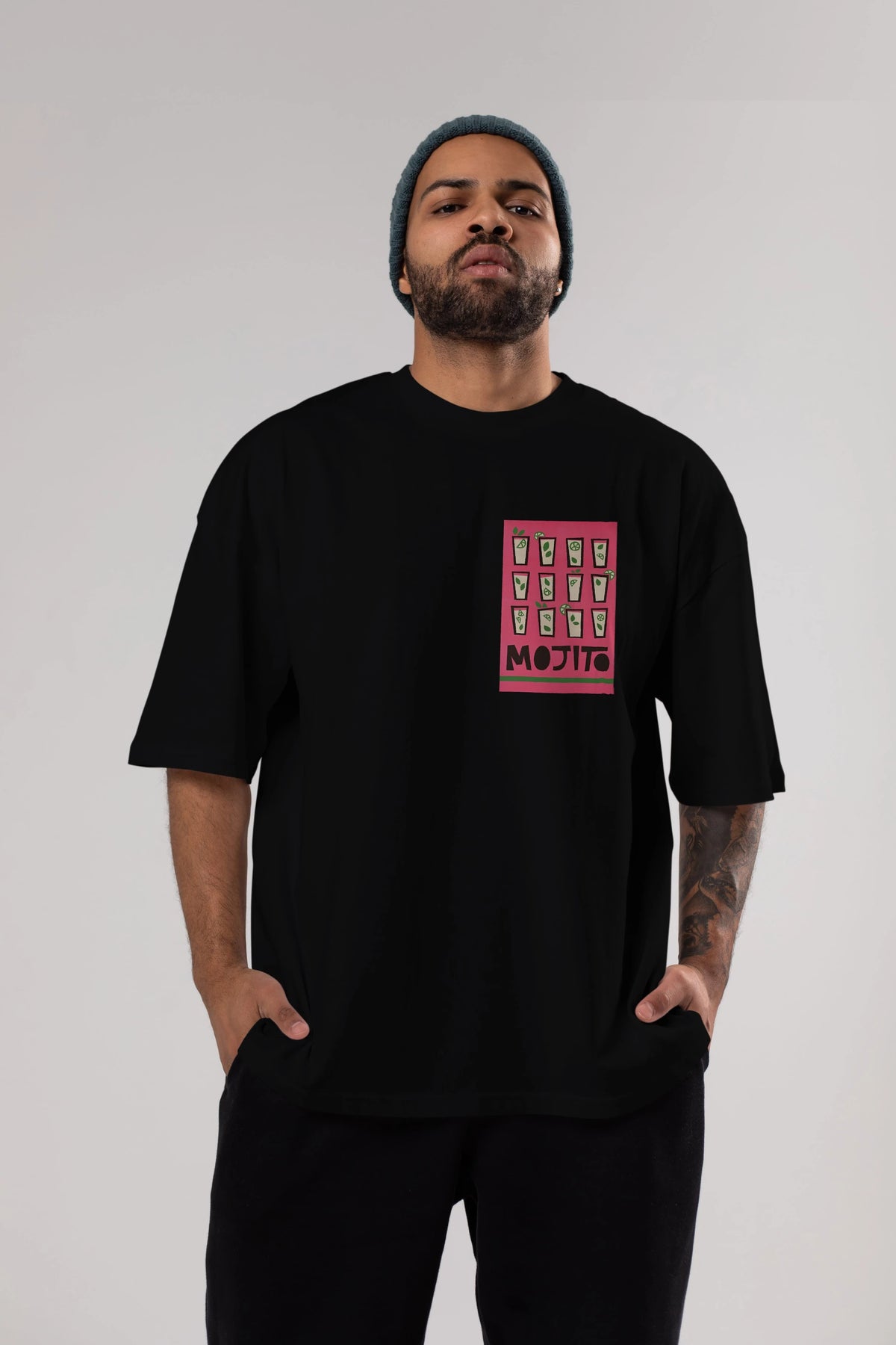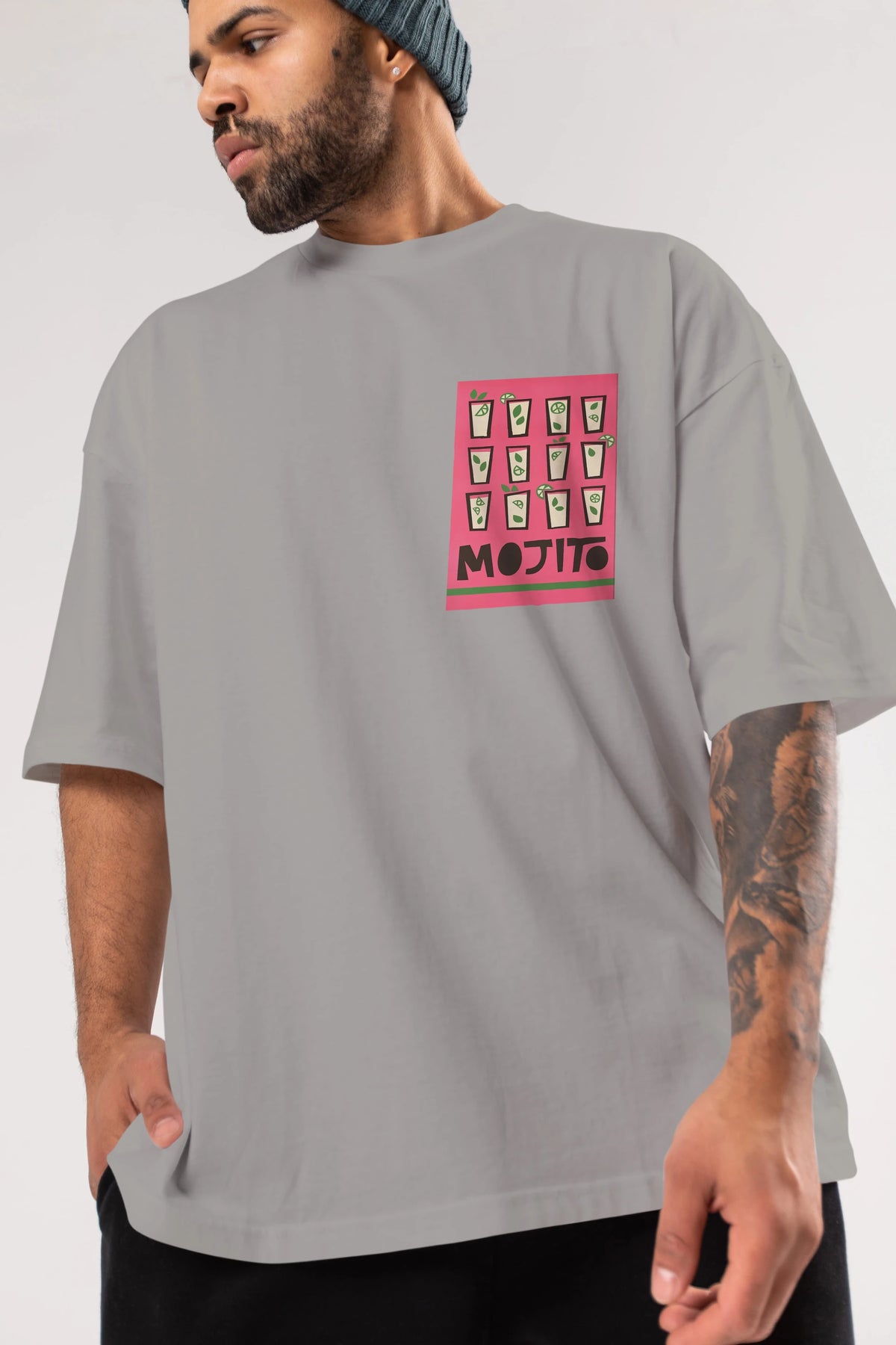 Mojito Ön Sol Baskılı Oversize t-shirt Erkek Kadın Unisex %100 Pamuk Bisiklet Yaka tişort