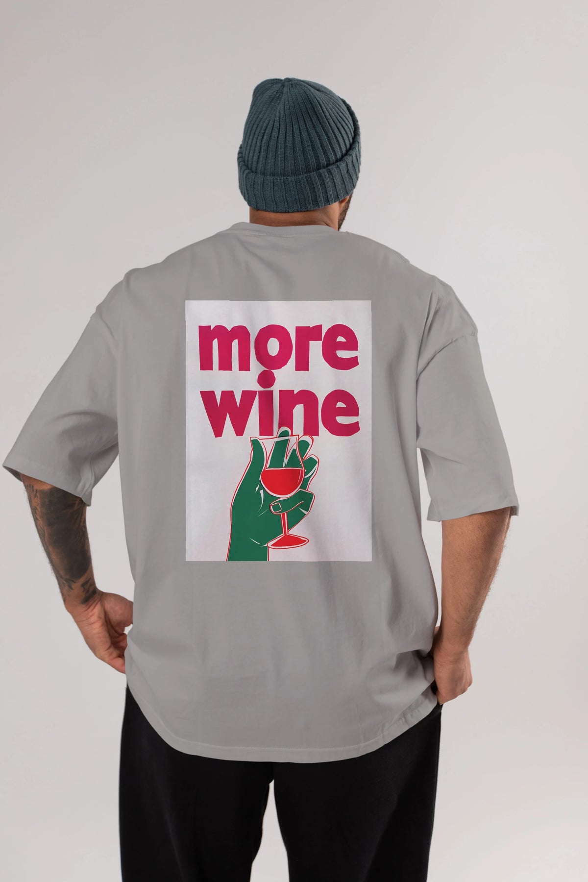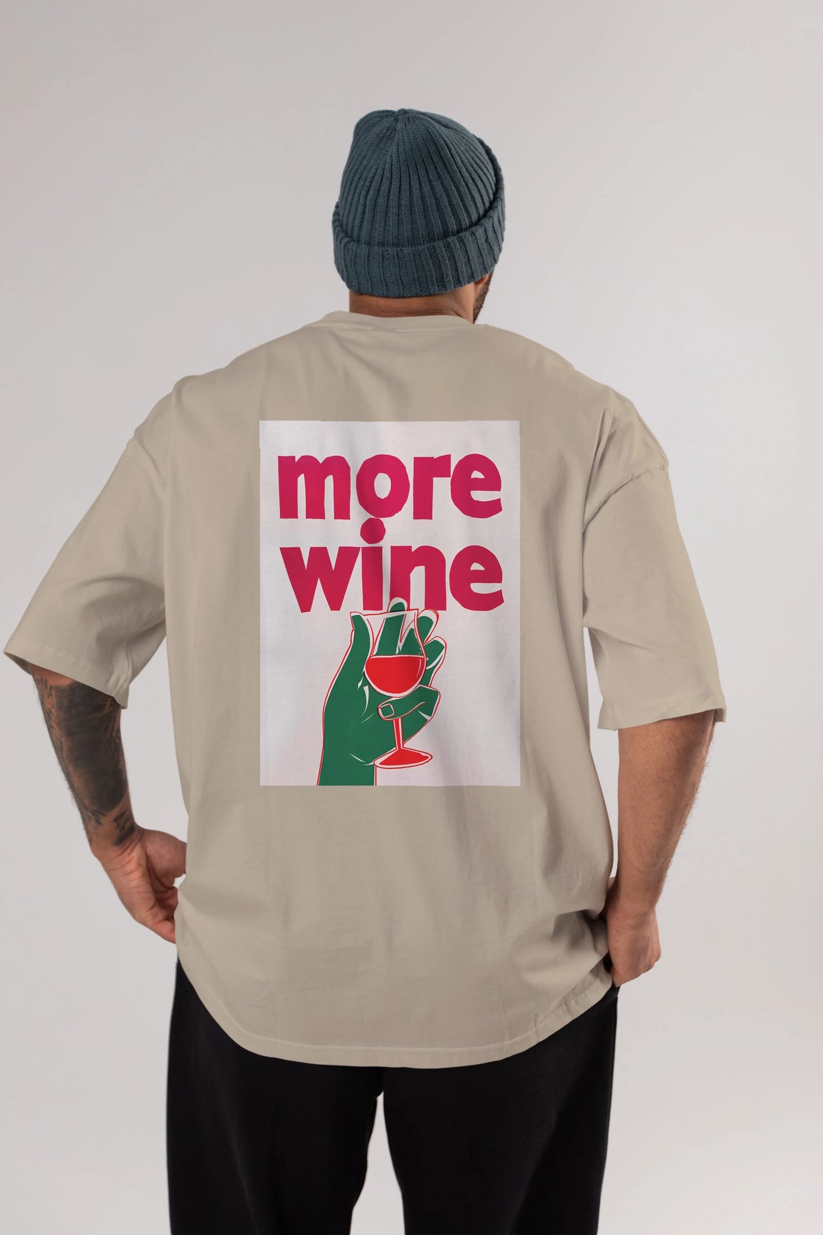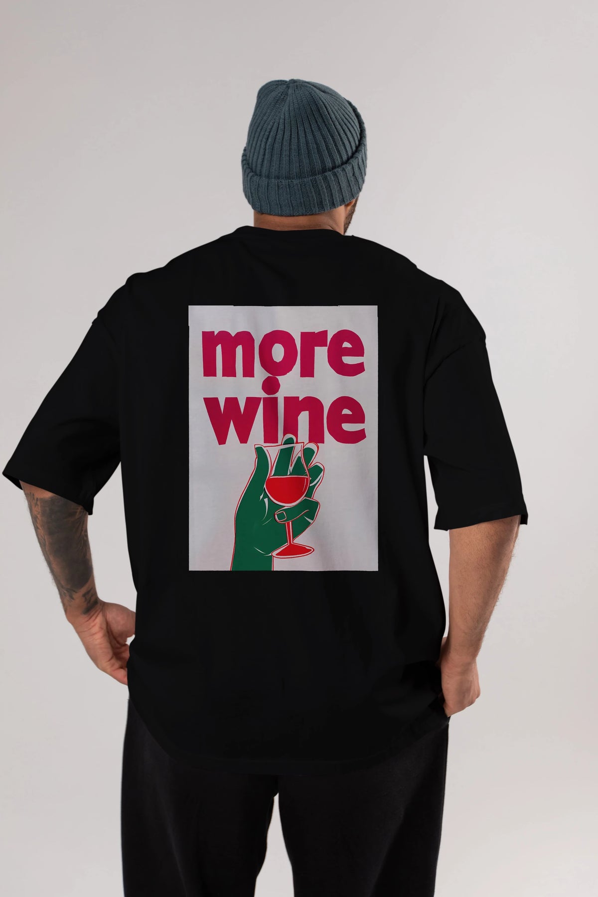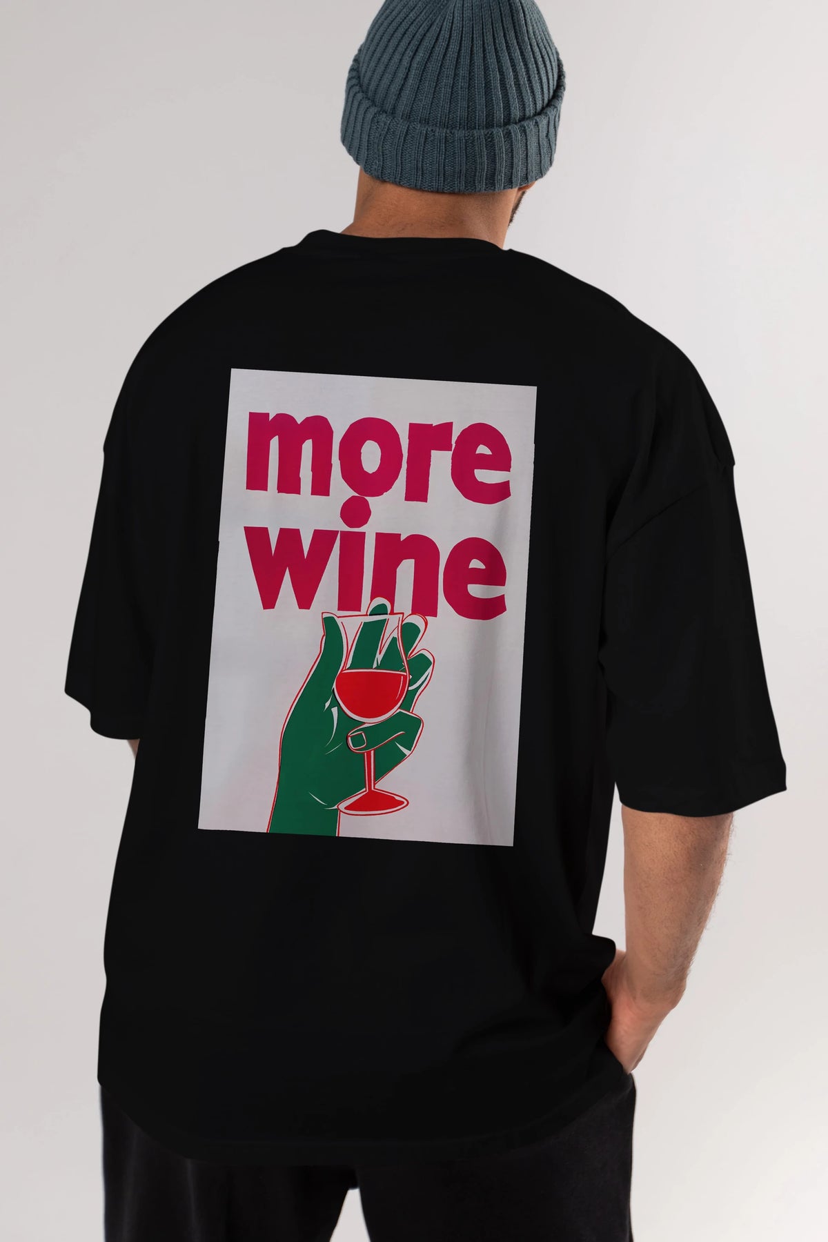 More Wine 3 Arka Baskılı Oversize t-shirt Erkek Kadın Unisex %100 Pamuk Bisiklet Yaka tişort