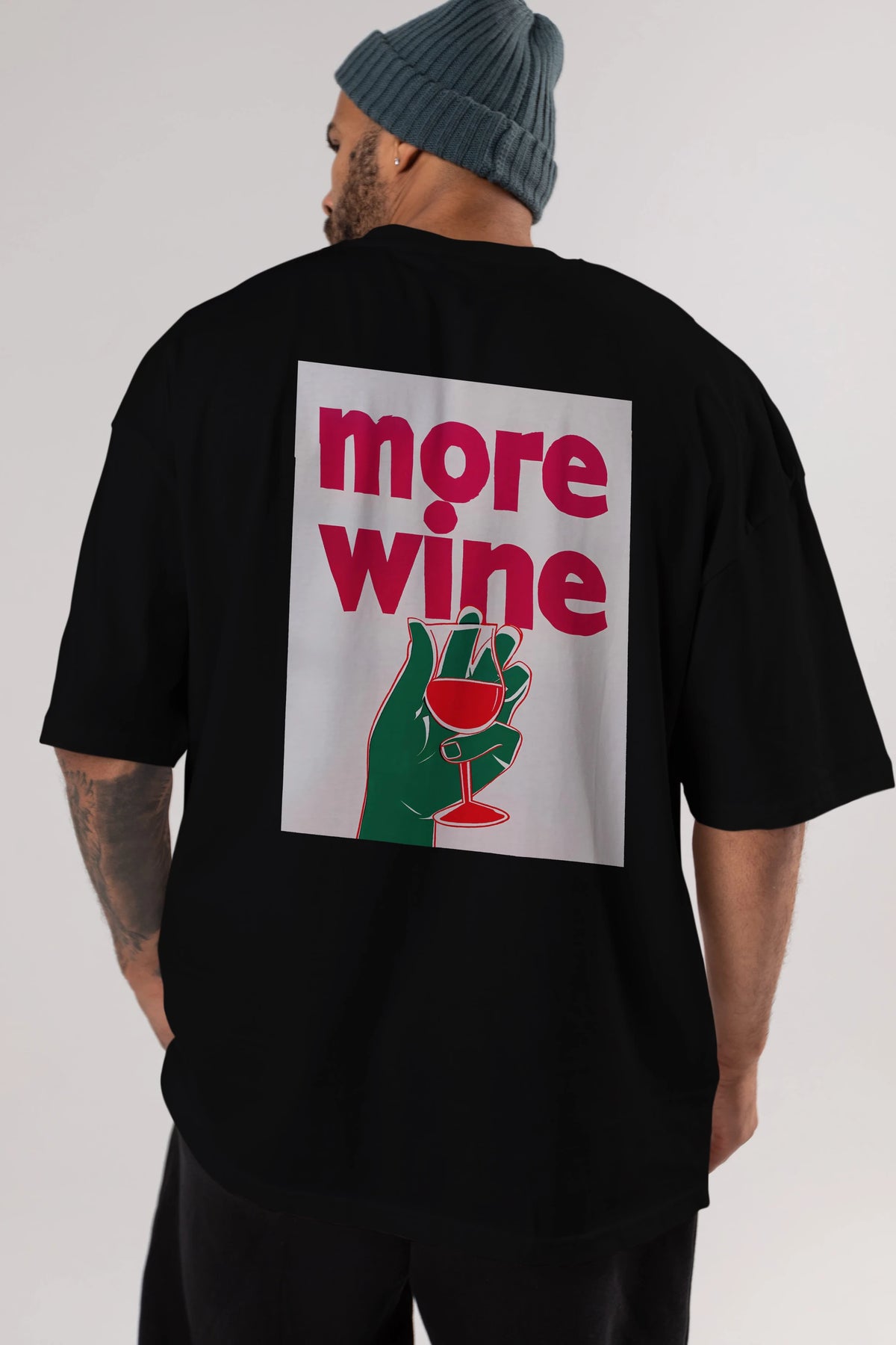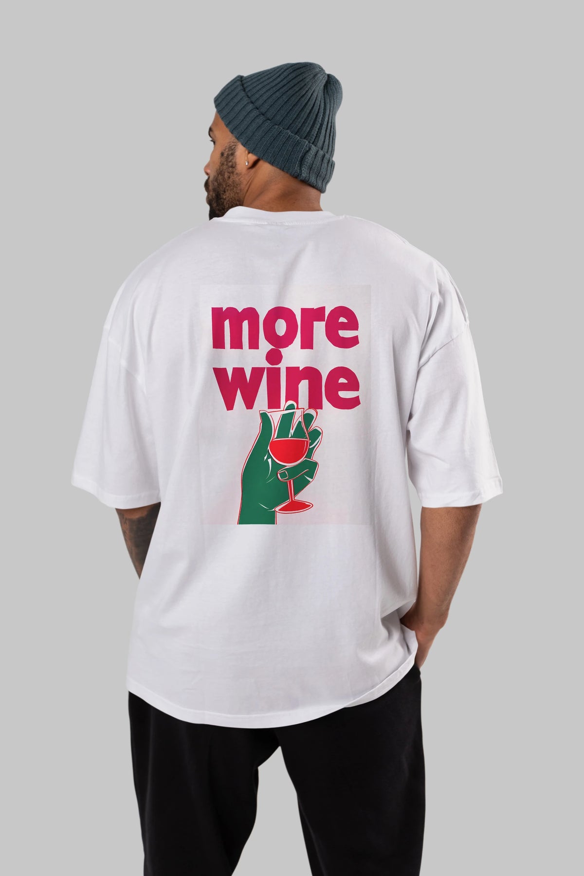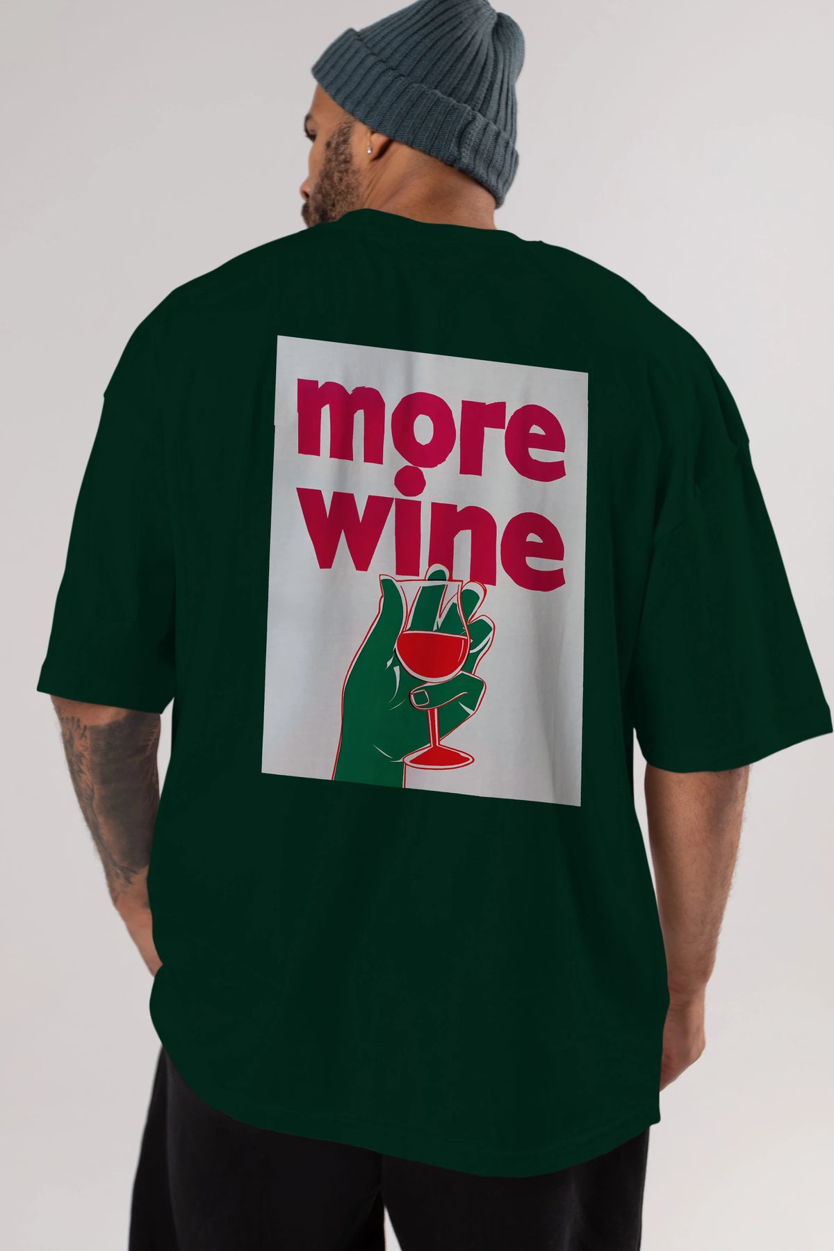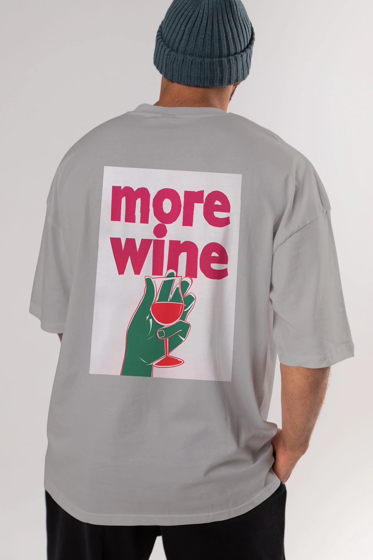 More Wine 3 Arka Baskılı Oversize t-shirt Erkek Kadın Unisex %100 Pamuk Bisiklet Yaka tişort