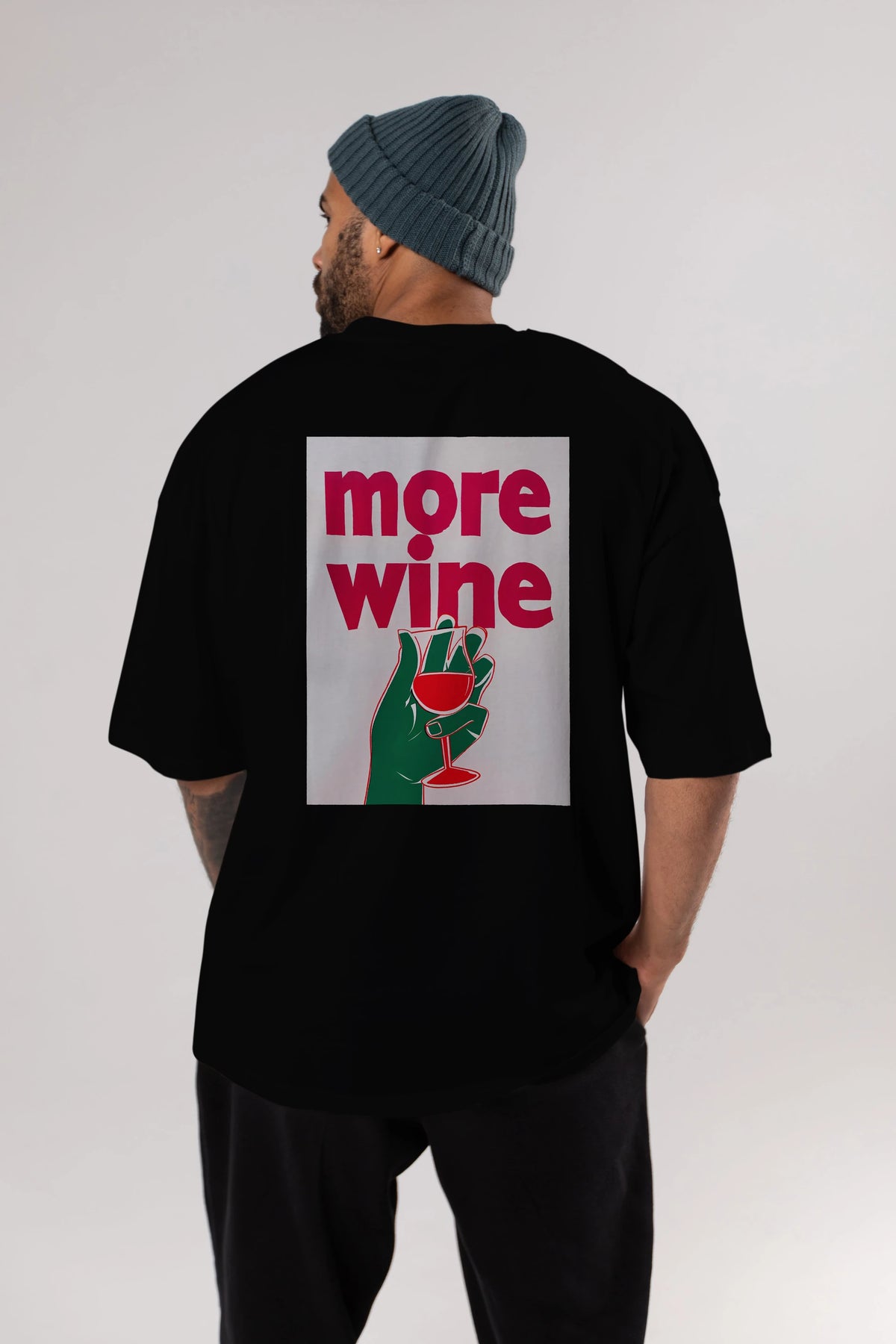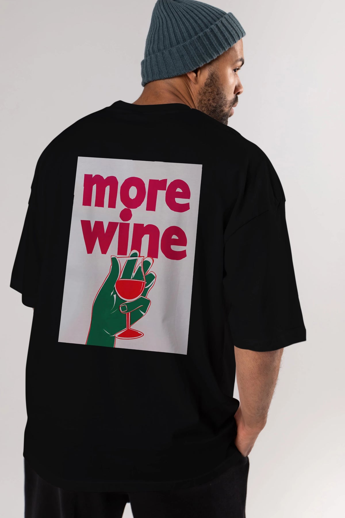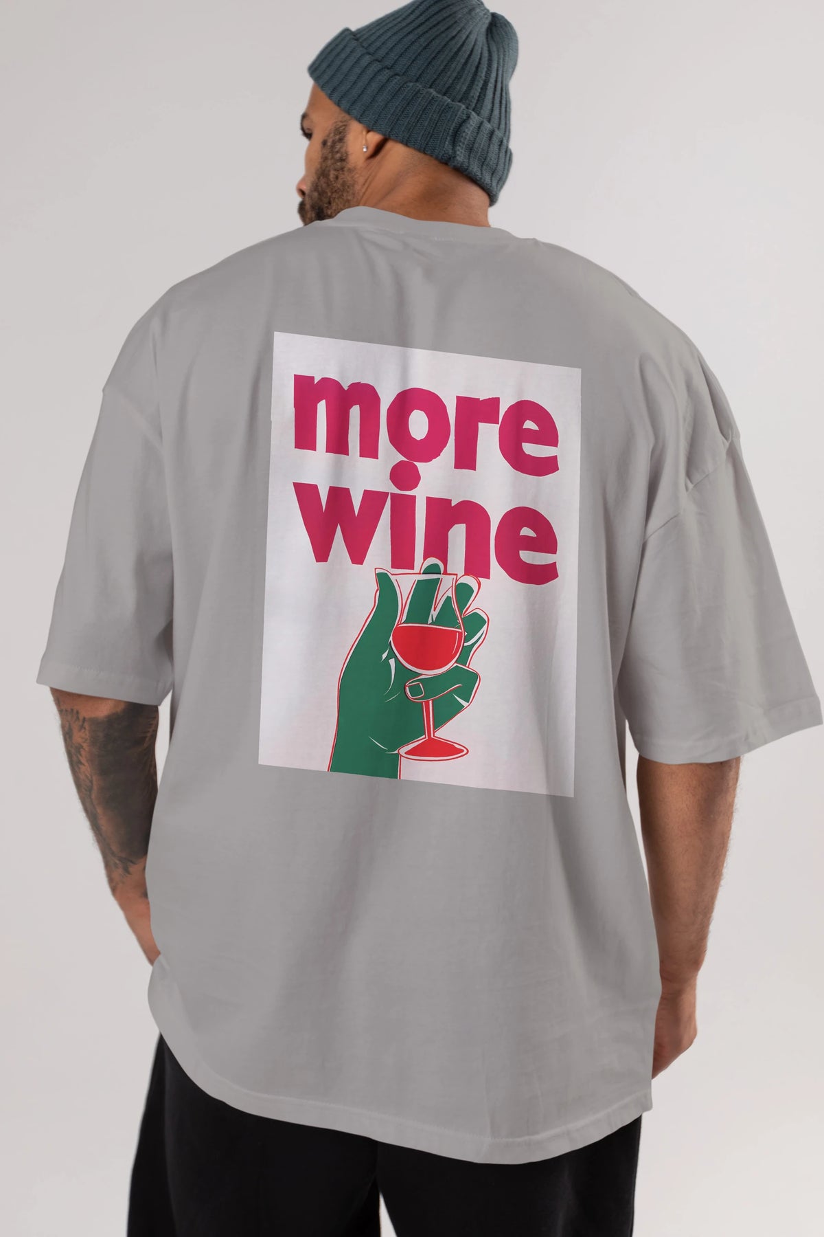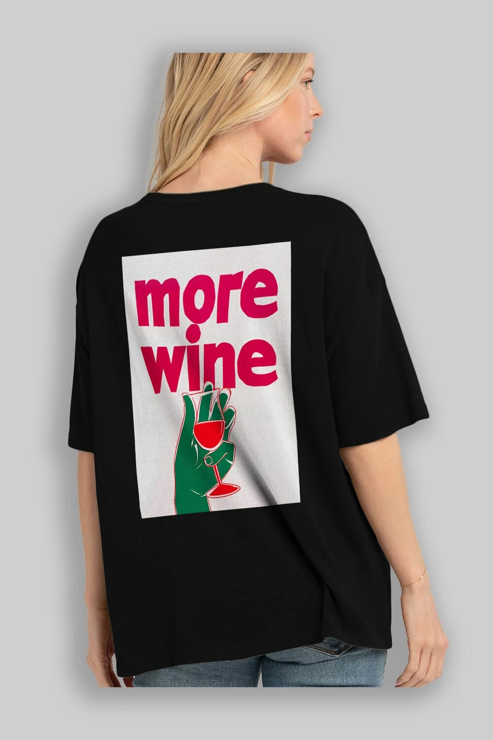 More Wine 3 Arka Baskılı Oversize t-shirt Erkek Kadın Unisex %100 Pamuk Bisiklet Yaka tişort