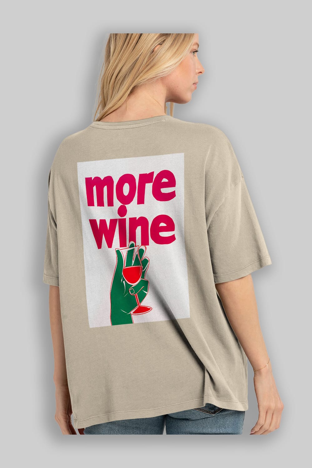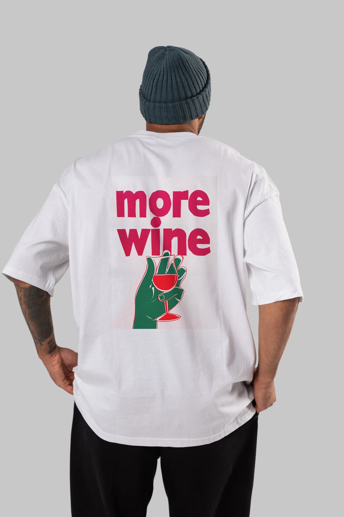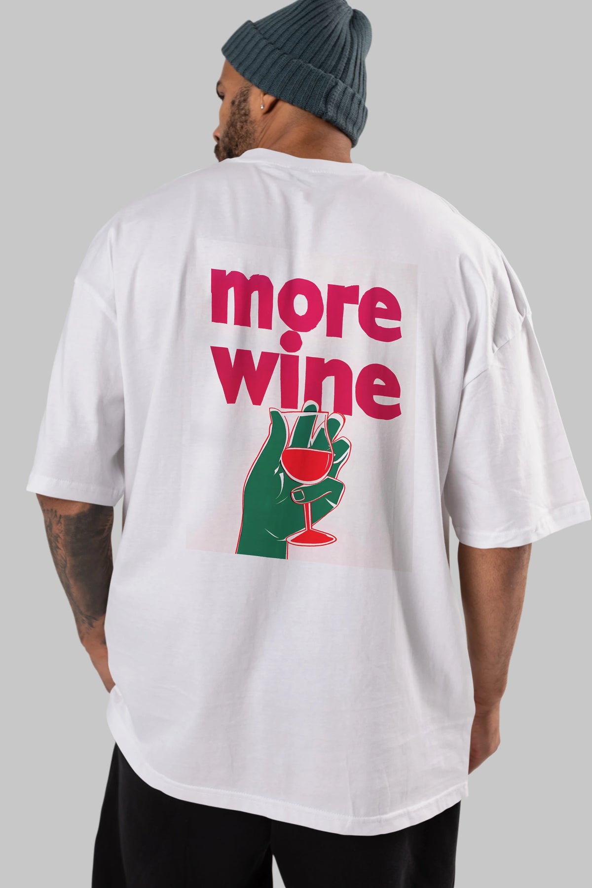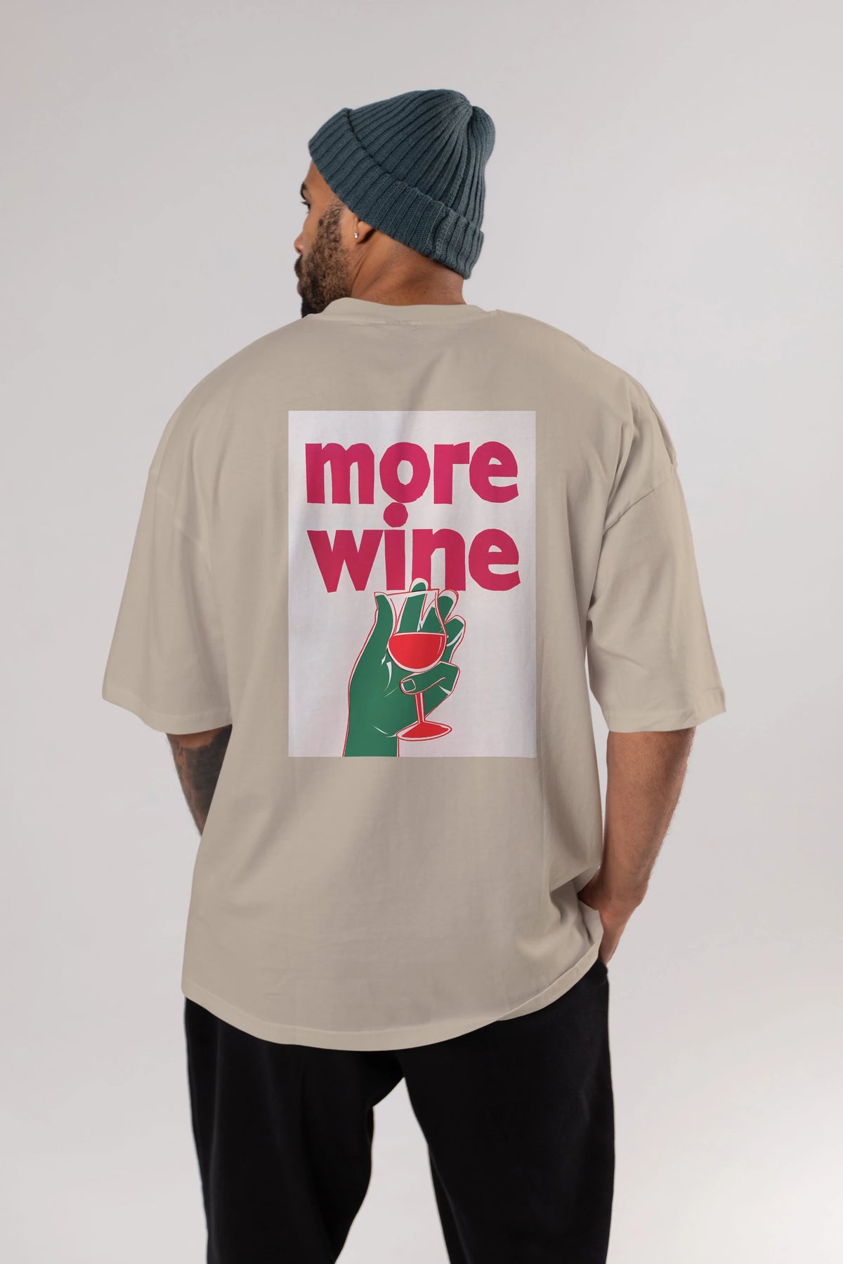 More Wine 3 Arka Baskılı Oversize t-shirt Erkek Kadın Unisex %100 Pamuk Bisiklet Yaka tişort