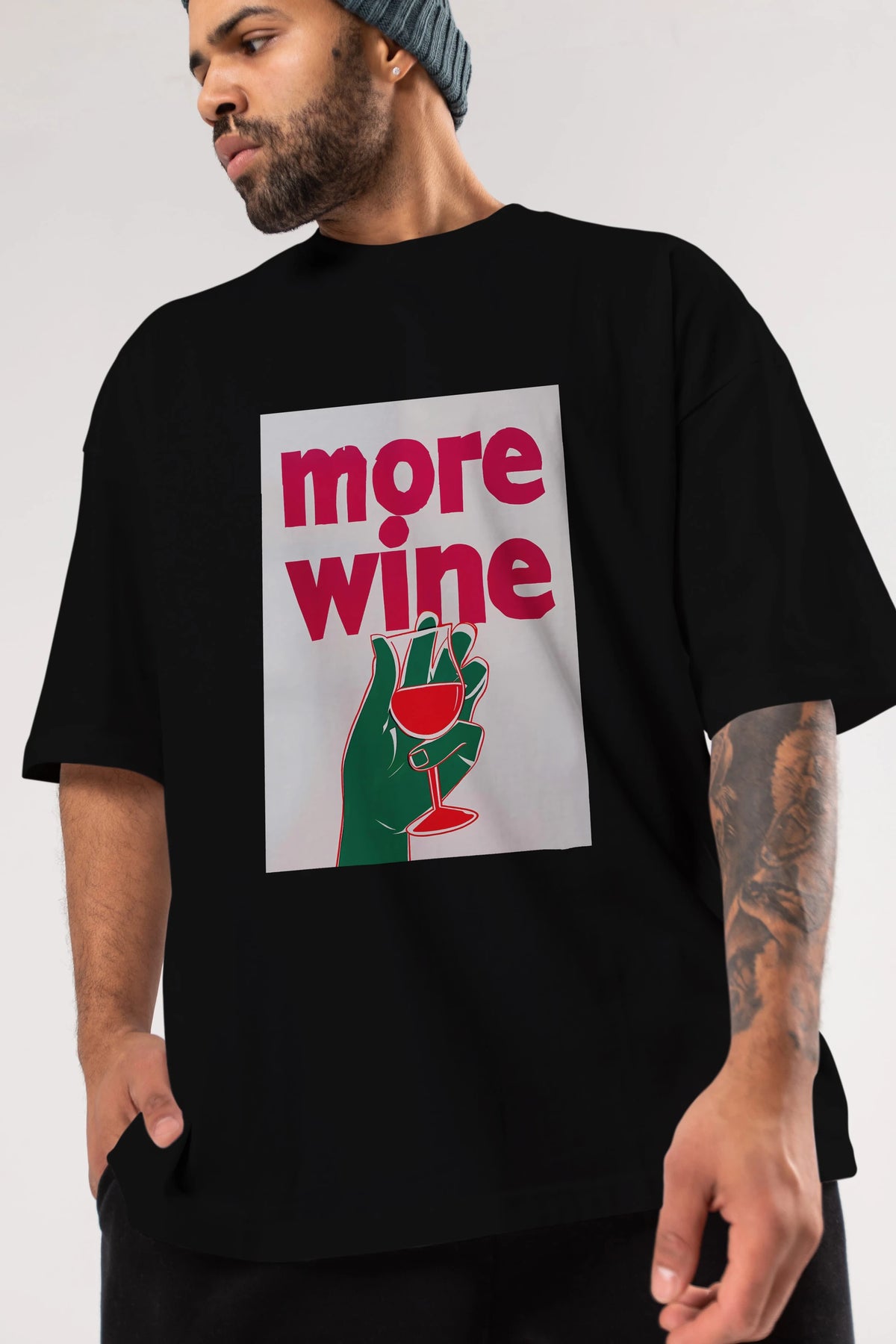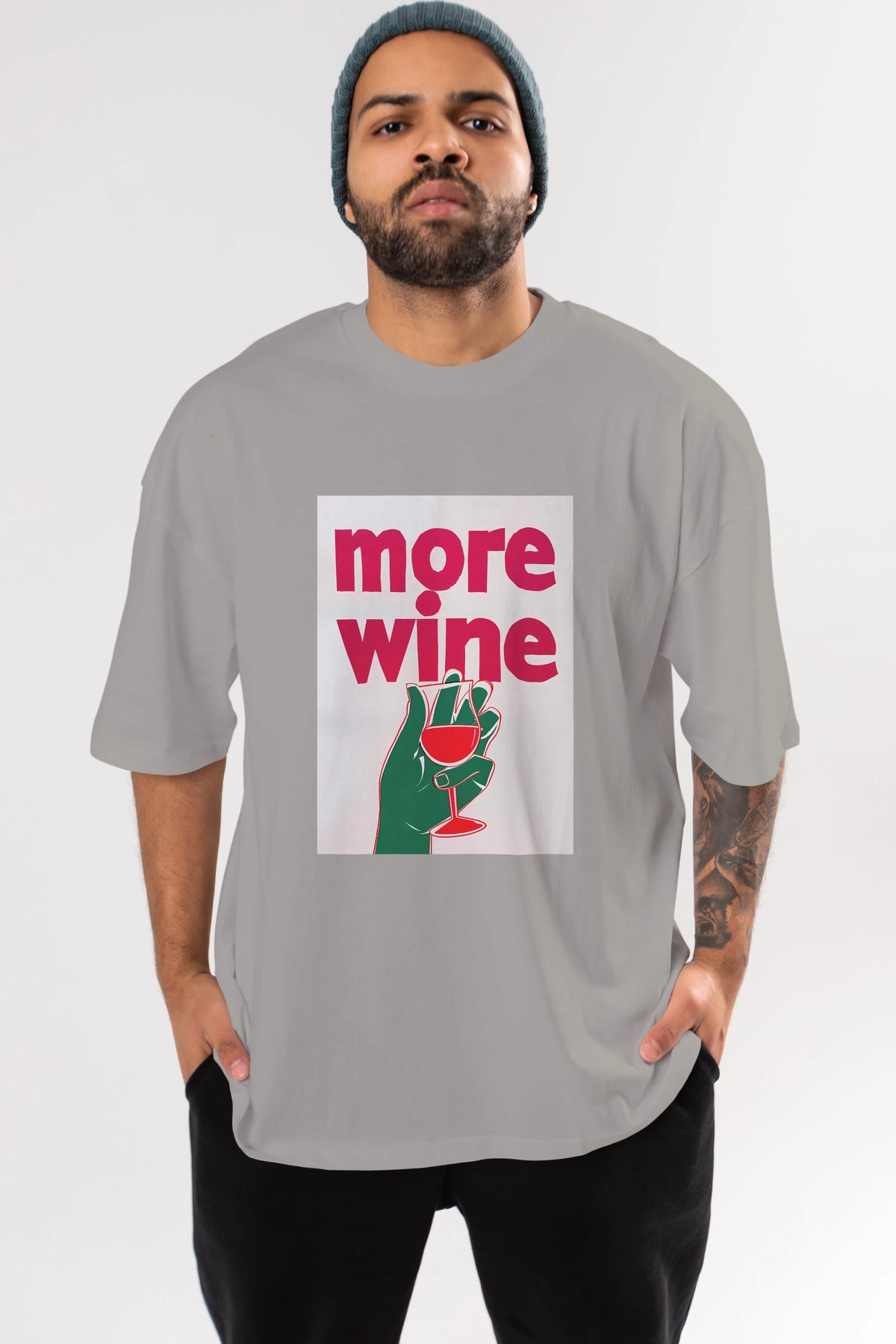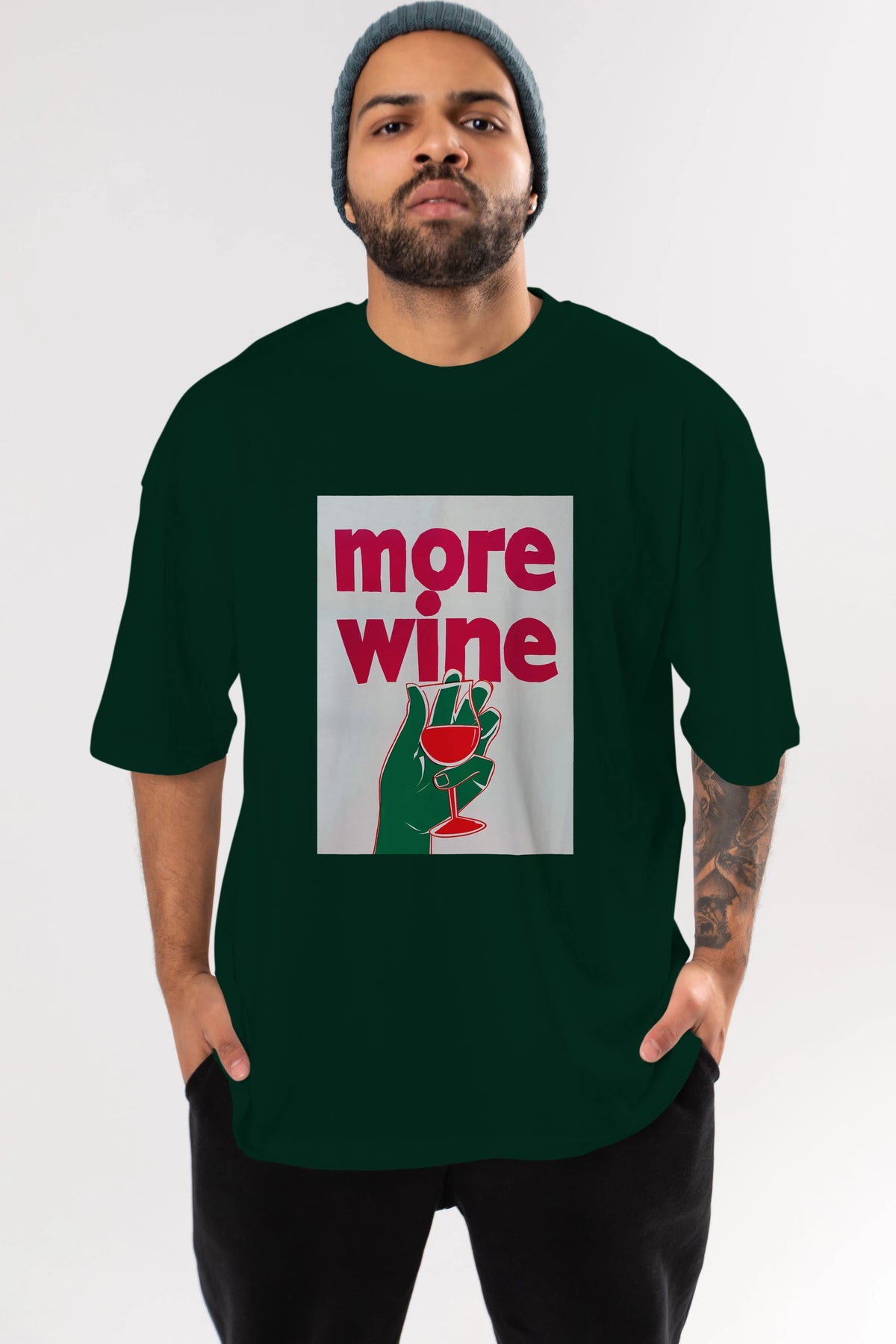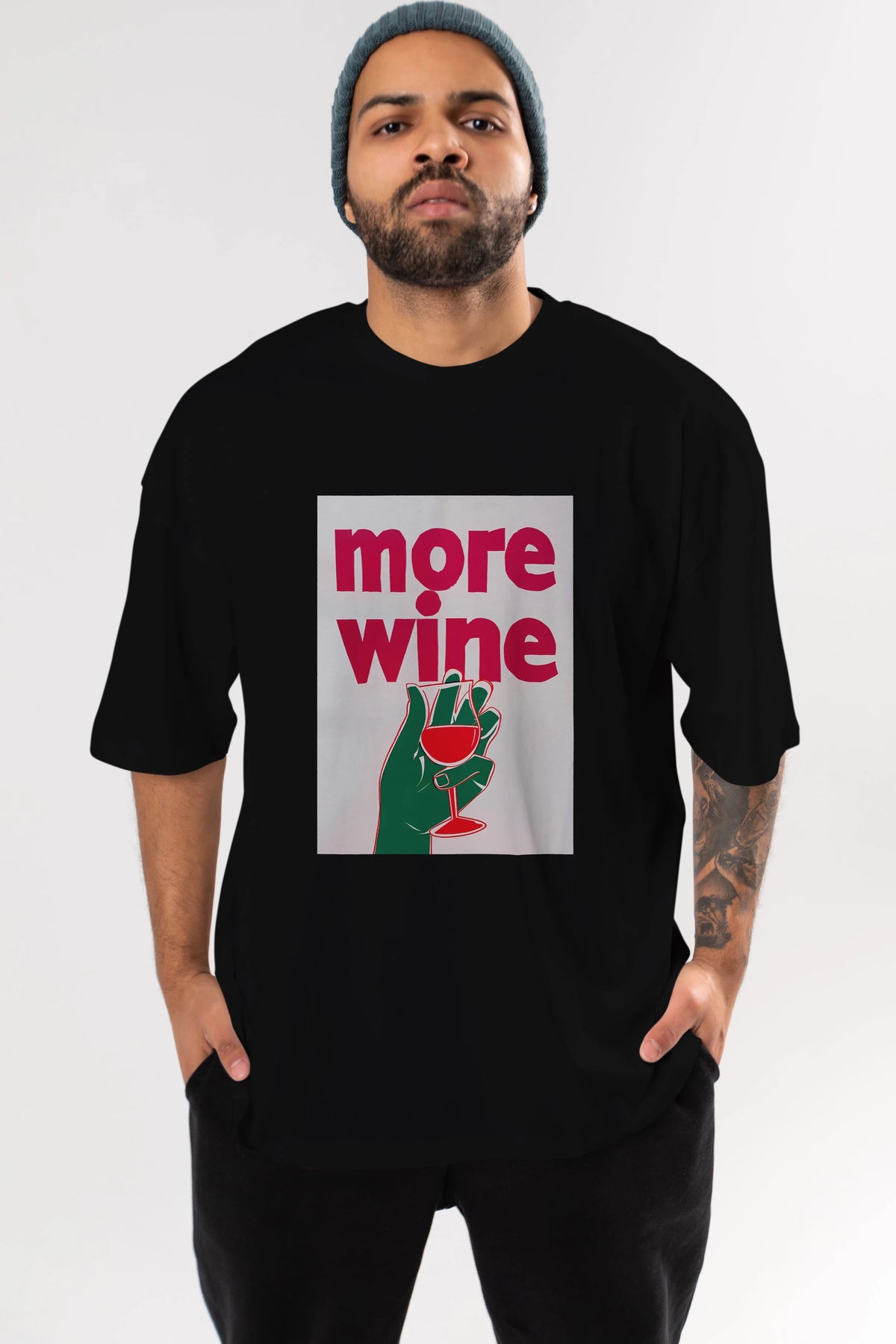 More Wine 3 Ön Baskılı Oversize t-shirt Erkek Kadın Unisex %100 Pamuk Bisiklet Yaka tişort
