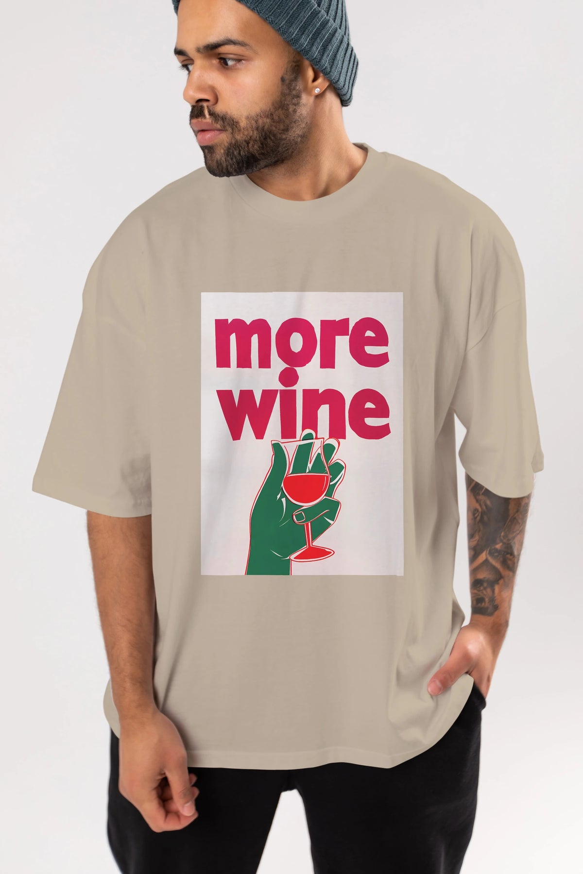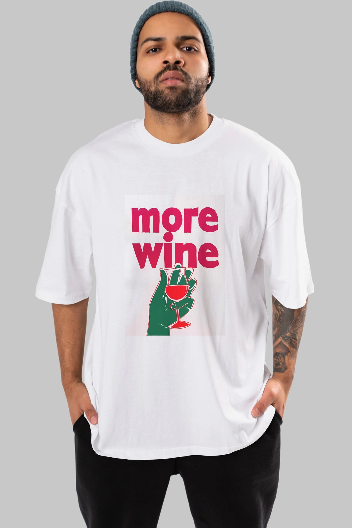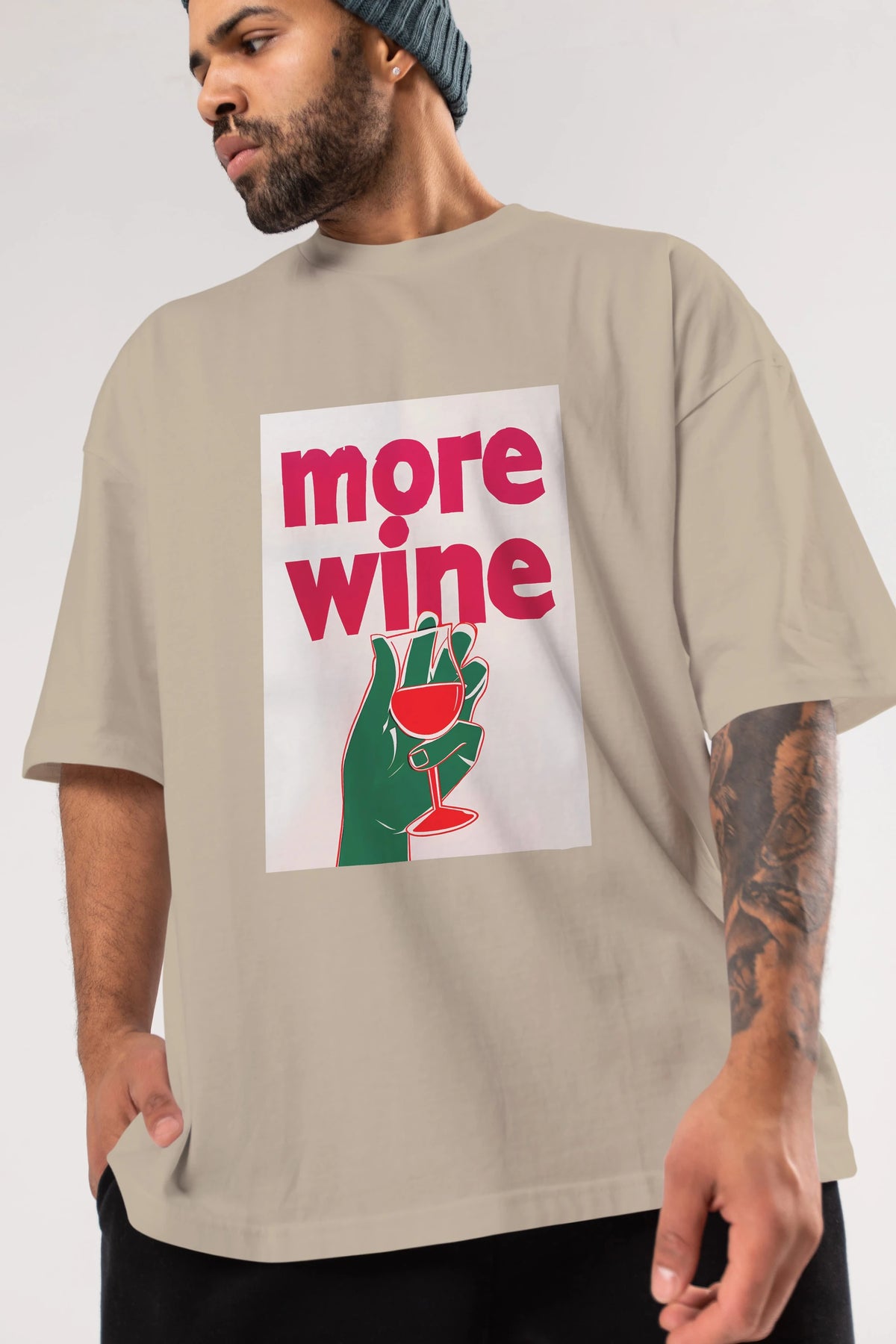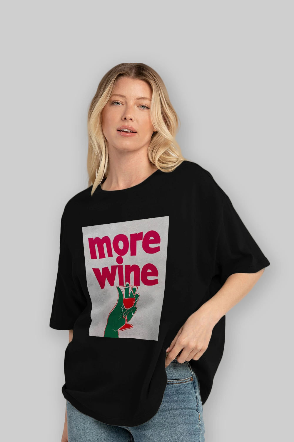 More Wine 3 Ön Baskılı Oversize t-shirt Erkek Kadın Unisex %100 Pamuk Bisiklet Yaka tişort