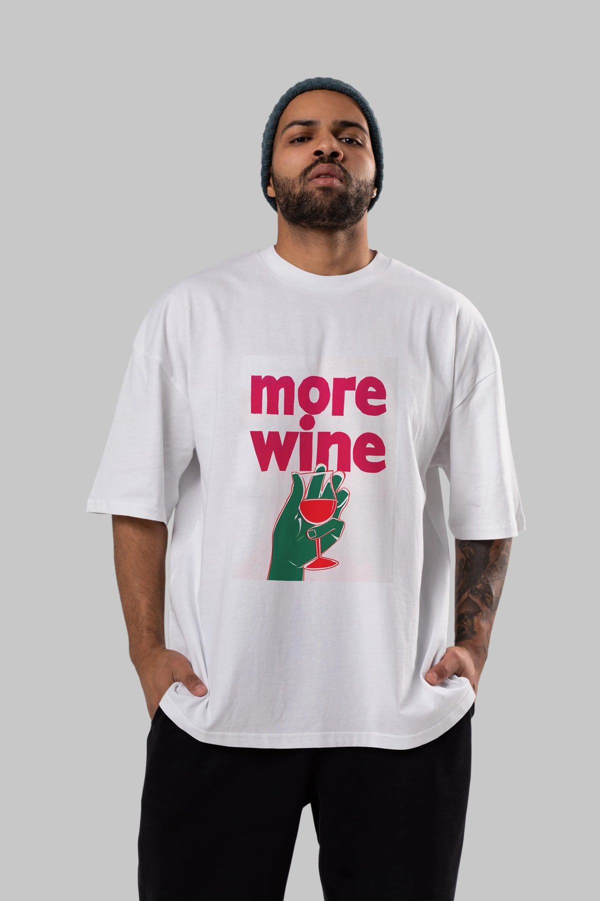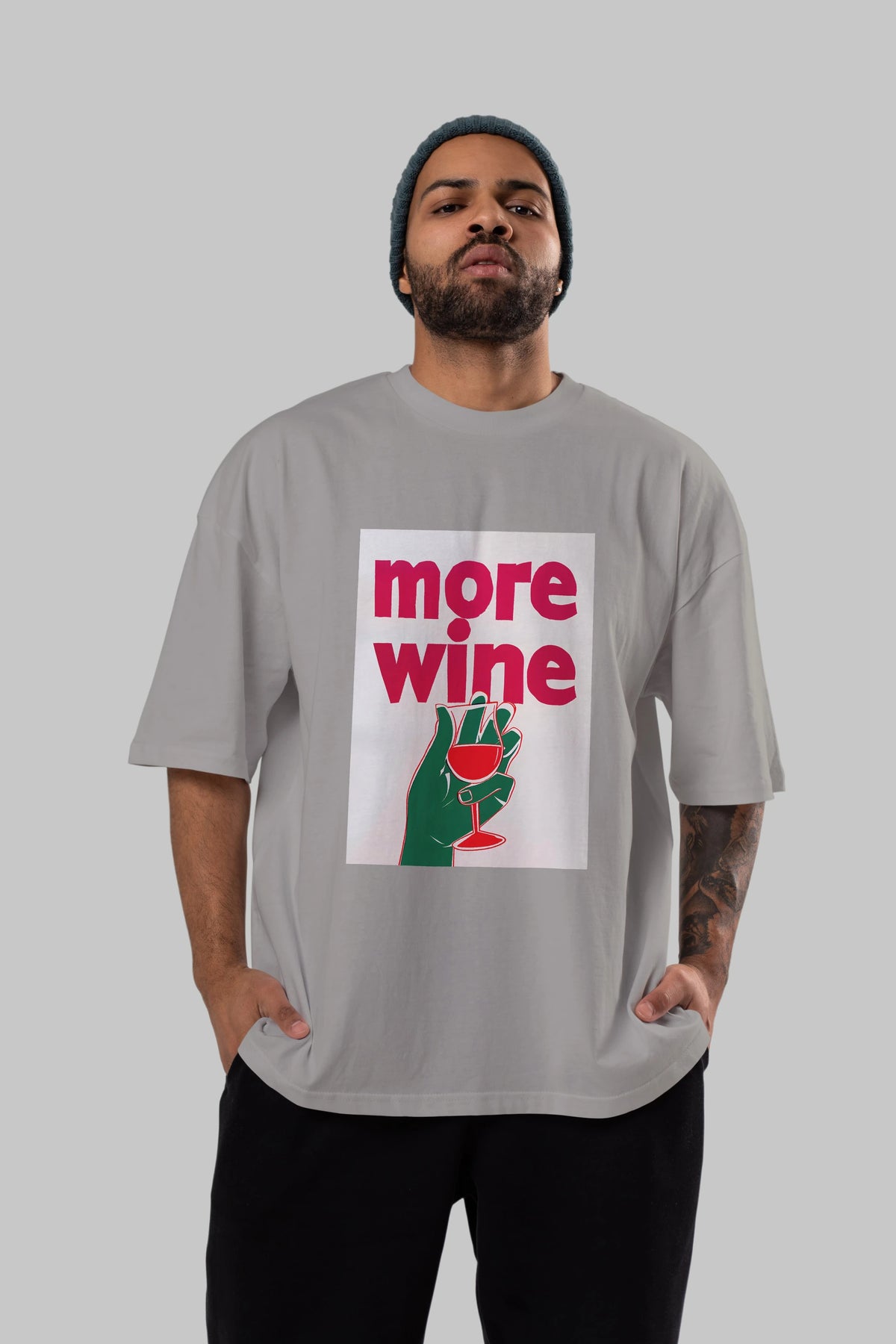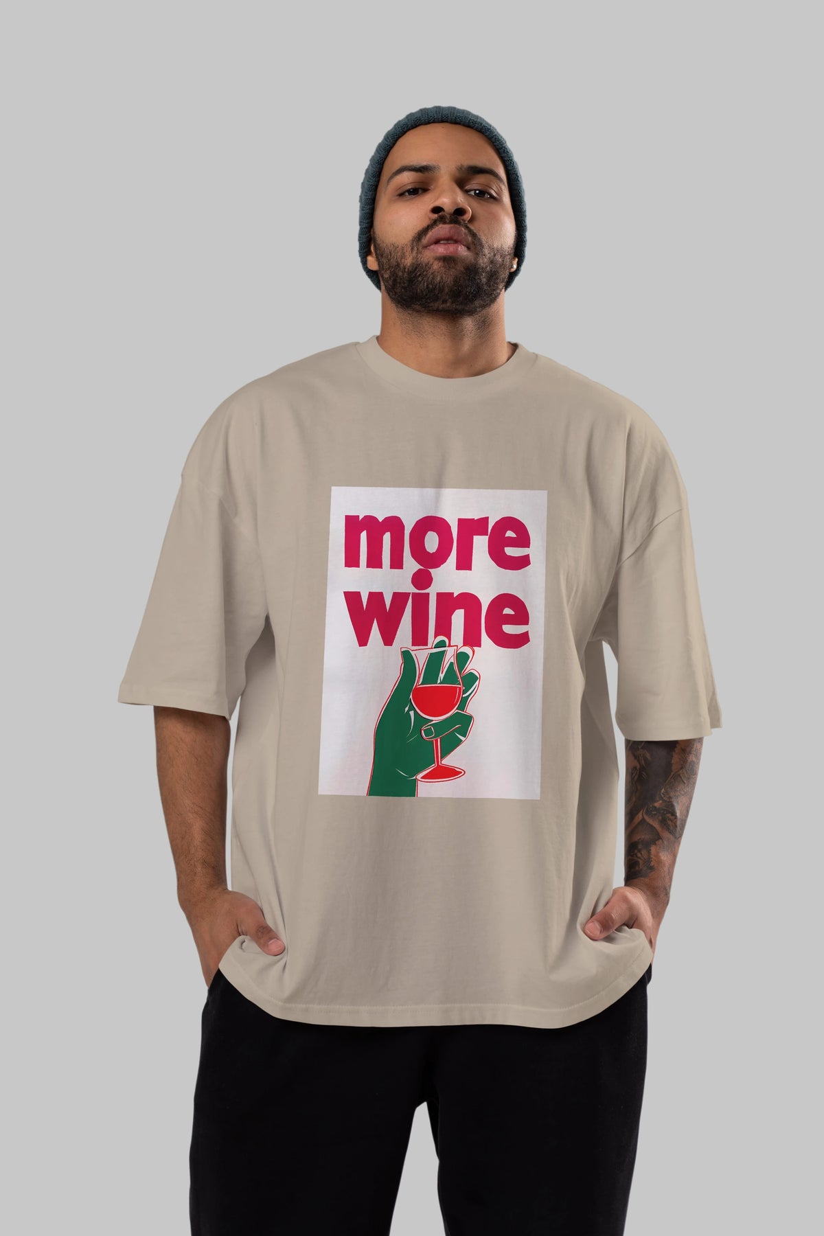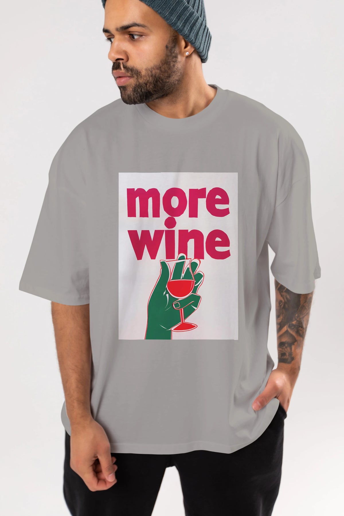 More Wine 3 Ön Baskılı Oversize t-shirt Erkek Kadın Unisex %100 Pamuk Bisiklet Yaka tişort