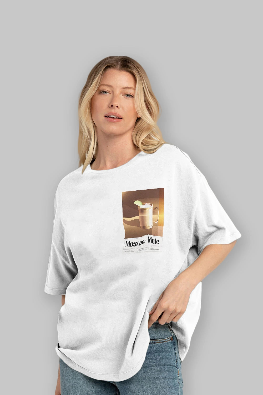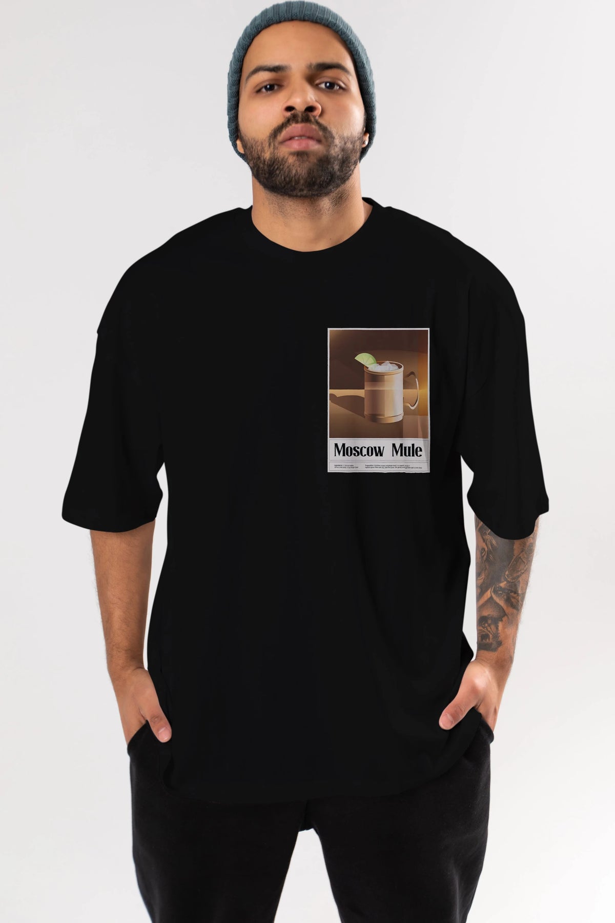 Moscow Mule 3 Ön Sol Baskılı Oversize t-shirt Erkek Kadın Unisex %100 Pamuk Bisiklet Yaka tişort