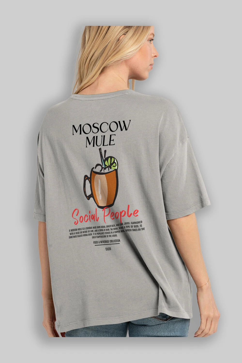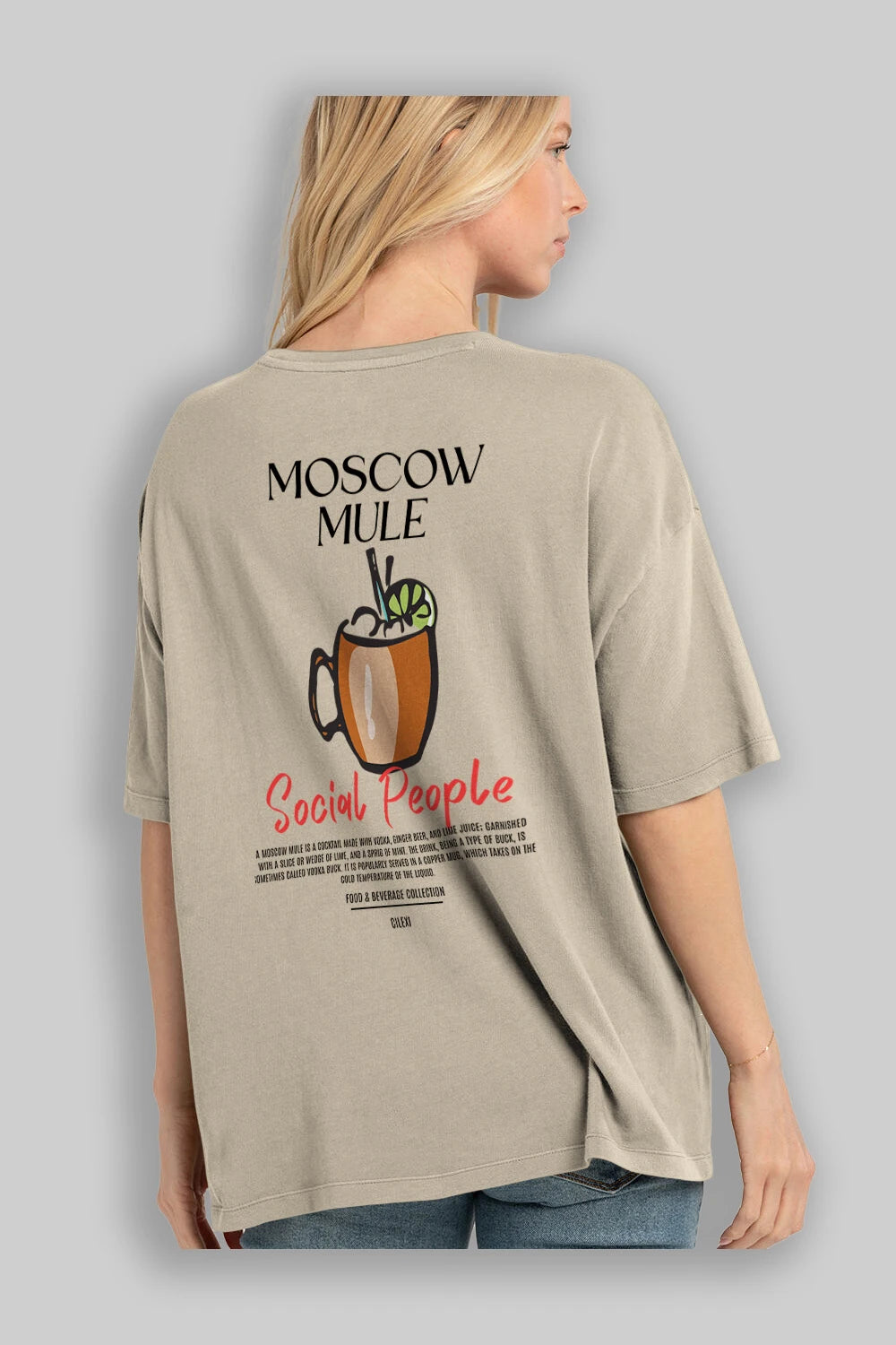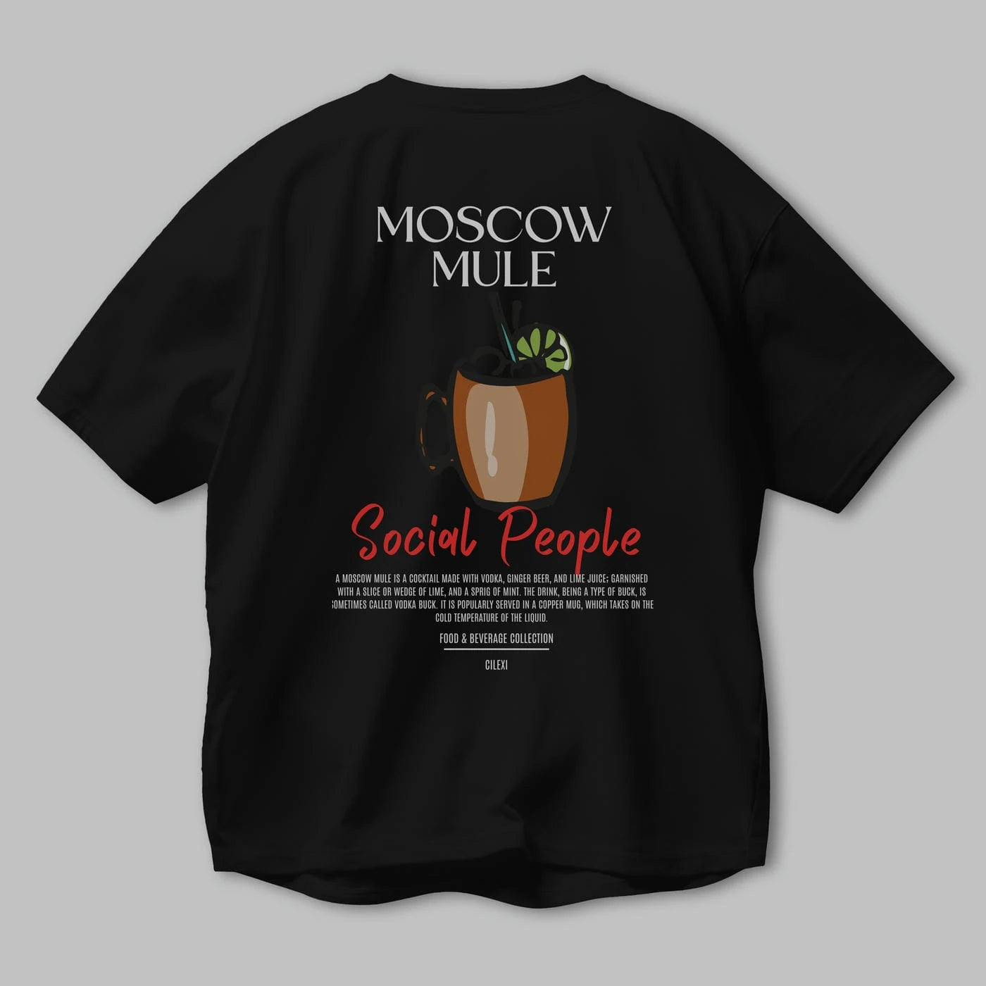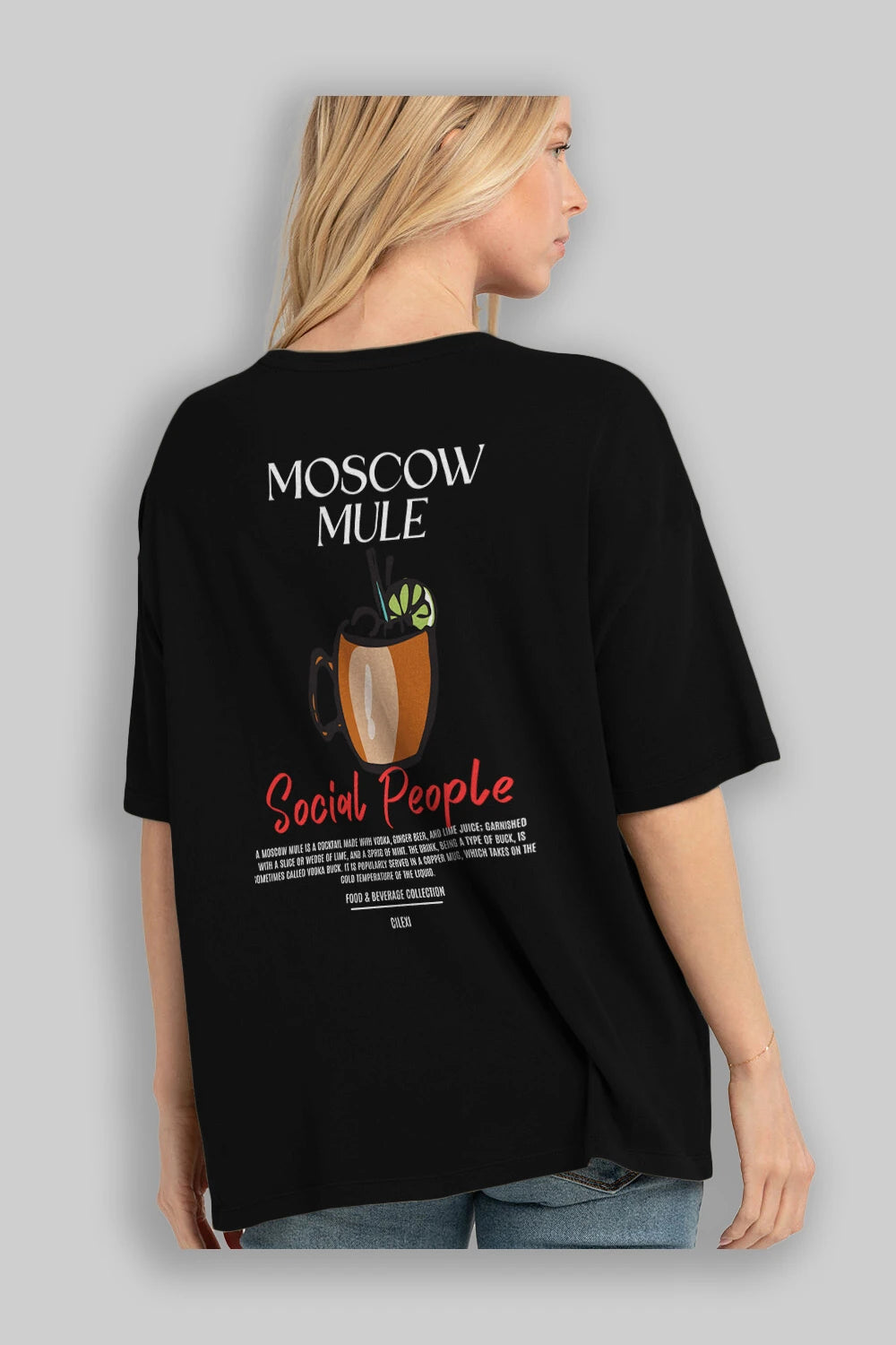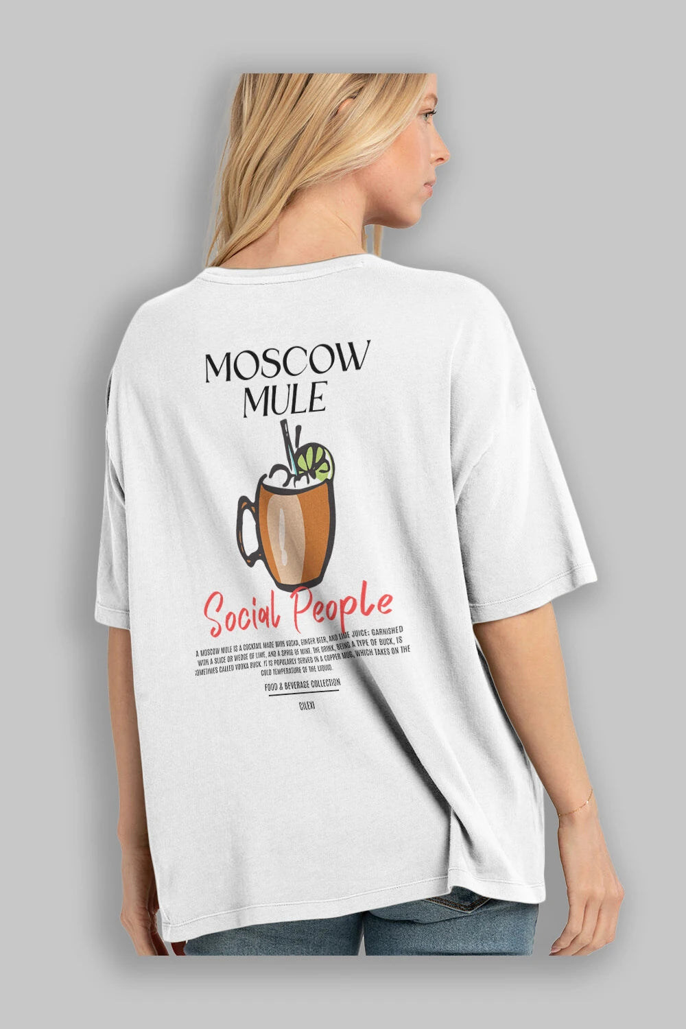 Moscow Mule Kokteyl Serisi Baskılı Oversize t-shirt Erkek Kadın Unisex %100 Pamuk Bisiklet Yaka tişort