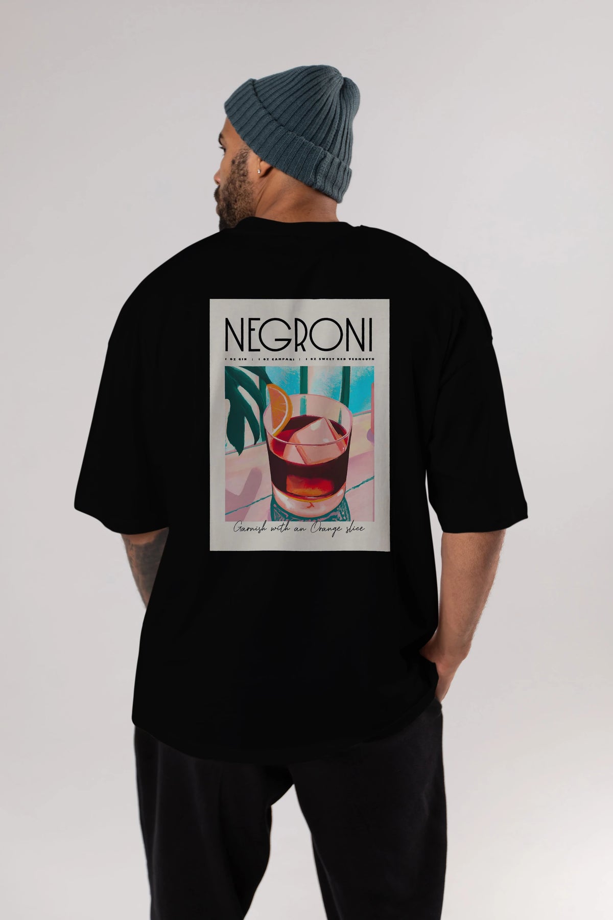 Negroni 4 Arka Baskılı Oversize t-shirt Erkek Kadın Unisex %100 Pamuk Bisiklet Yaka tişort