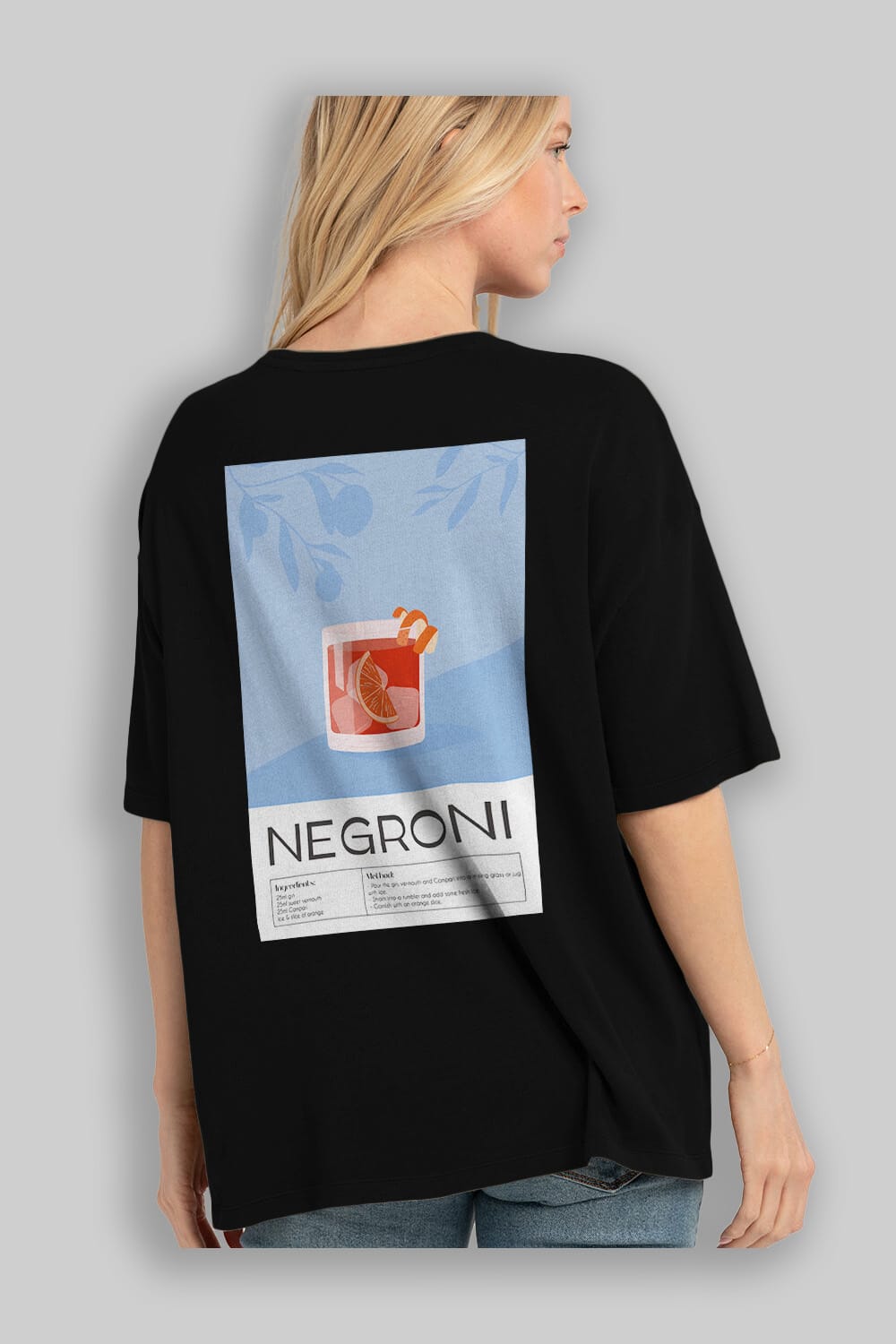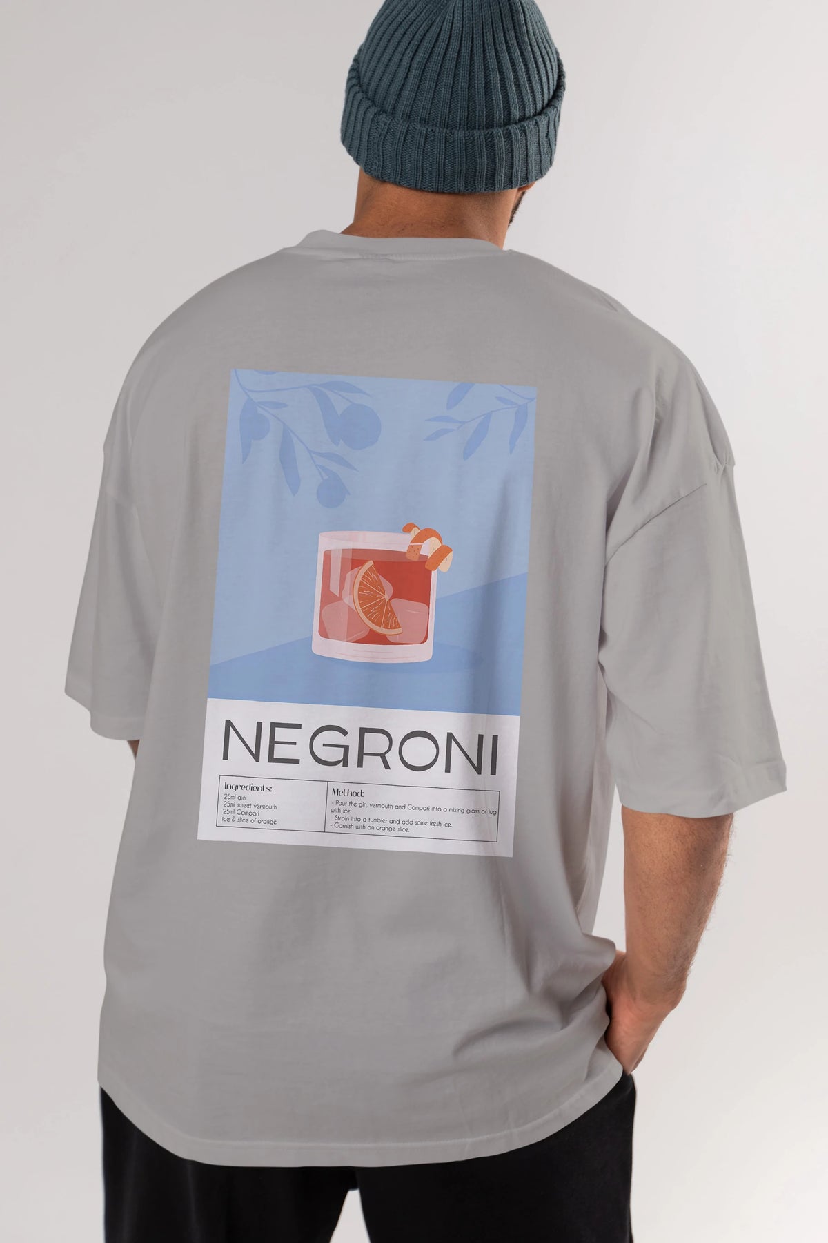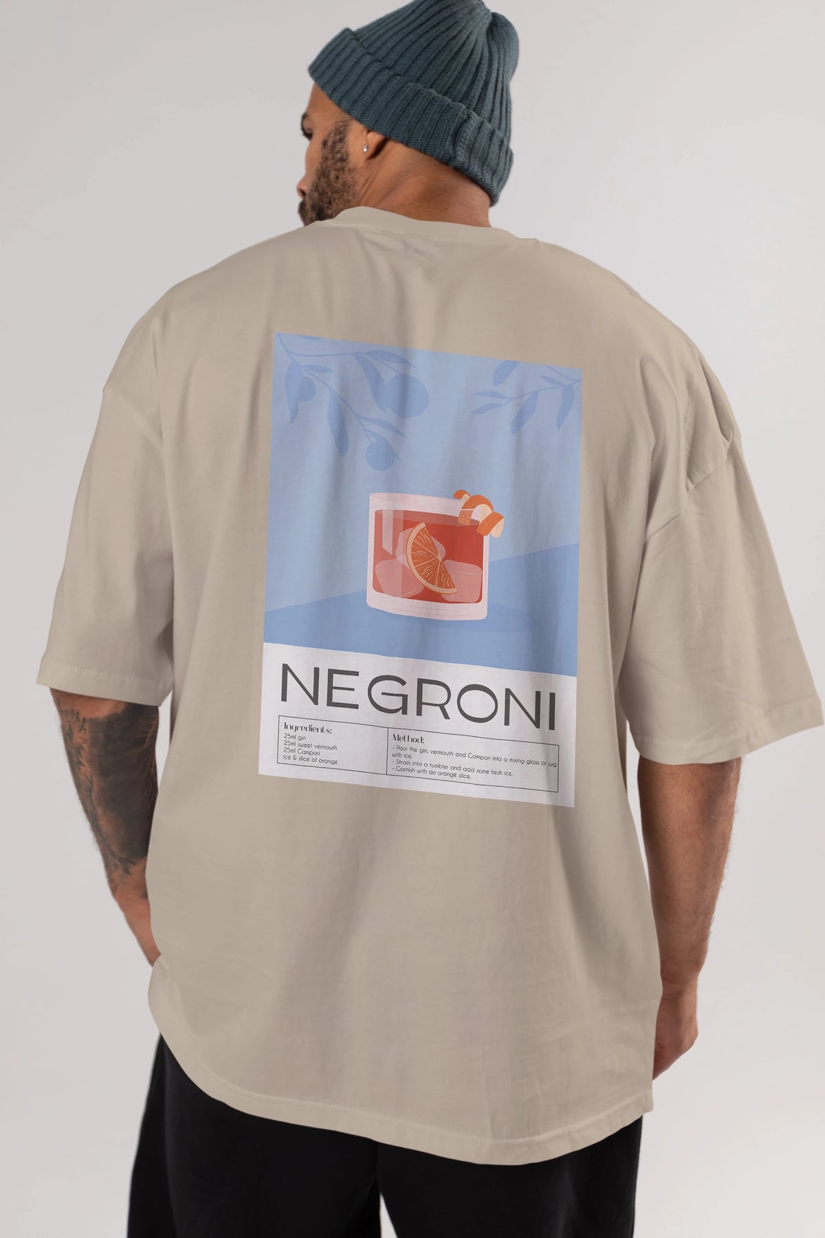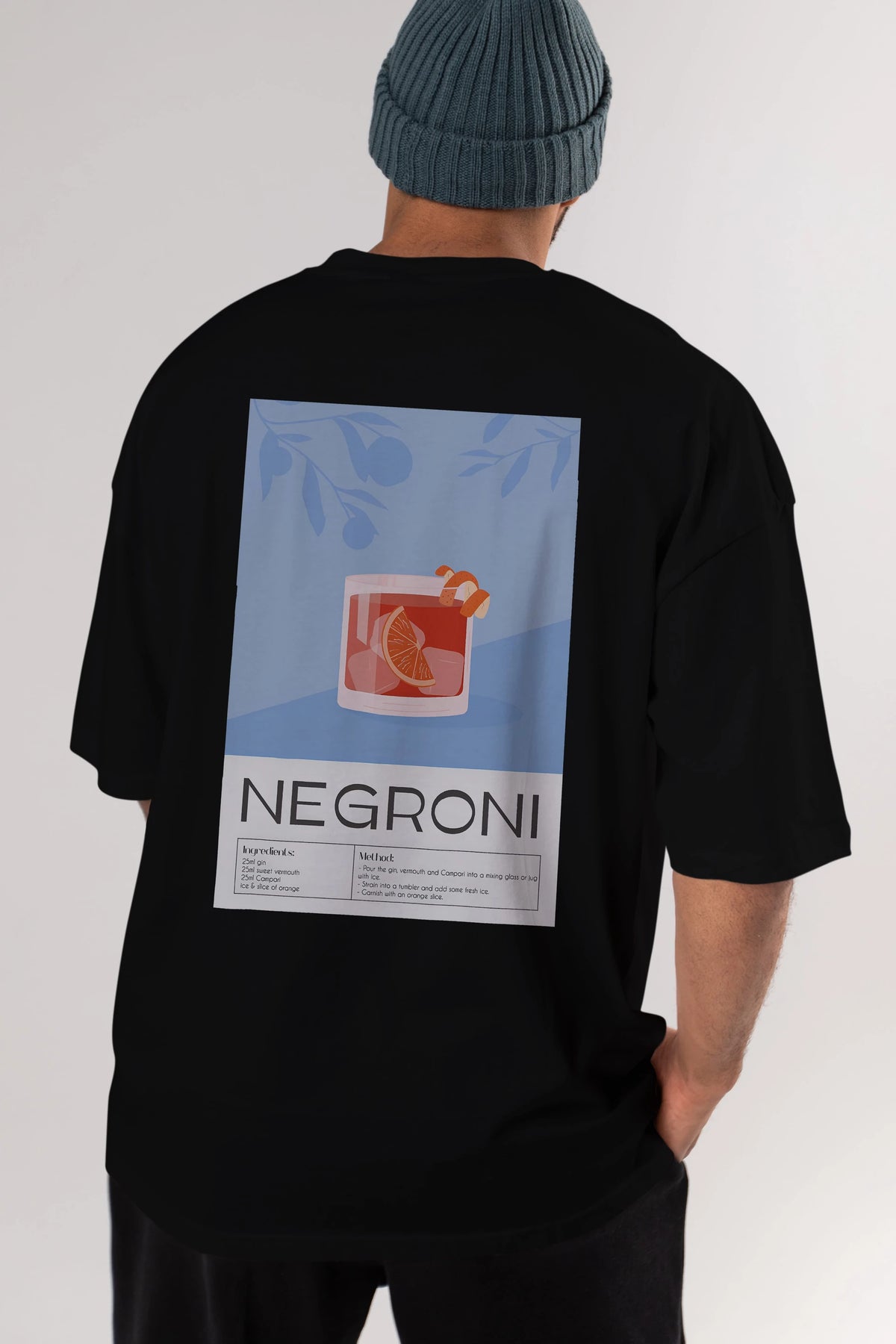 Negroni Arka Baskılı Oversize t-shirt Erkek Kadın Unisex %100 Pamuk Bisiklet Yaka tişort