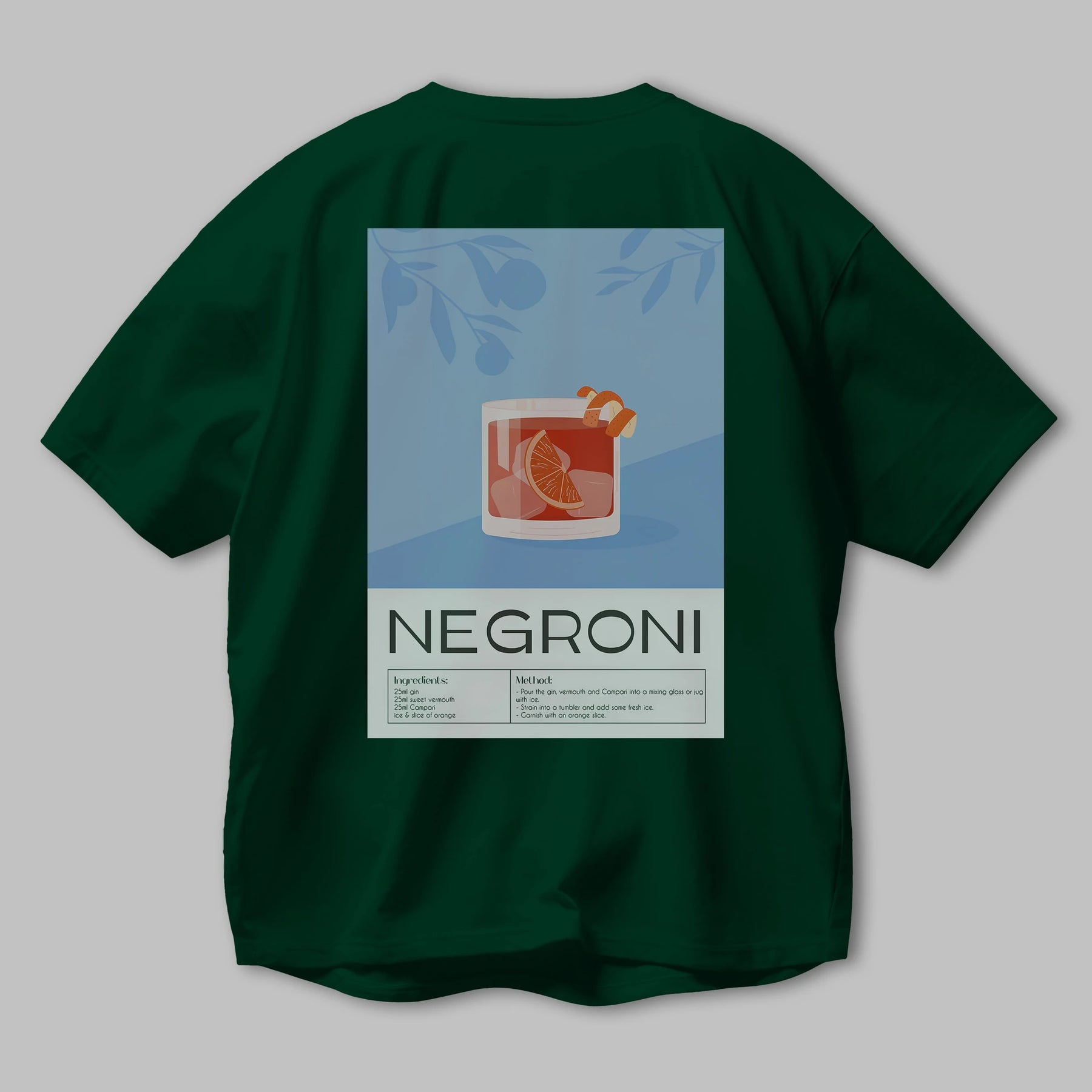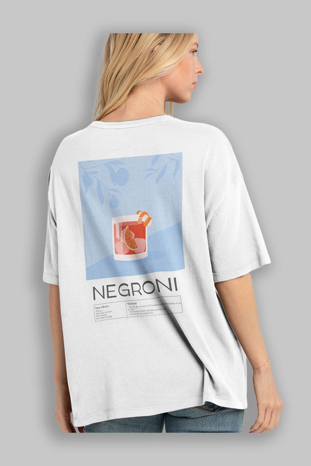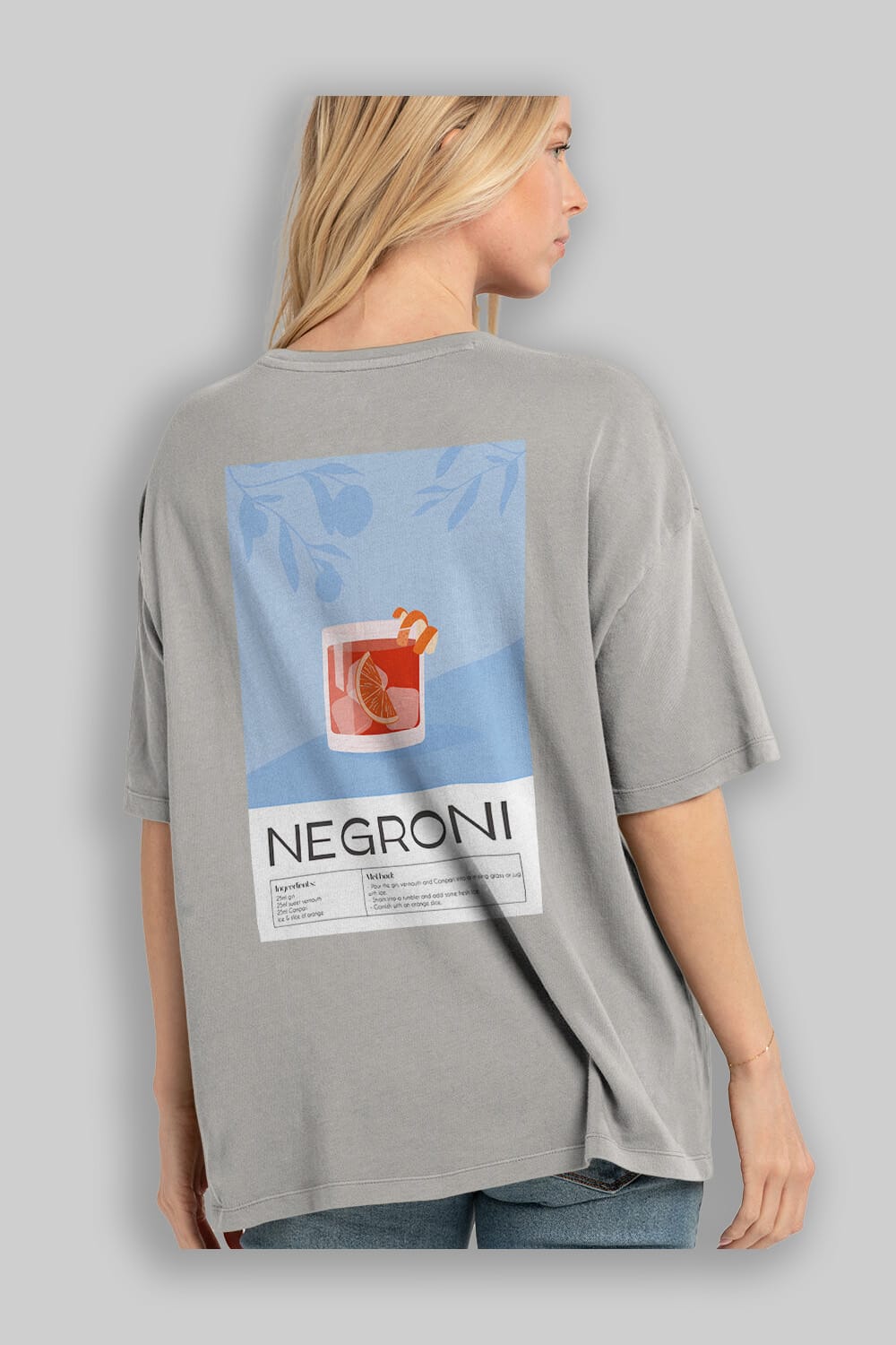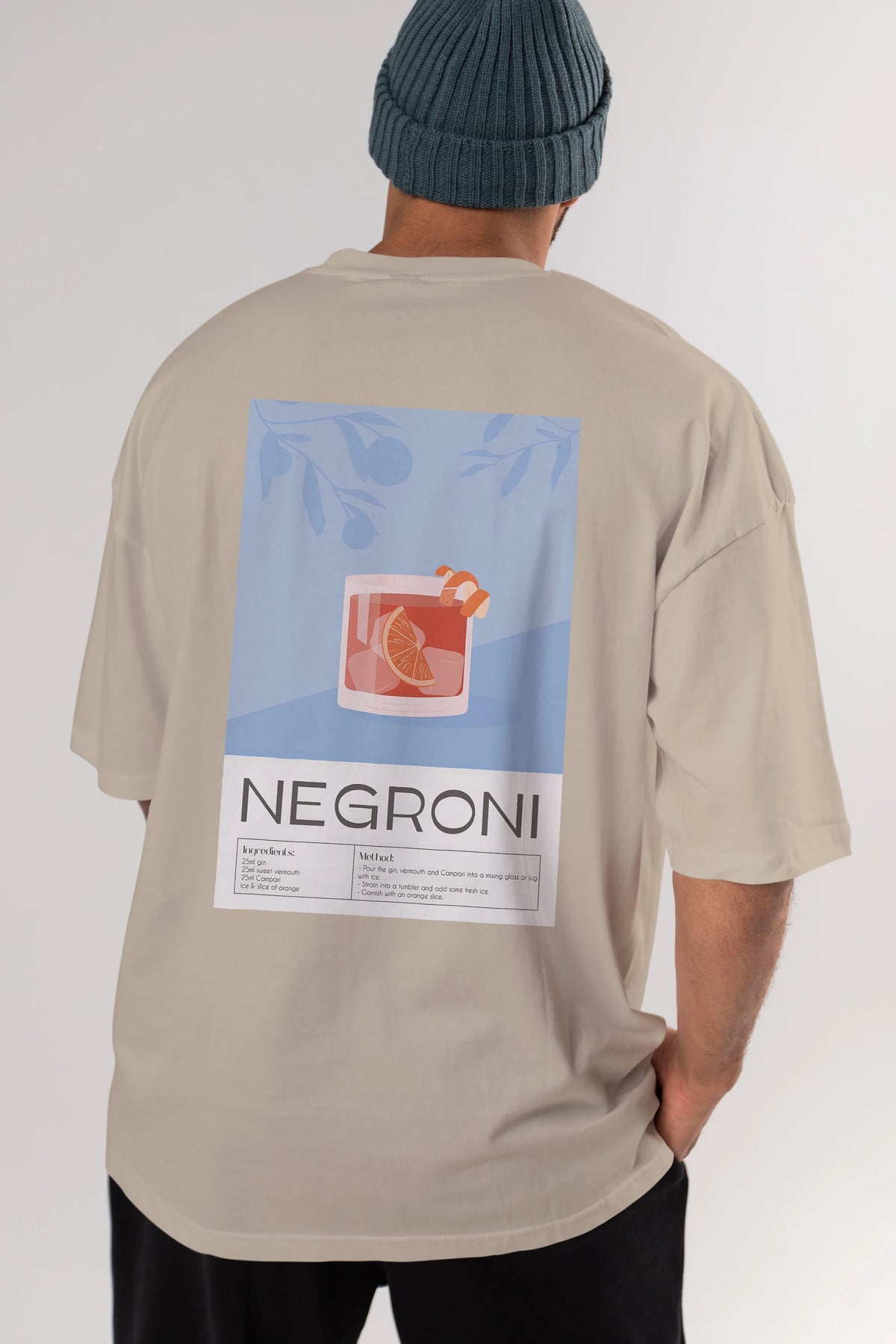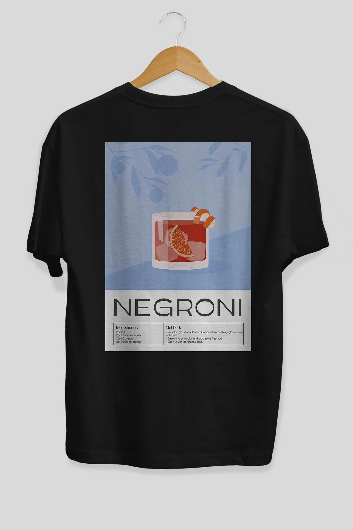 Negroni Arka Baskılı Oversize t-shirt Erkek Kadın Unisex %100 Pamuk Bisiklet Yaka tişort