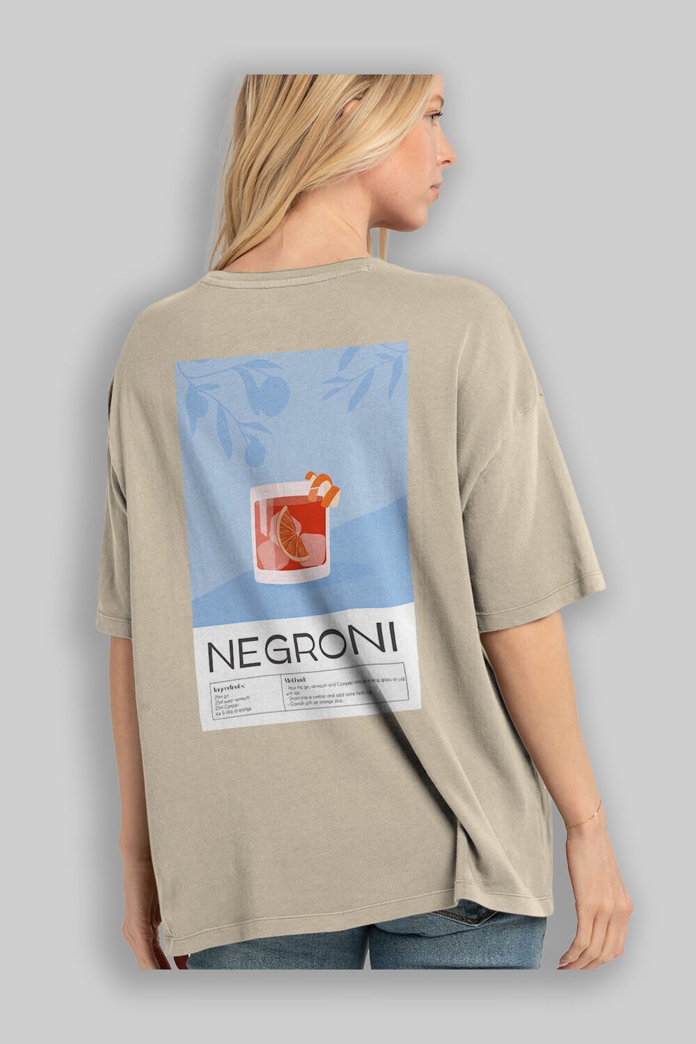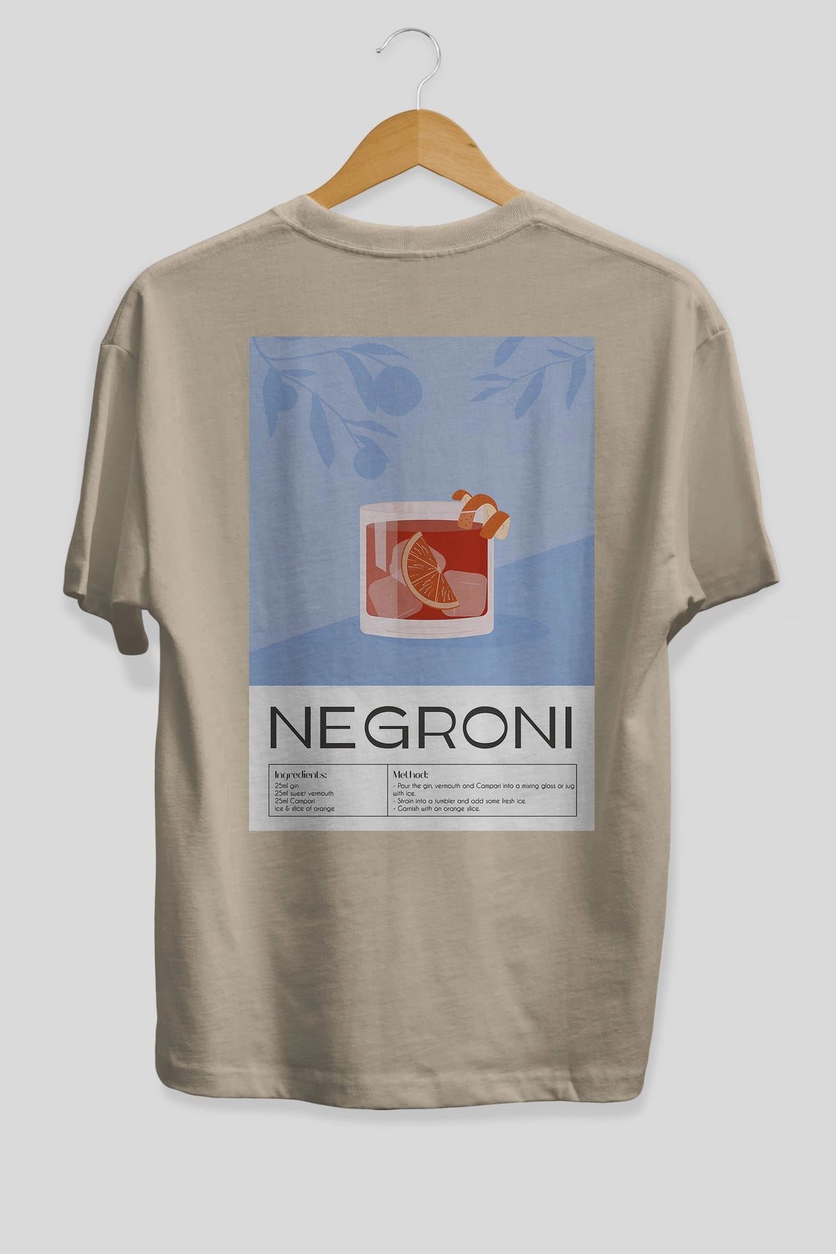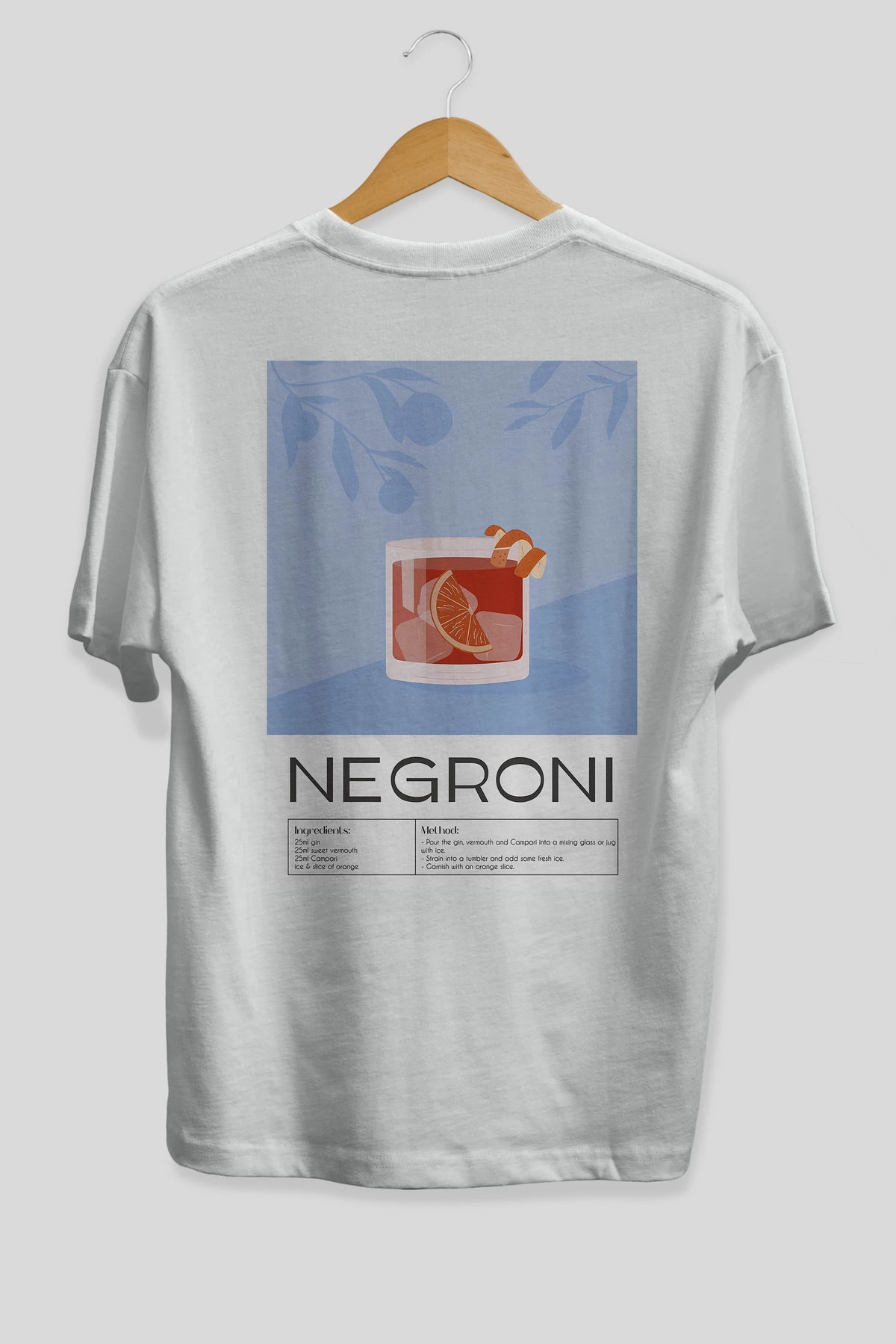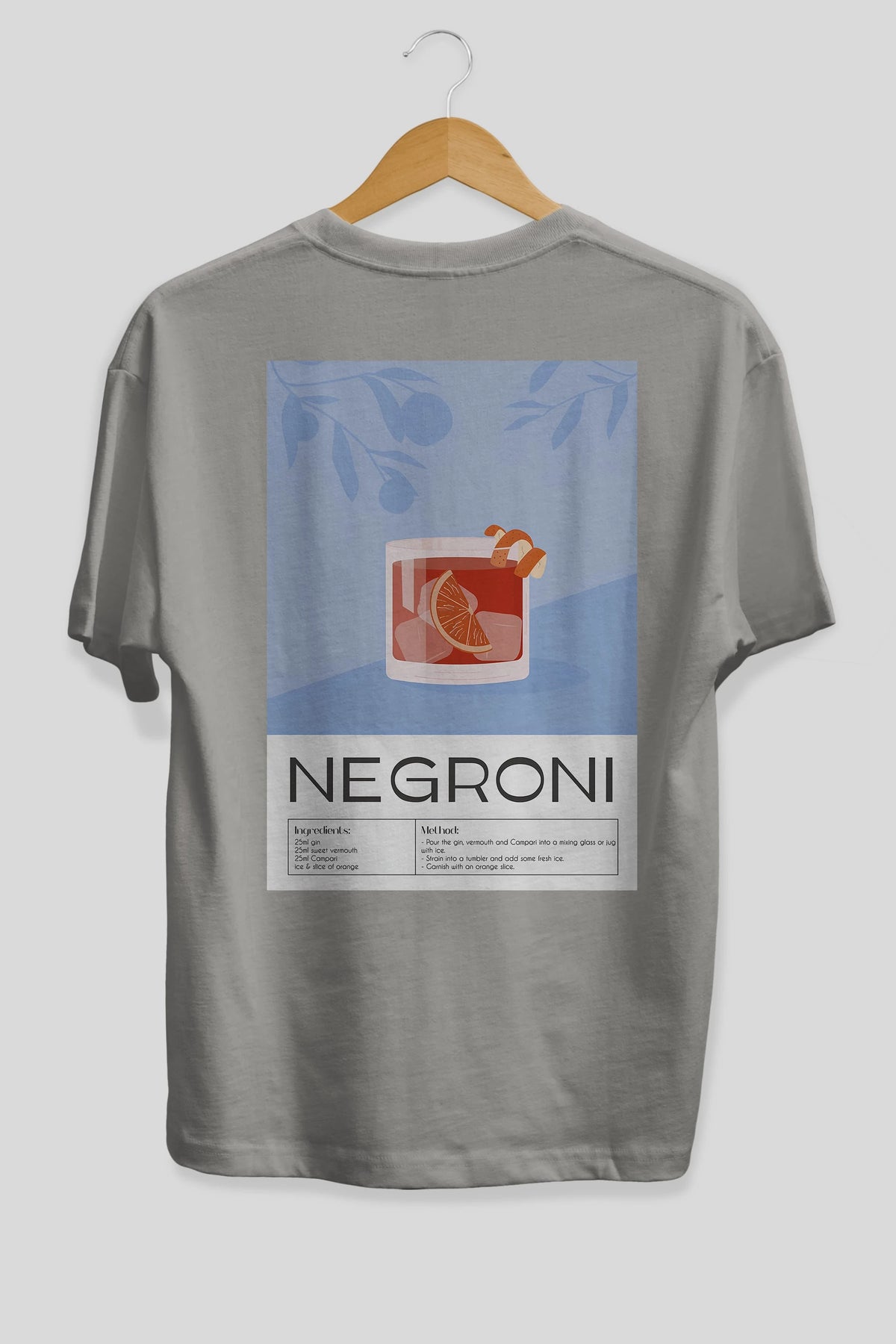 Negroni Arka Baskılı Oversize t-shirt Erkek Kadın Unisex %100 Pamuk Bisiklet Yaka tişort
