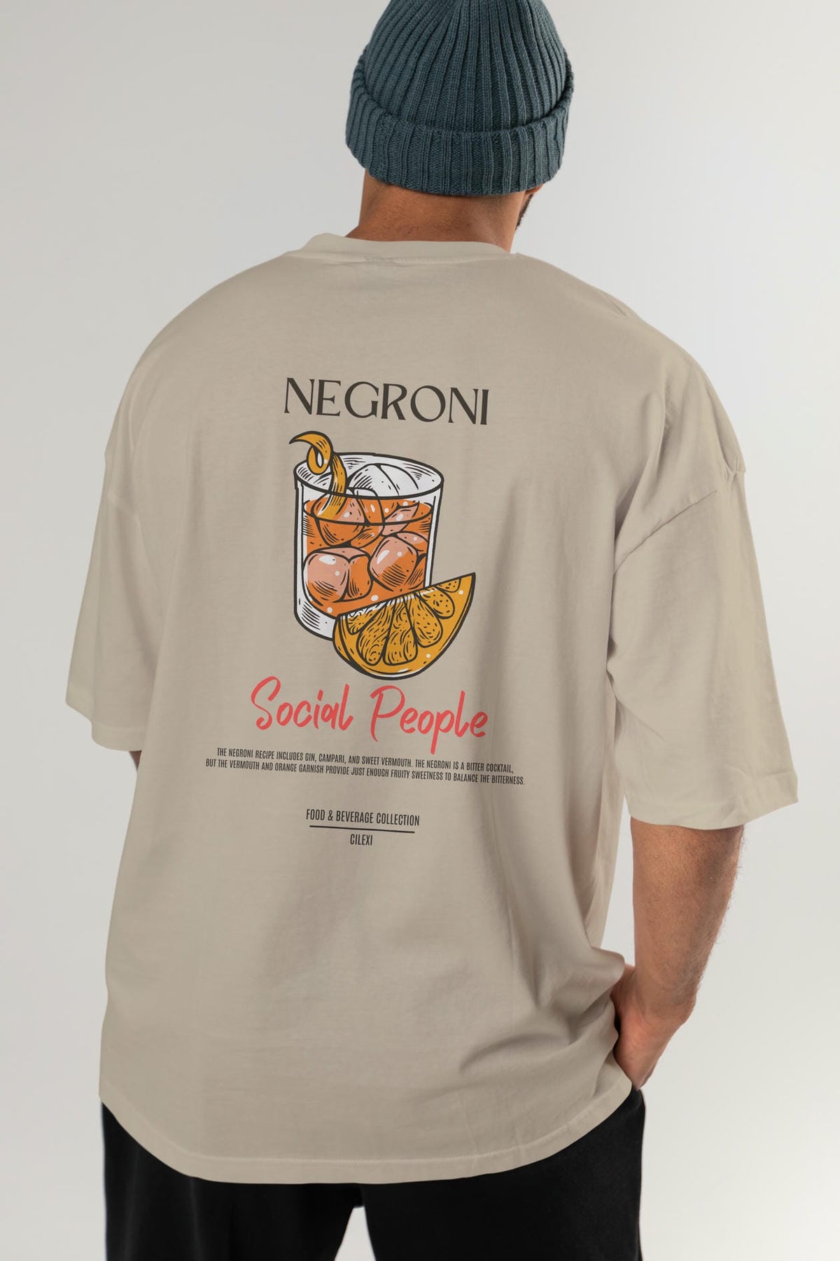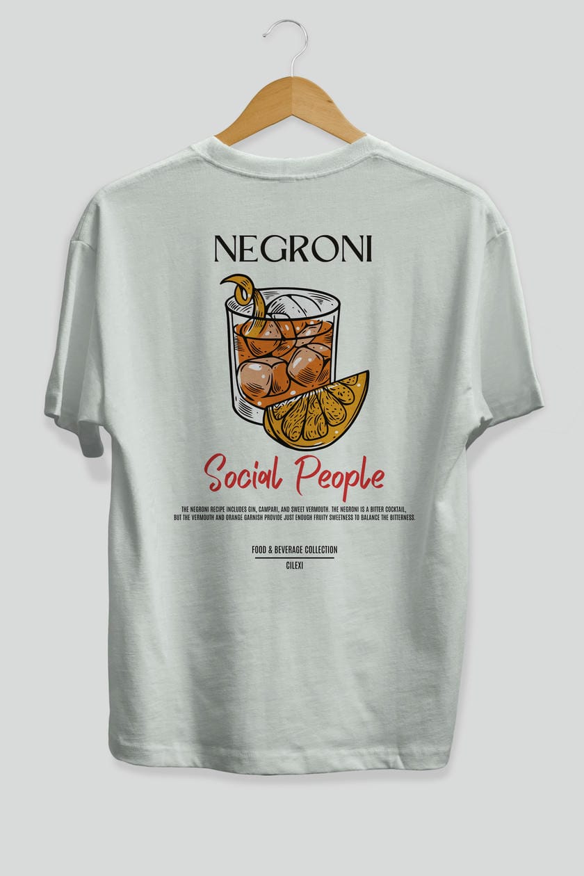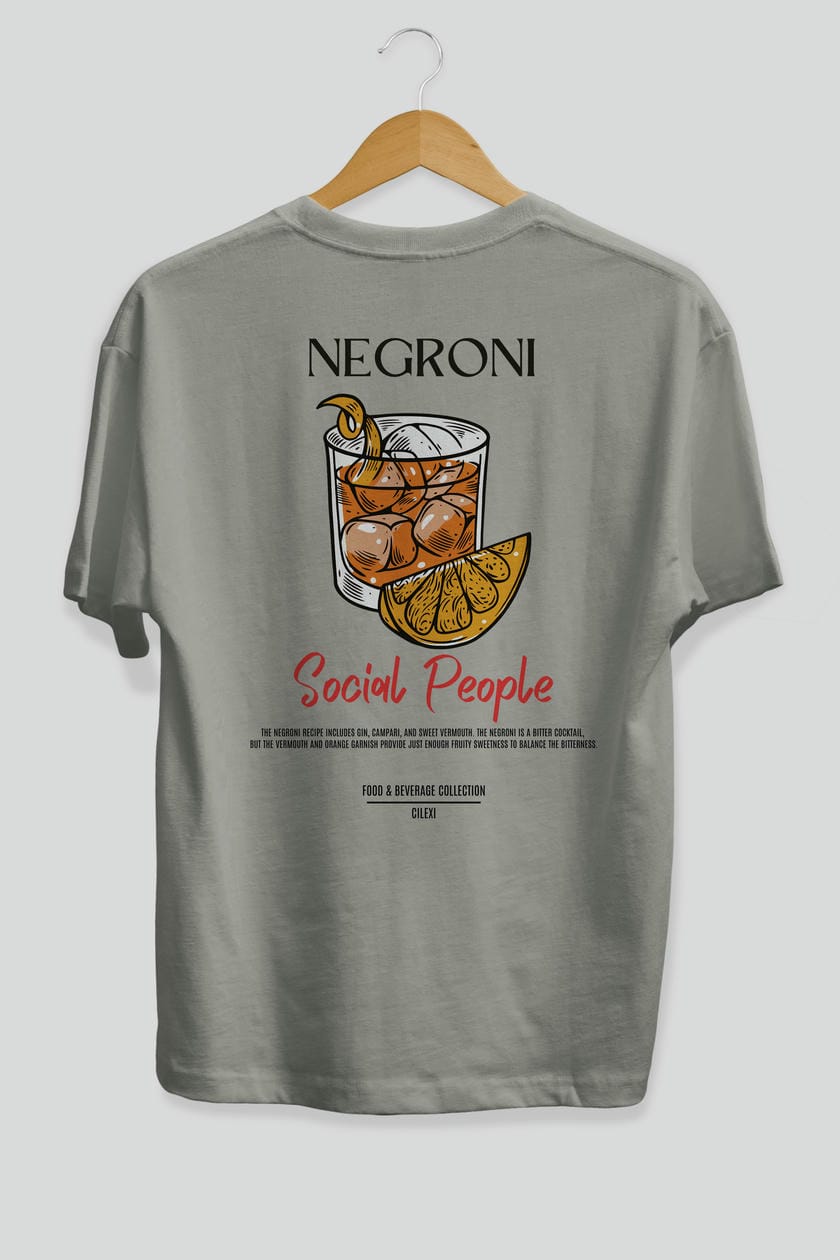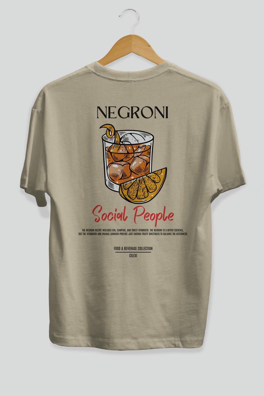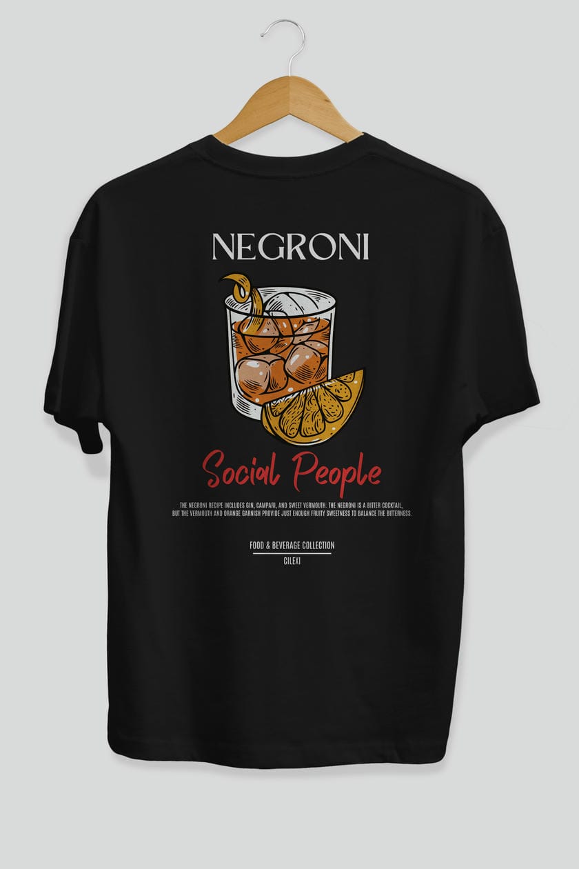 Negroni Kokteyl Serisi Baskılı Oversize t-shirt Erkek Kadın Unisex %100 Pamuk Bisiklet Yaka tişort