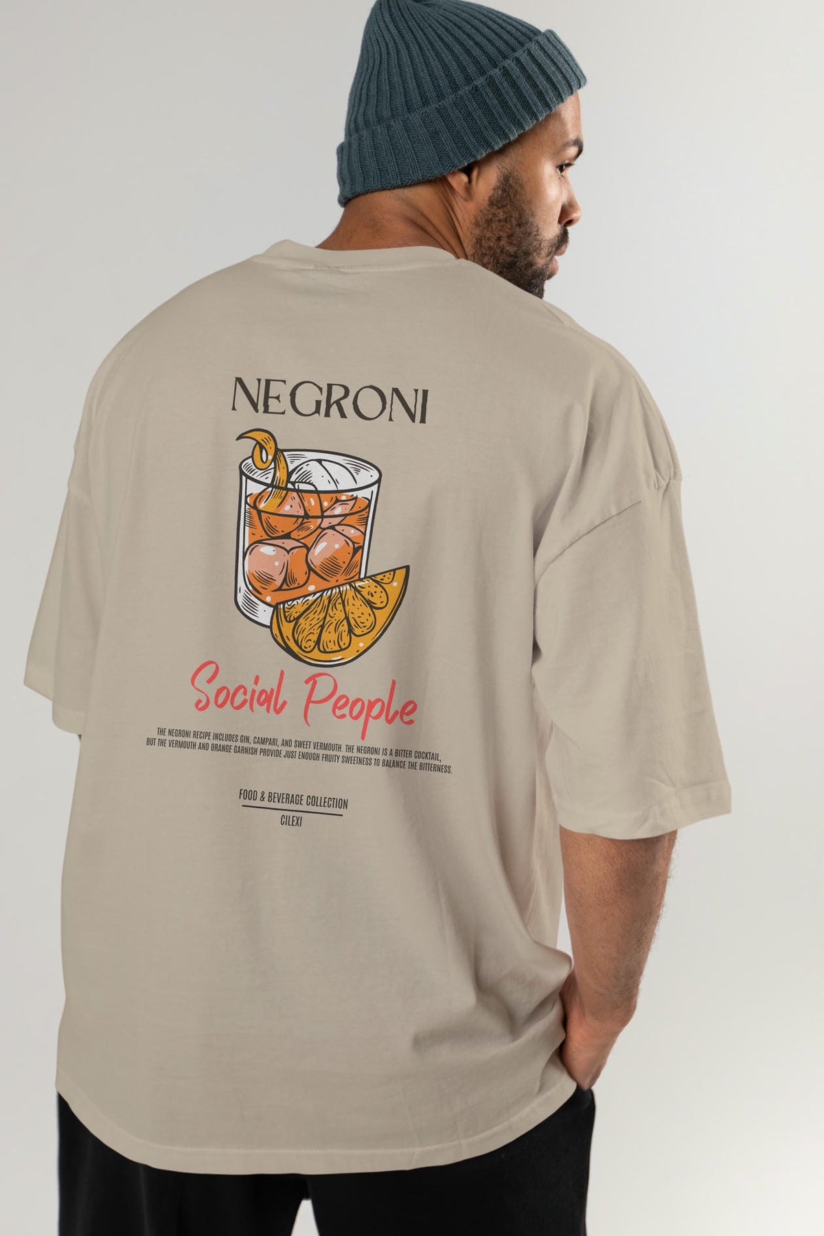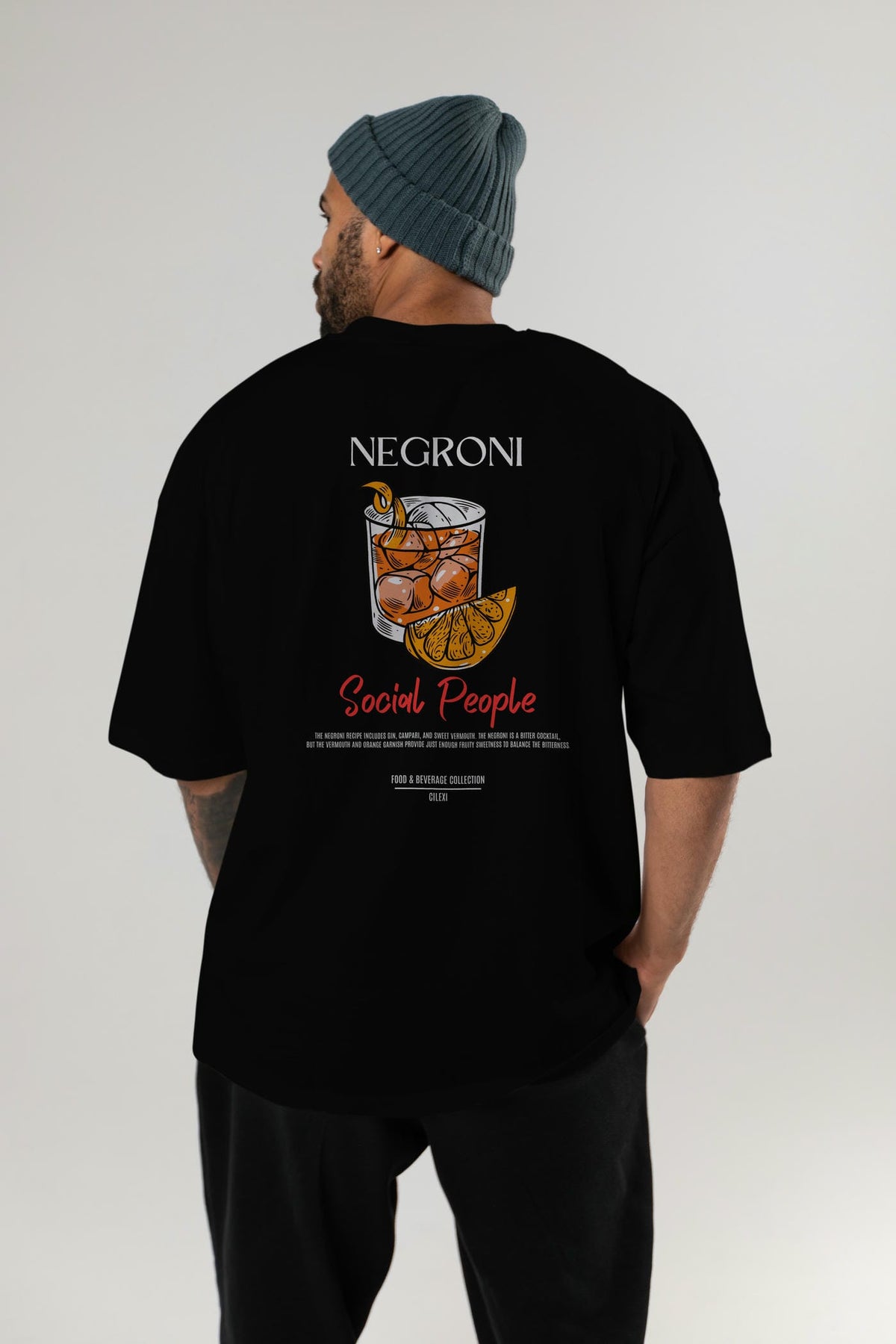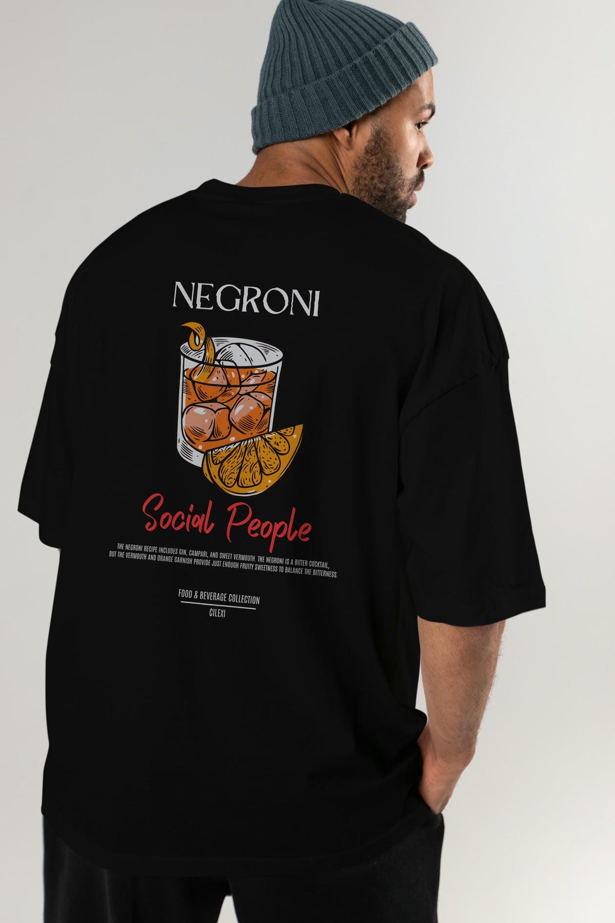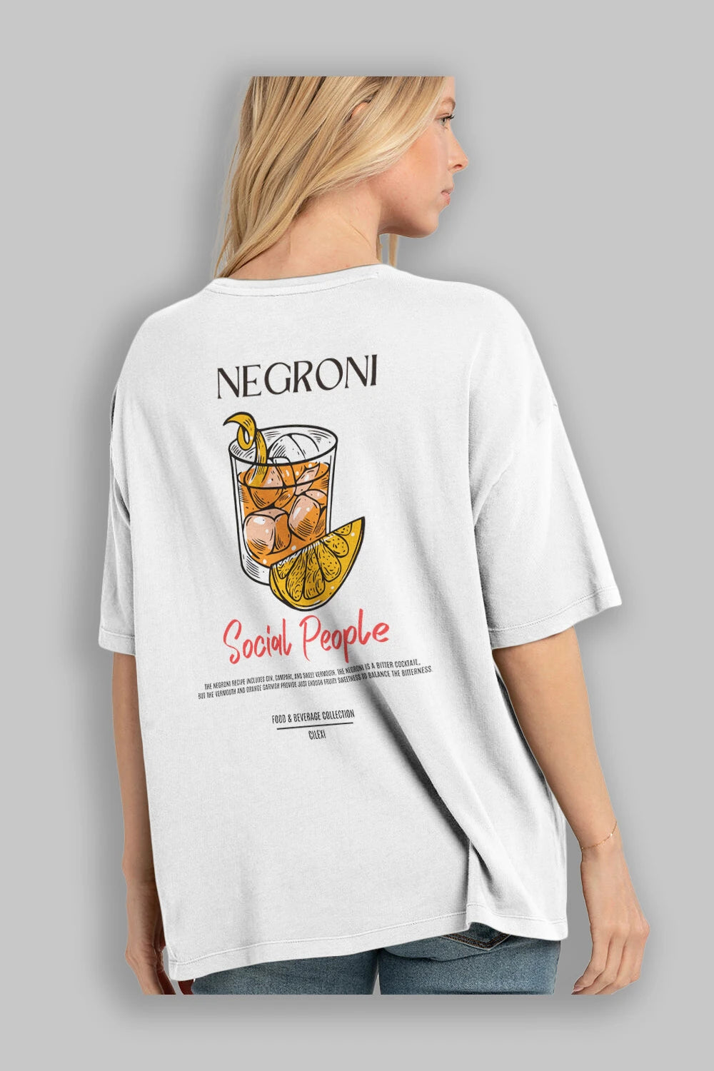 Negroni Kokteyl Serisi Baskılı Oversize t-shirt Erkek Kadın Unisex %100 Pamuk Bisiklet Yaka tişort