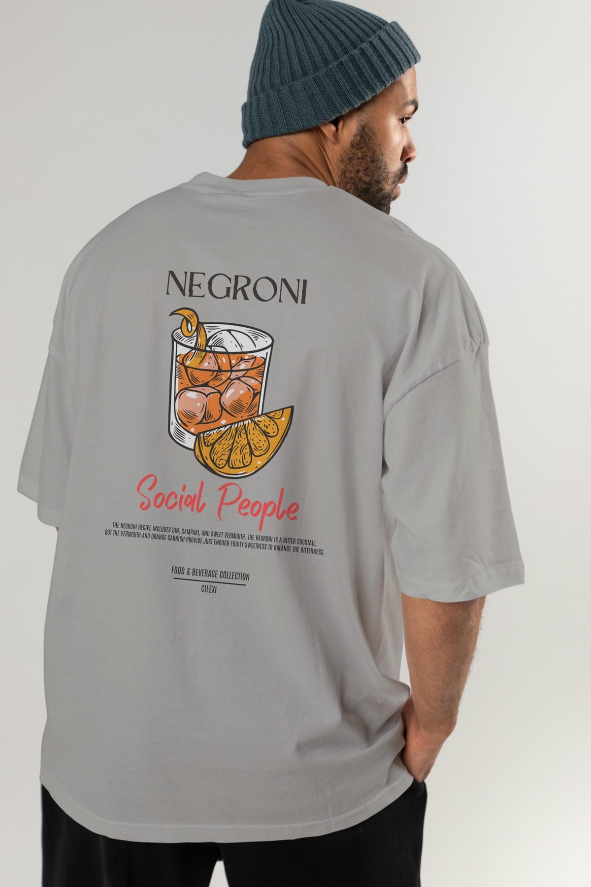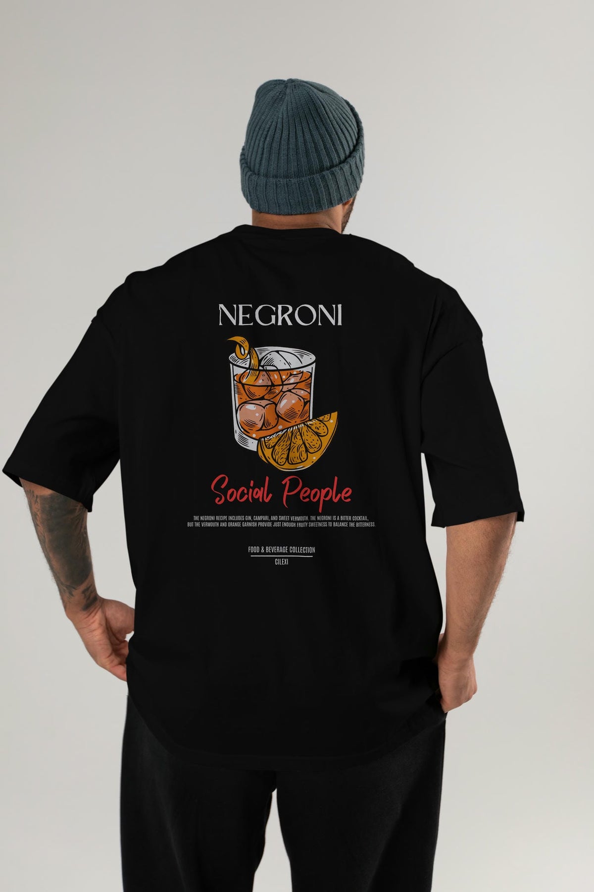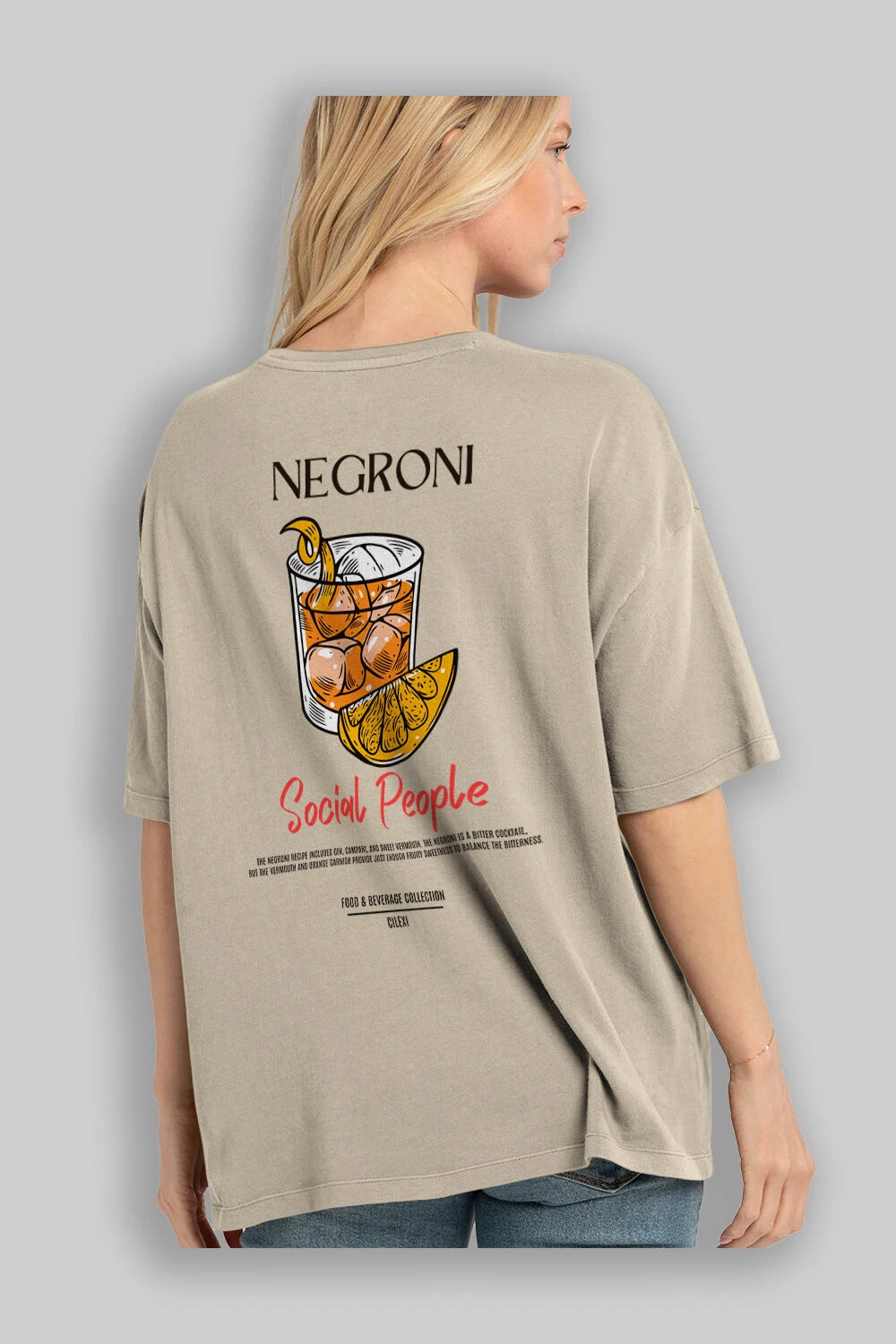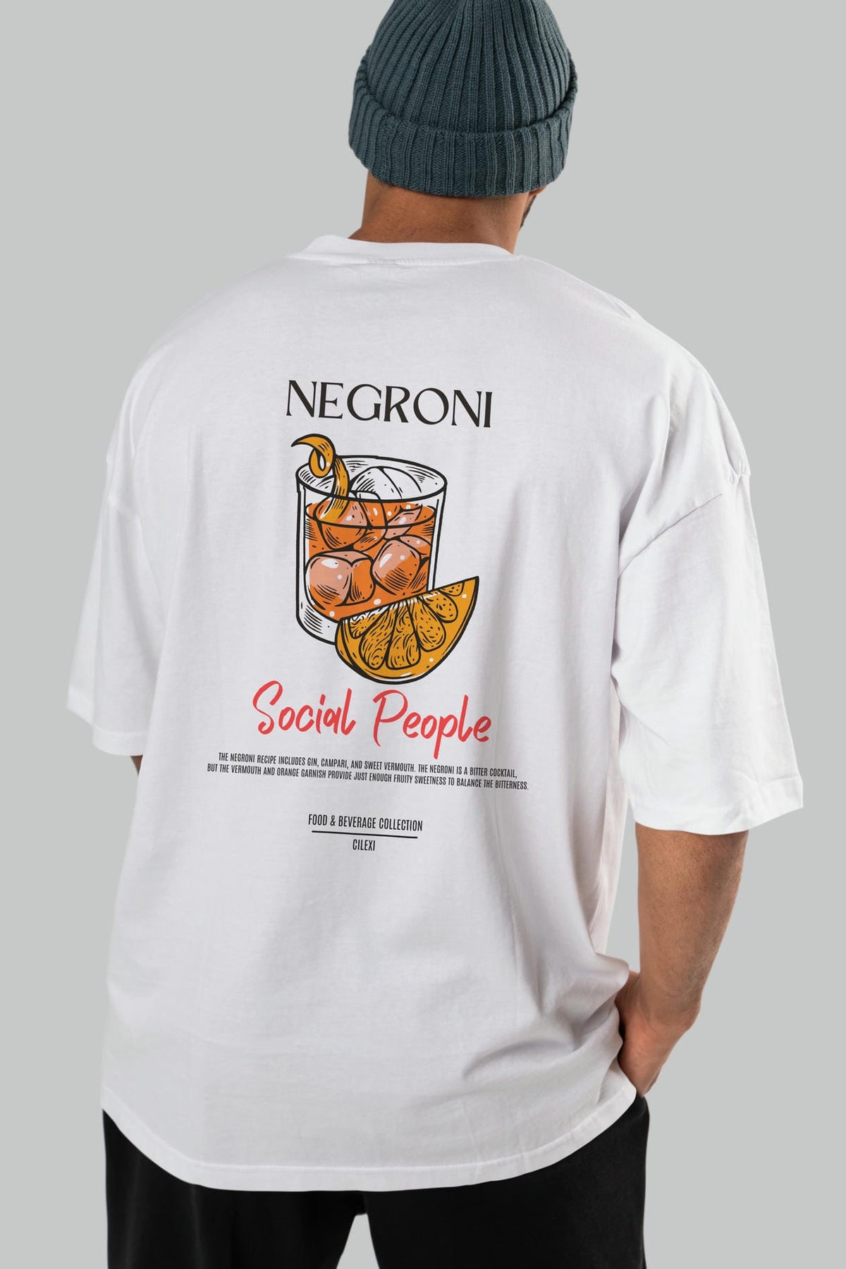 Negroni Kokteyl Serisi Baskılı Oversize t-shirt Erkek Kadın Unisex %100 Pamuk Bisiklet Yaka tişort