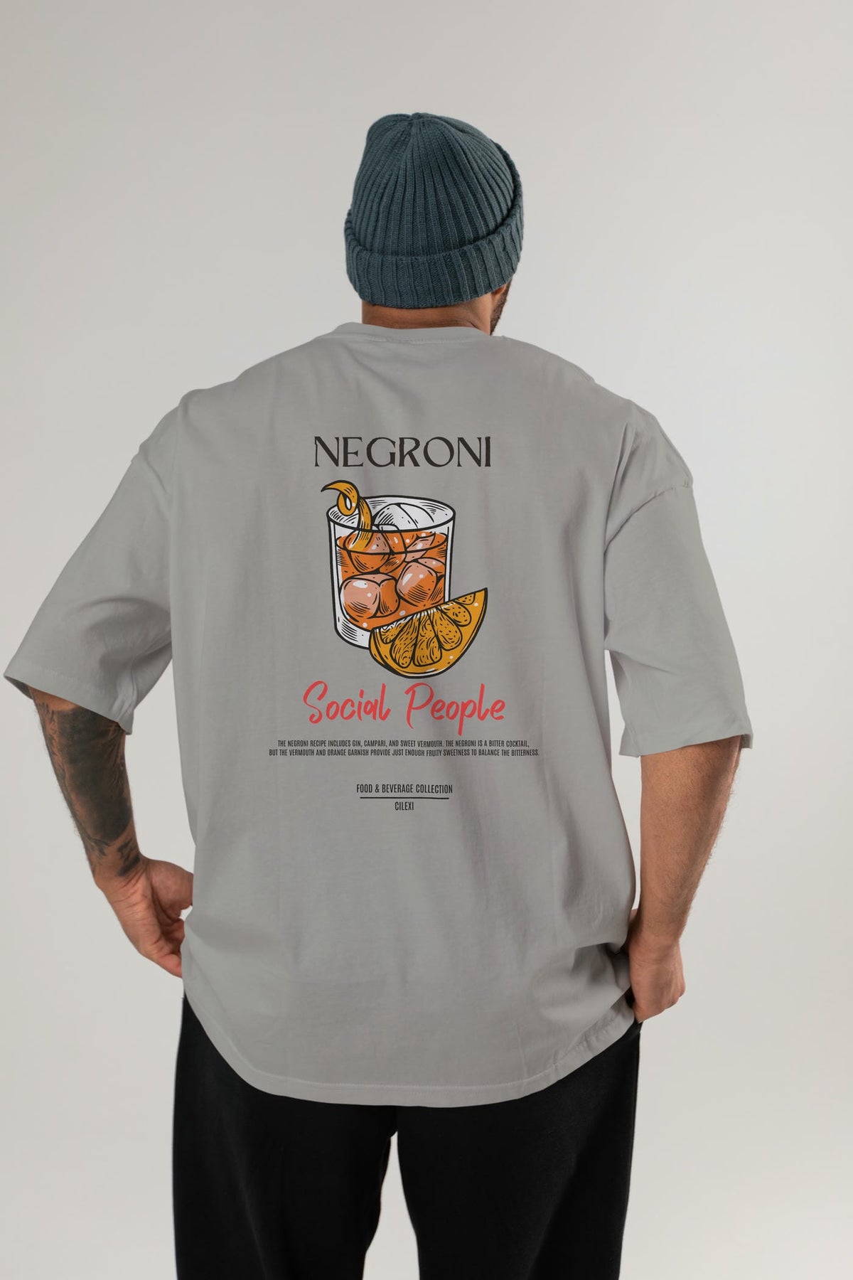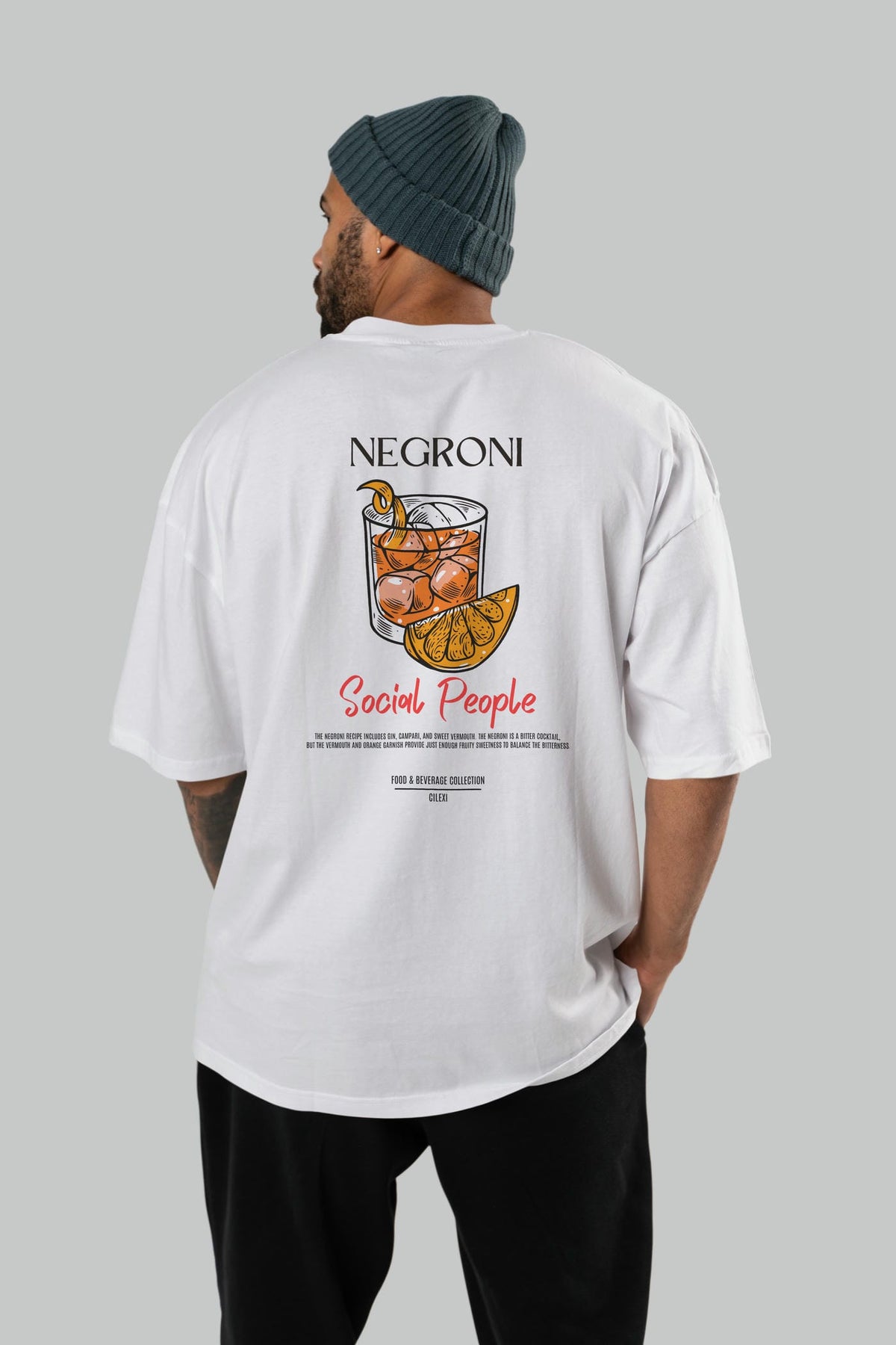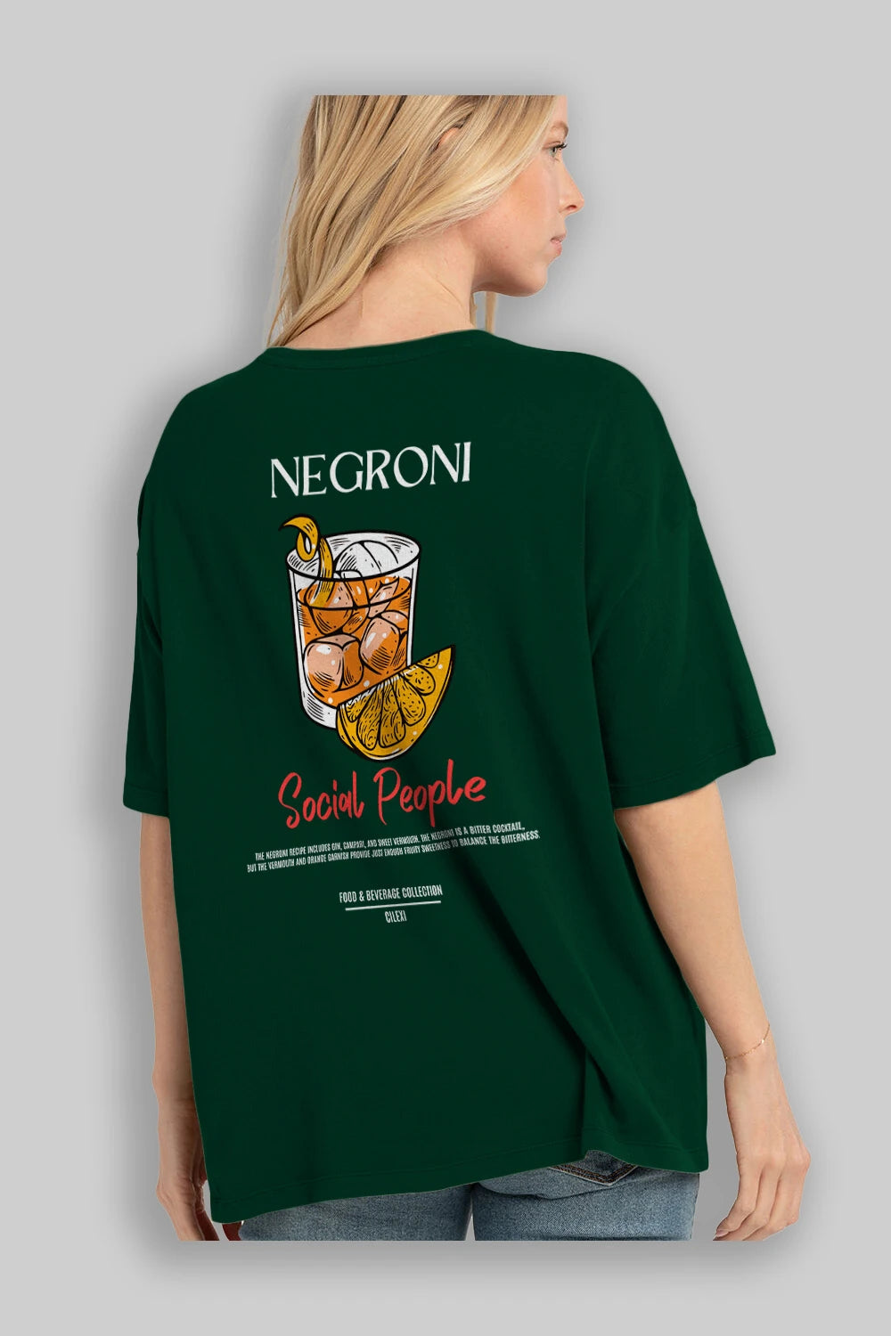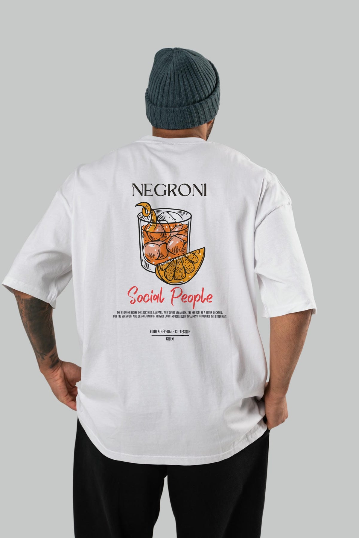 Negroni Kokteyl Serisi Baskılı Oversize t-shirt Erkek Kadın Unisex %100 Pamuk Bisiklet Yaka tişort